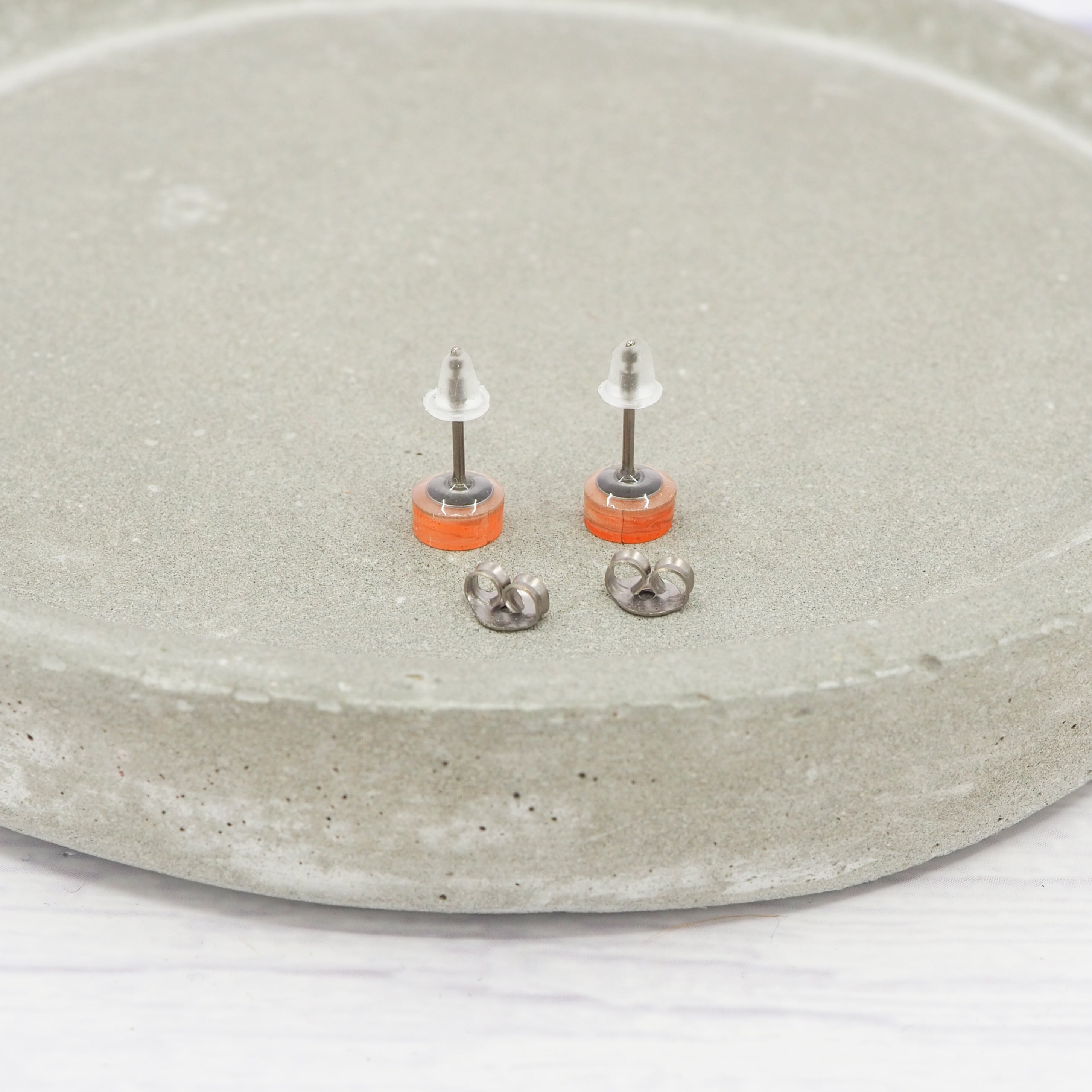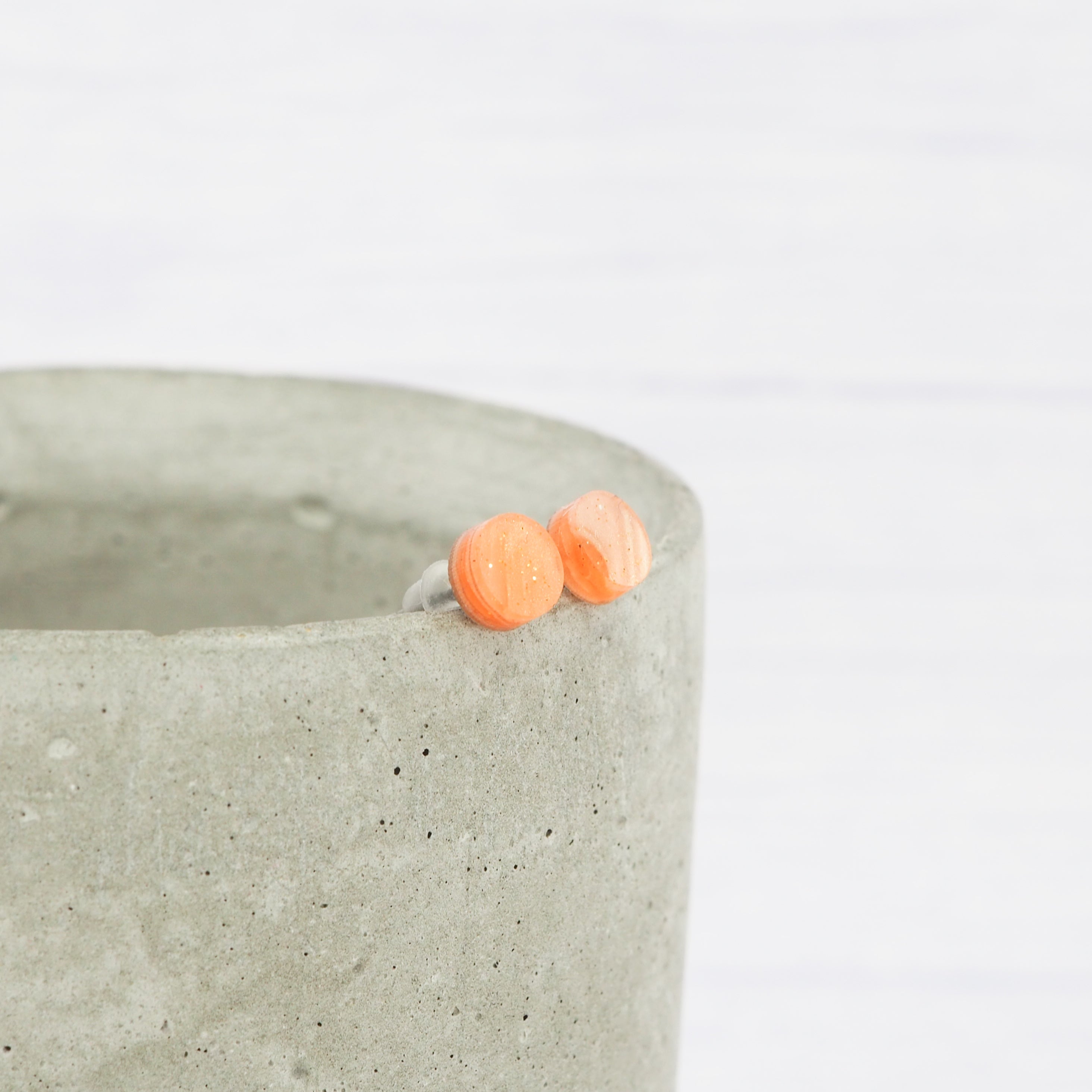 Pearly Orange galaxy acrylic dot studs with 0.7mm ear stems.