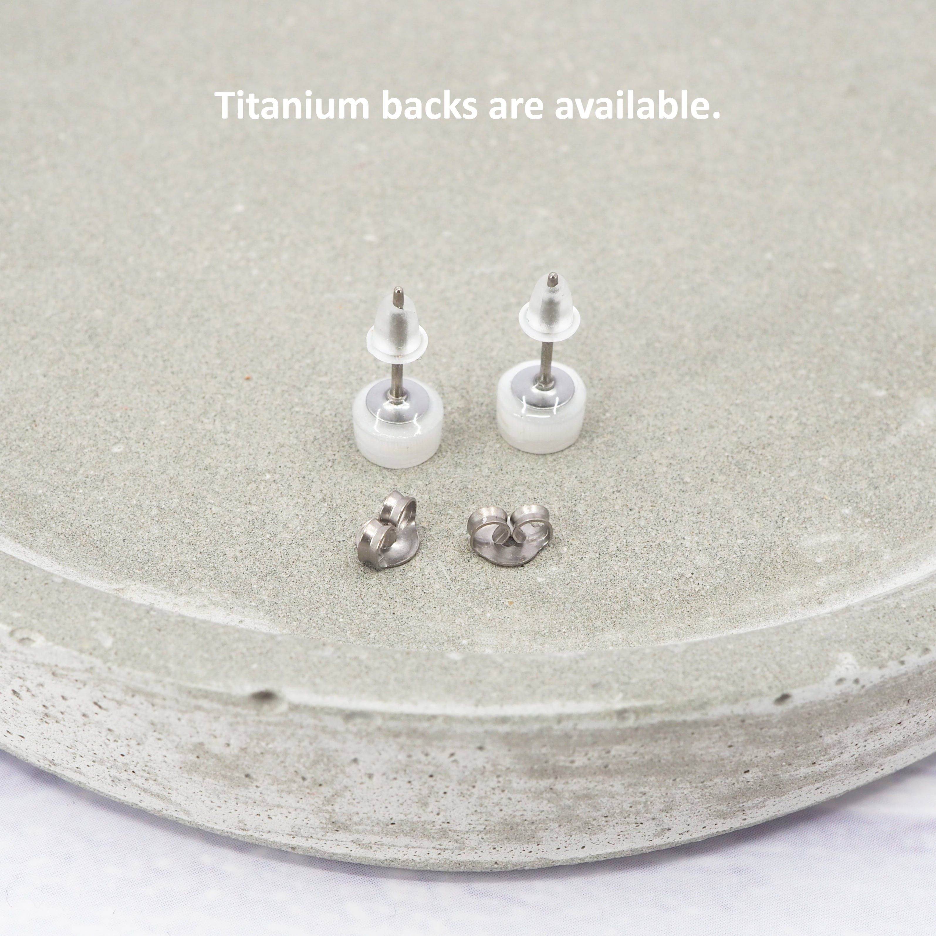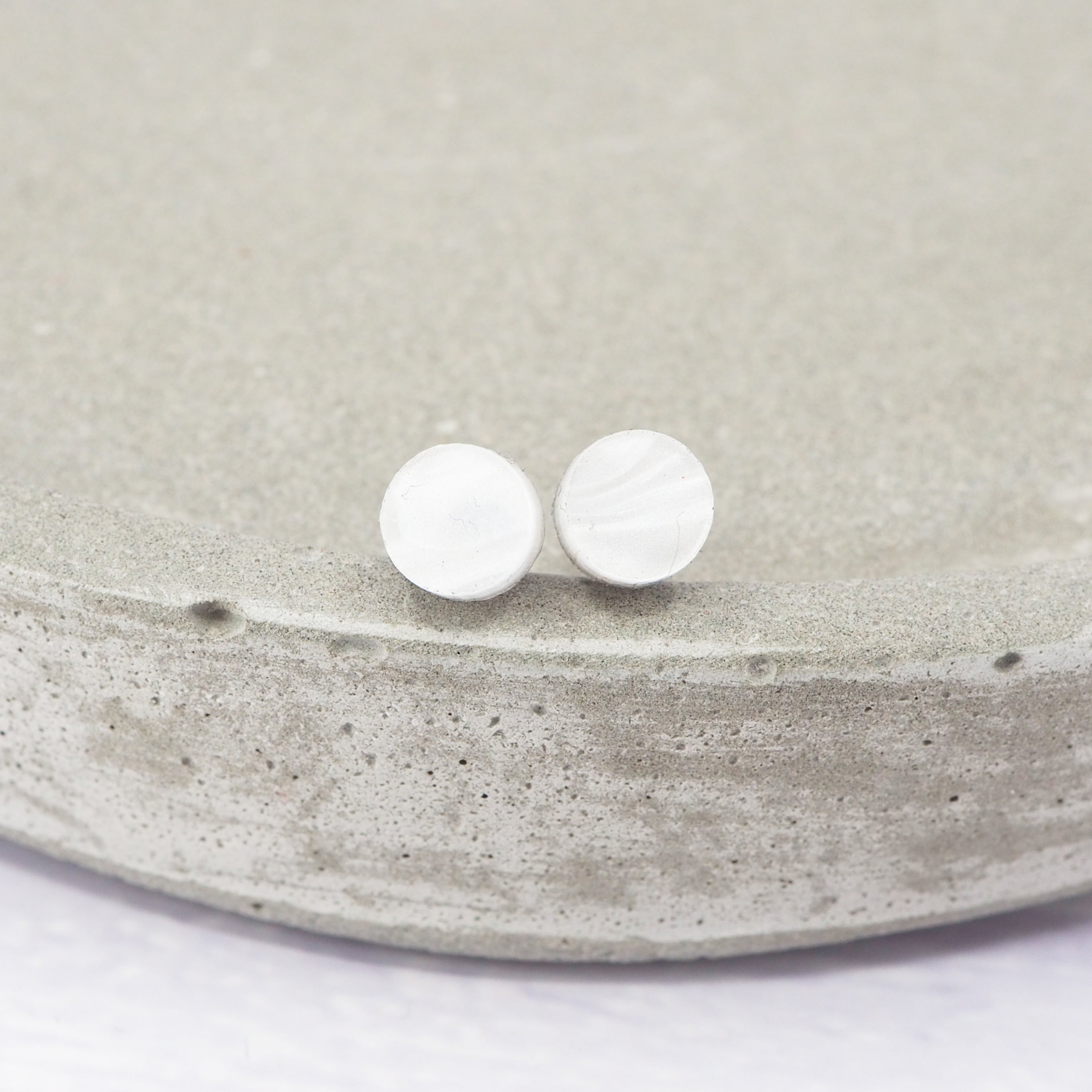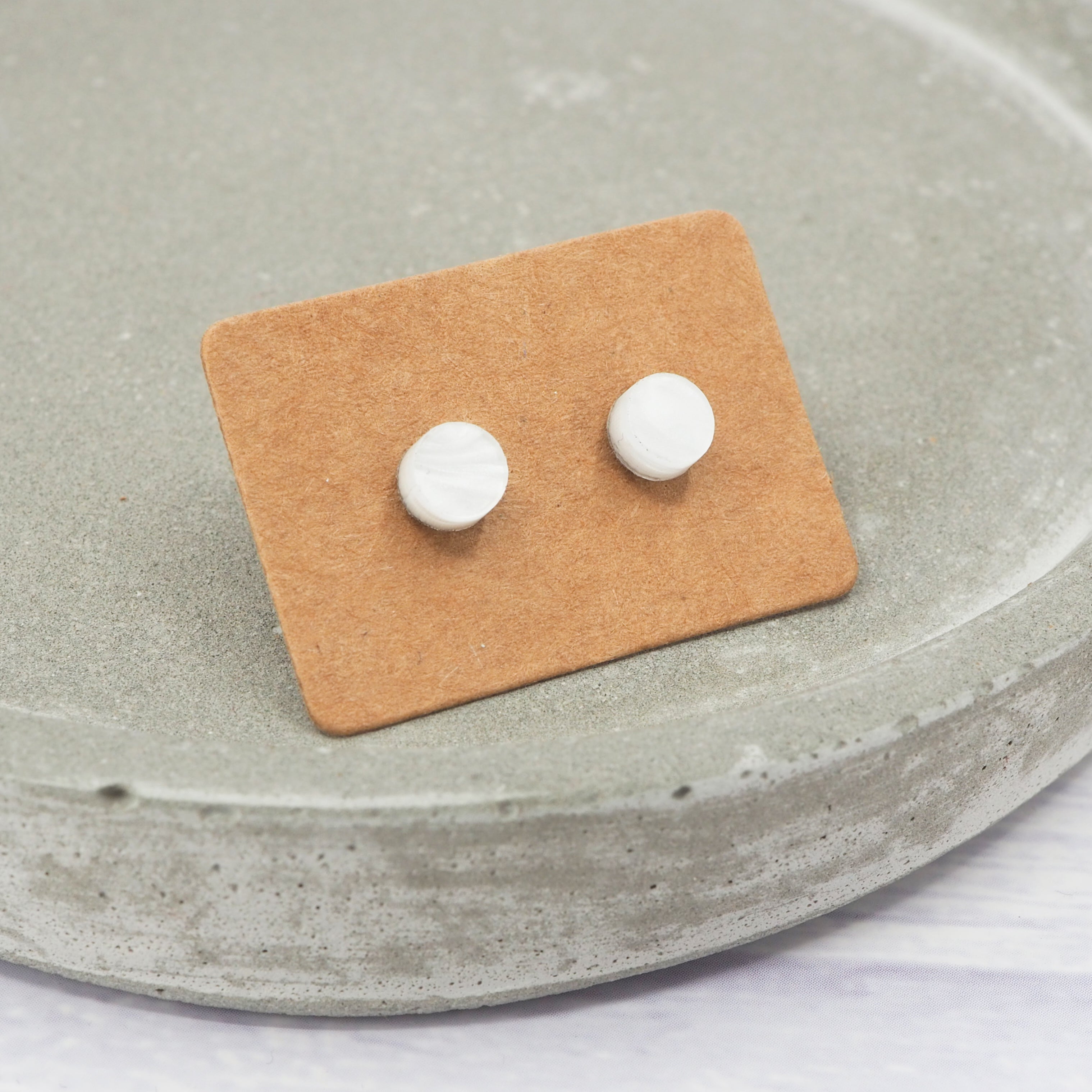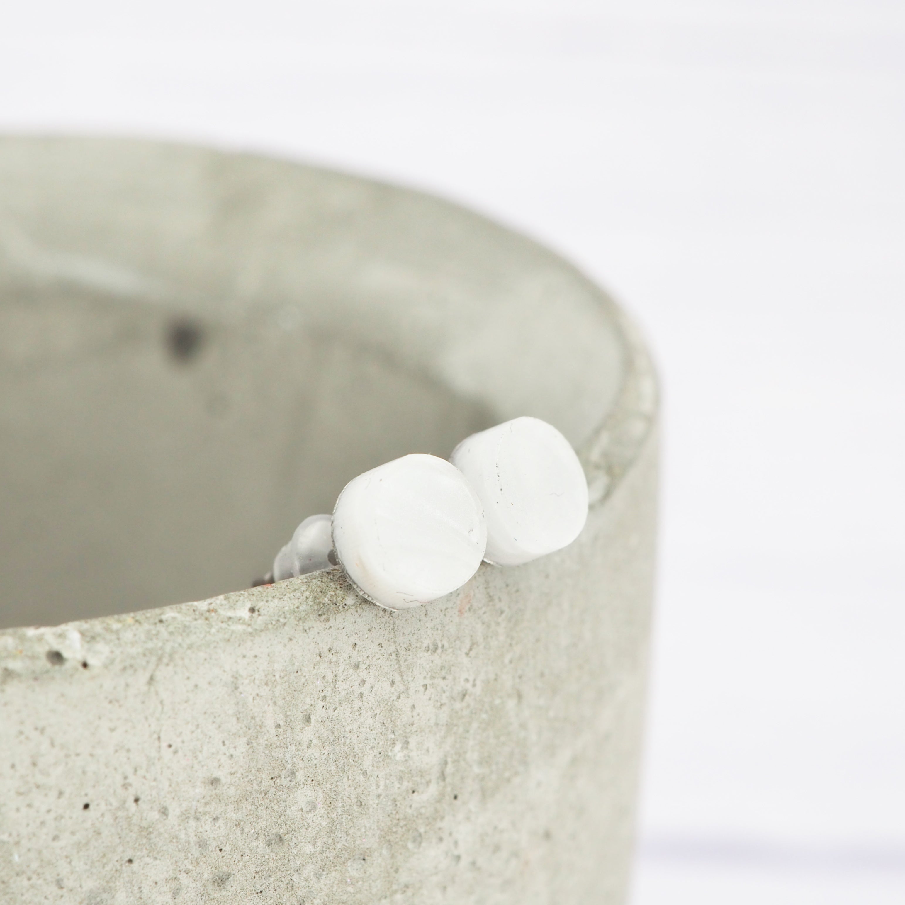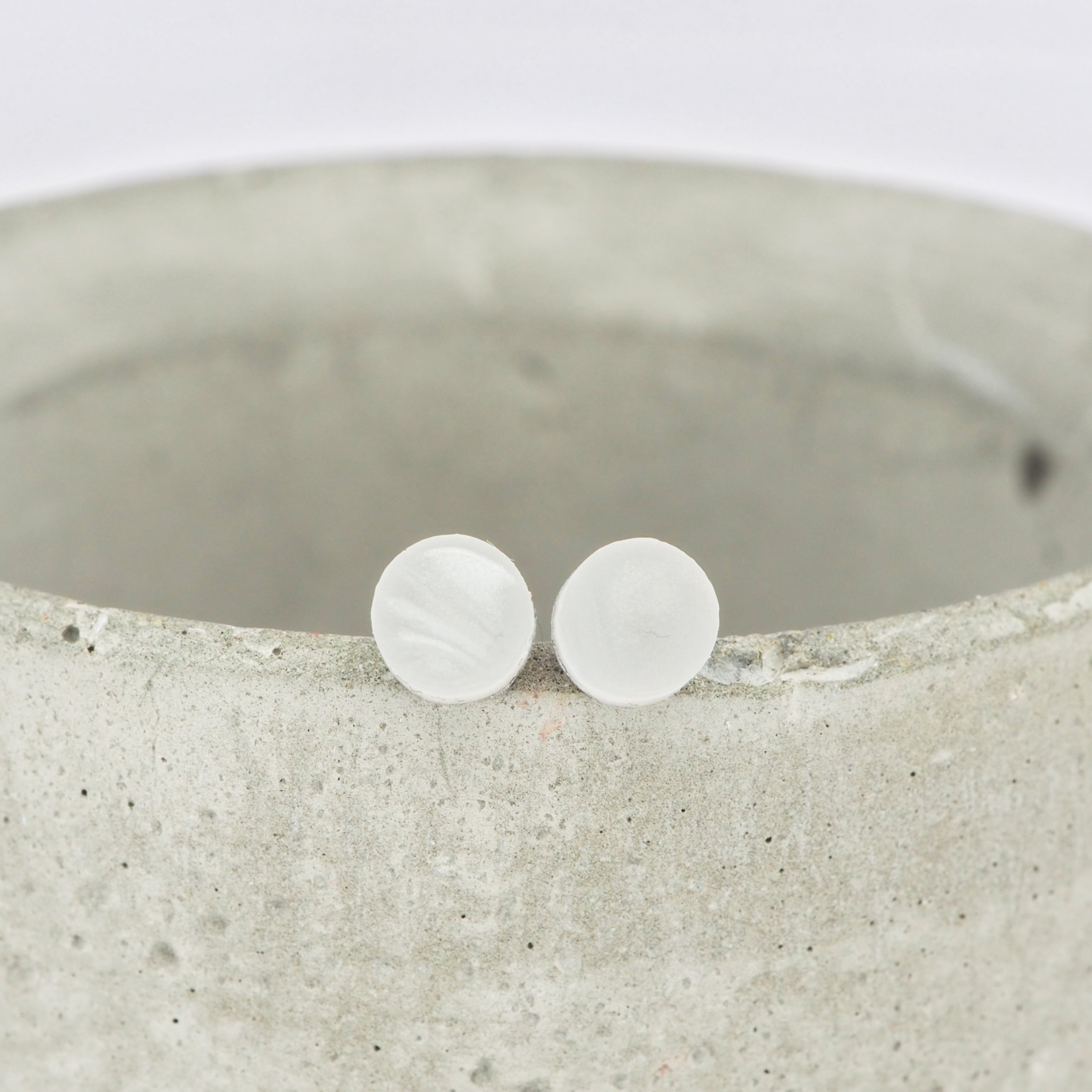 Pearly white acrylic dot studs with 0.7mm ear stems.