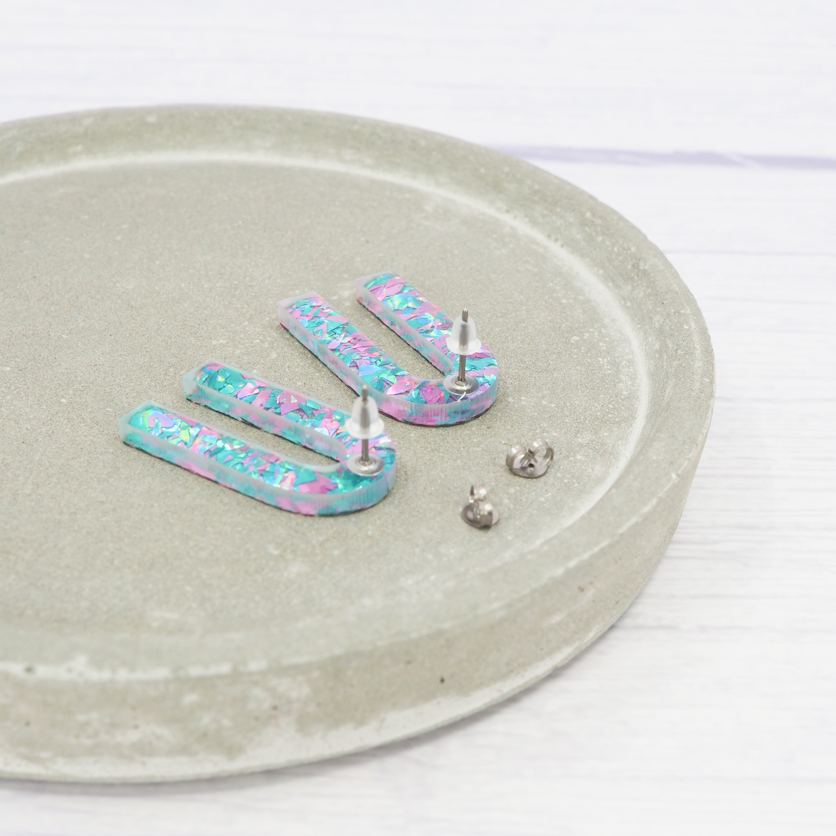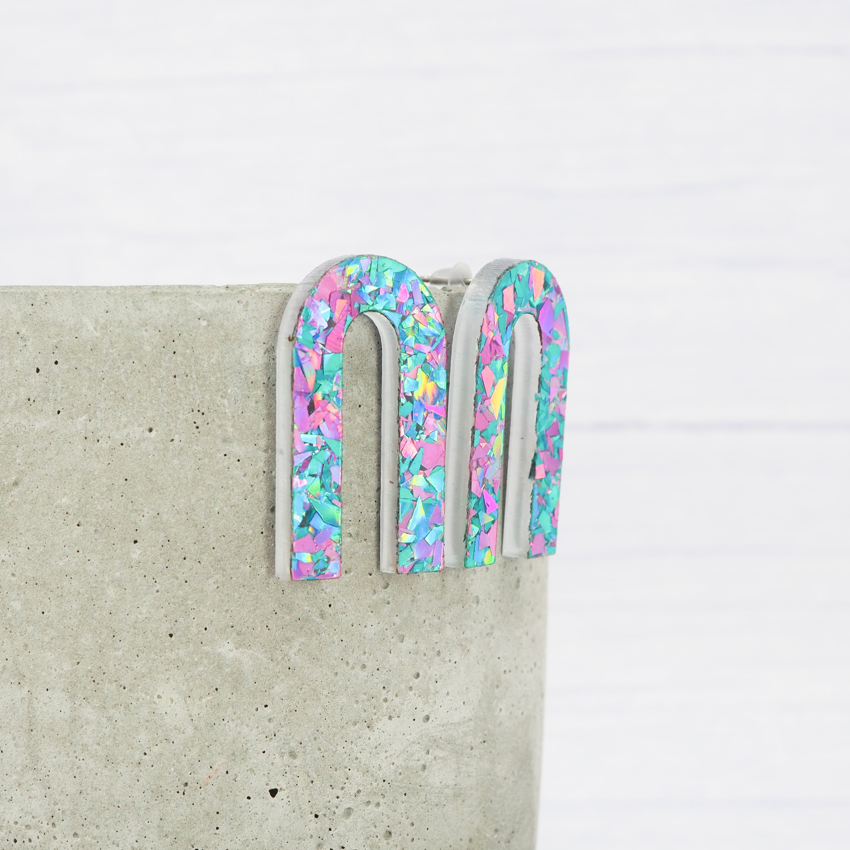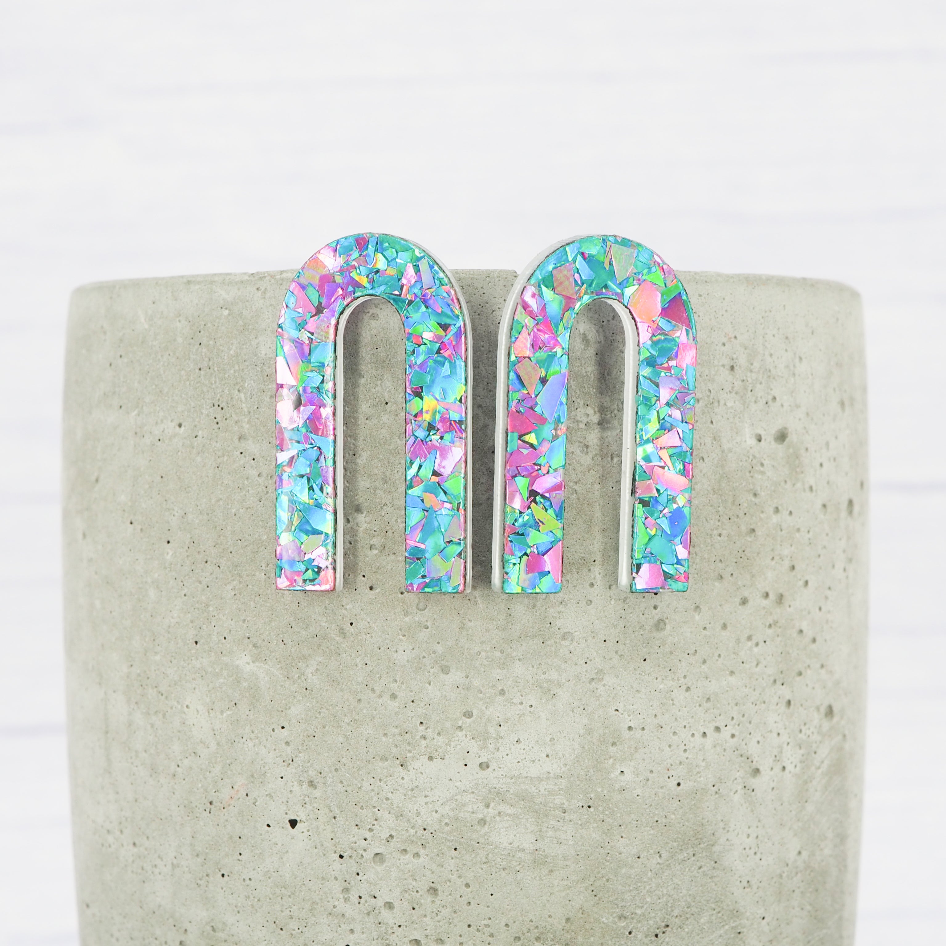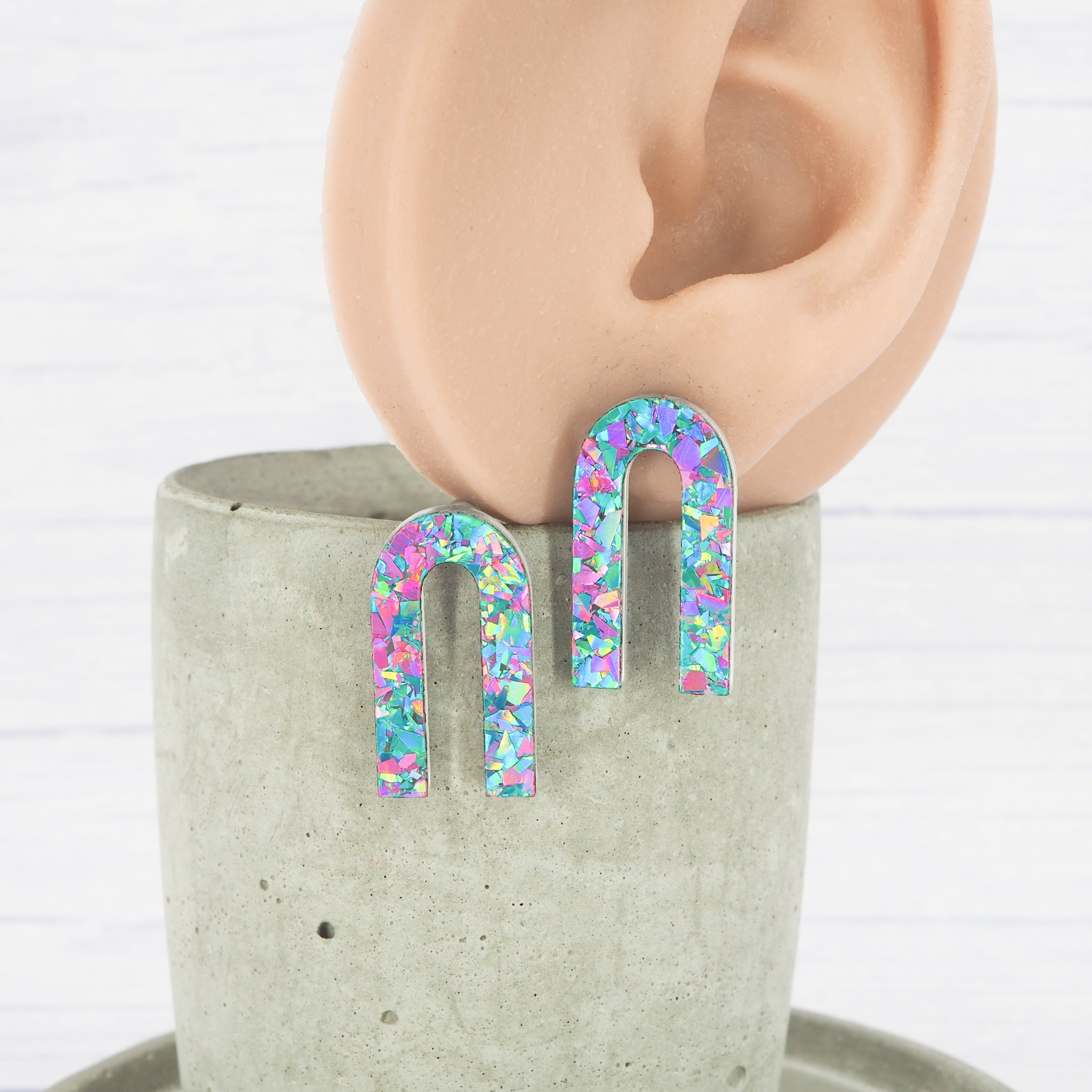 Pink and Blue flake glitter arch studs