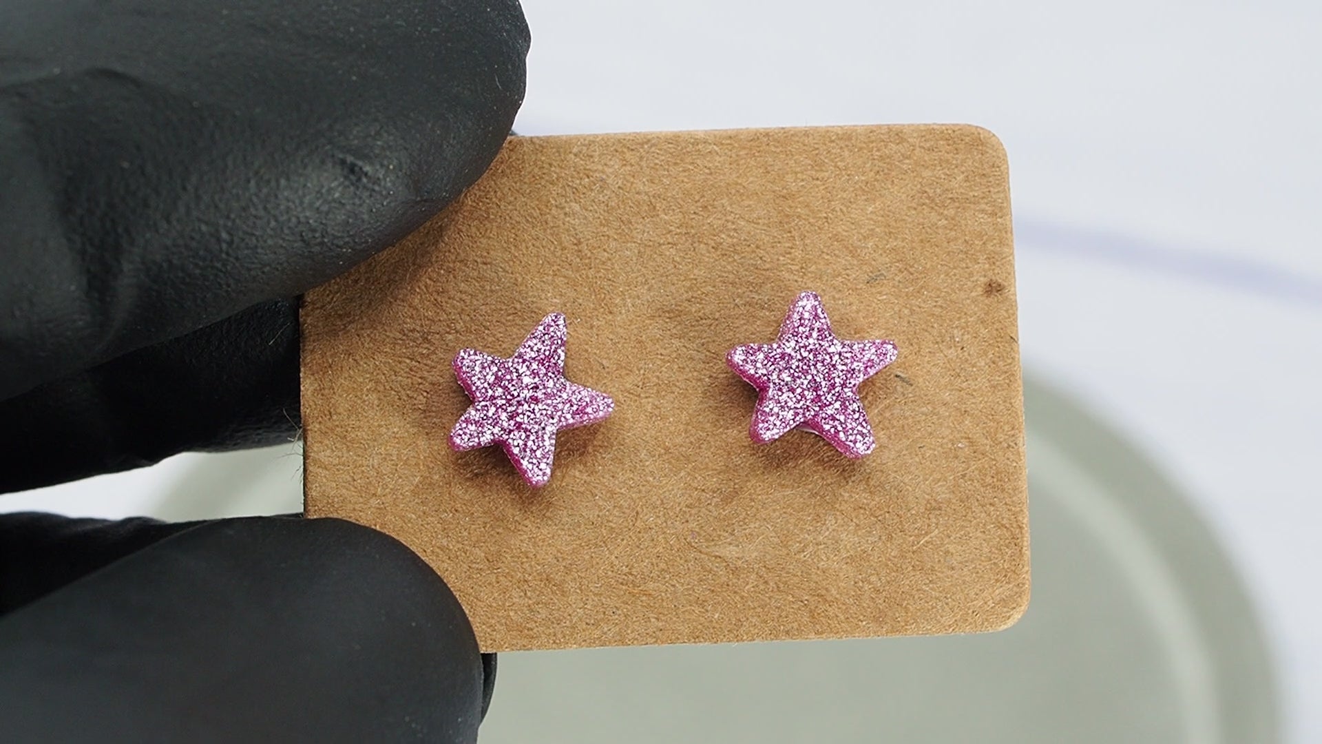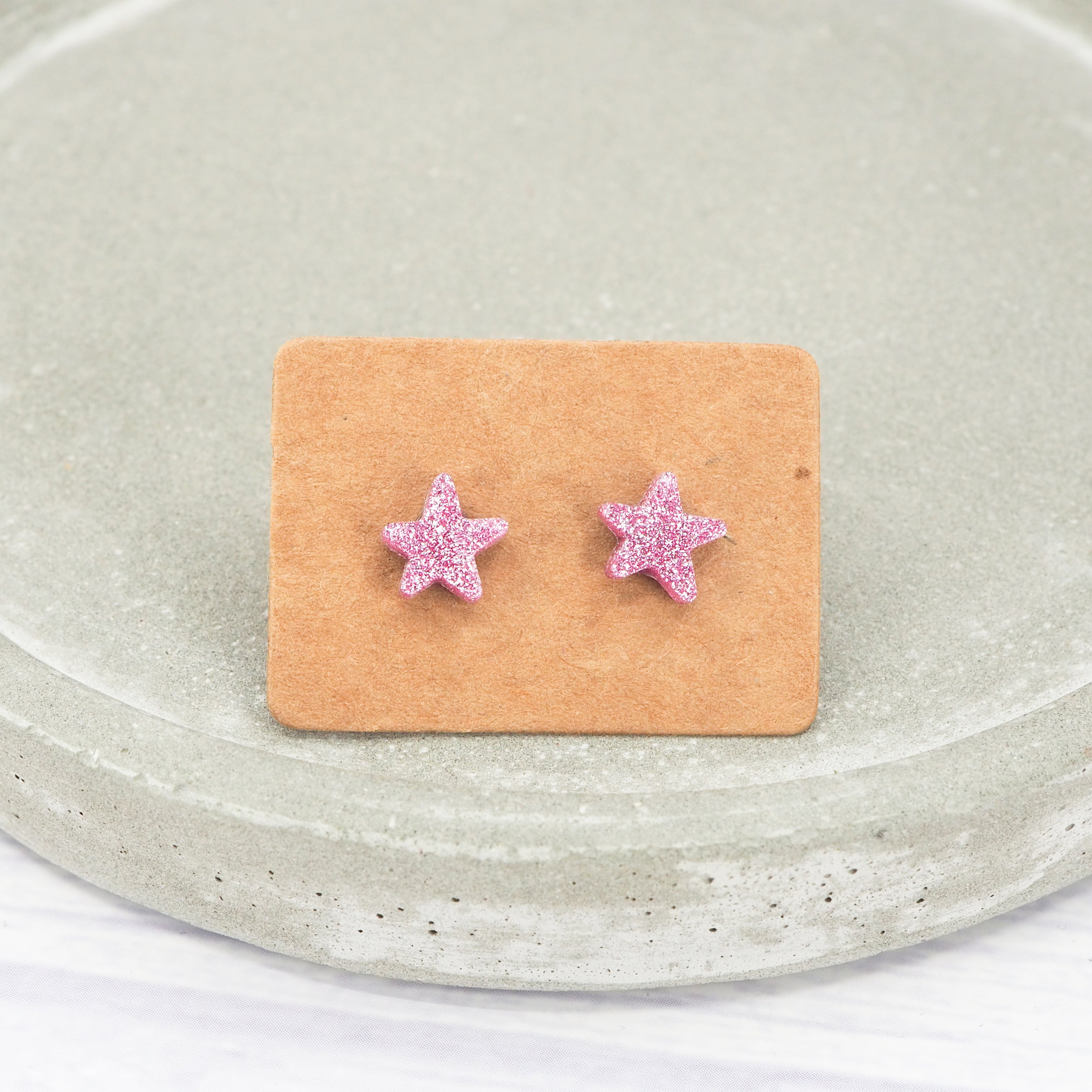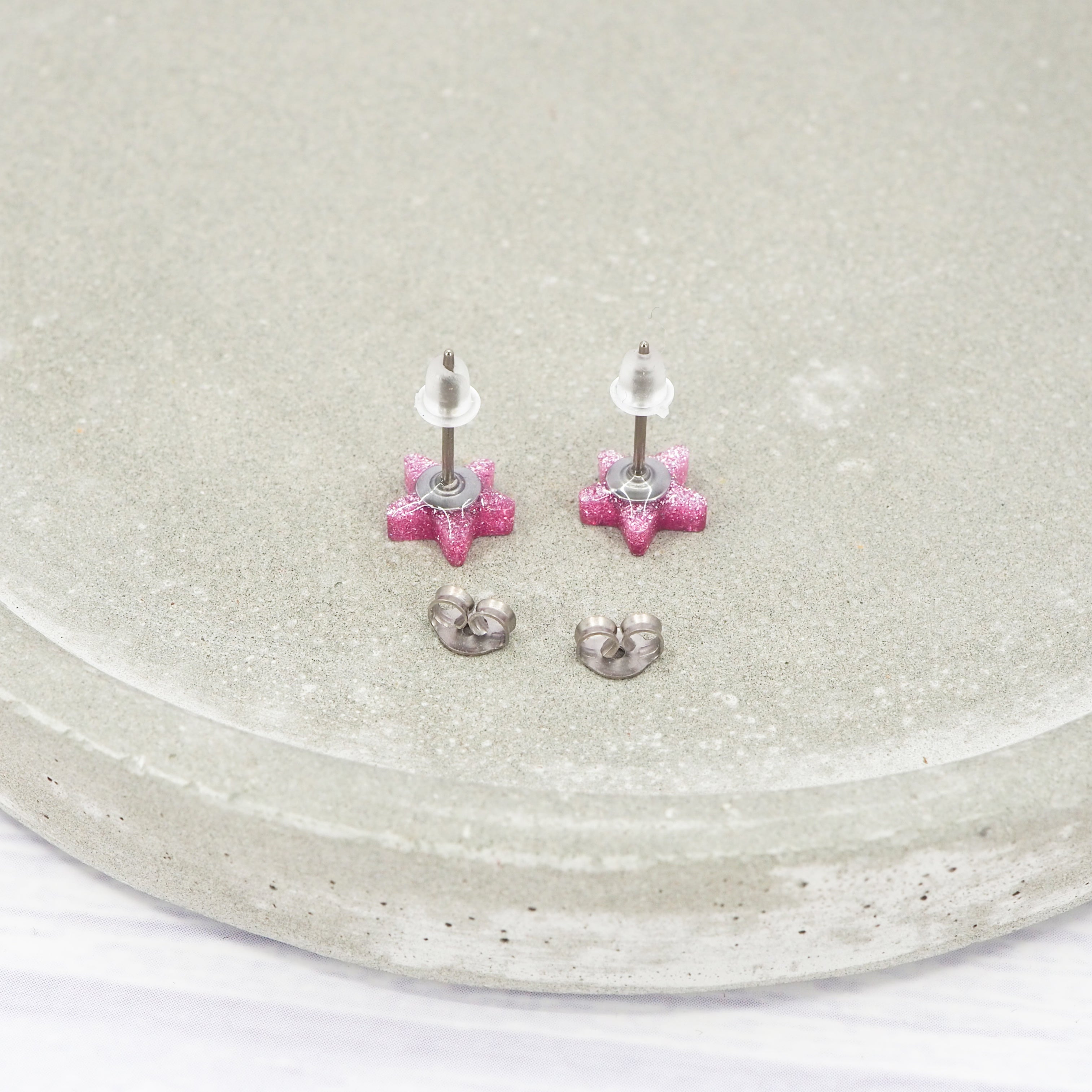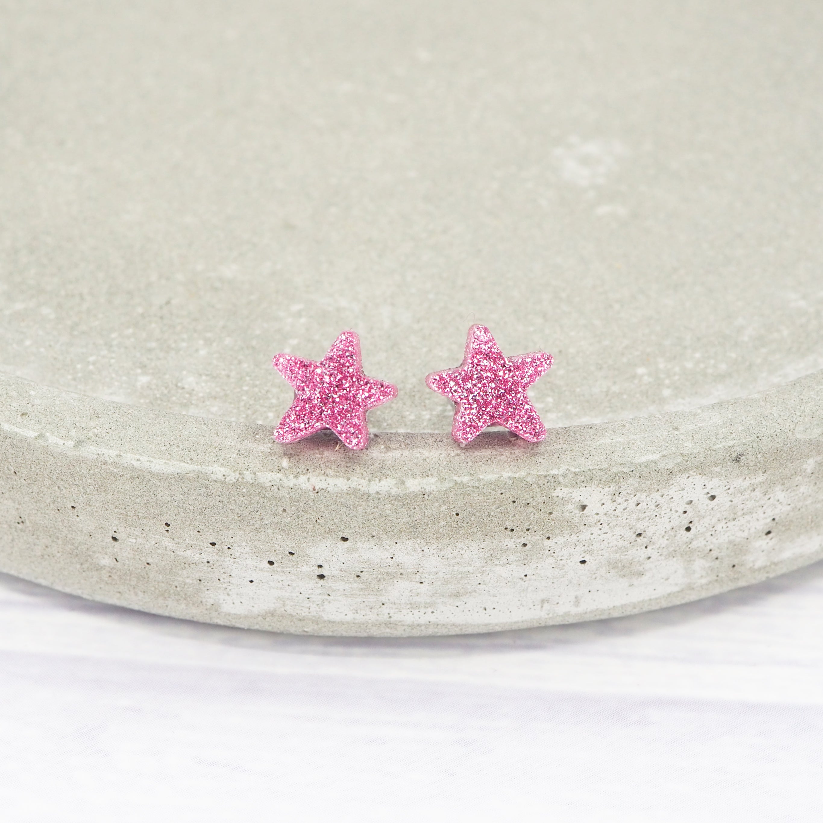 Pink glitter small star acrylic studs