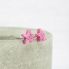 Pink Glitter Small Star Stud Earrings
