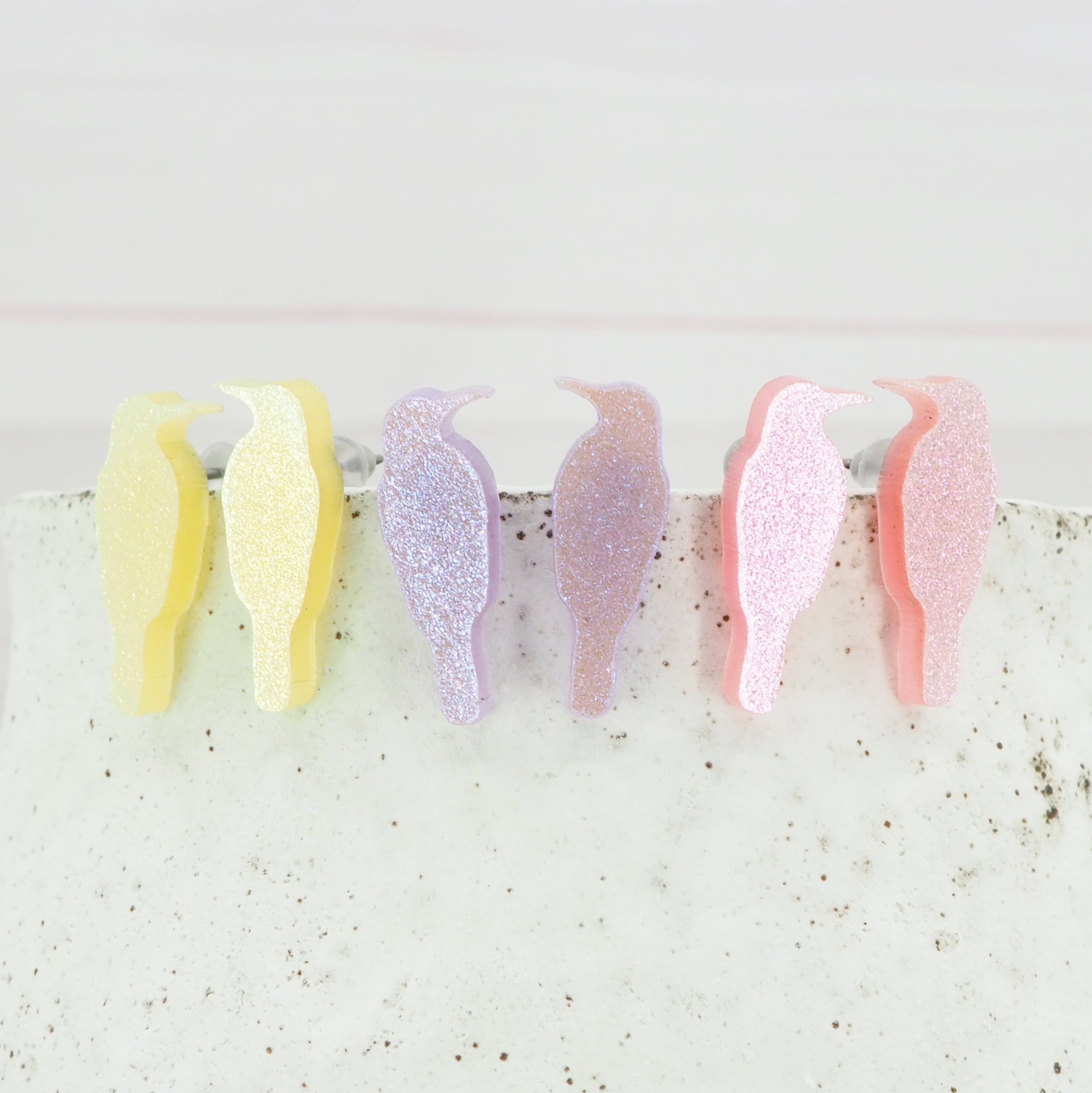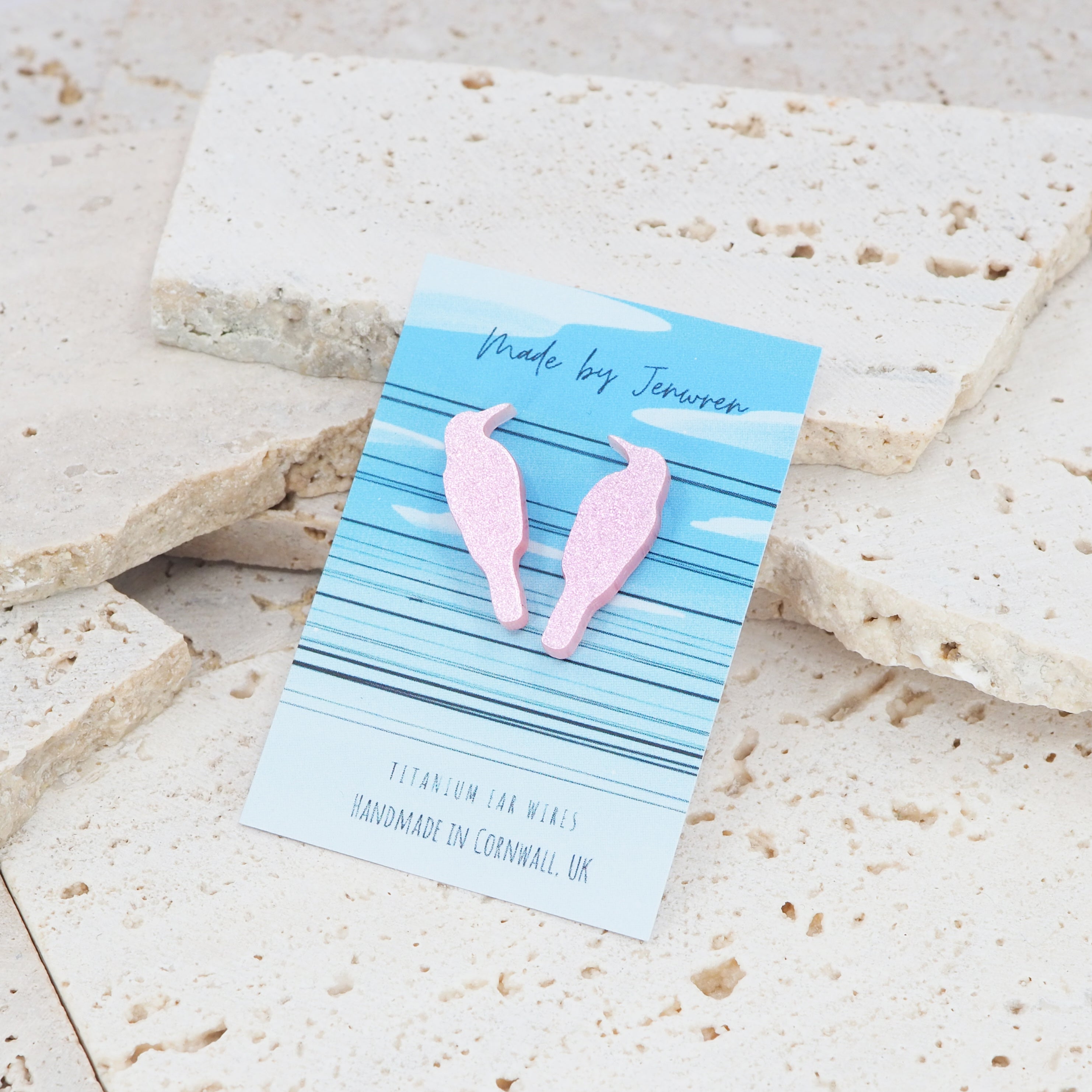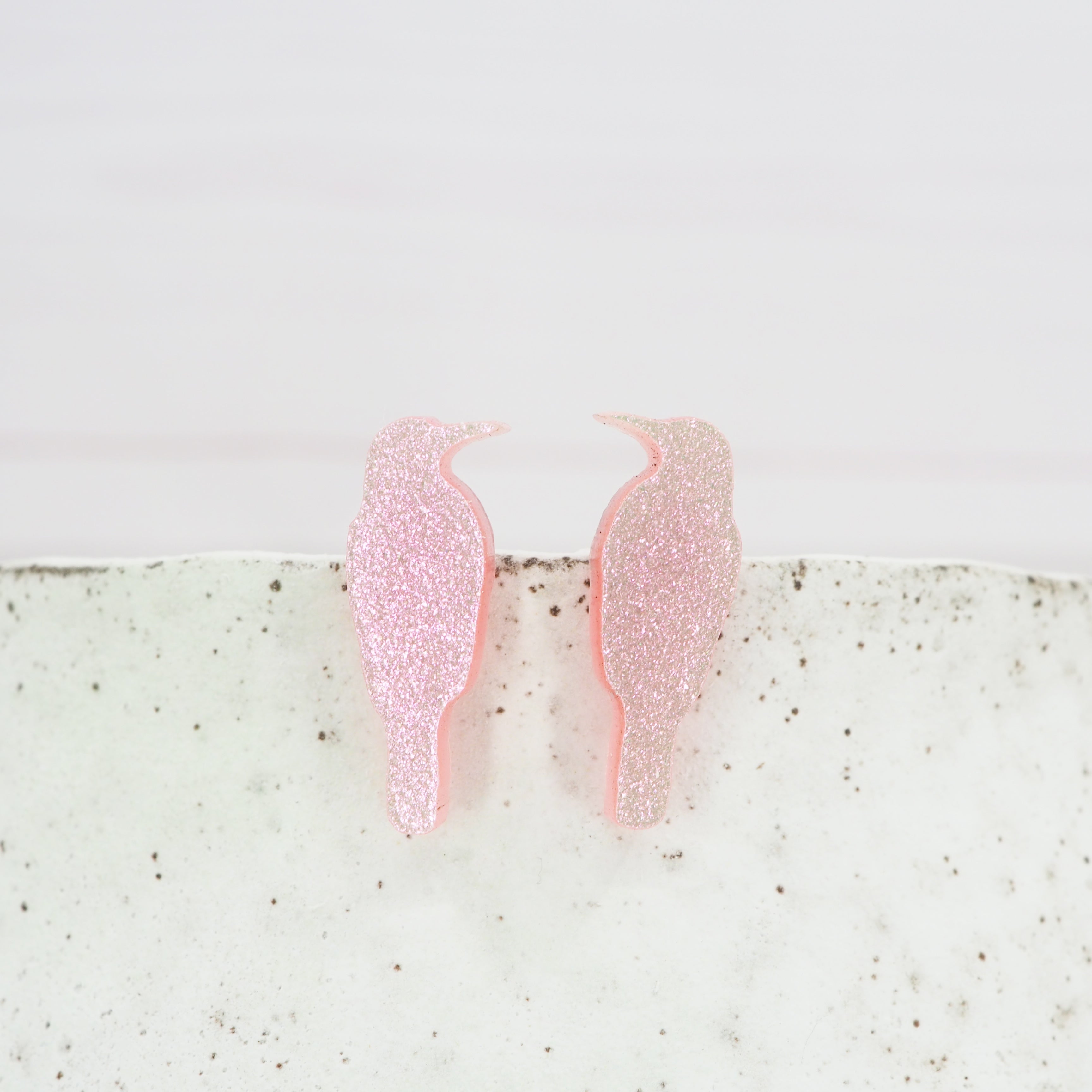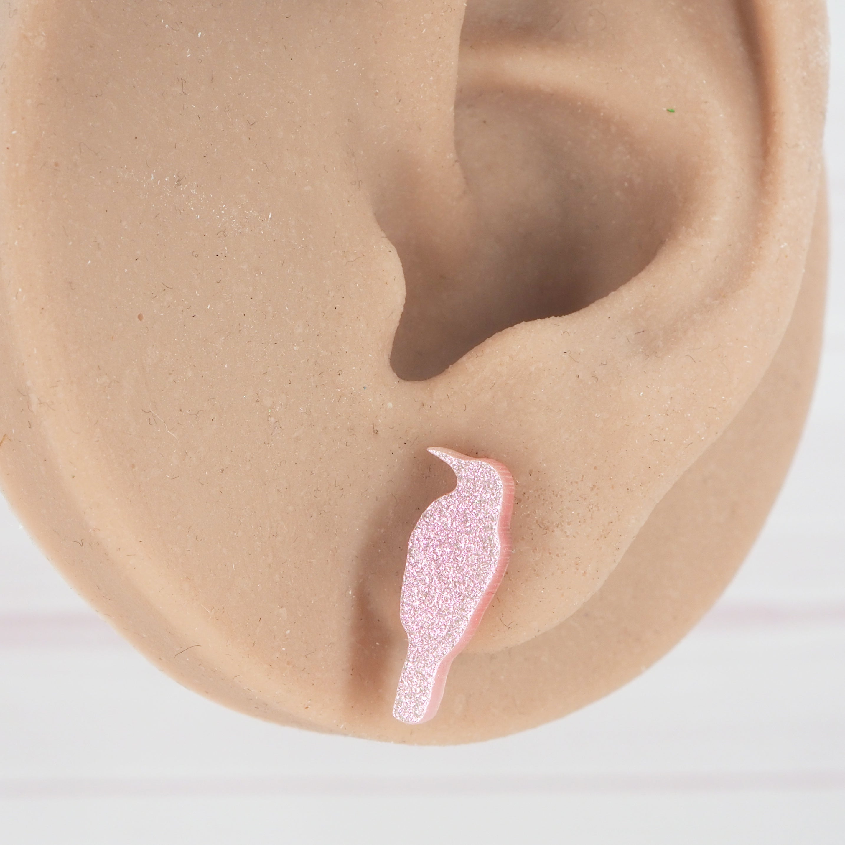 Pink iridescent crows with 0.7mm grade 1 titanium ear stems.