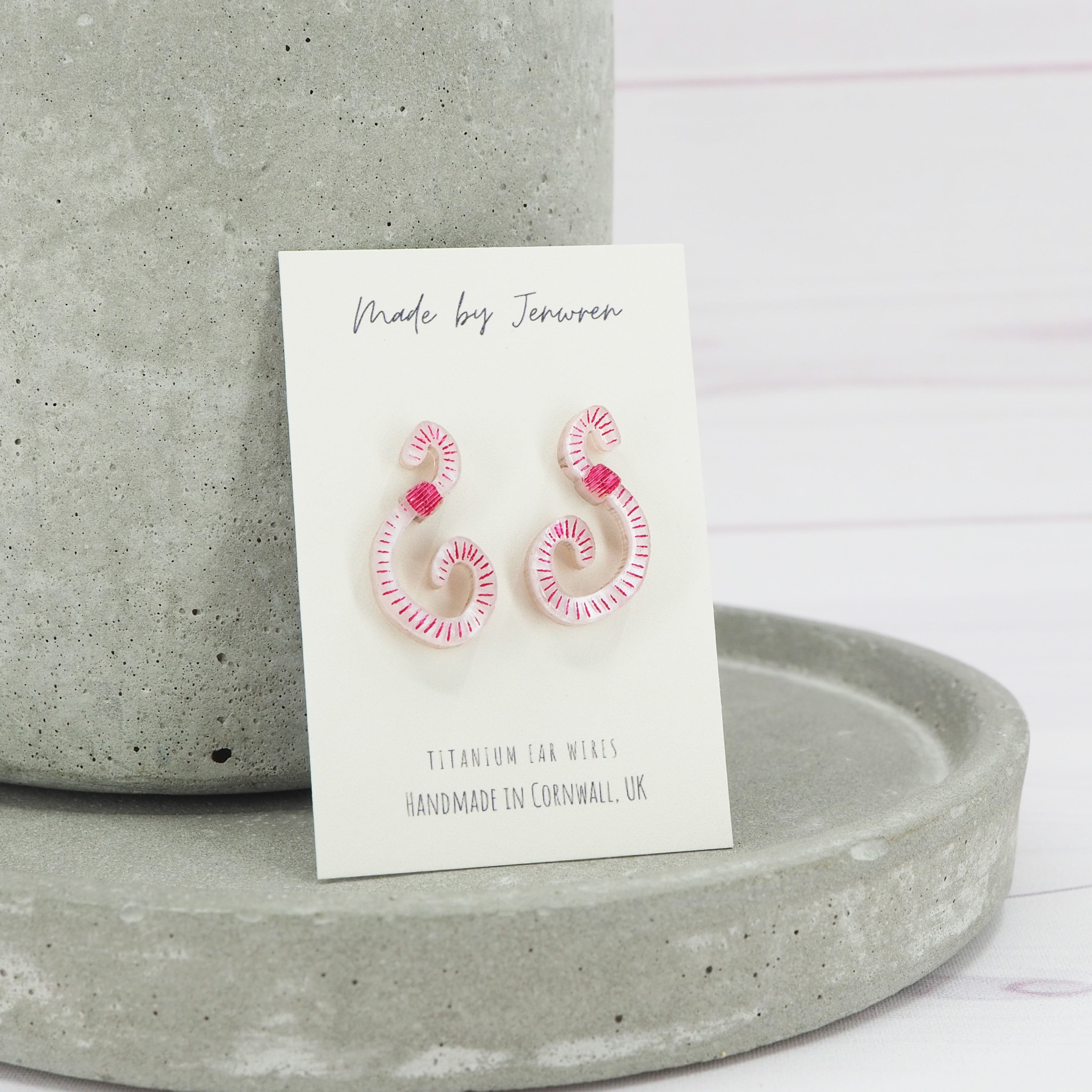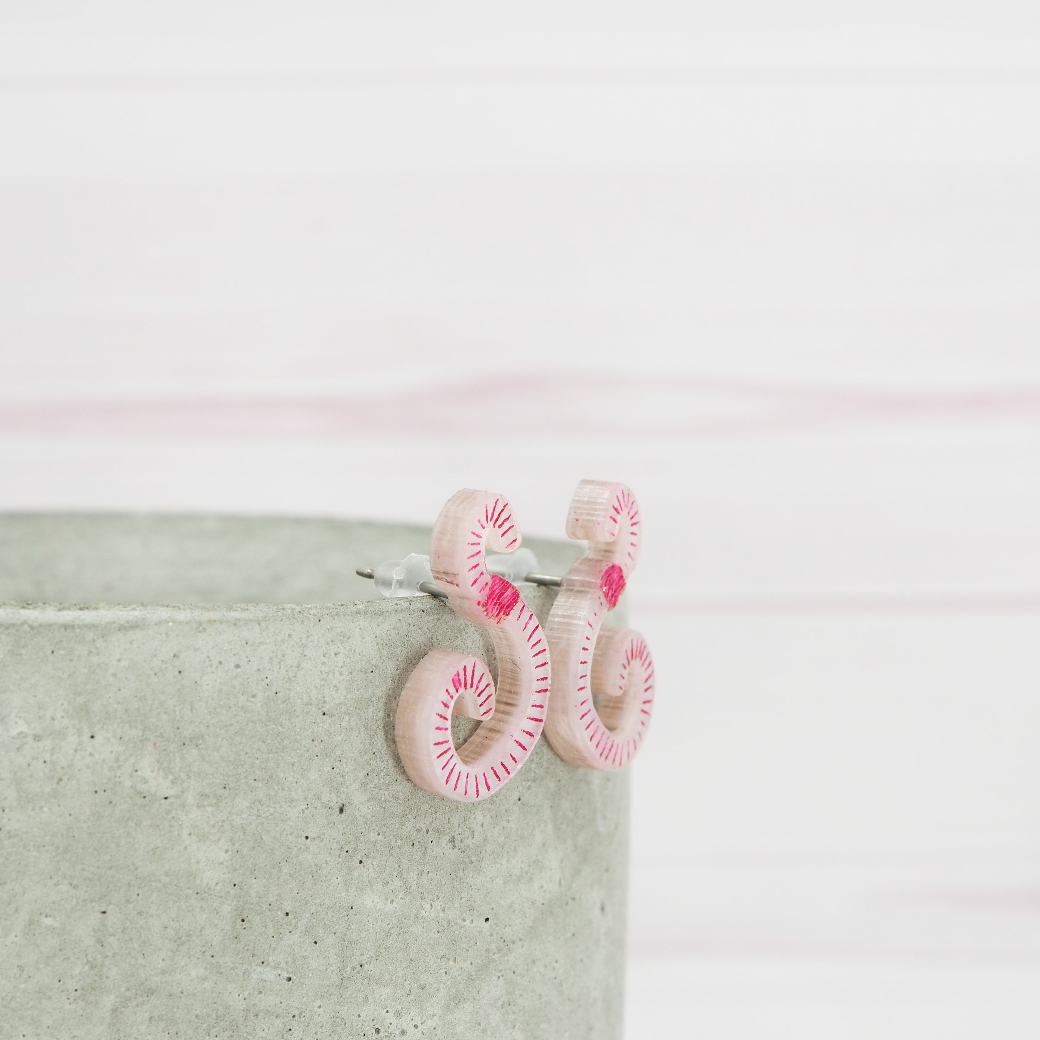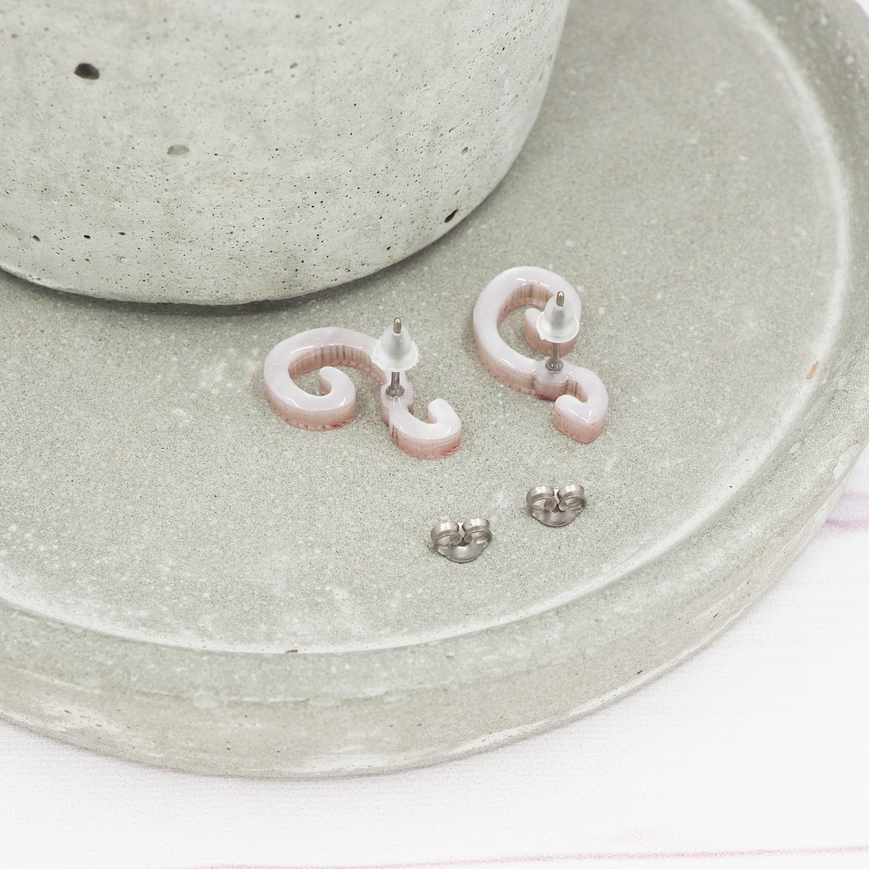 Worm pink marble stud earrings.
