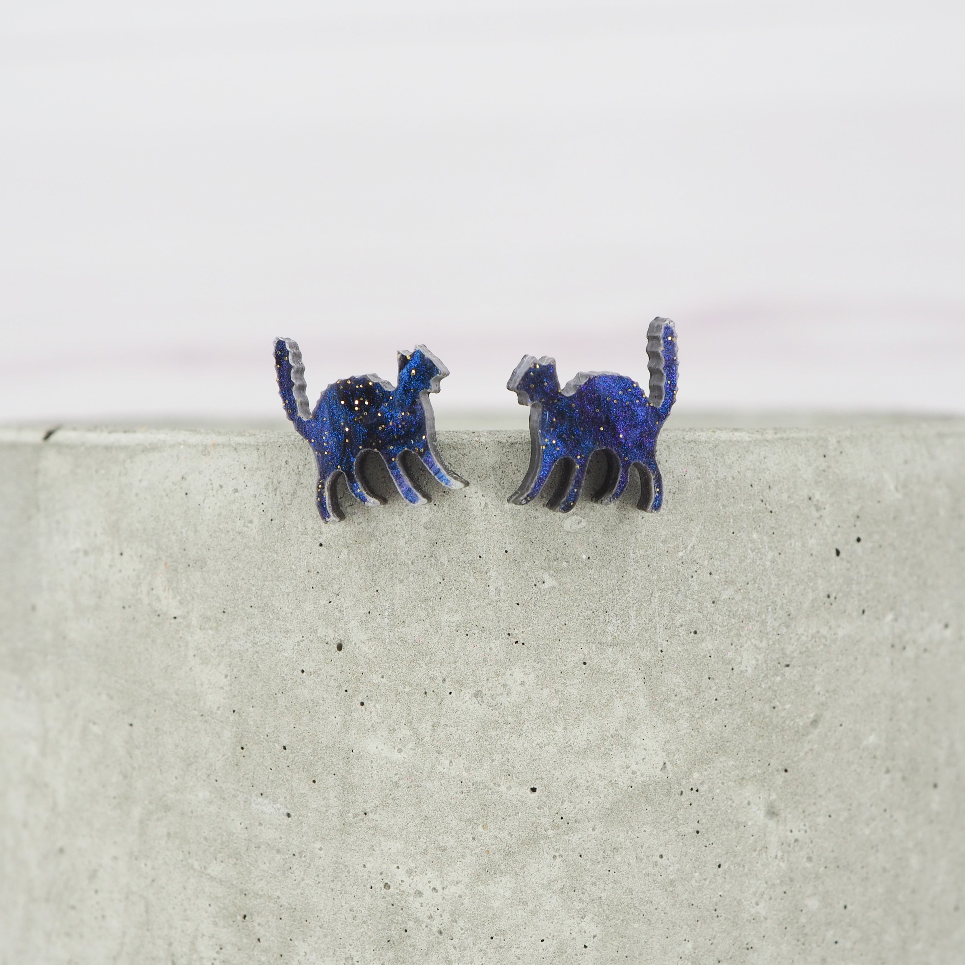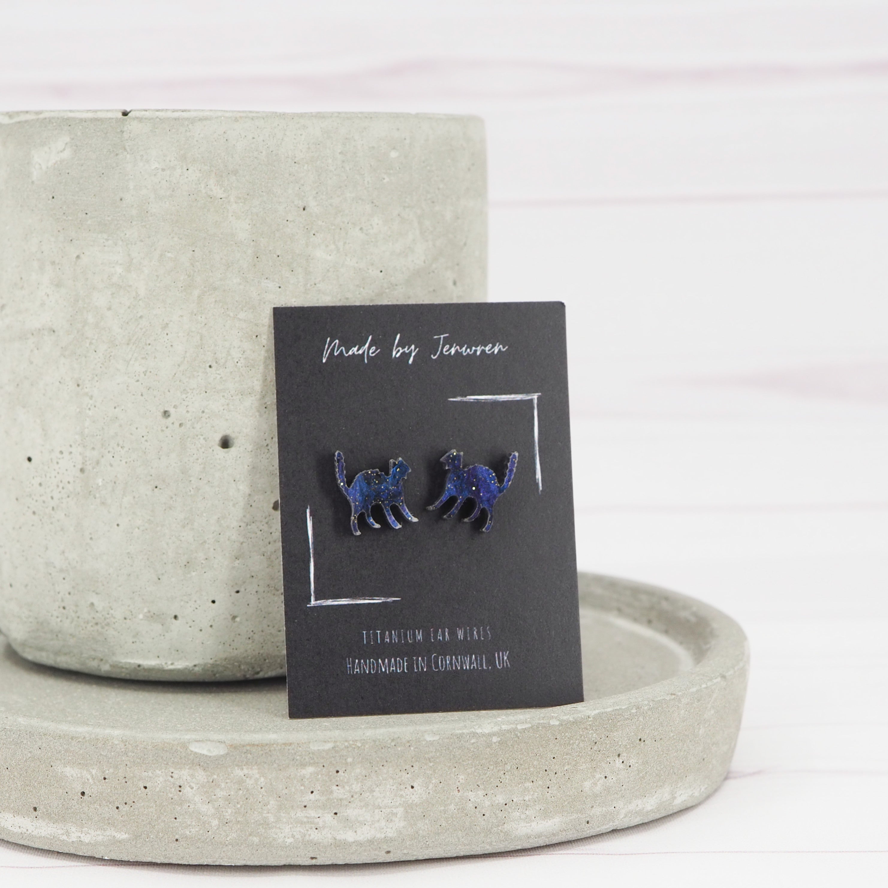 Purple galaxy acrylic cat studs. 0.7mm Grade 1 titanium ear stems.