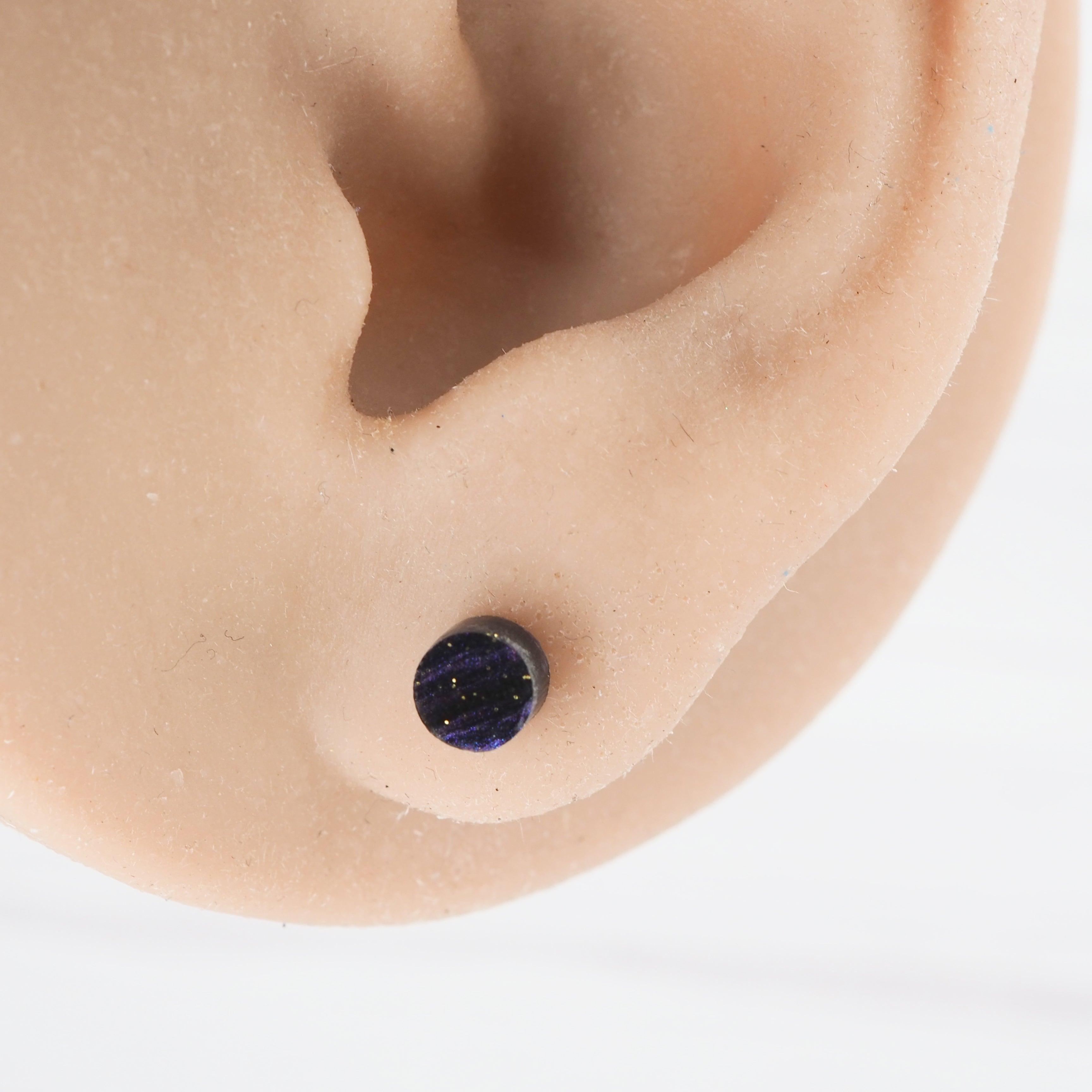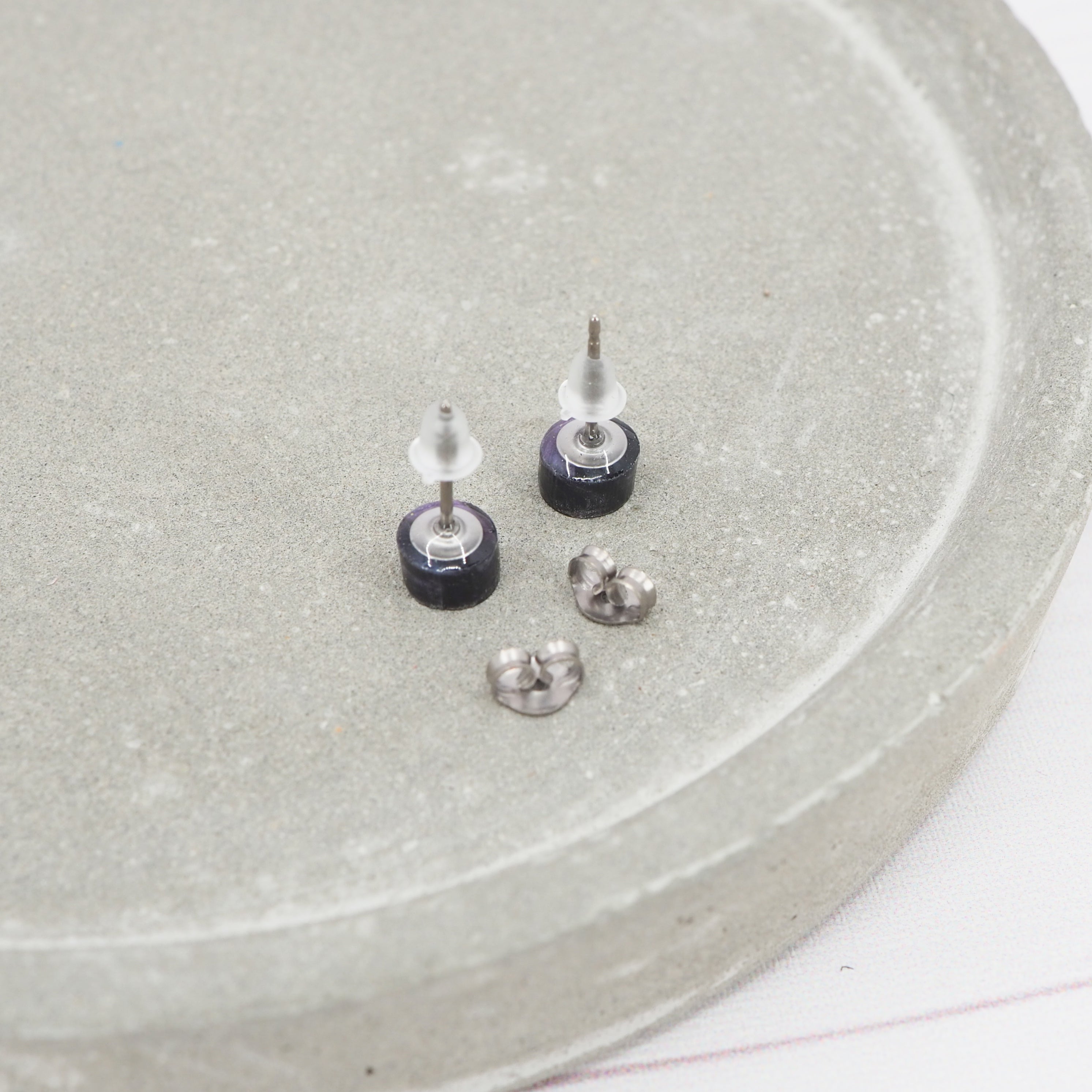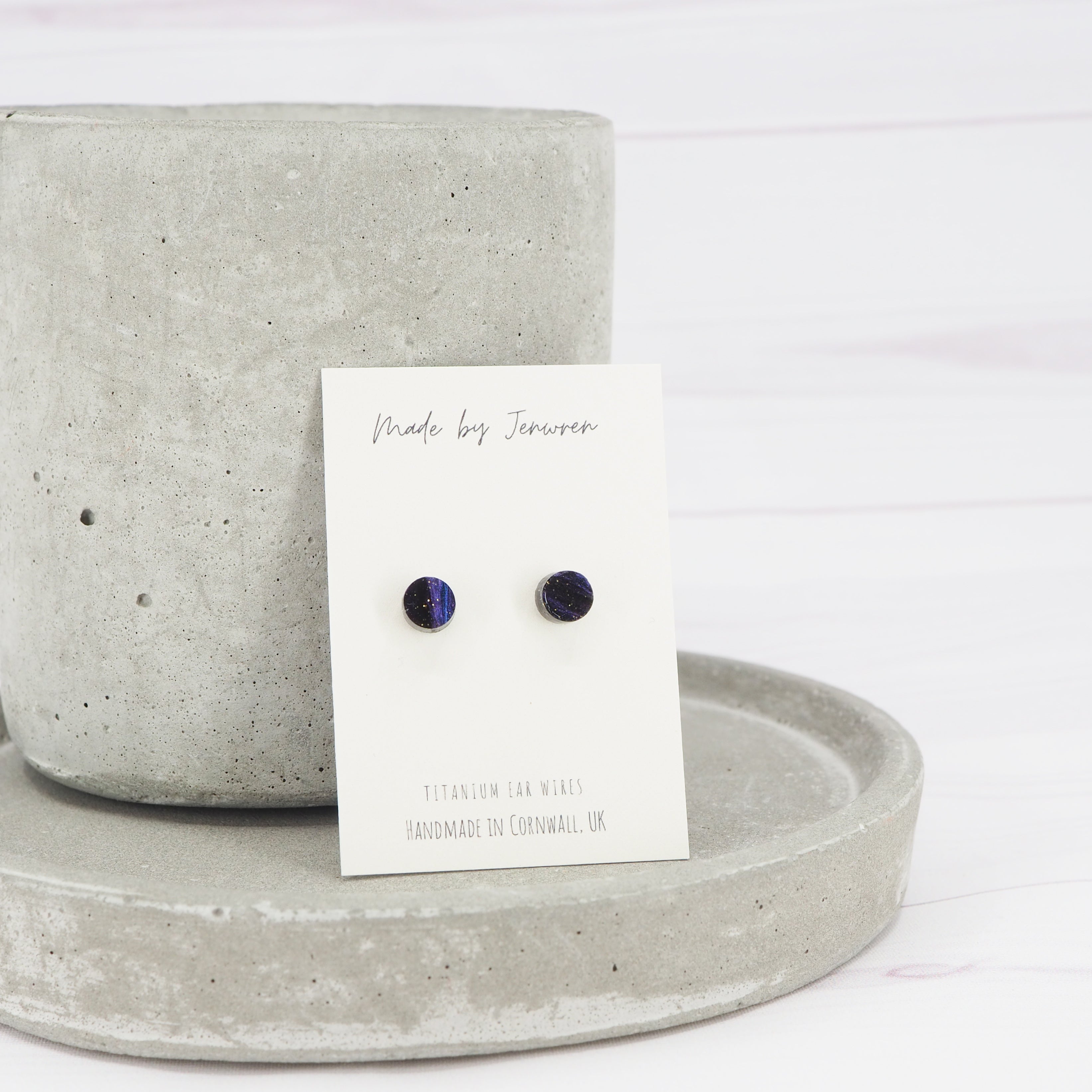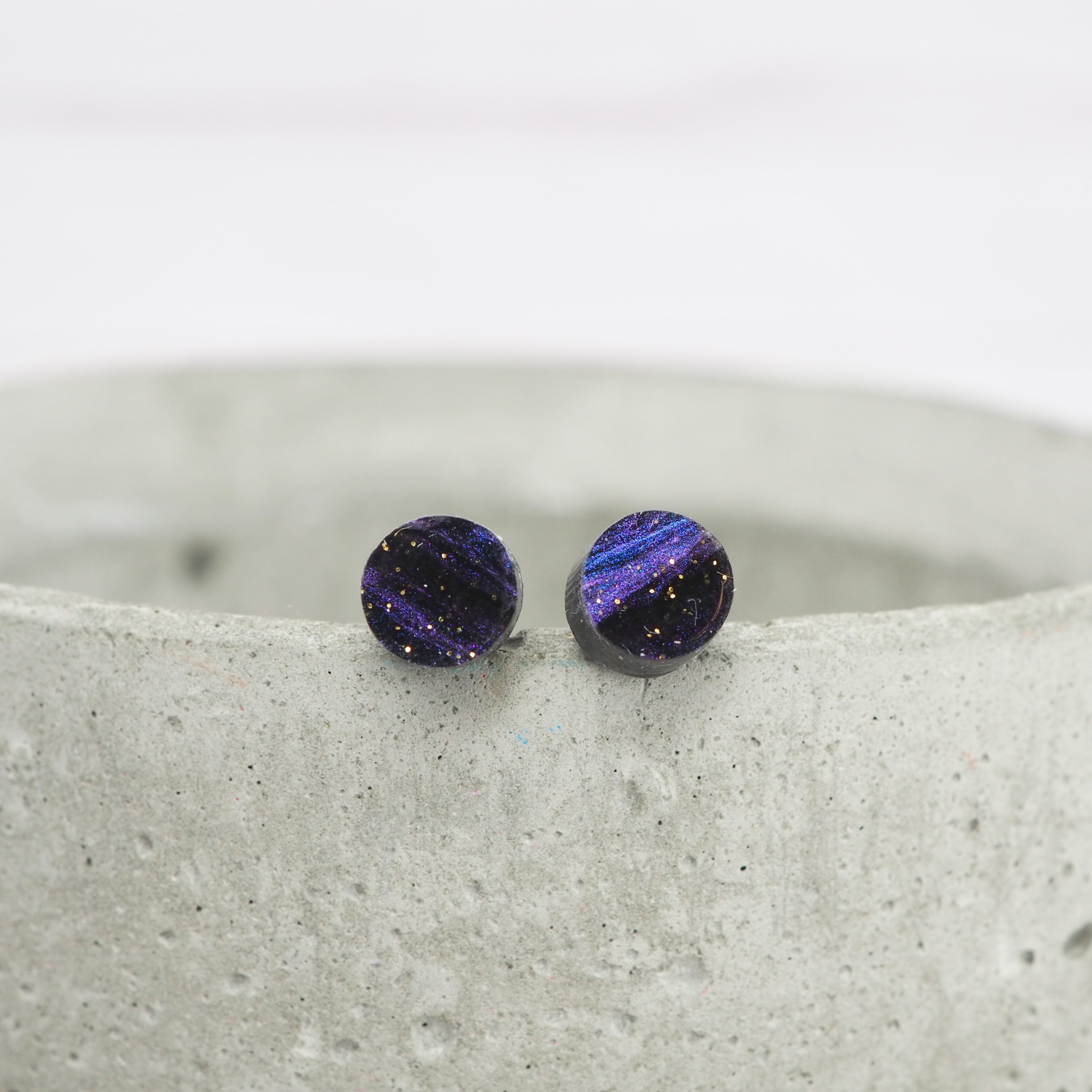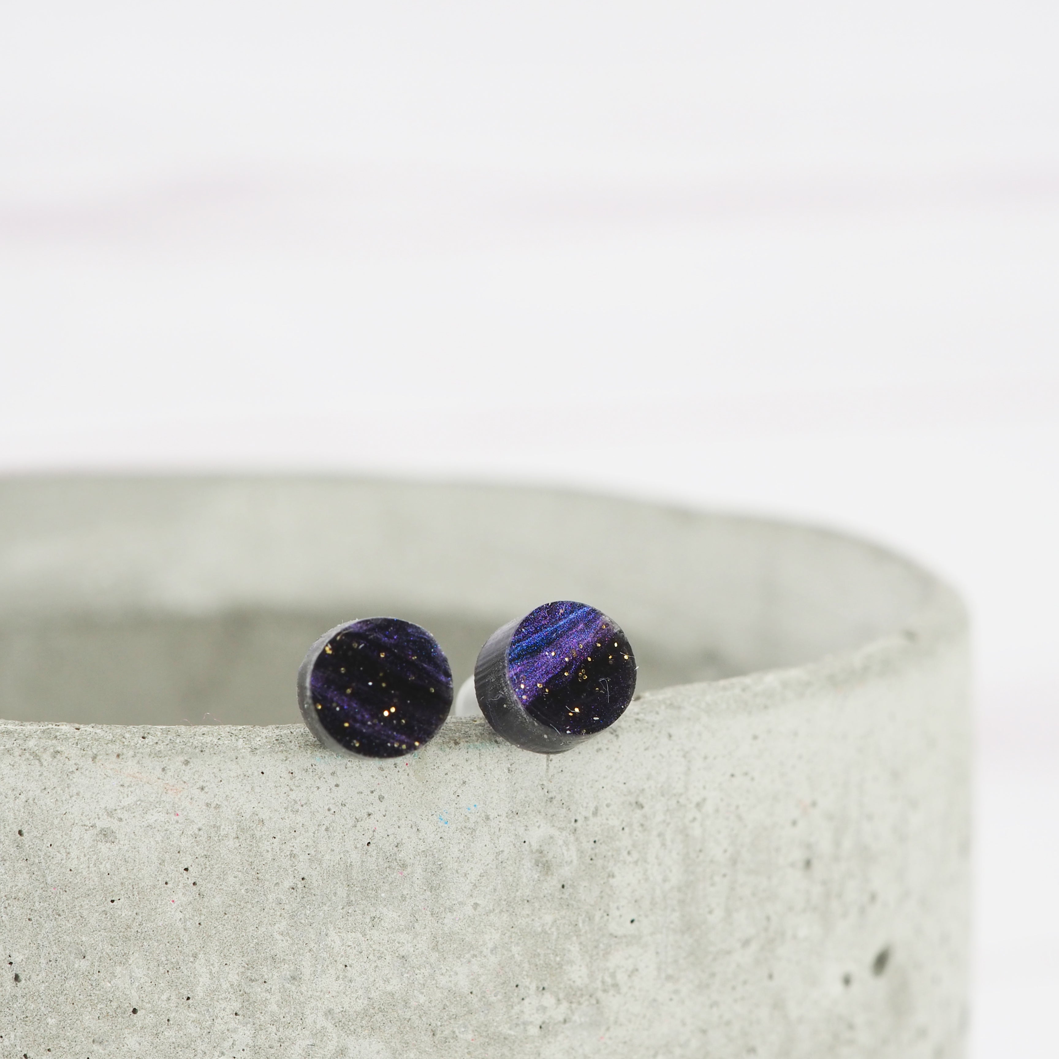 Purple galaxy acrylic dot studs with 0.7mm ear stems.