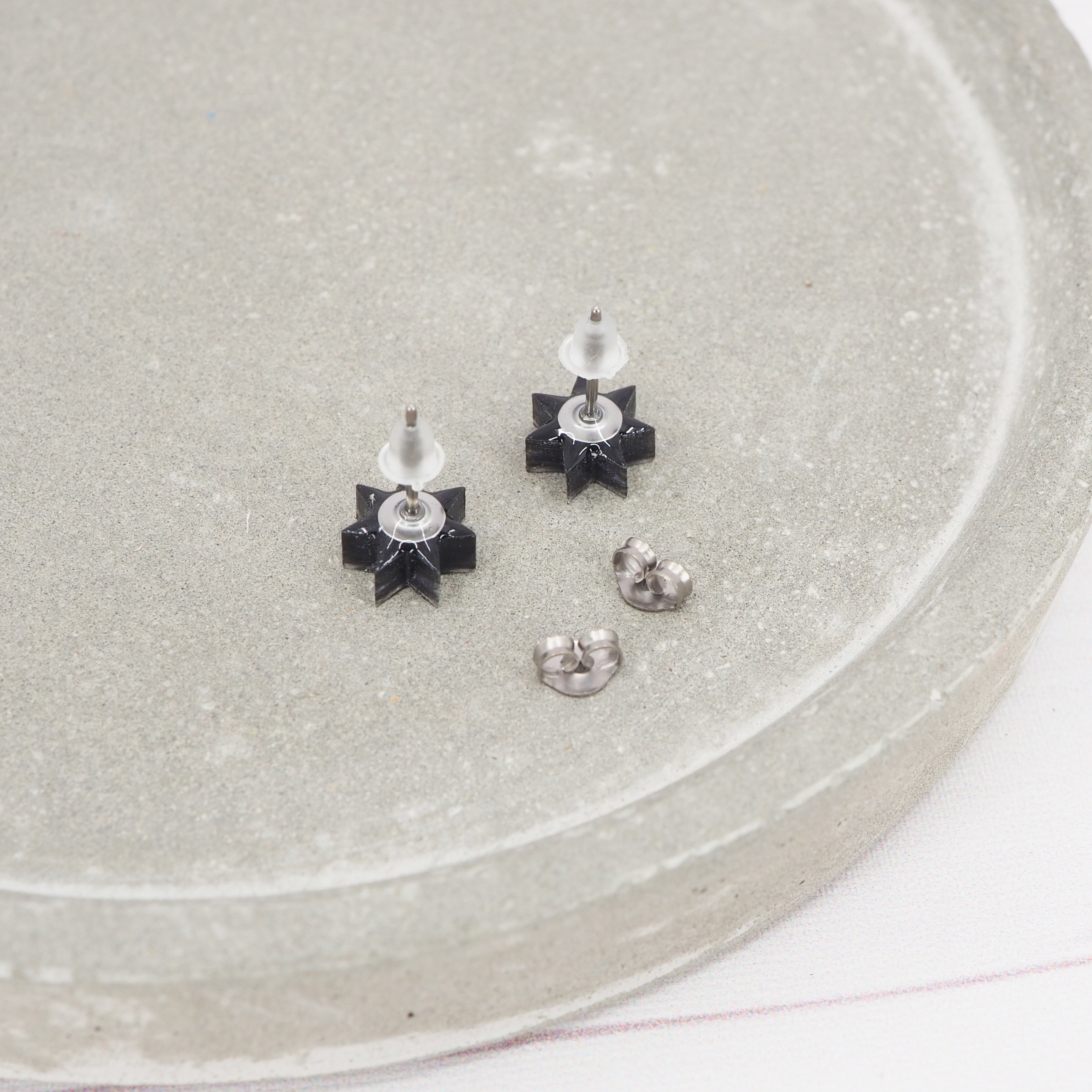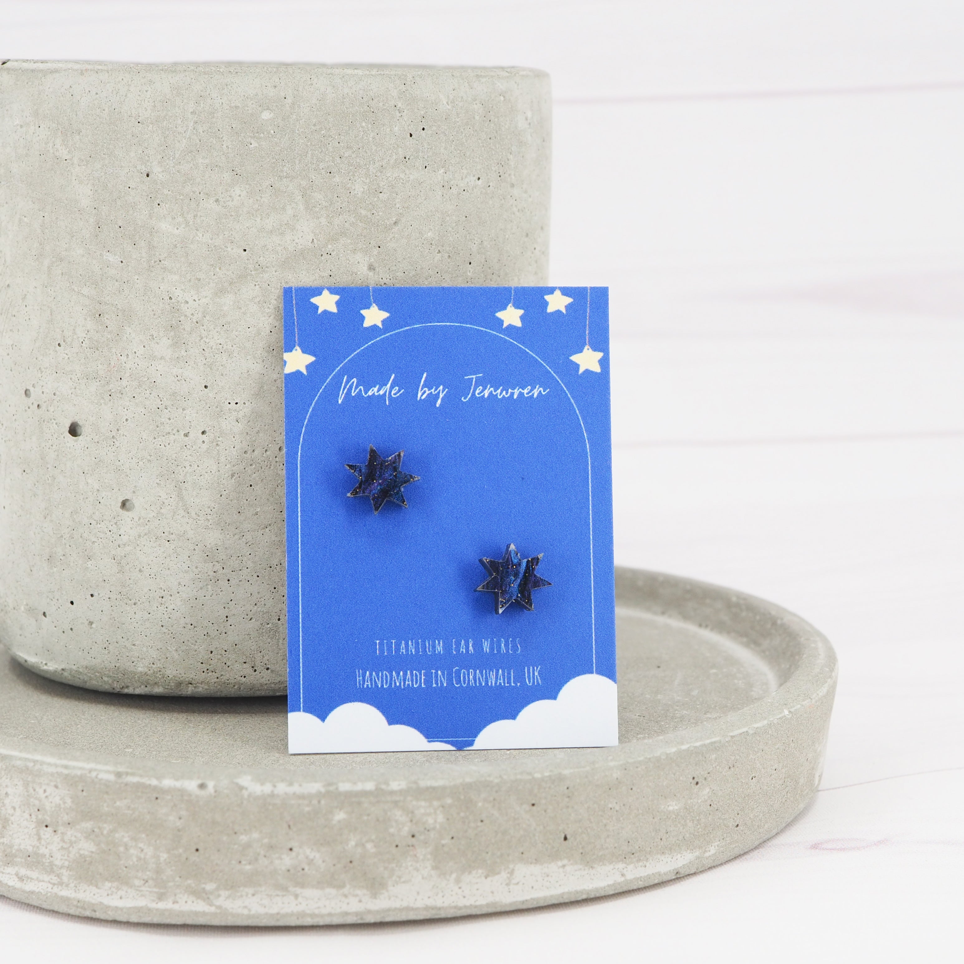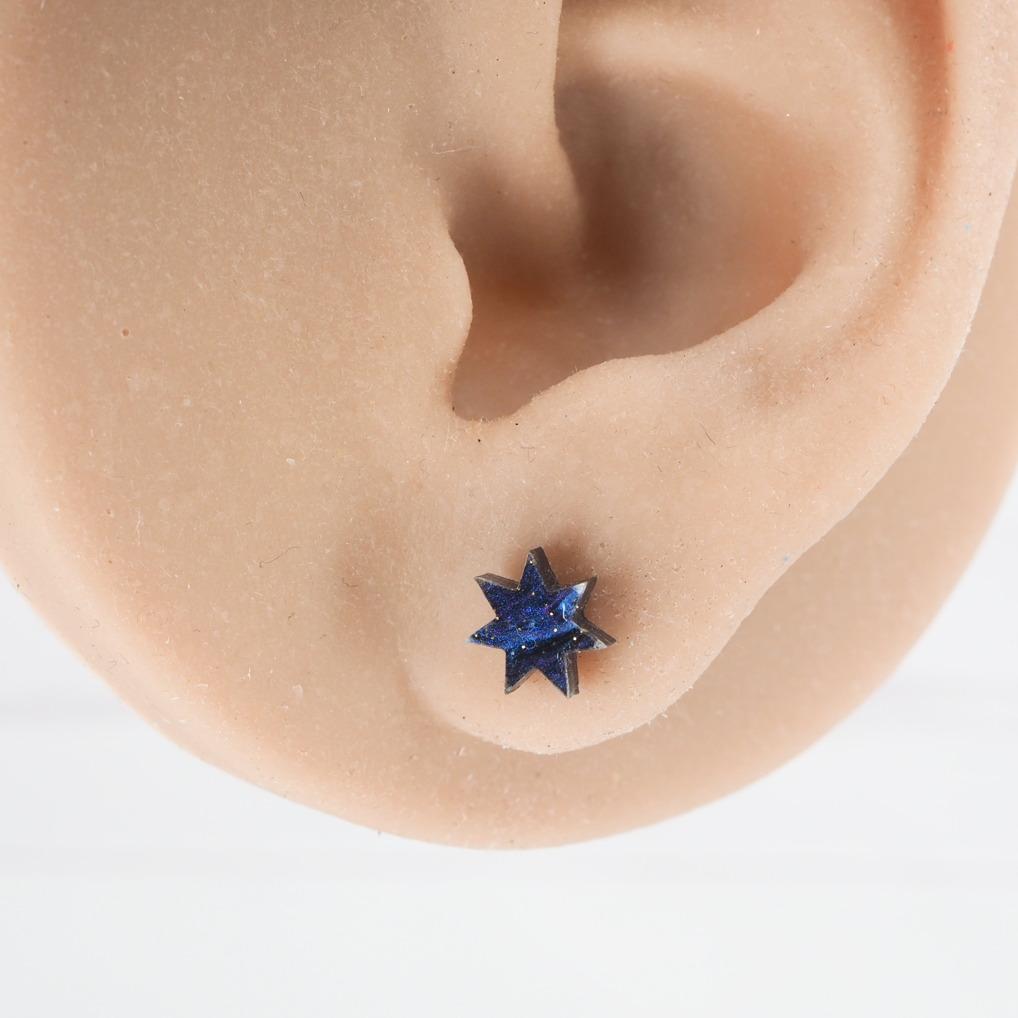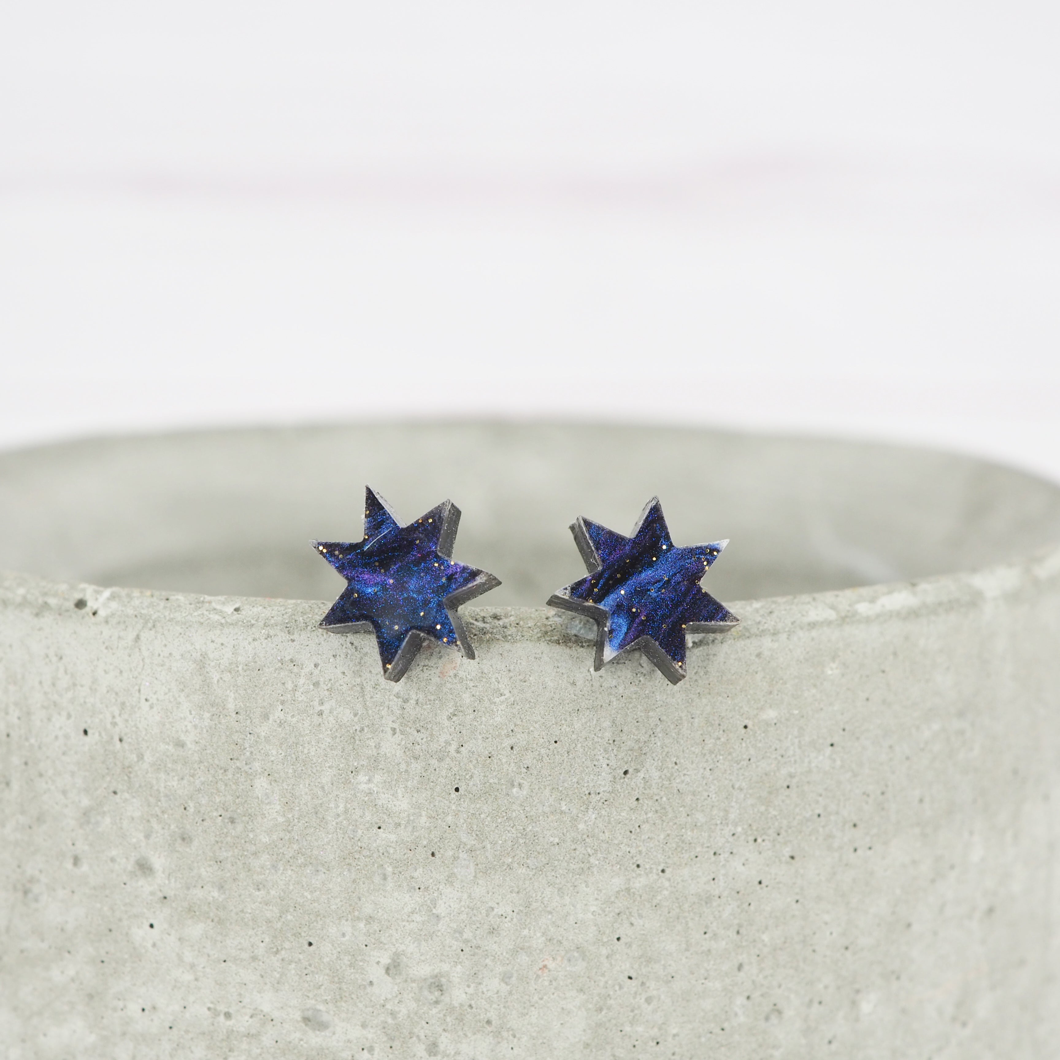 Purple galaxy glitter star acrylic studs with 0.7mm ear stems.