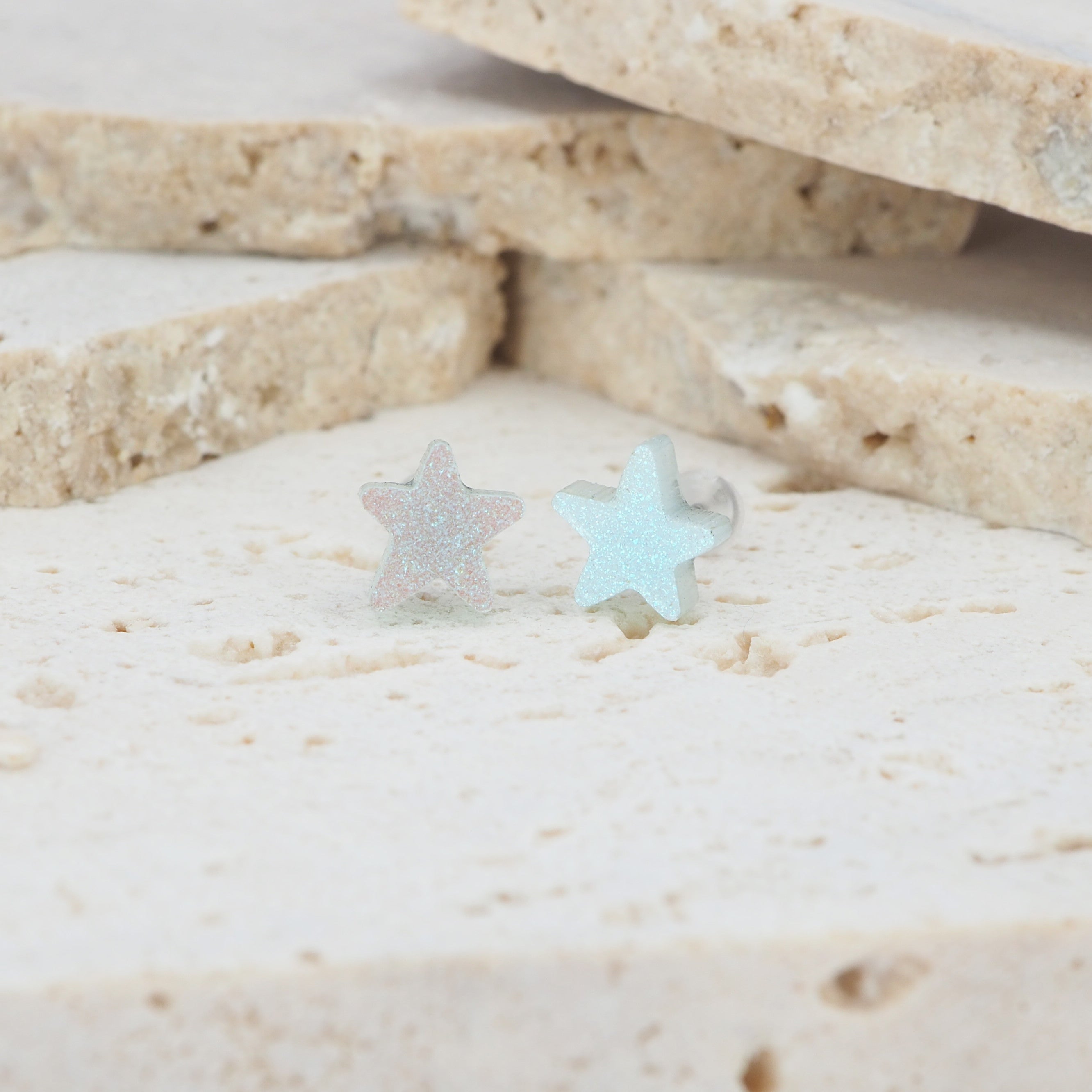One pair of Blue lustre Small Star Stud Earrings