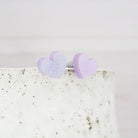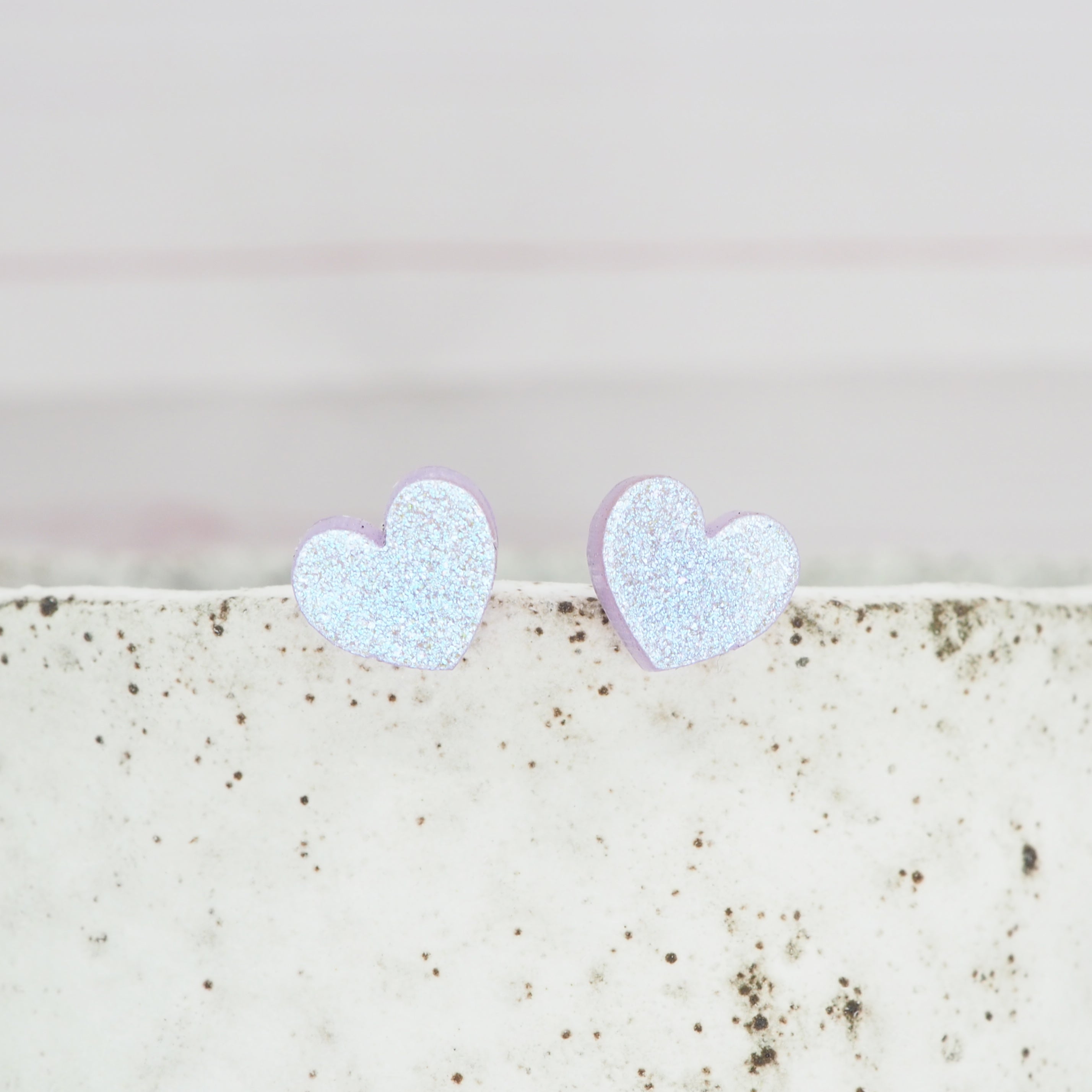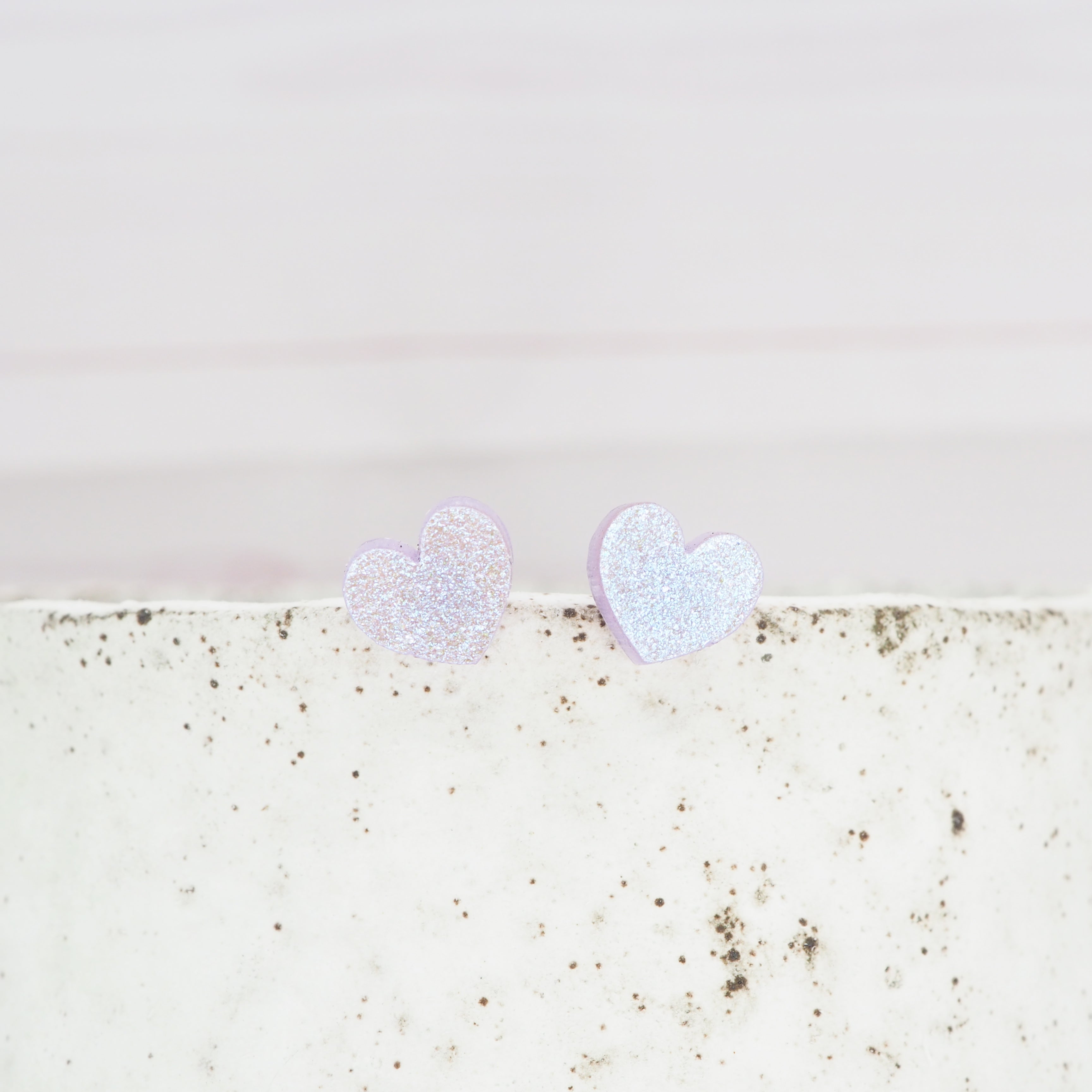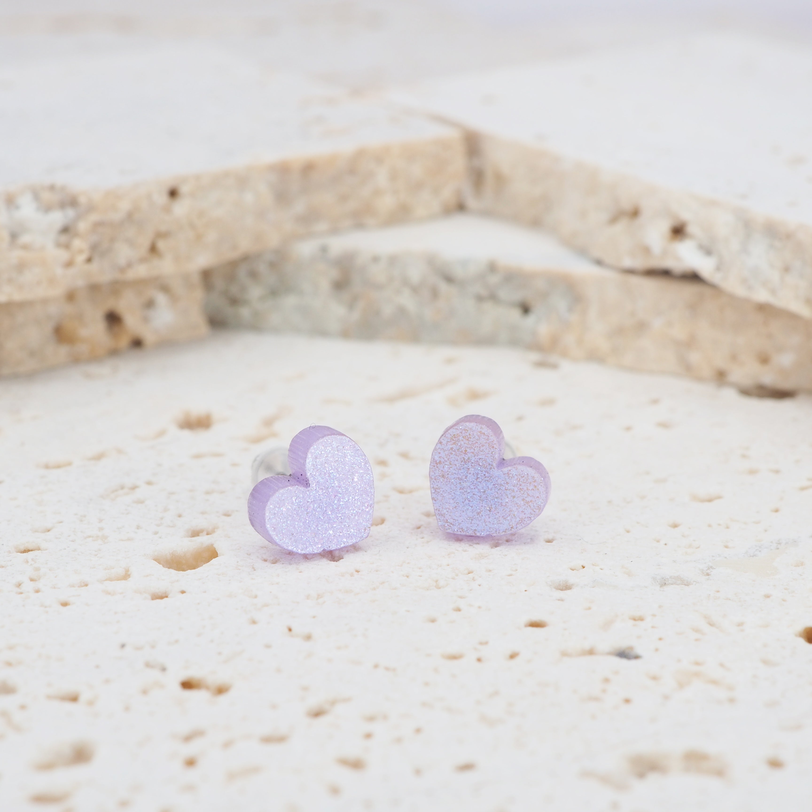 Small Lilac iridescent heart acrylic studs with 0.7mm ear stems.