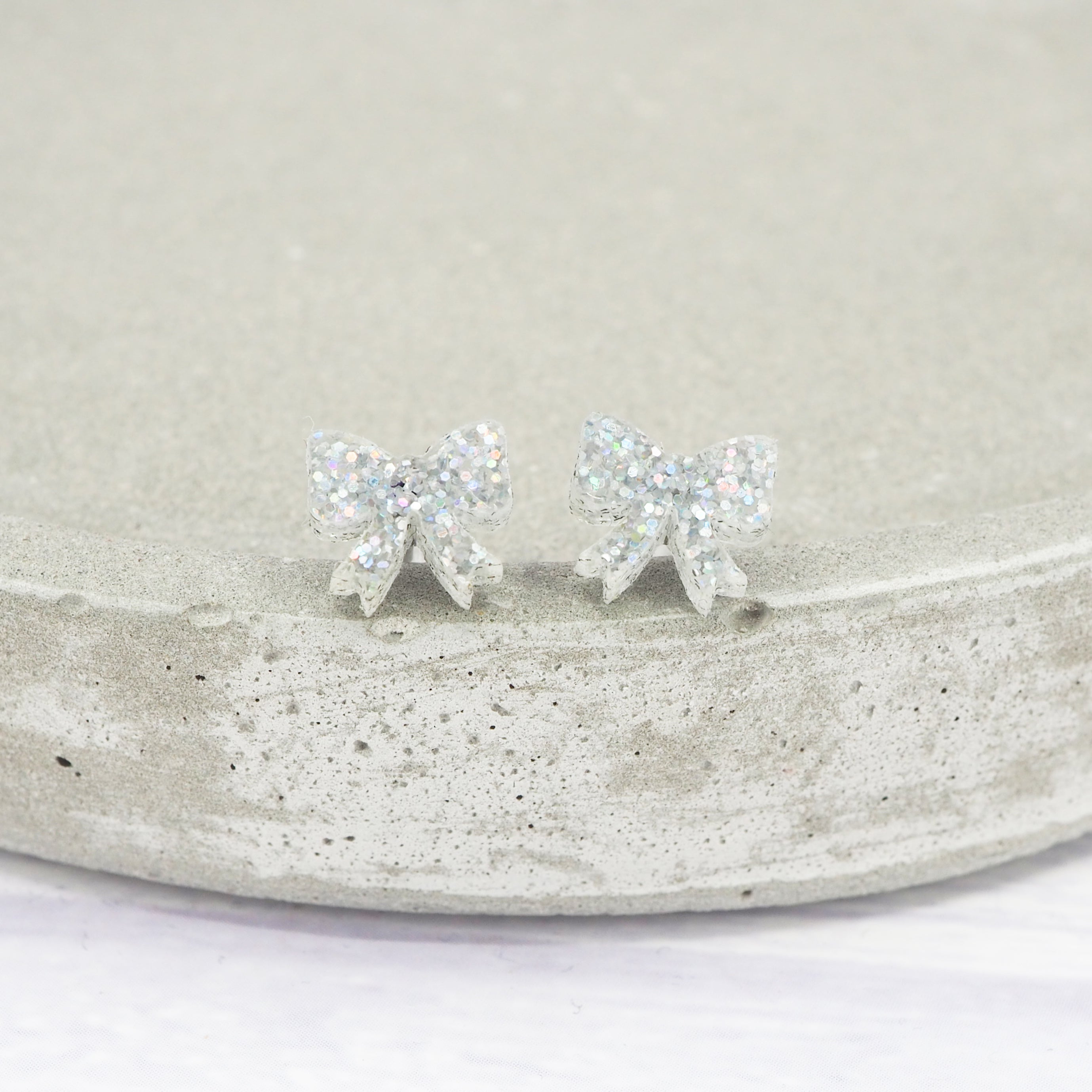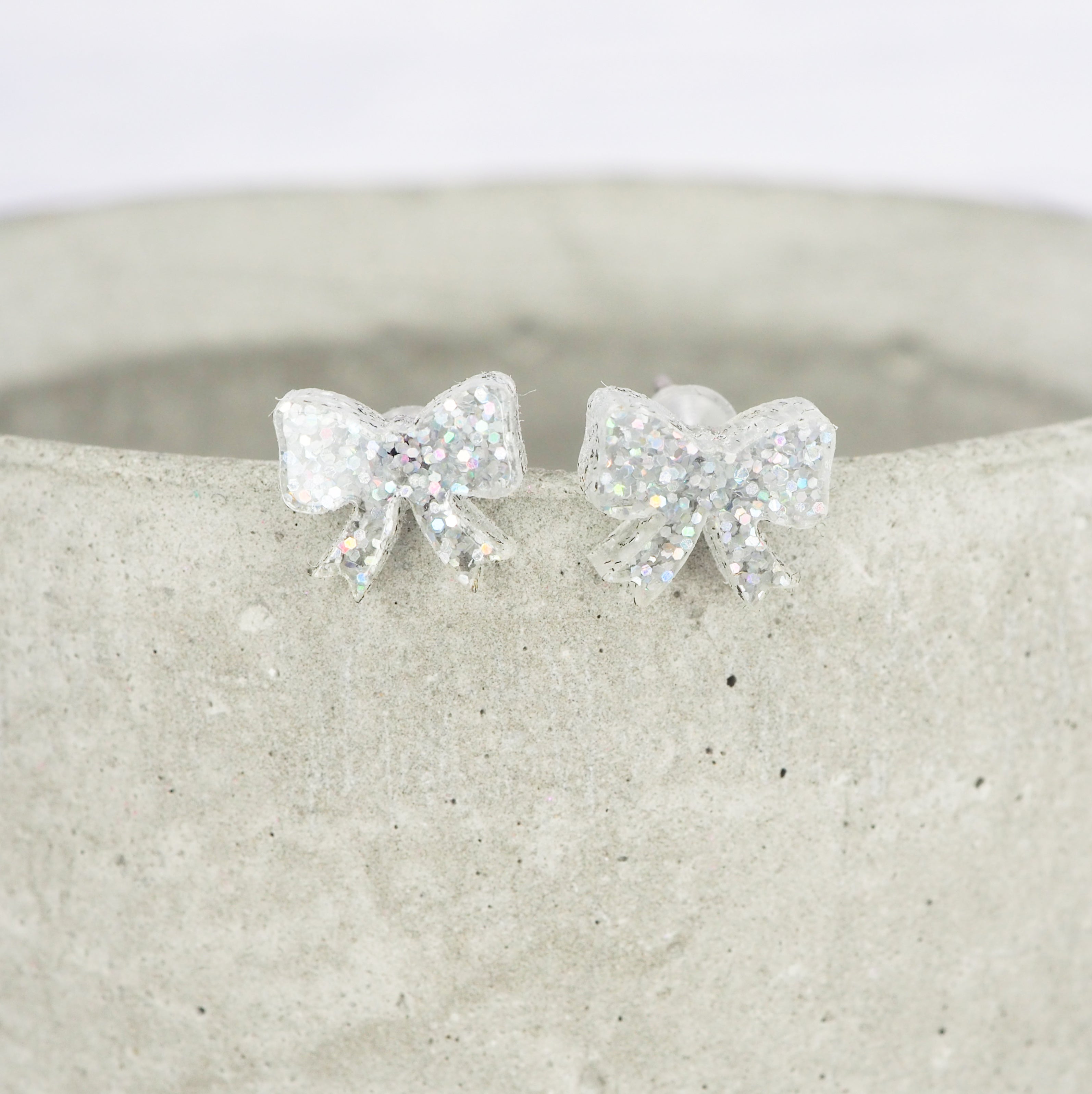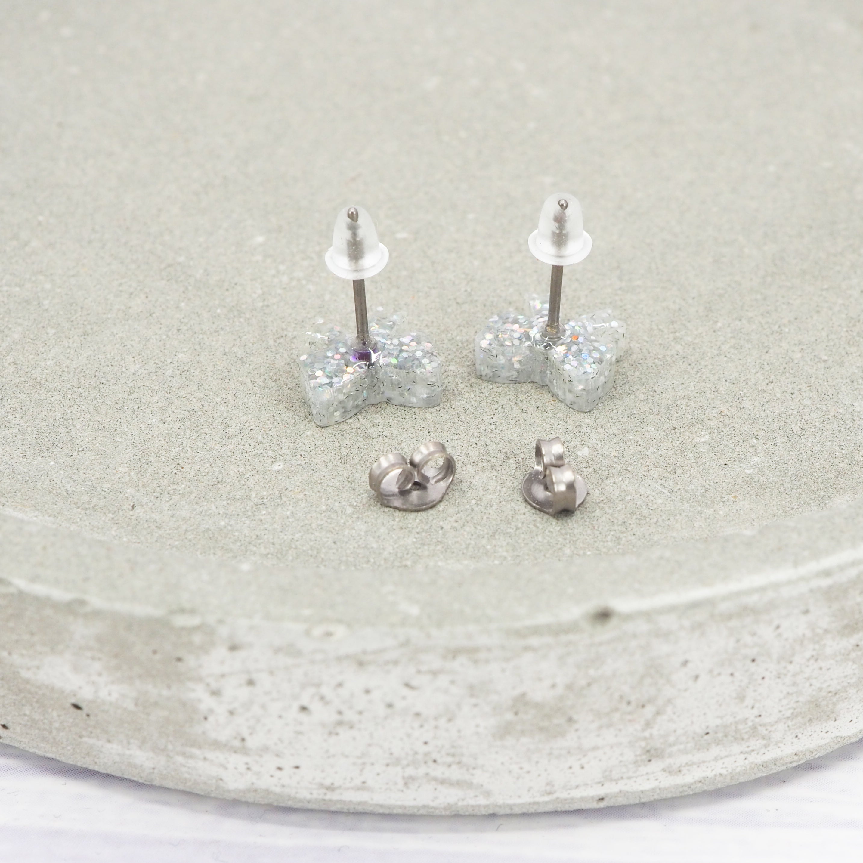 Small Silver holographic glitter bow studs