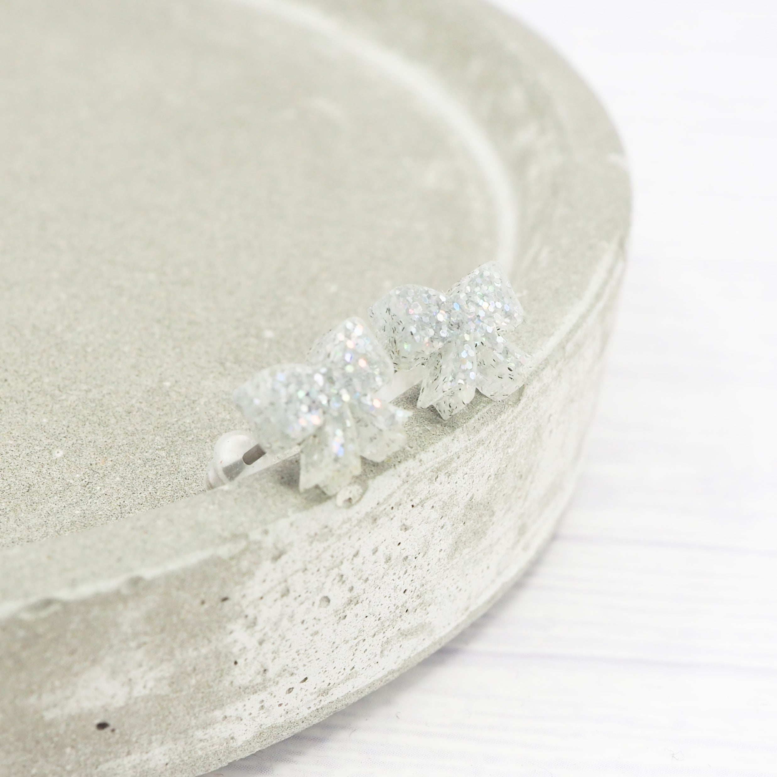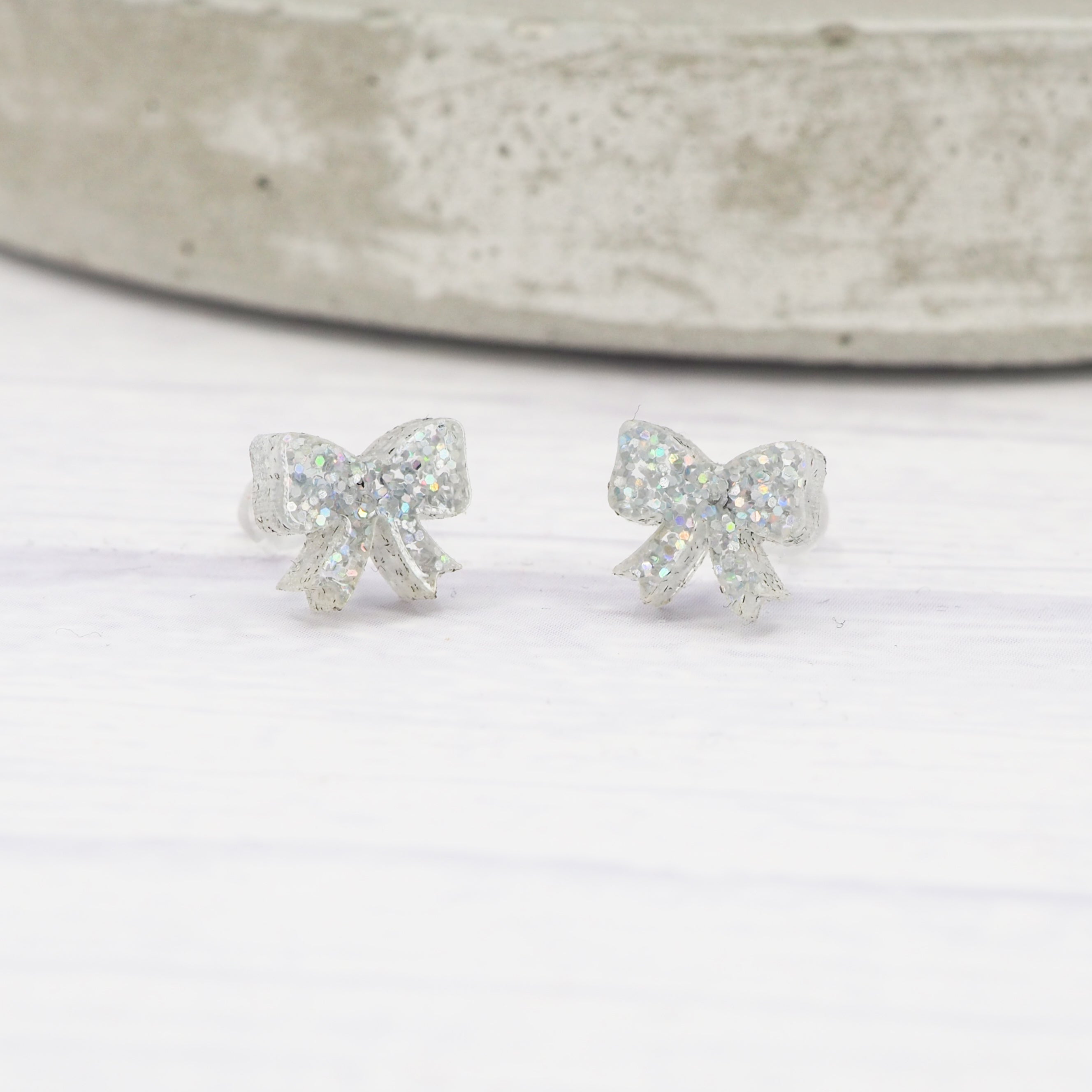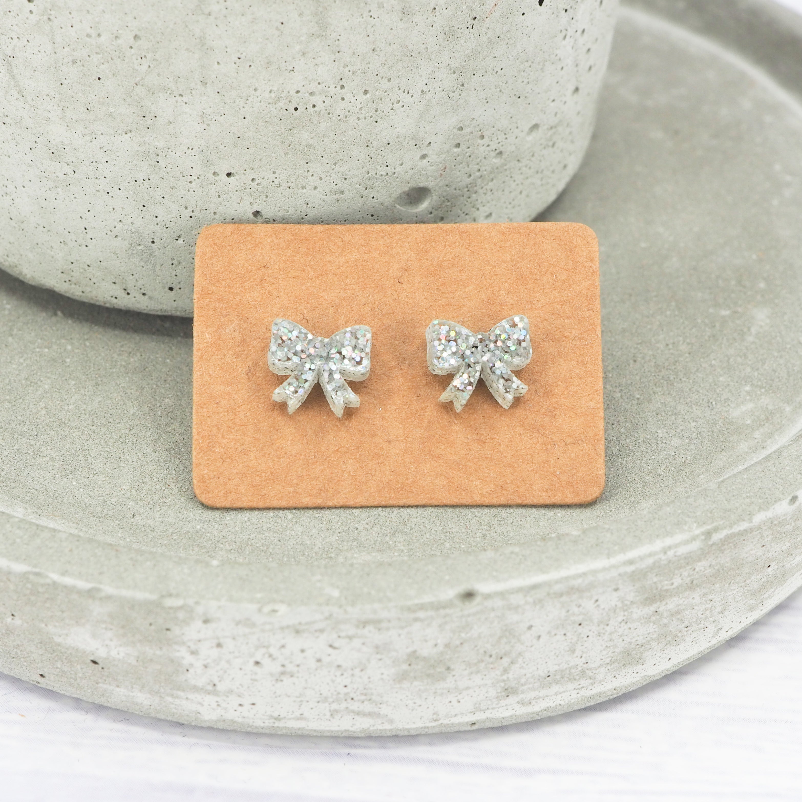 Small Silver holographic glitter bow studs