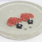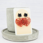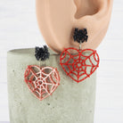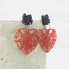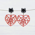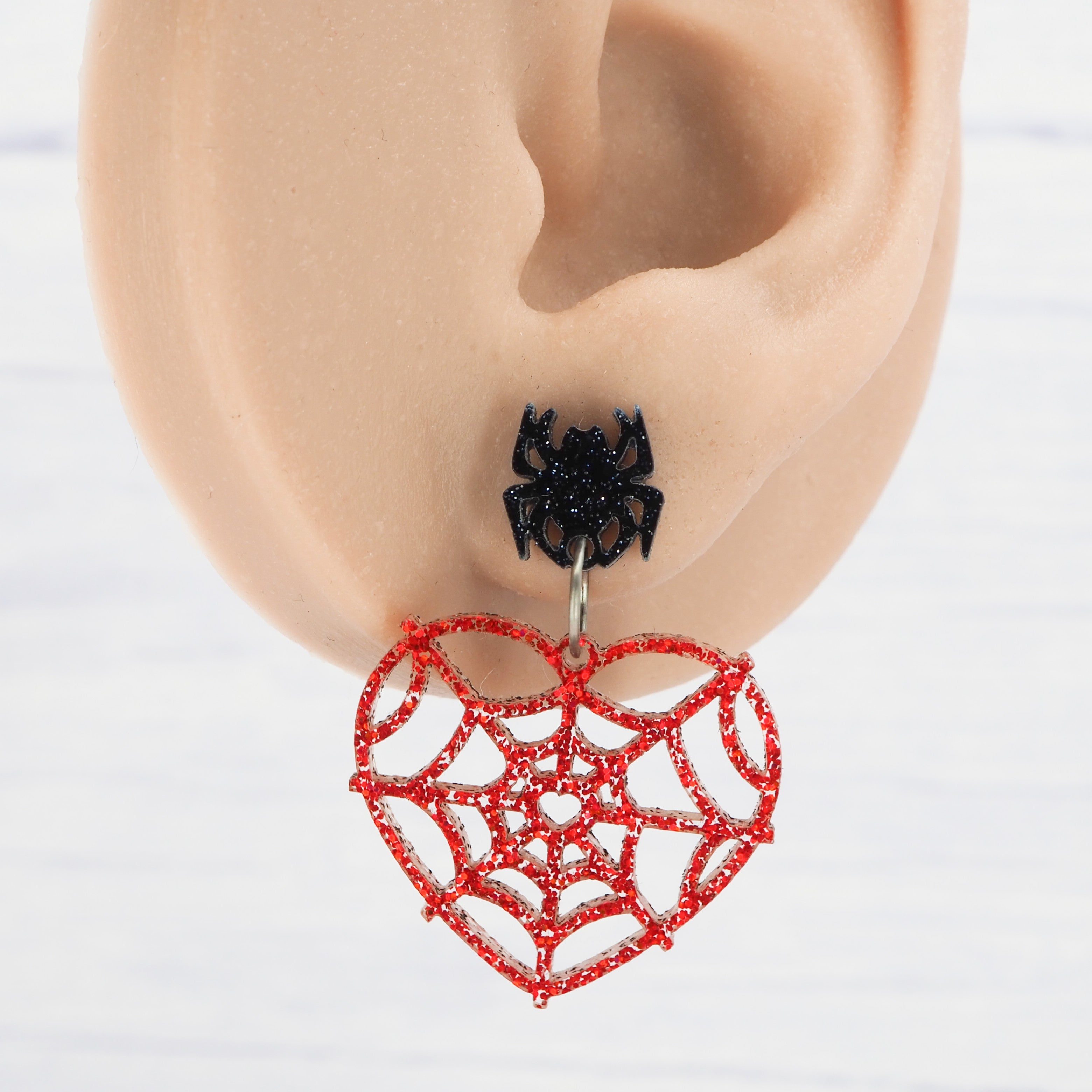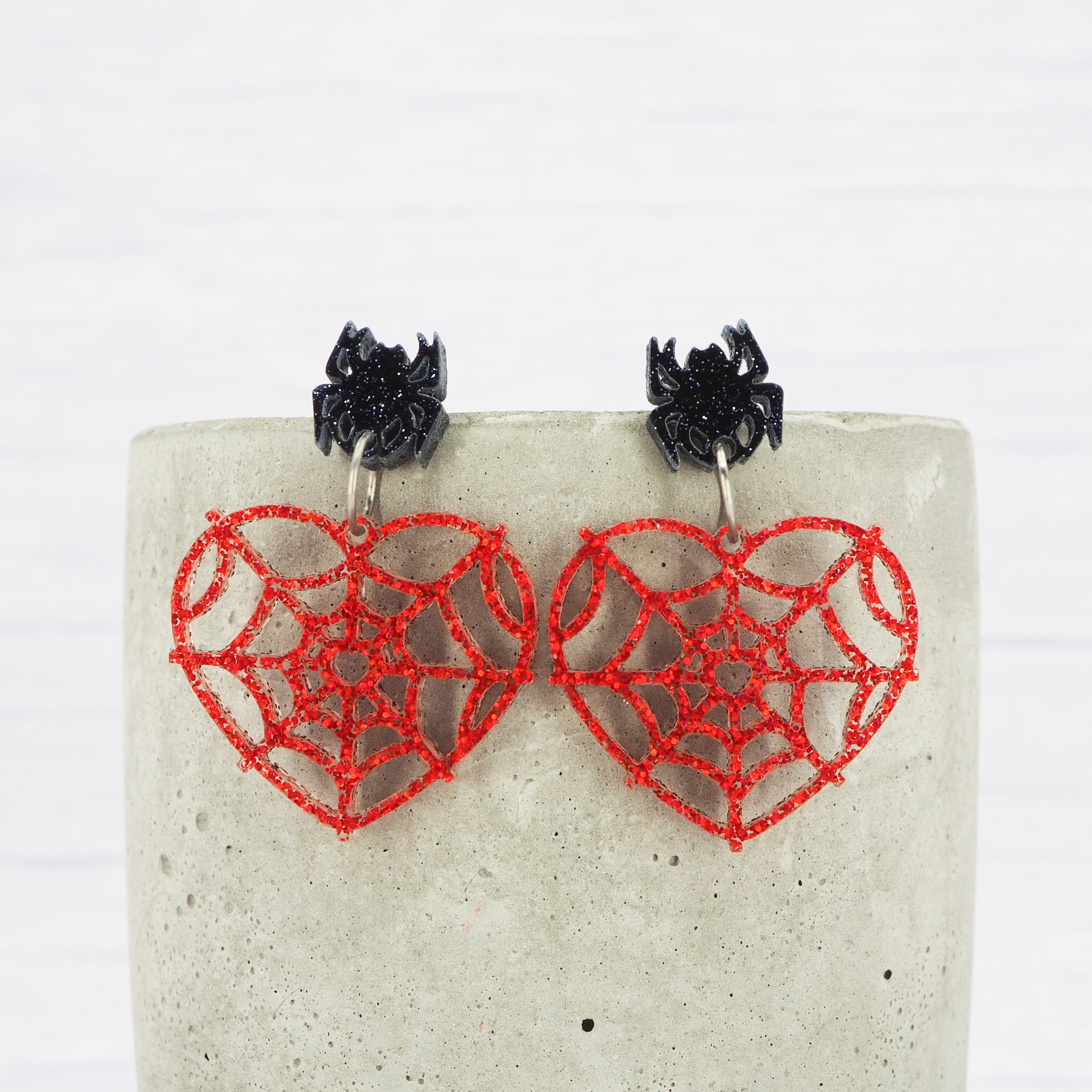 Spider and web heart acrylic dangle earrings - Red and Black Glitter