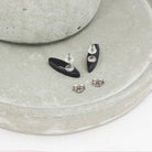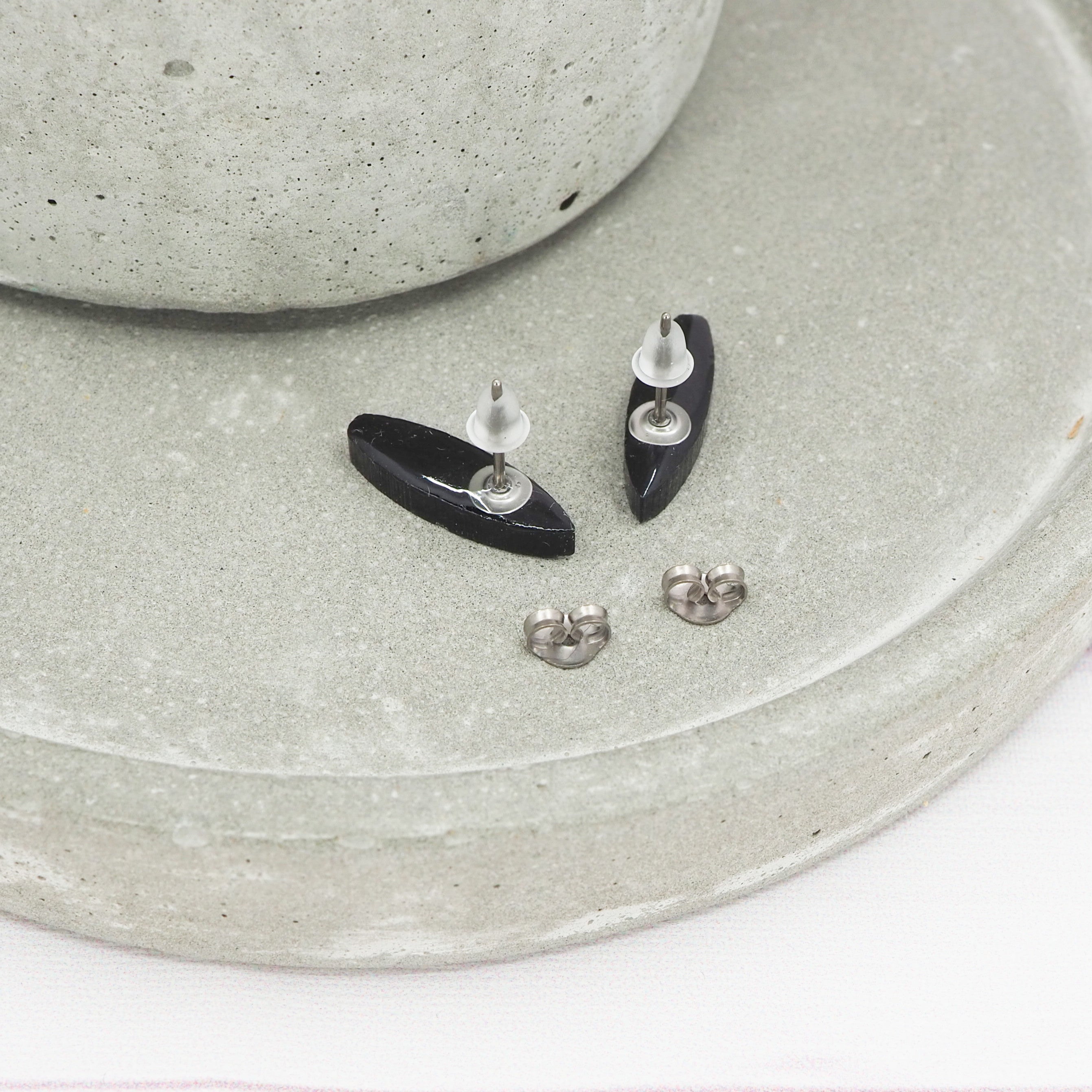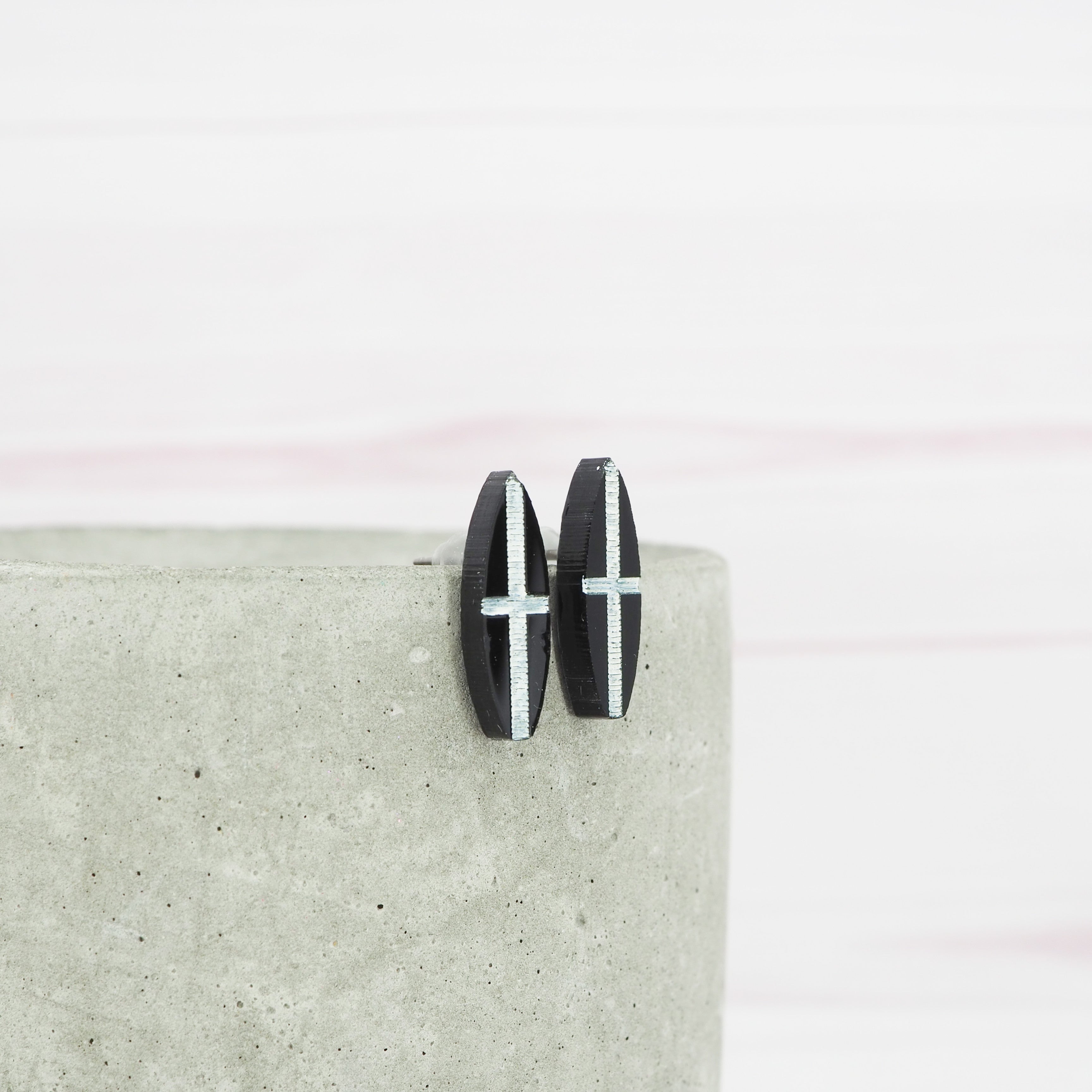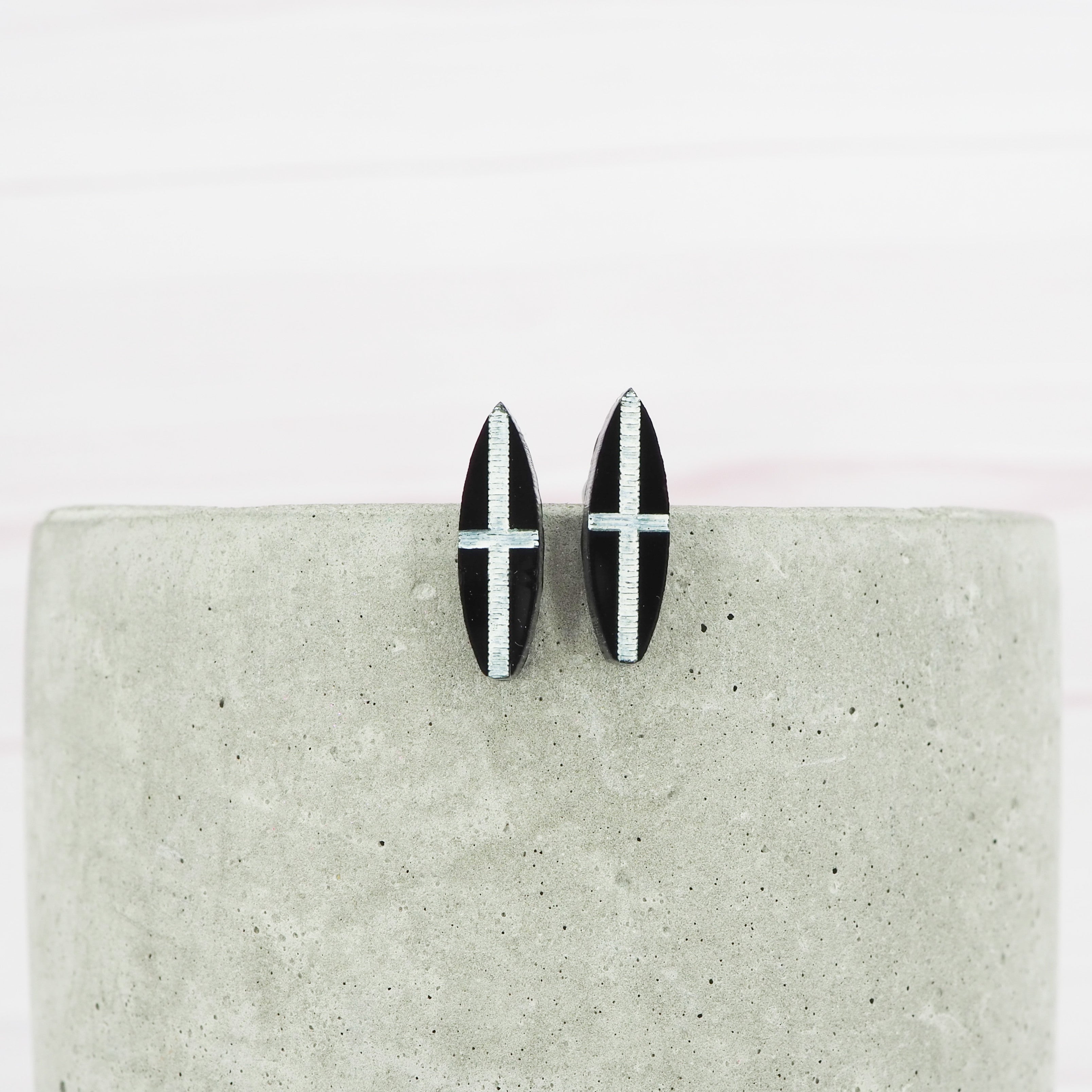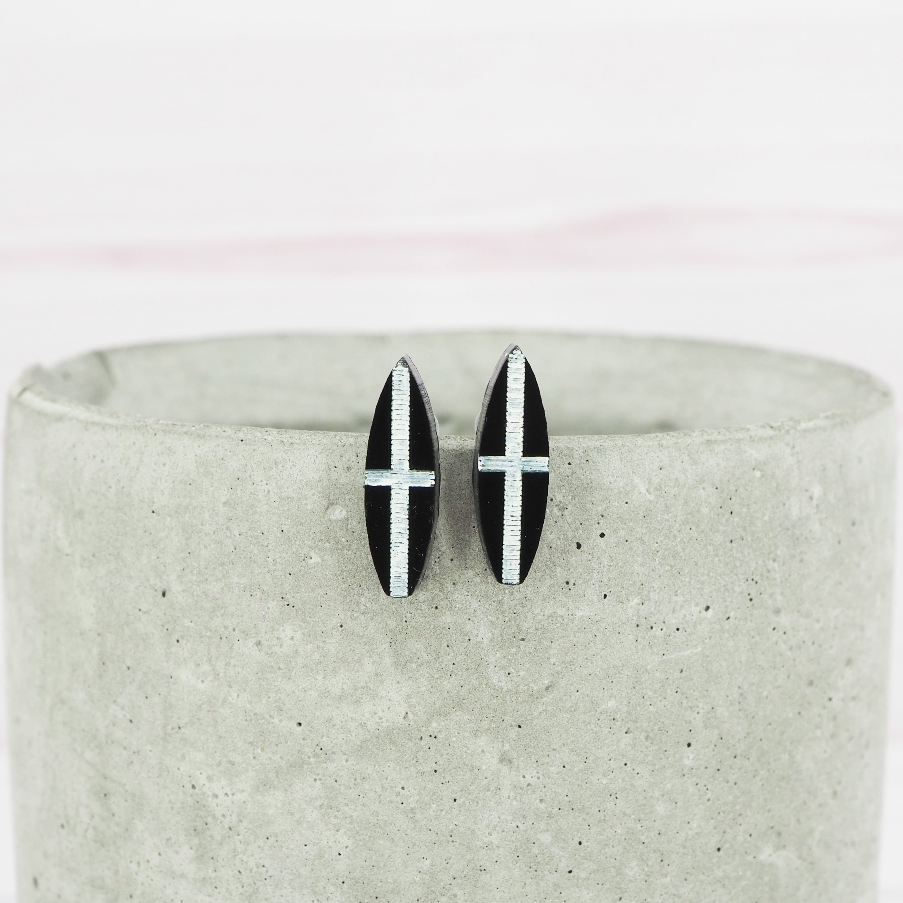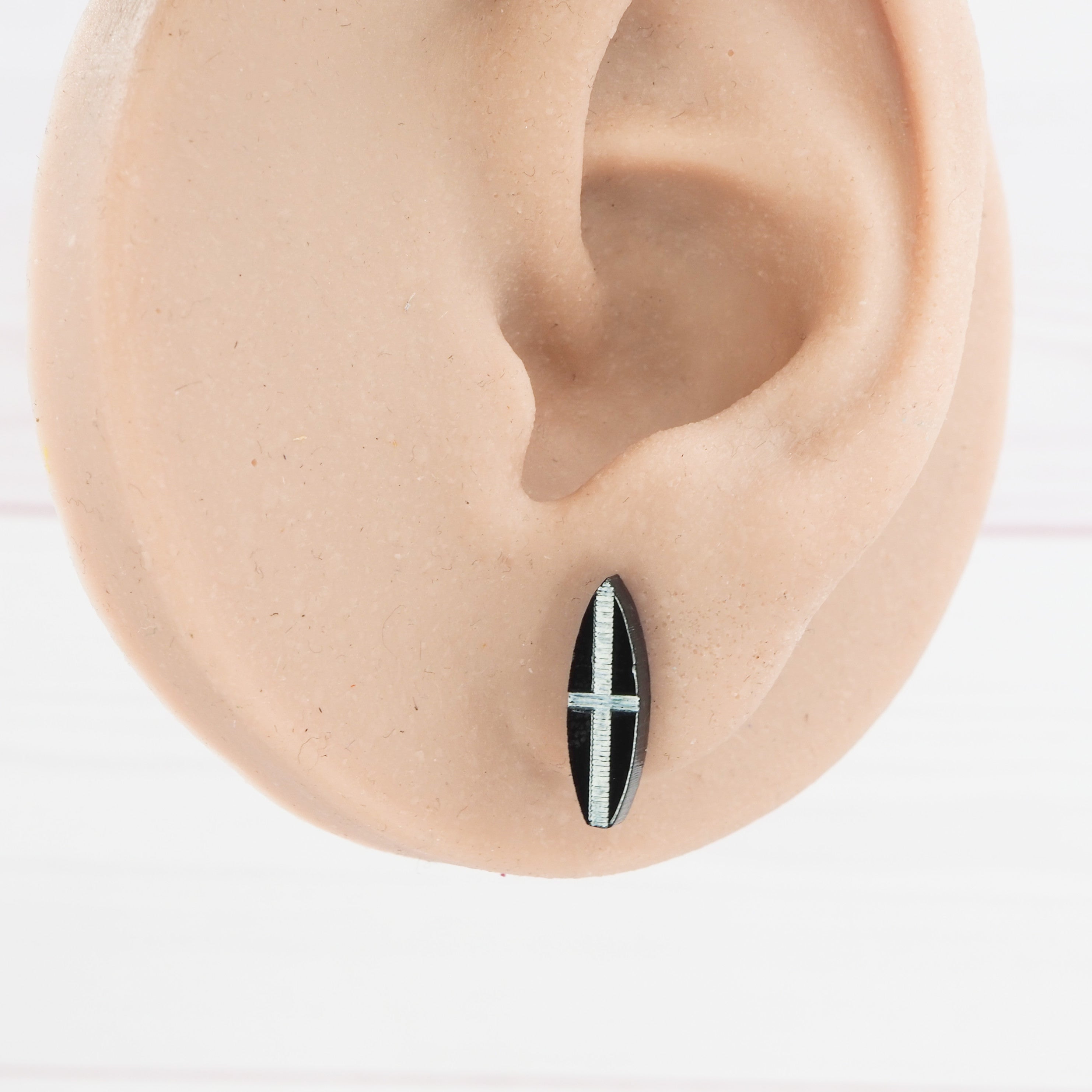 Small St Piran flag Surfboard acrylic studs with 0.7mm ear stems.