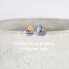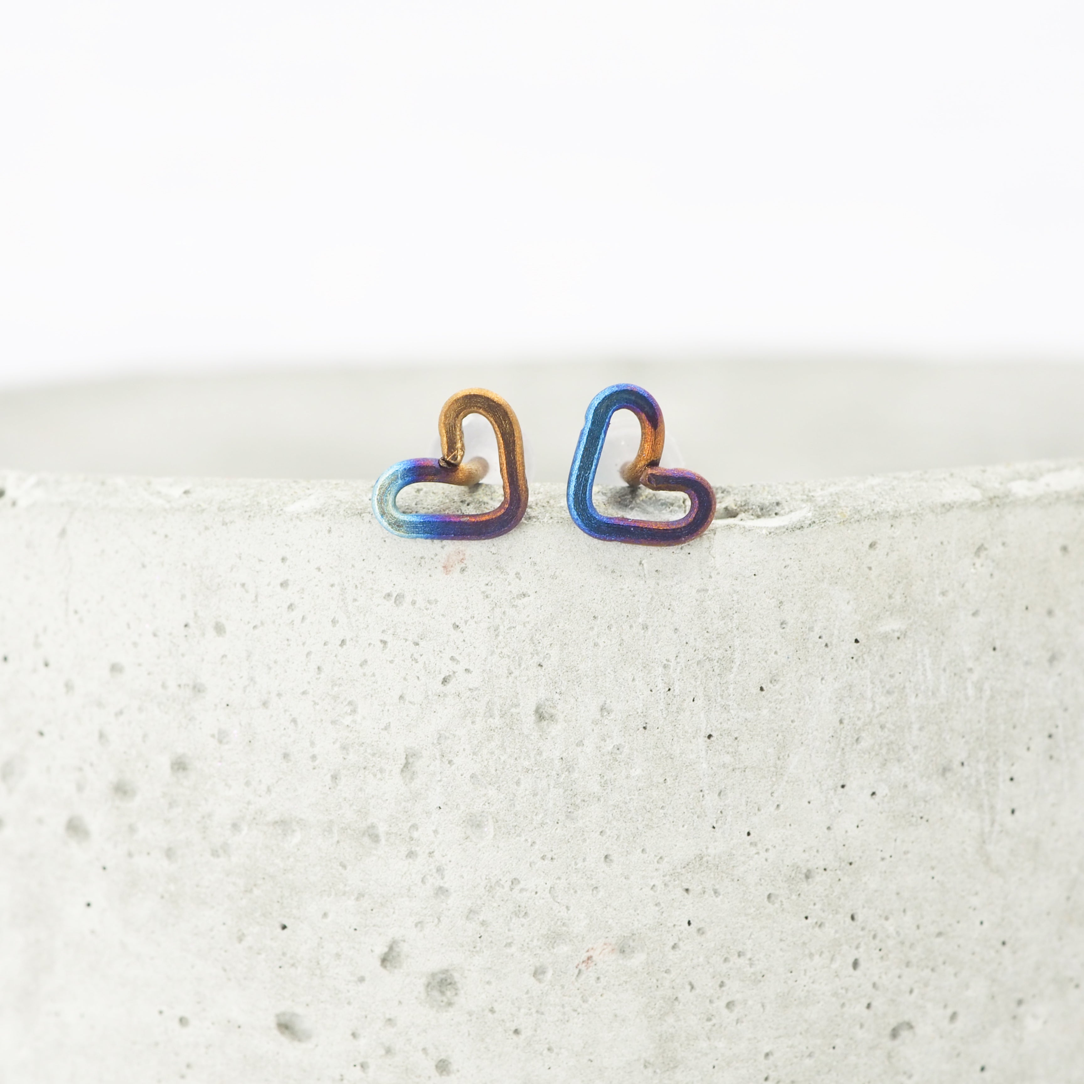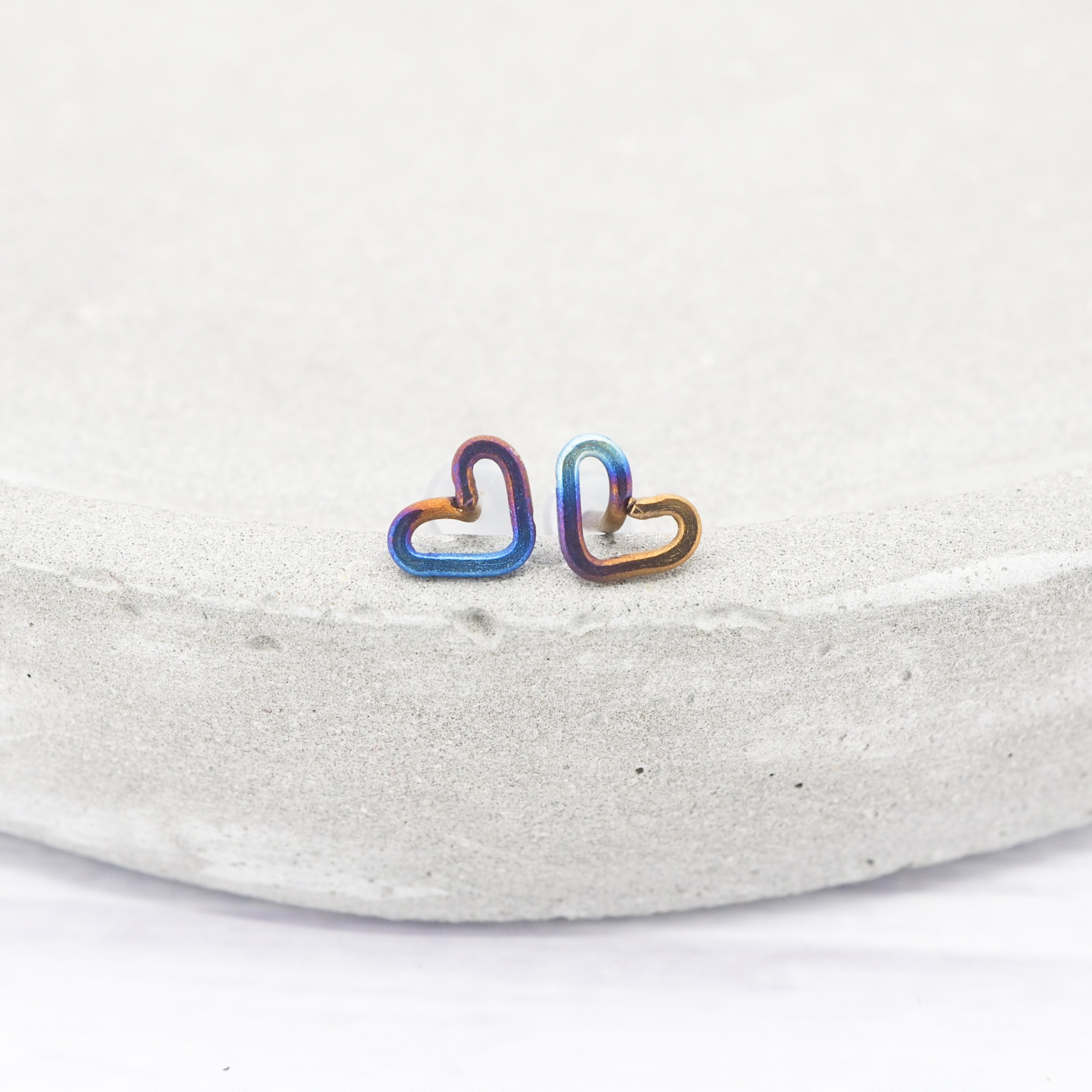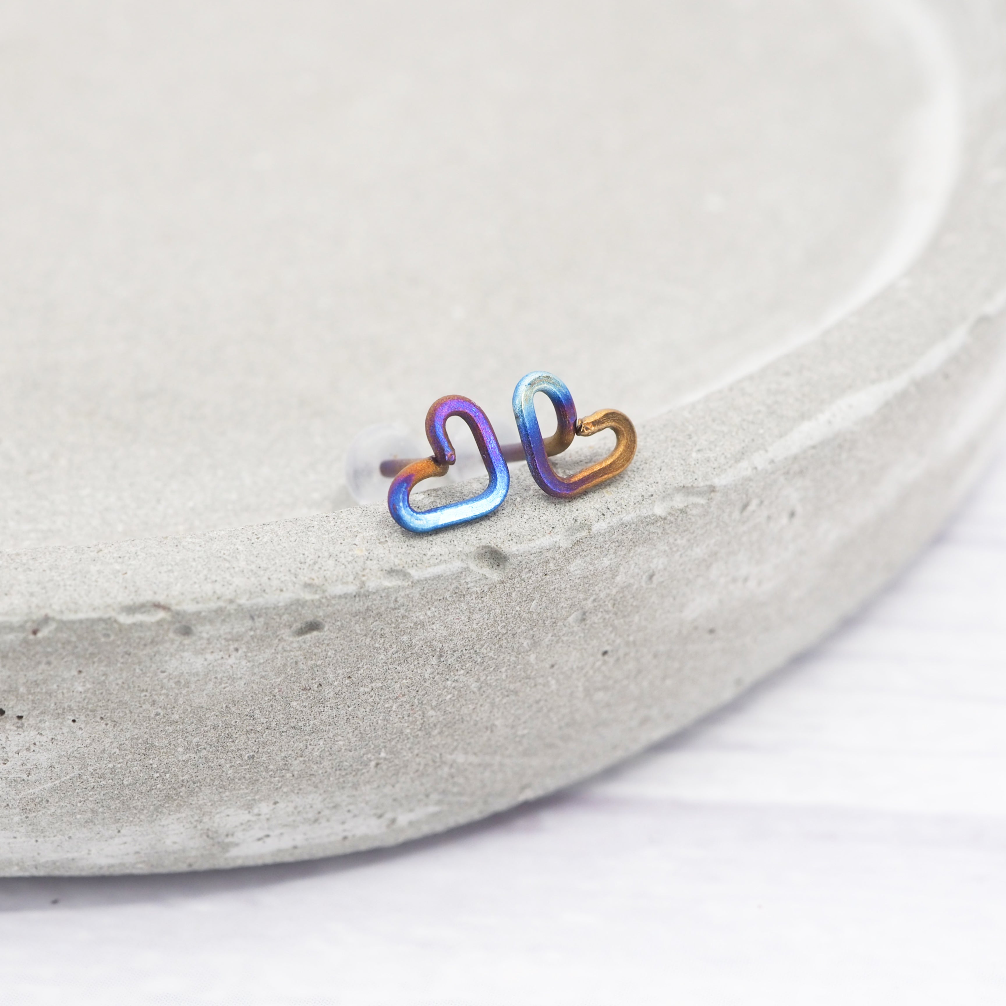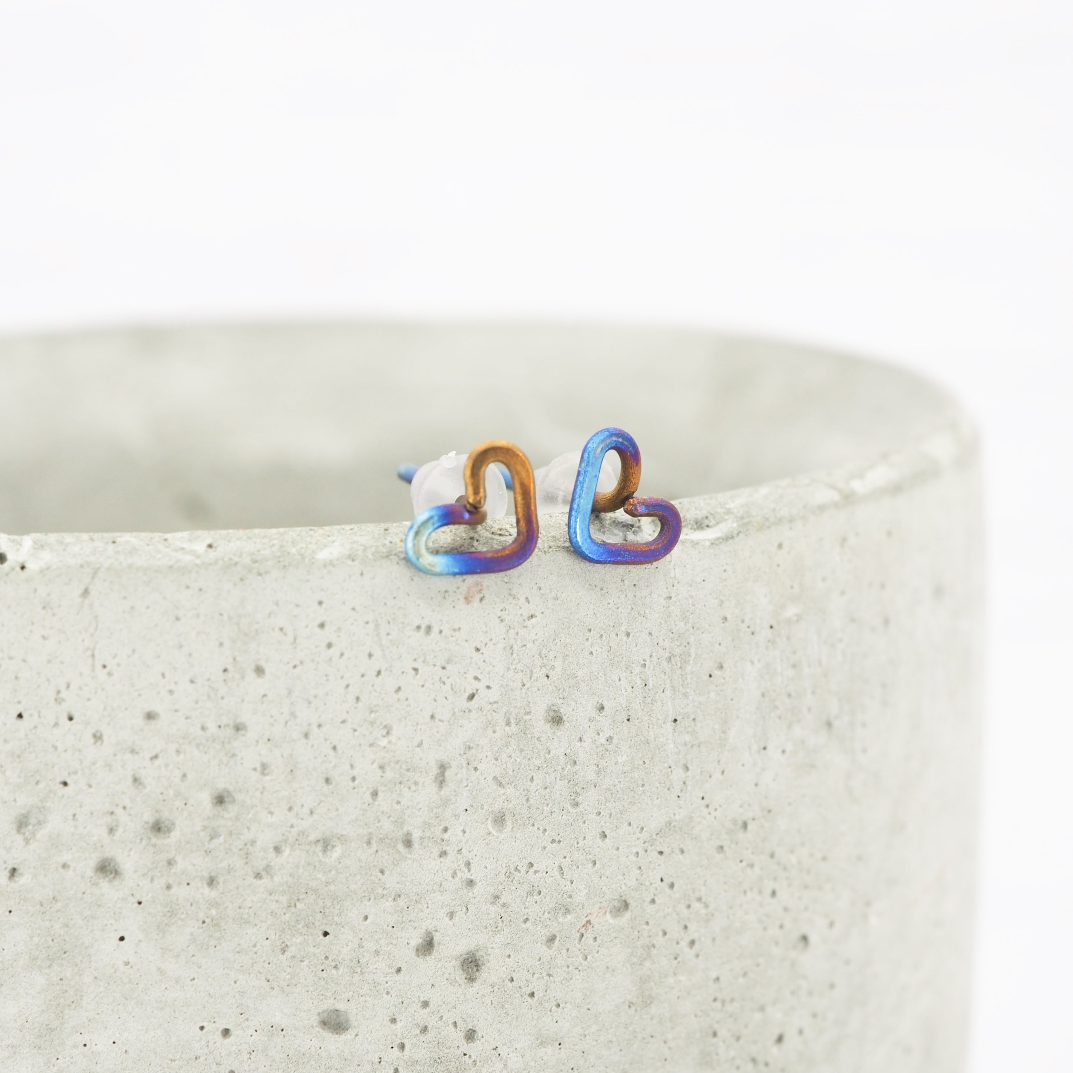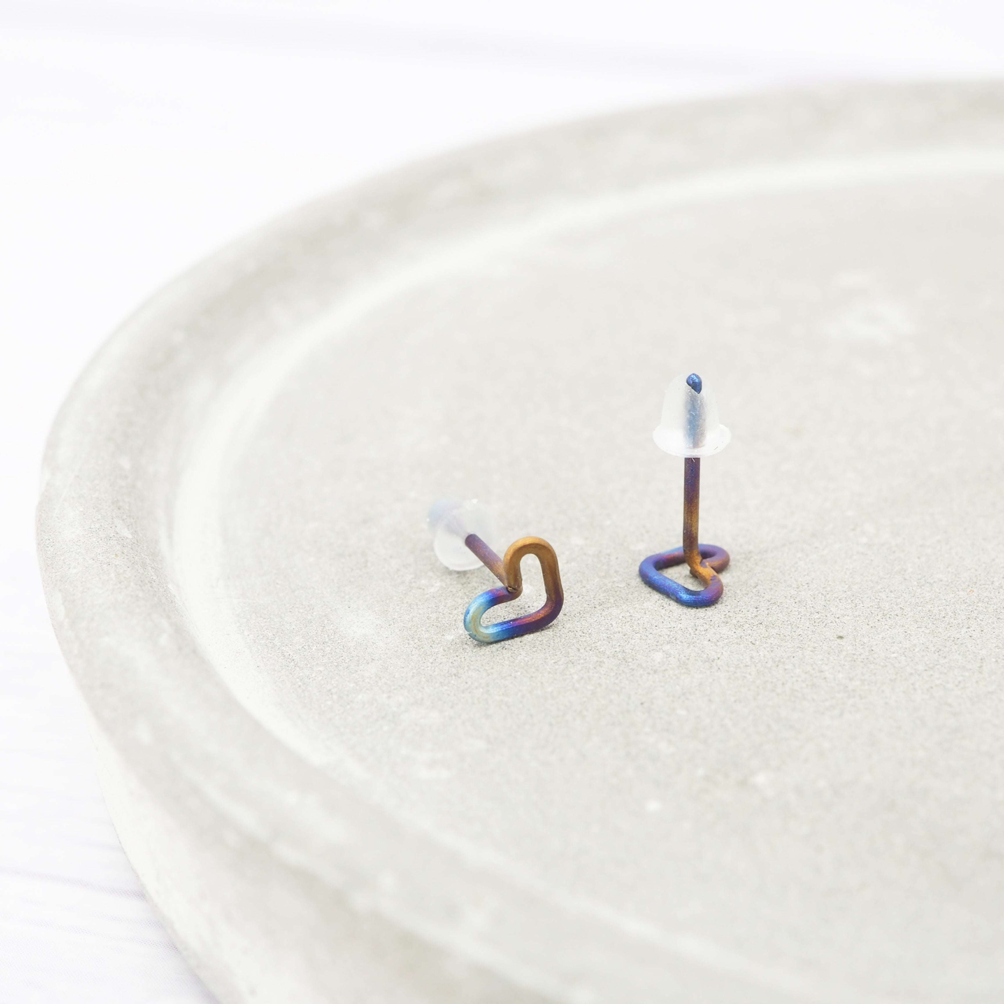 The studs have been heat anodised to create unique colour tones best seen in the light.