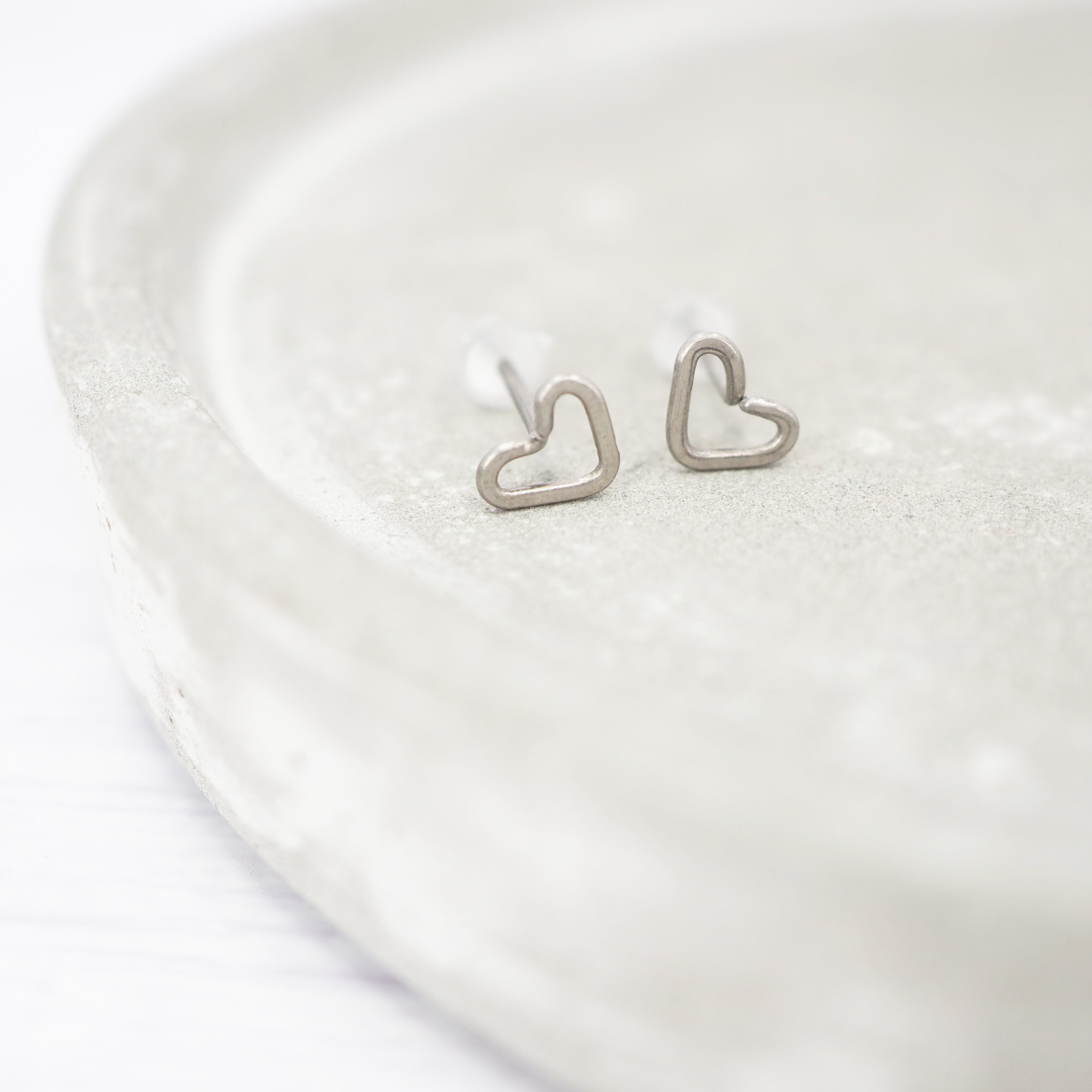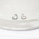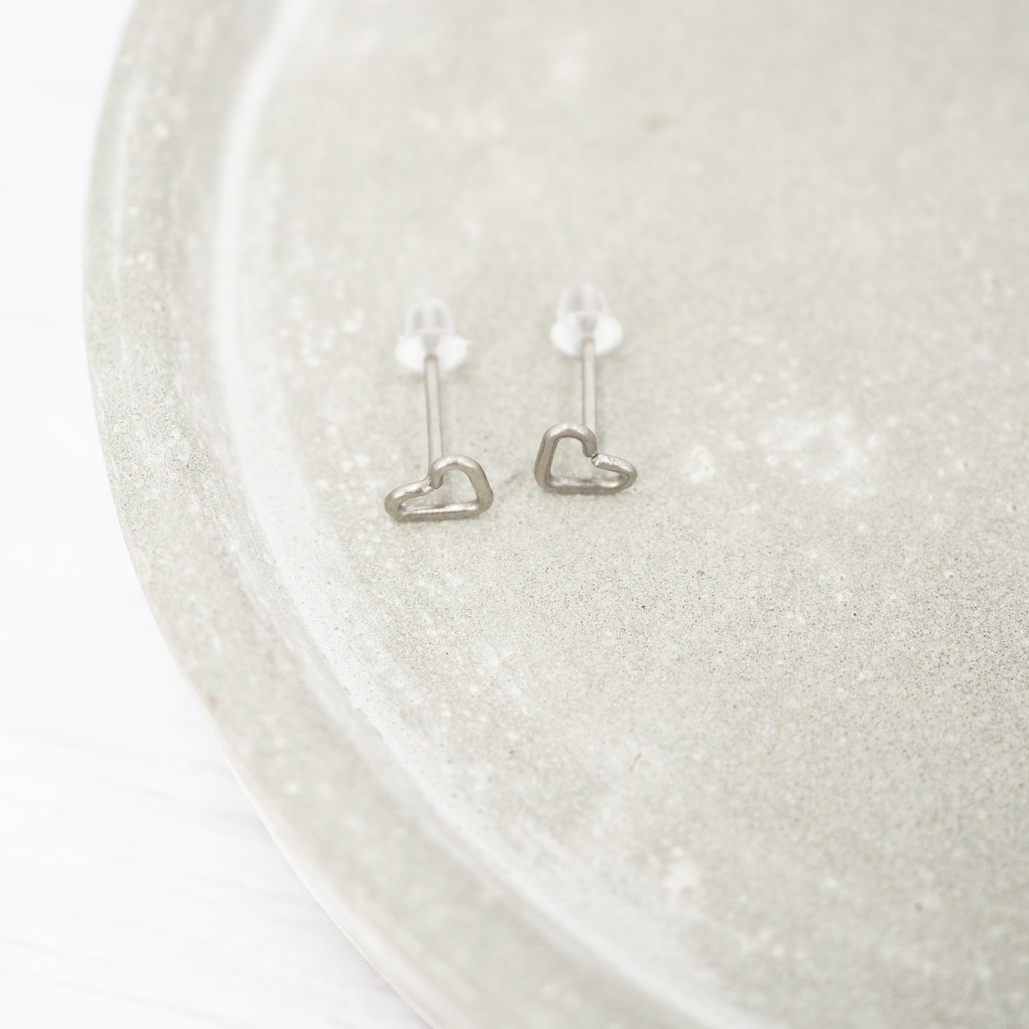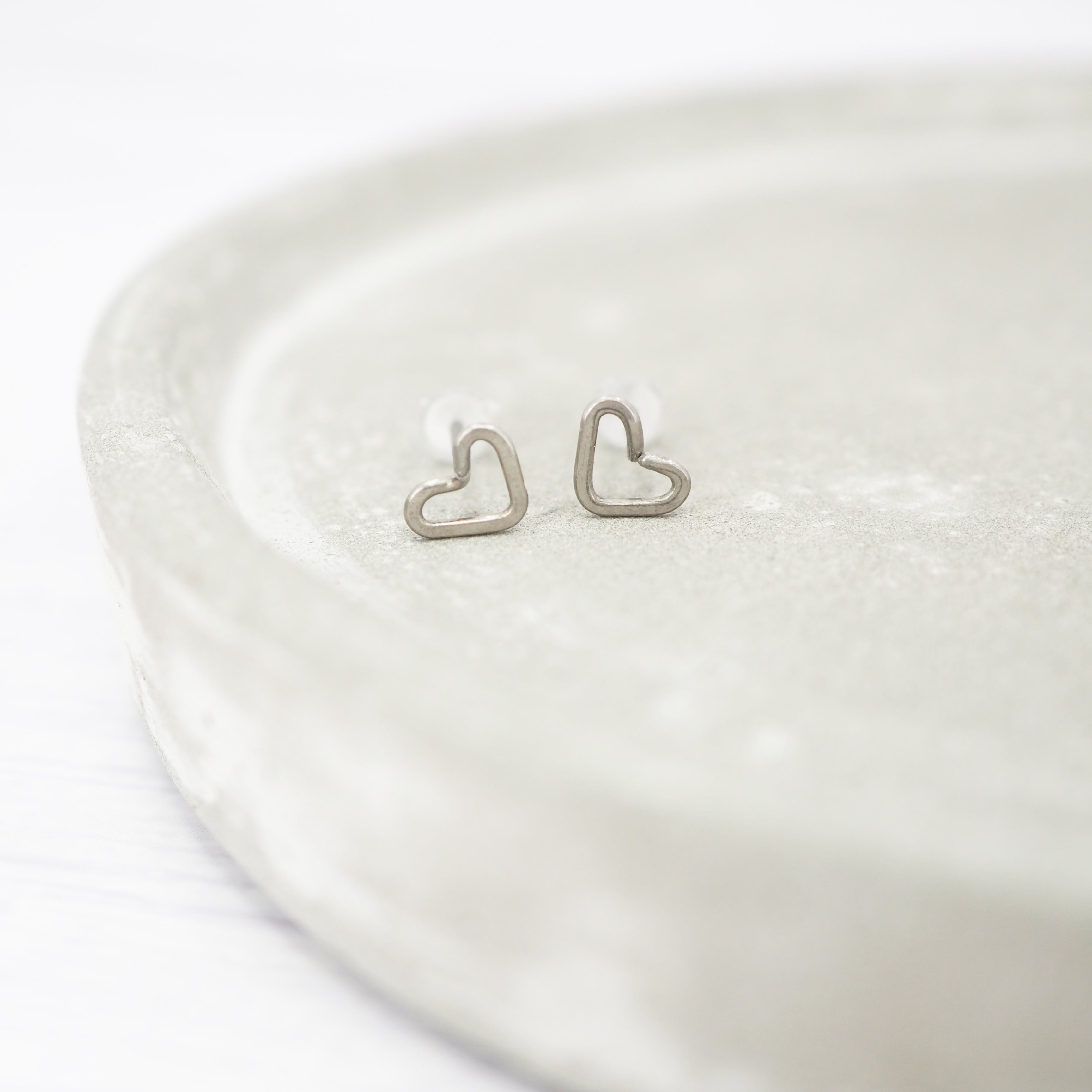 Small Heart-shaped titanium stud earrings.