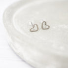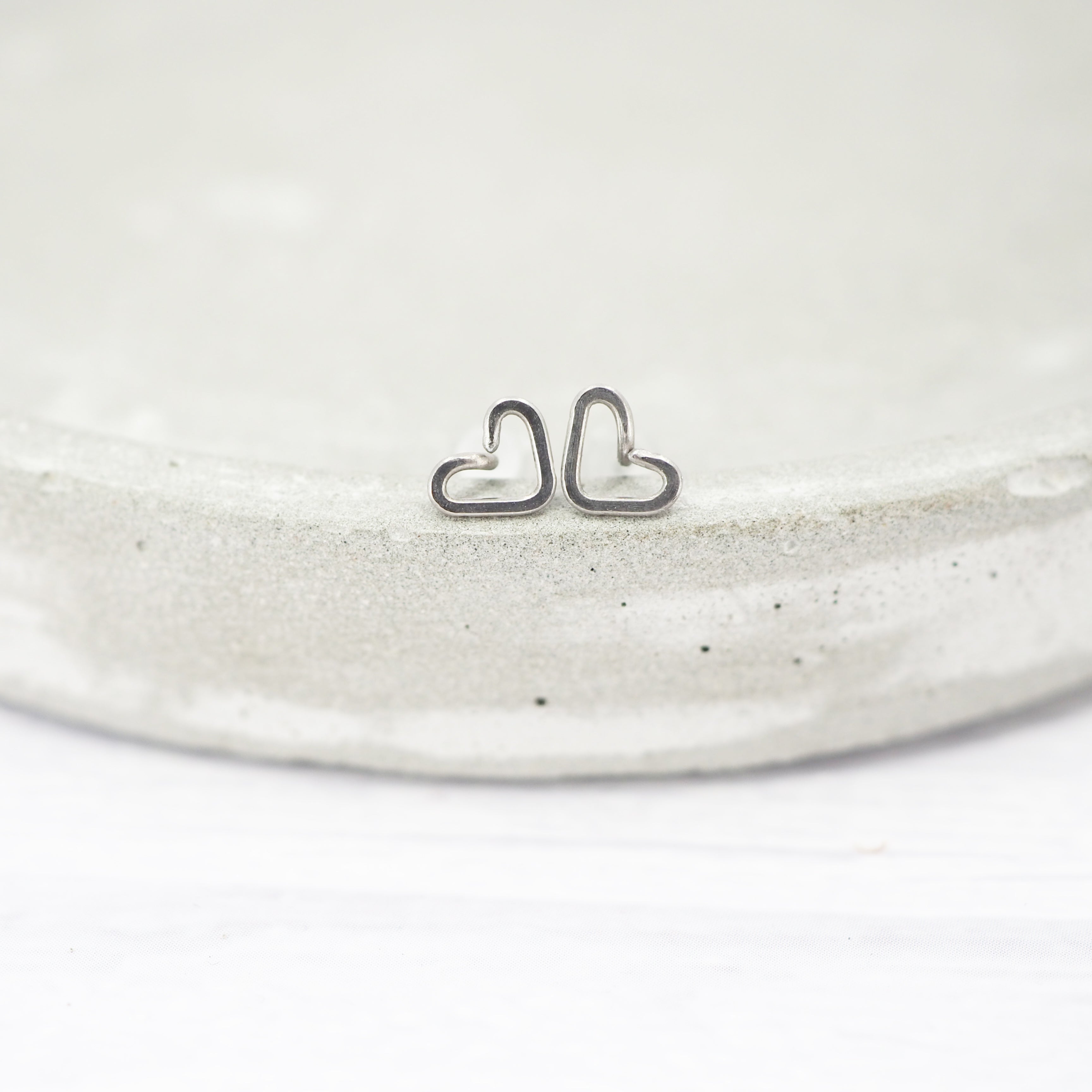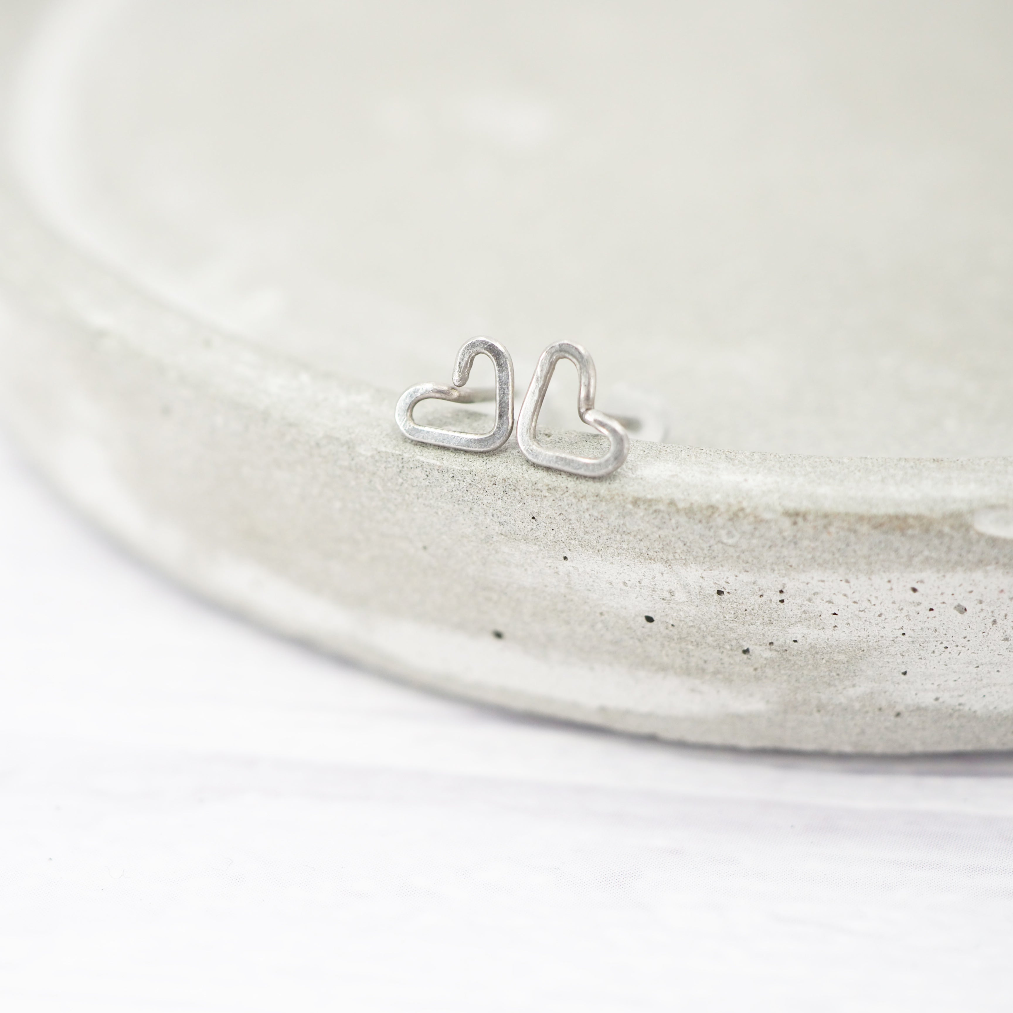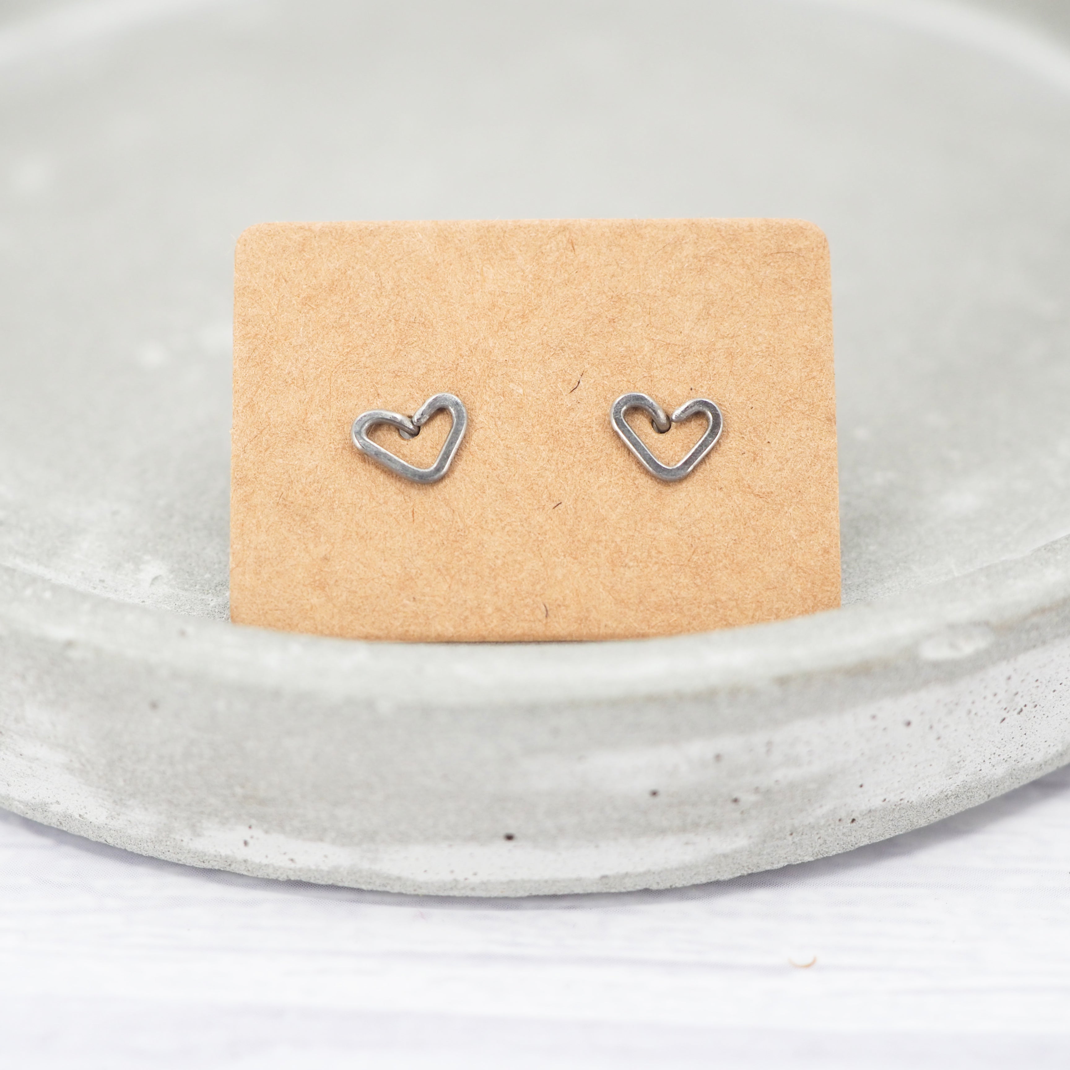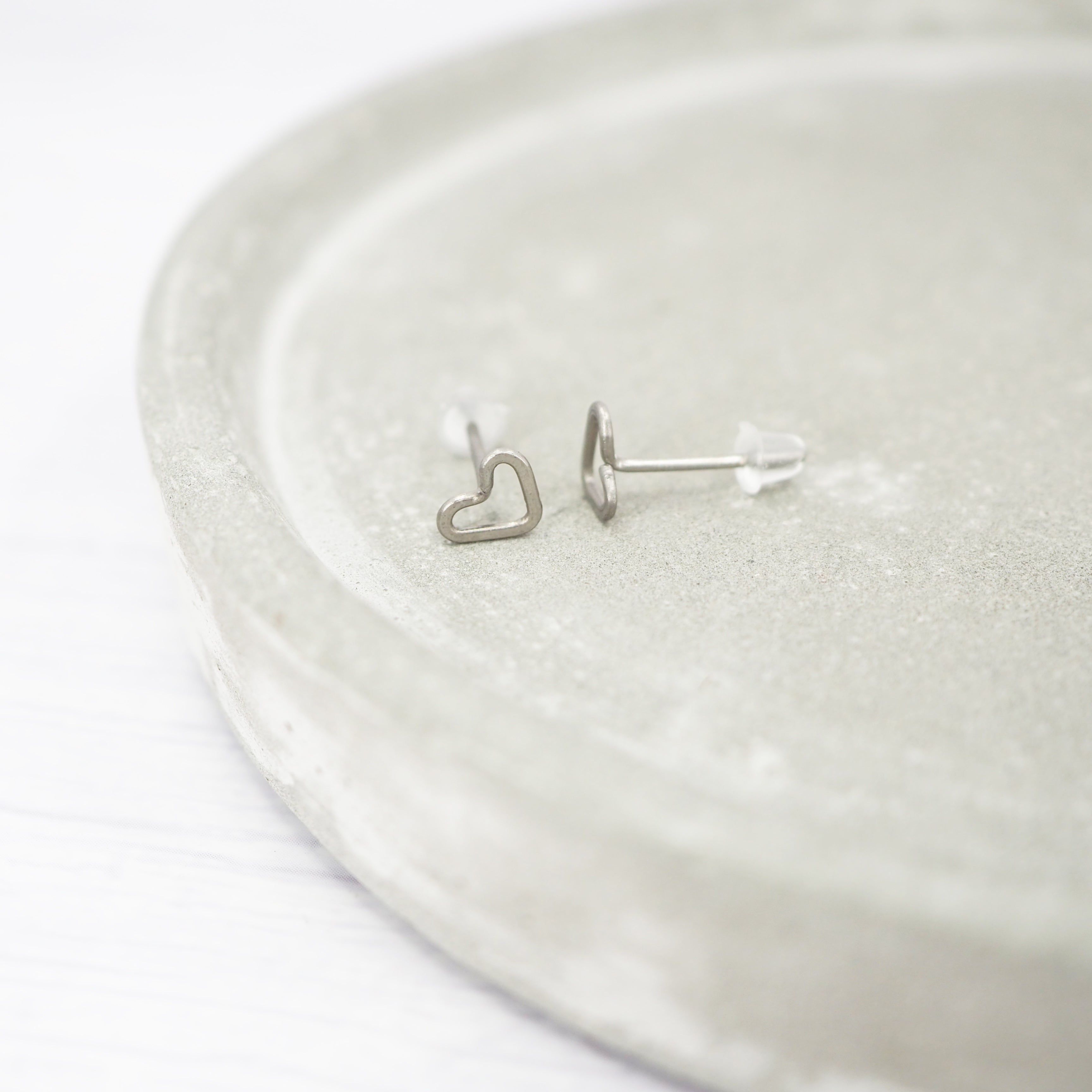 Small Heart-shaped titanium stud earrings.
