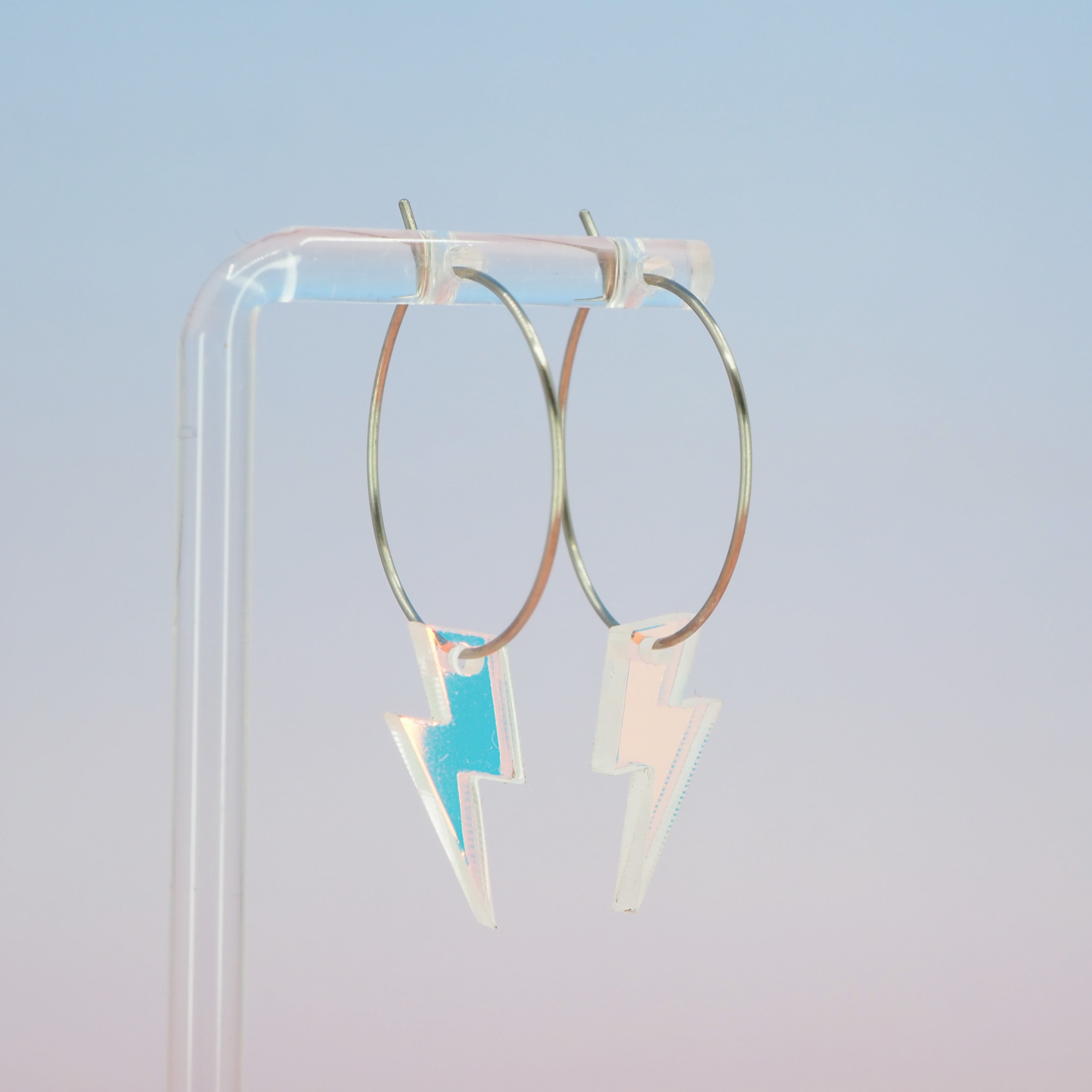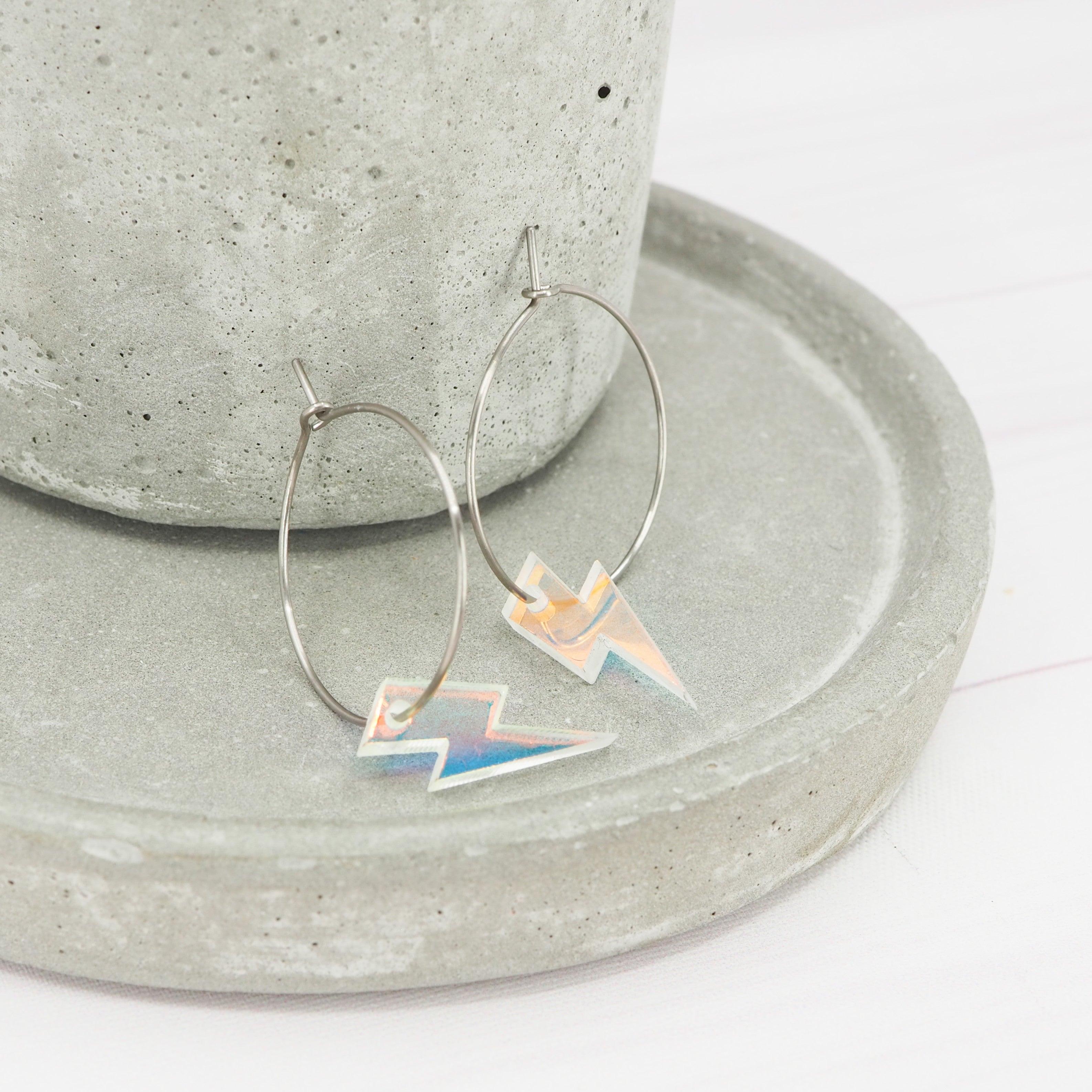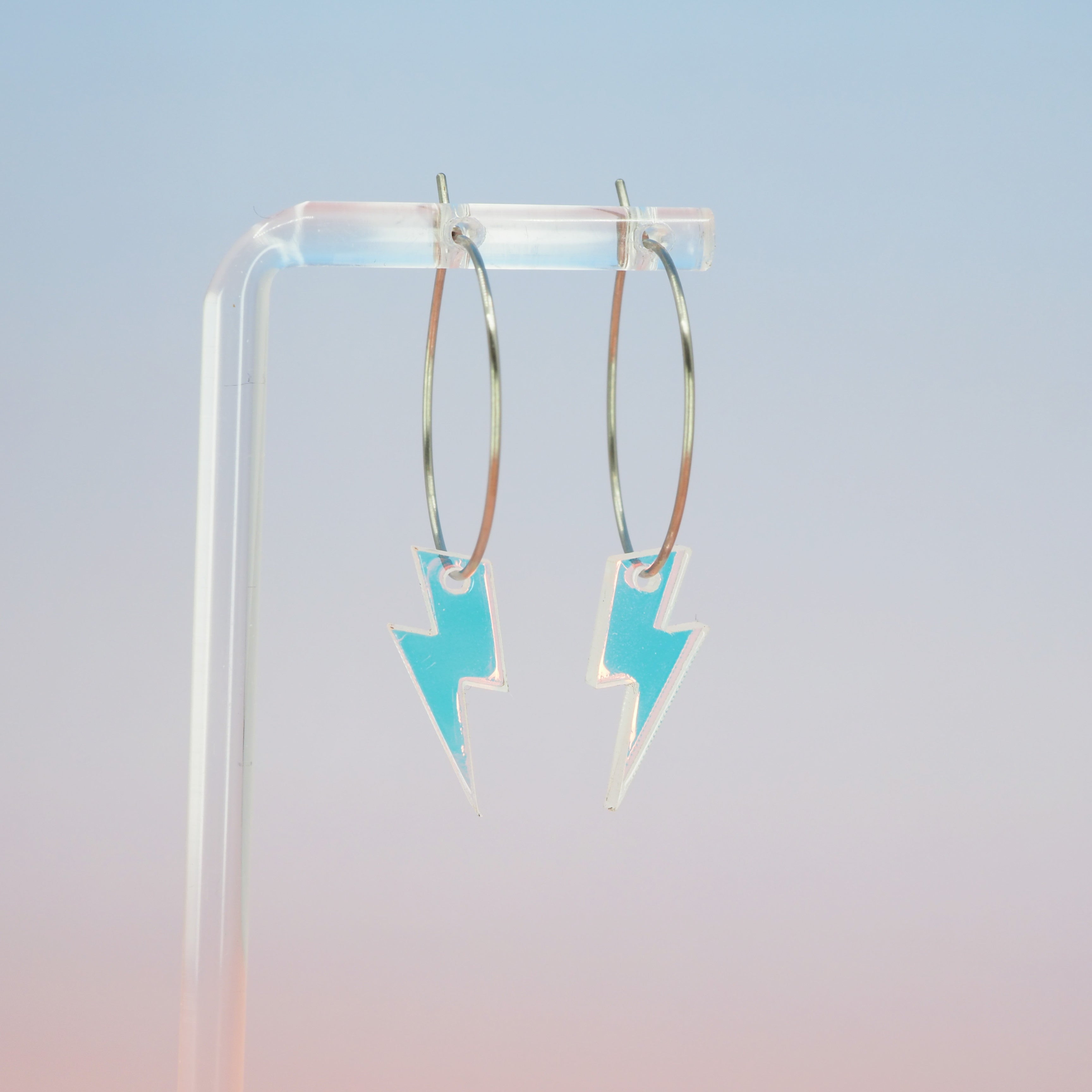 1 inch hoops with Iridescent lightning bolt dangles