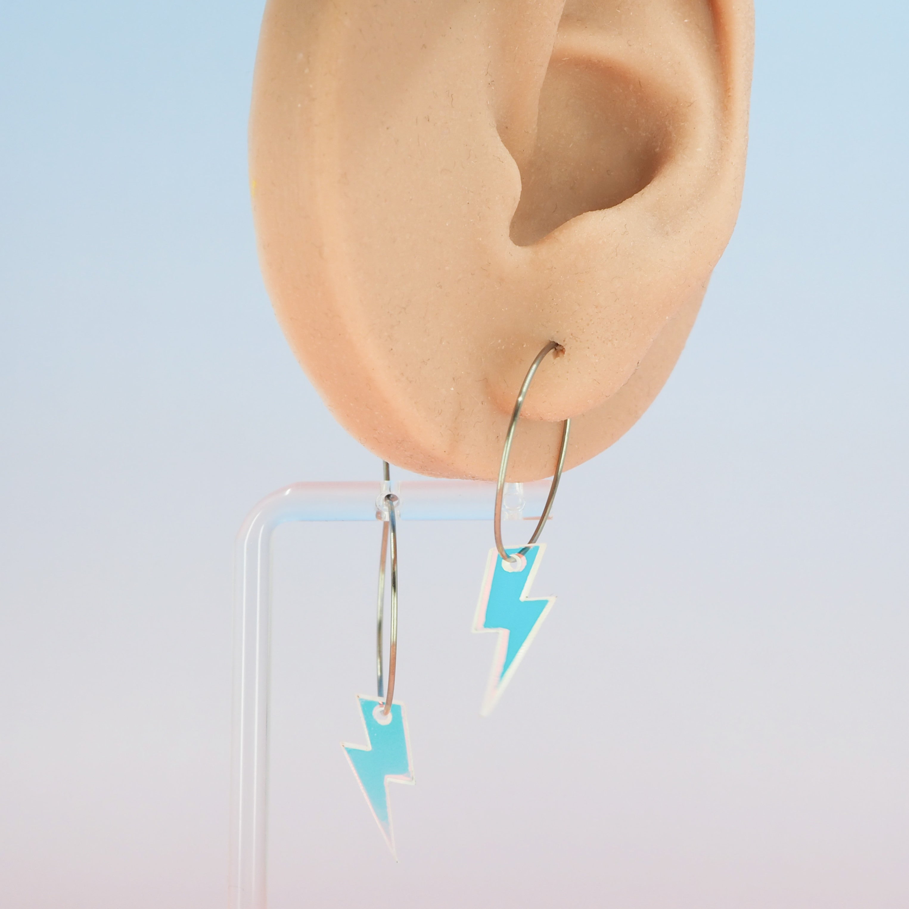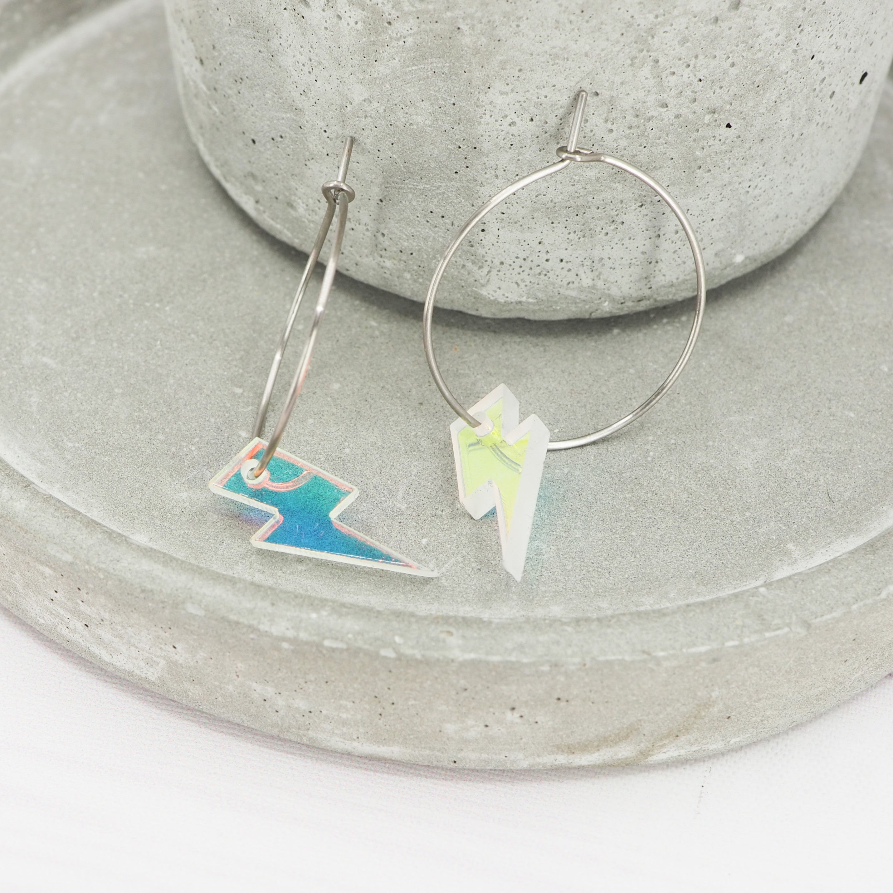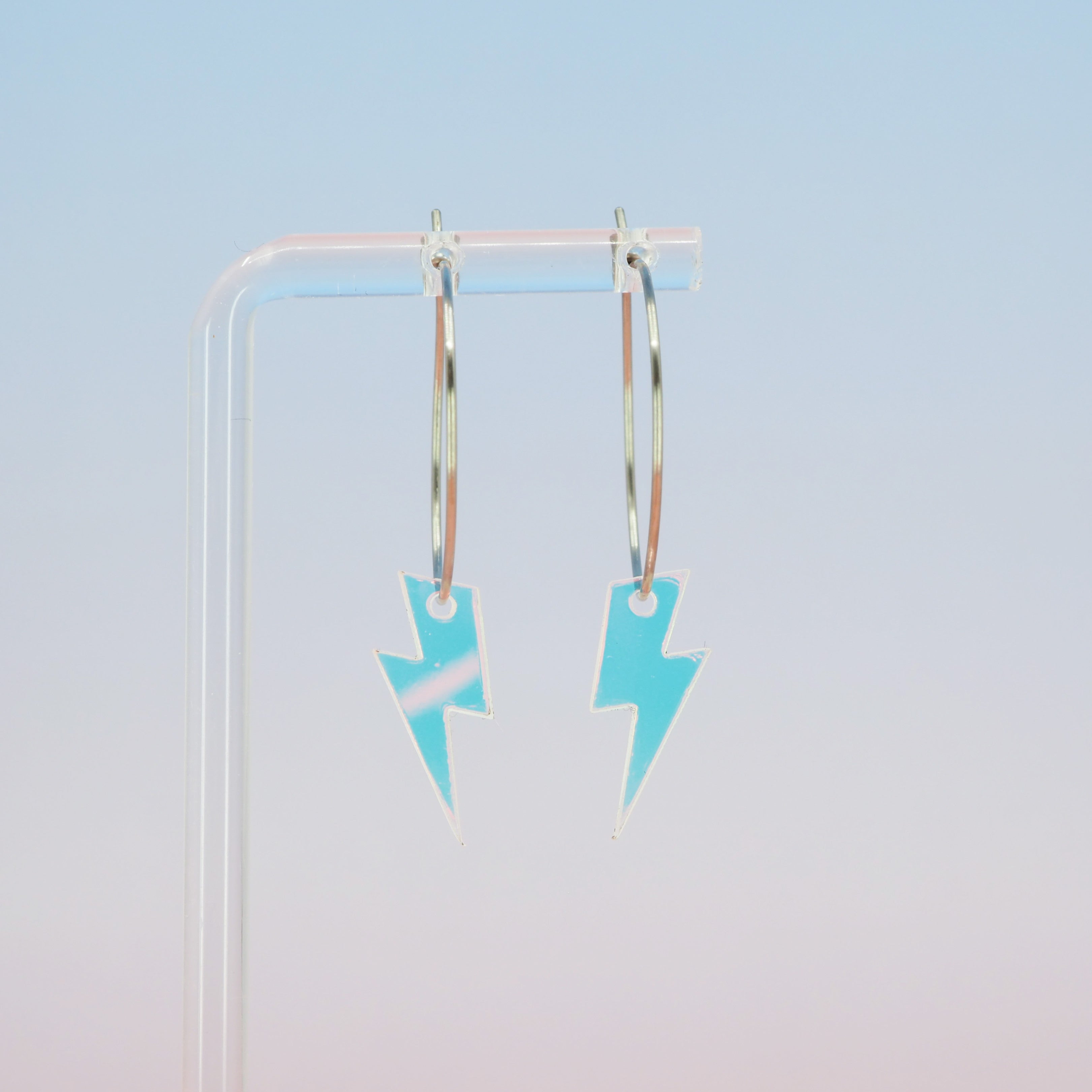 1 inch hoops with Iridescent lightning bolt dangles