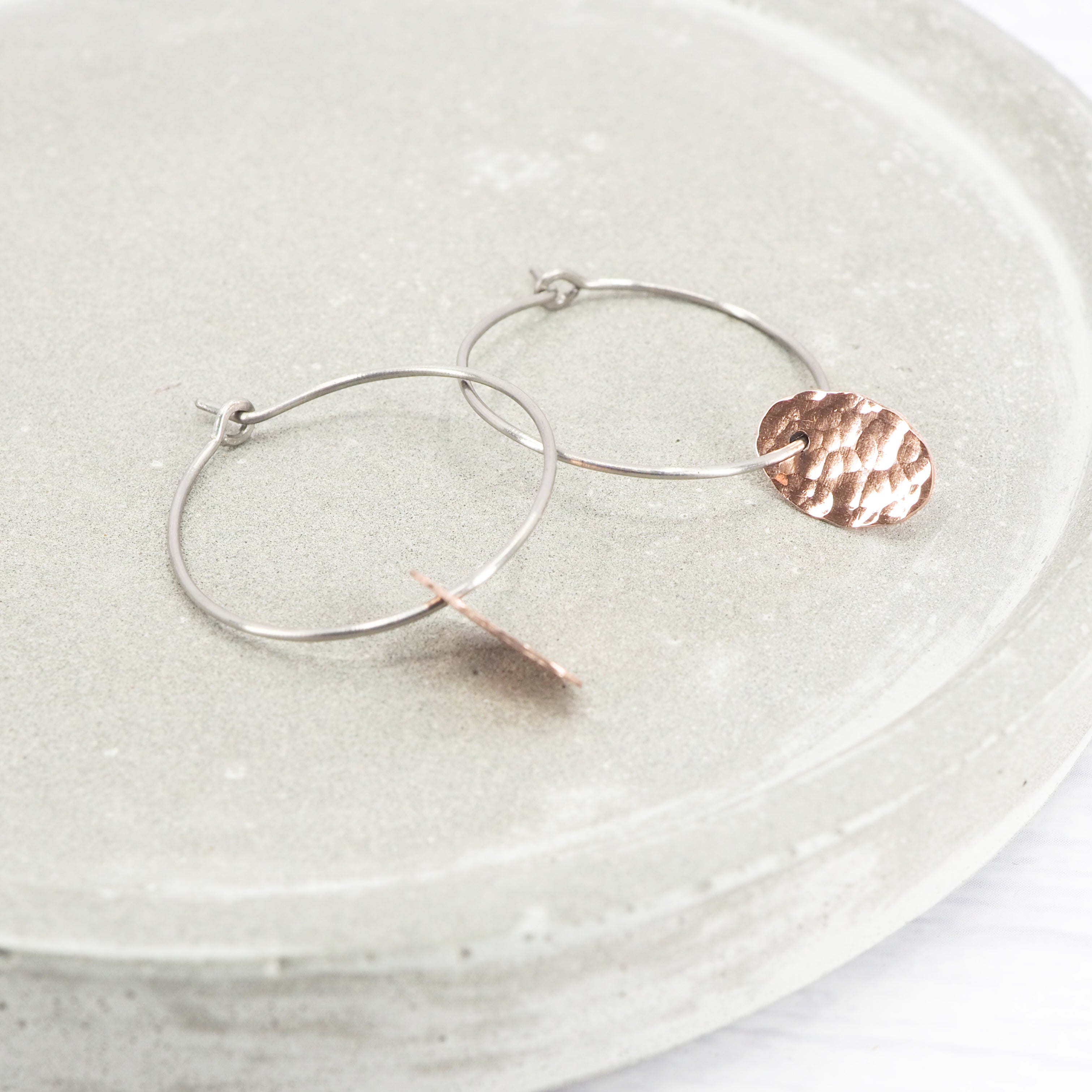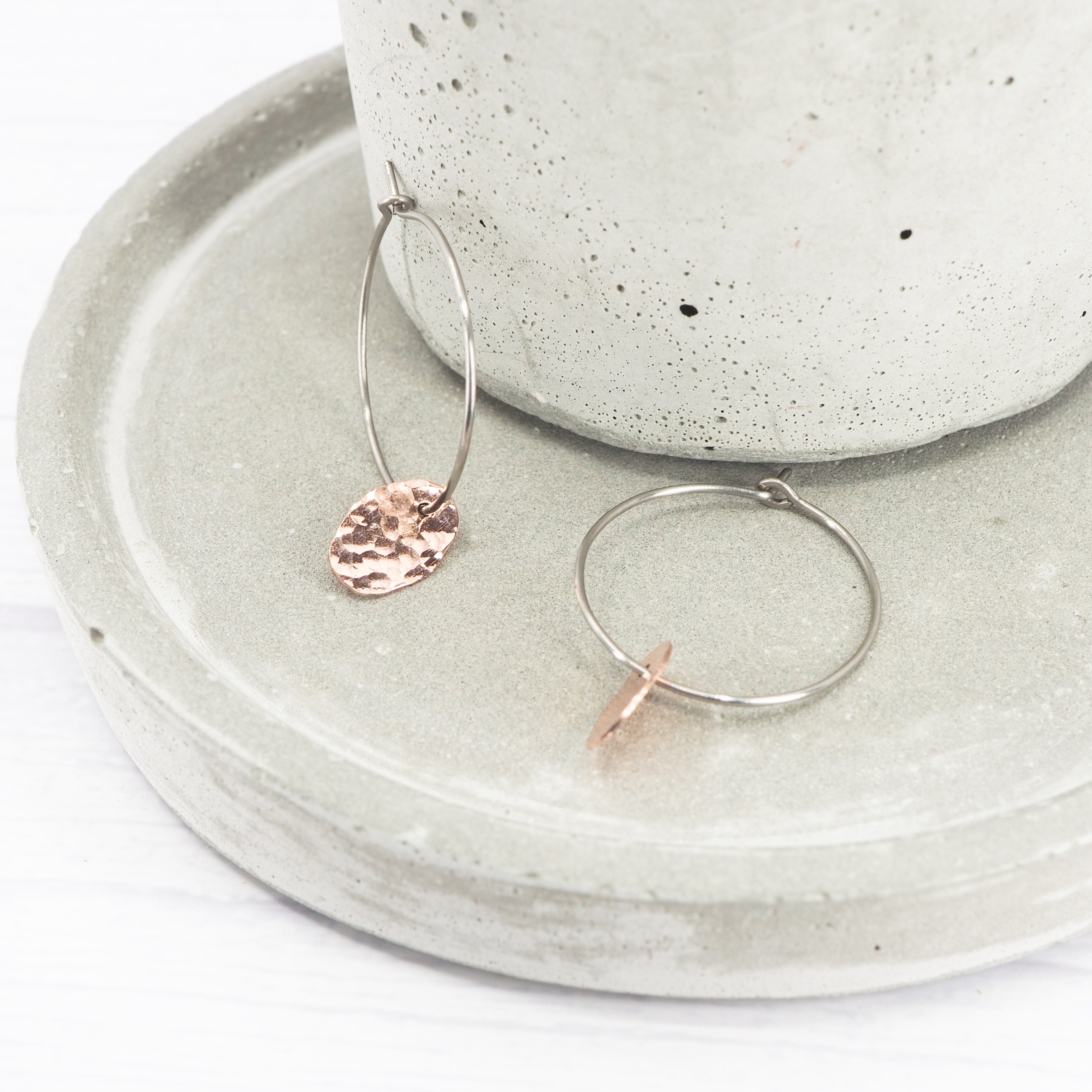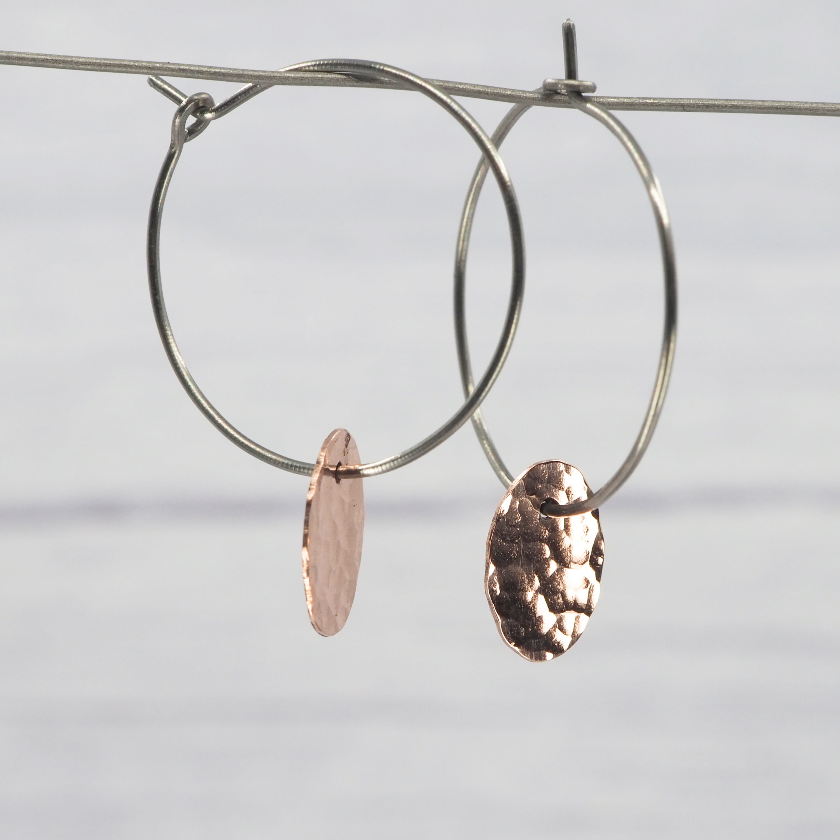 1 inch polished Titanium hoop earrings - Copper dimple ovals