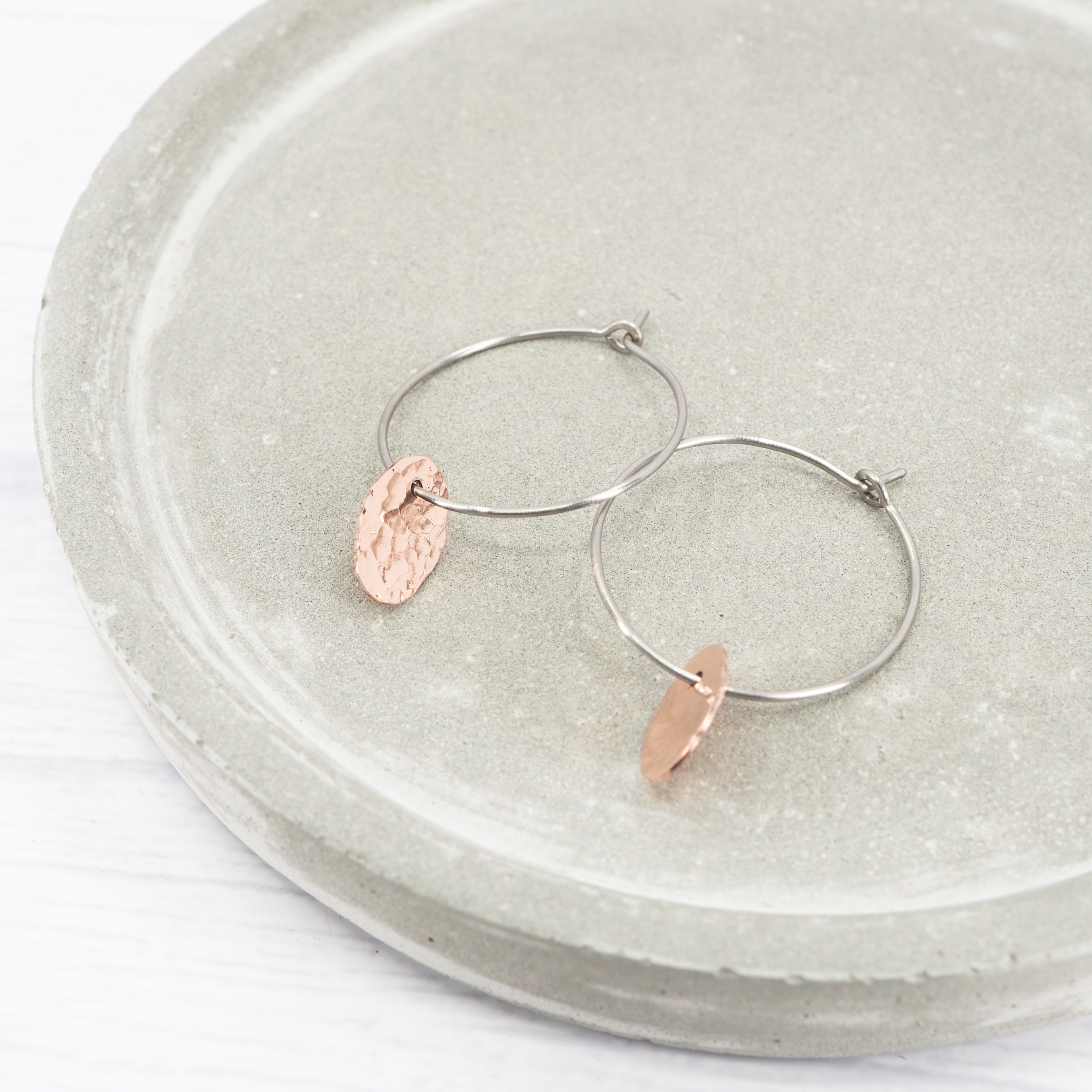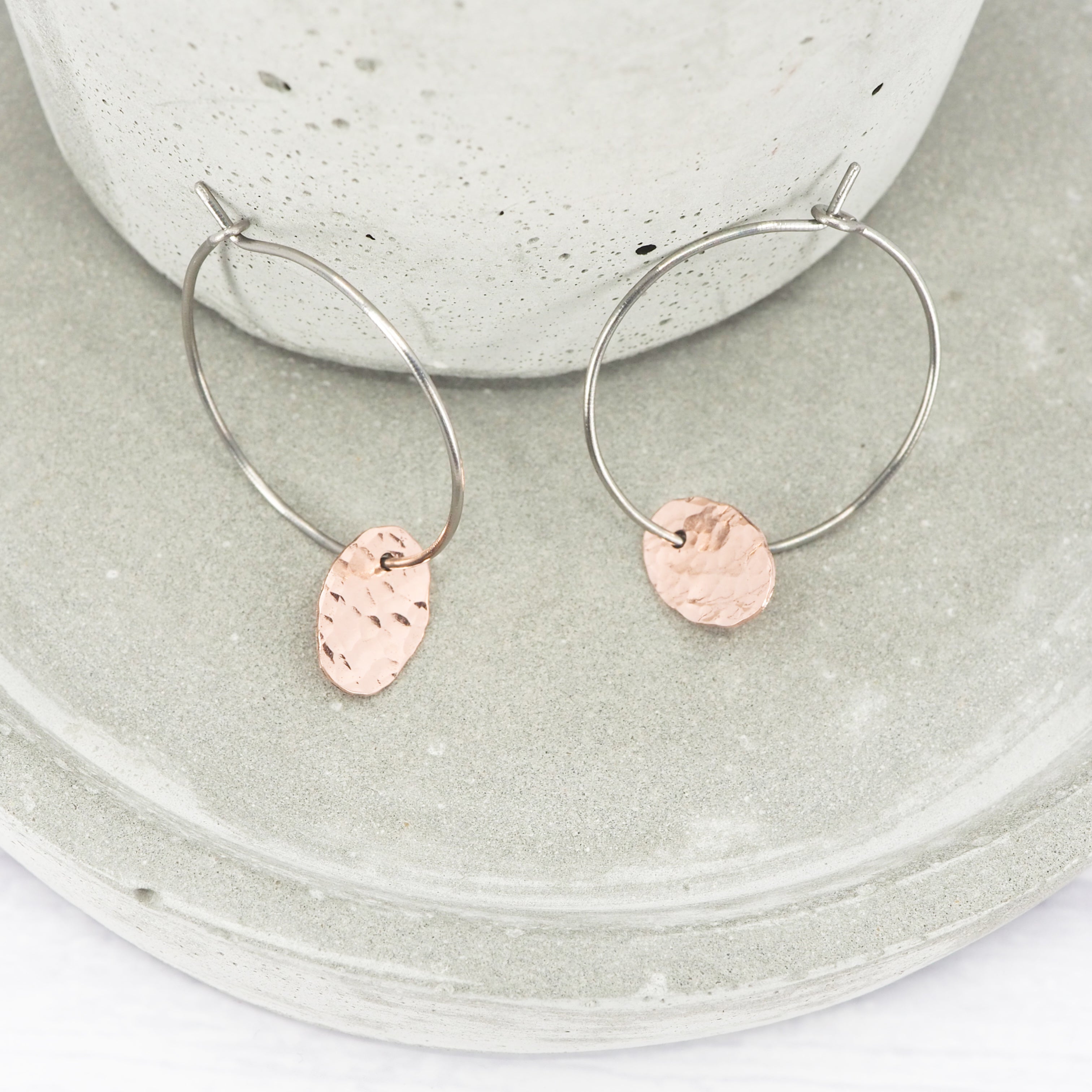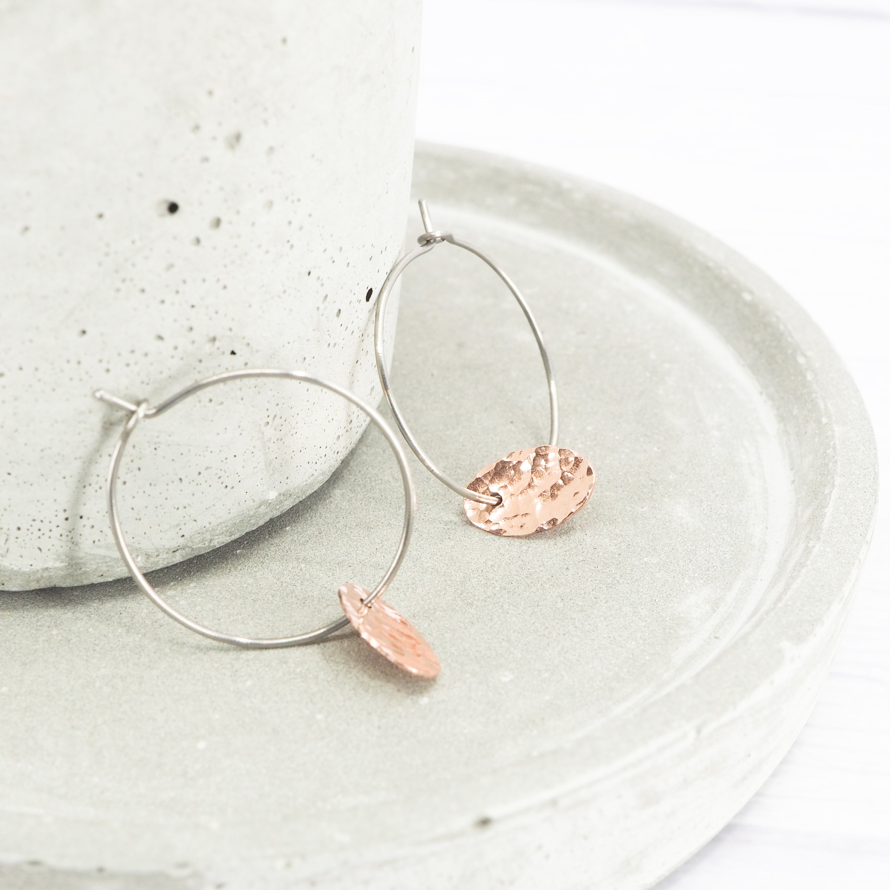 1 inch polished Titanium hoop earrings - Copper dimple ovals
