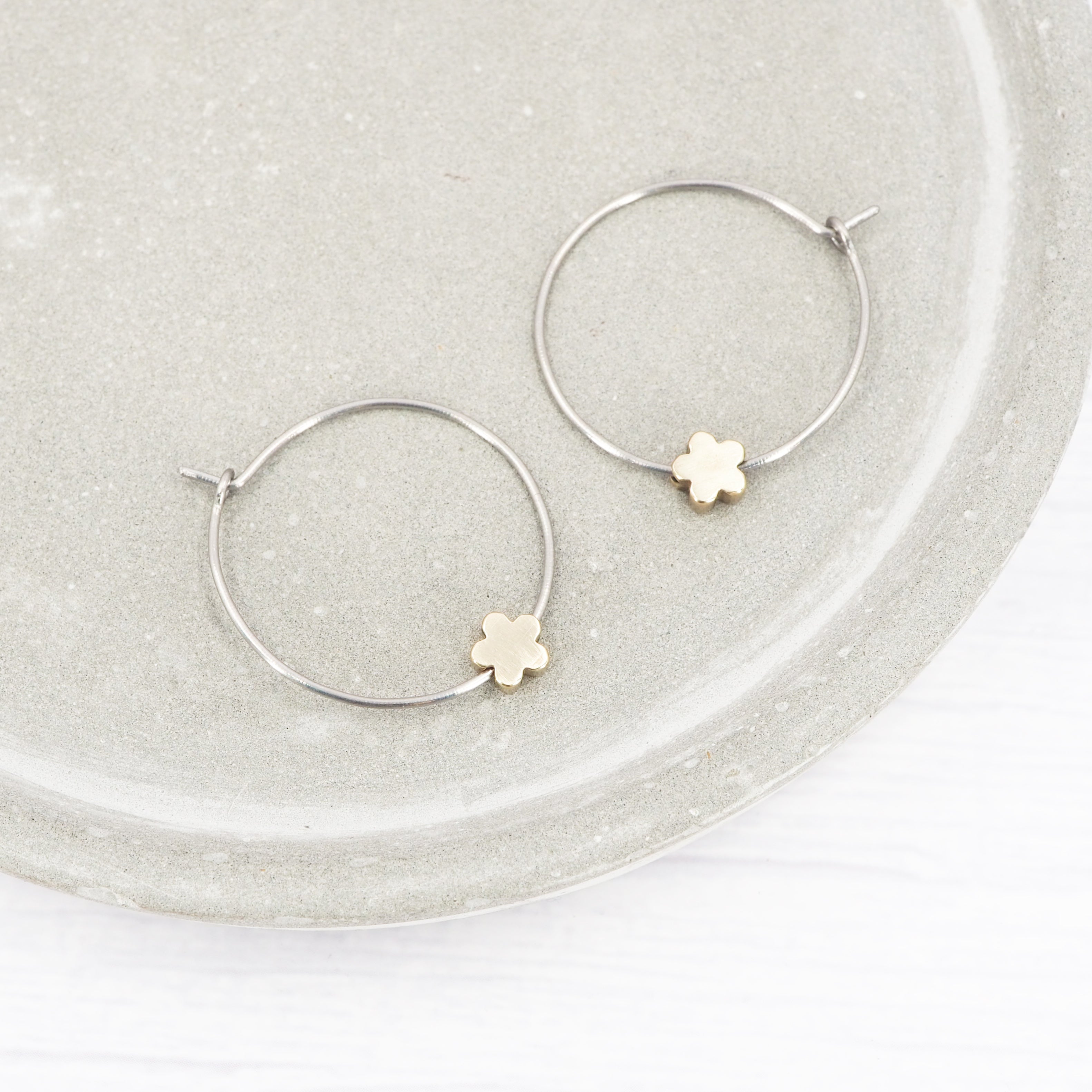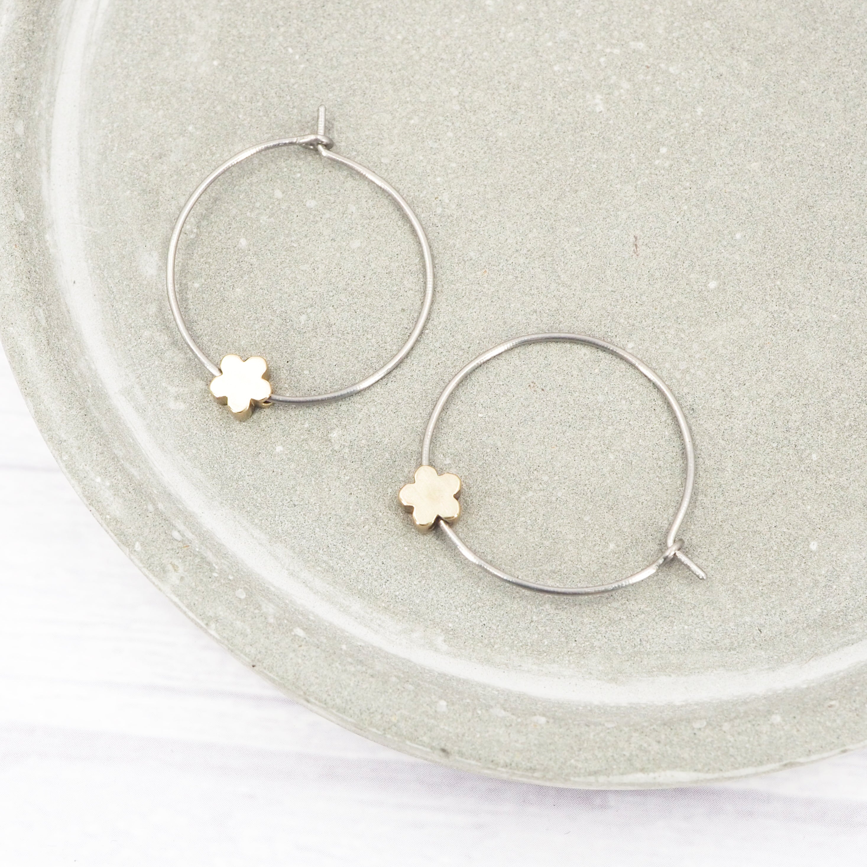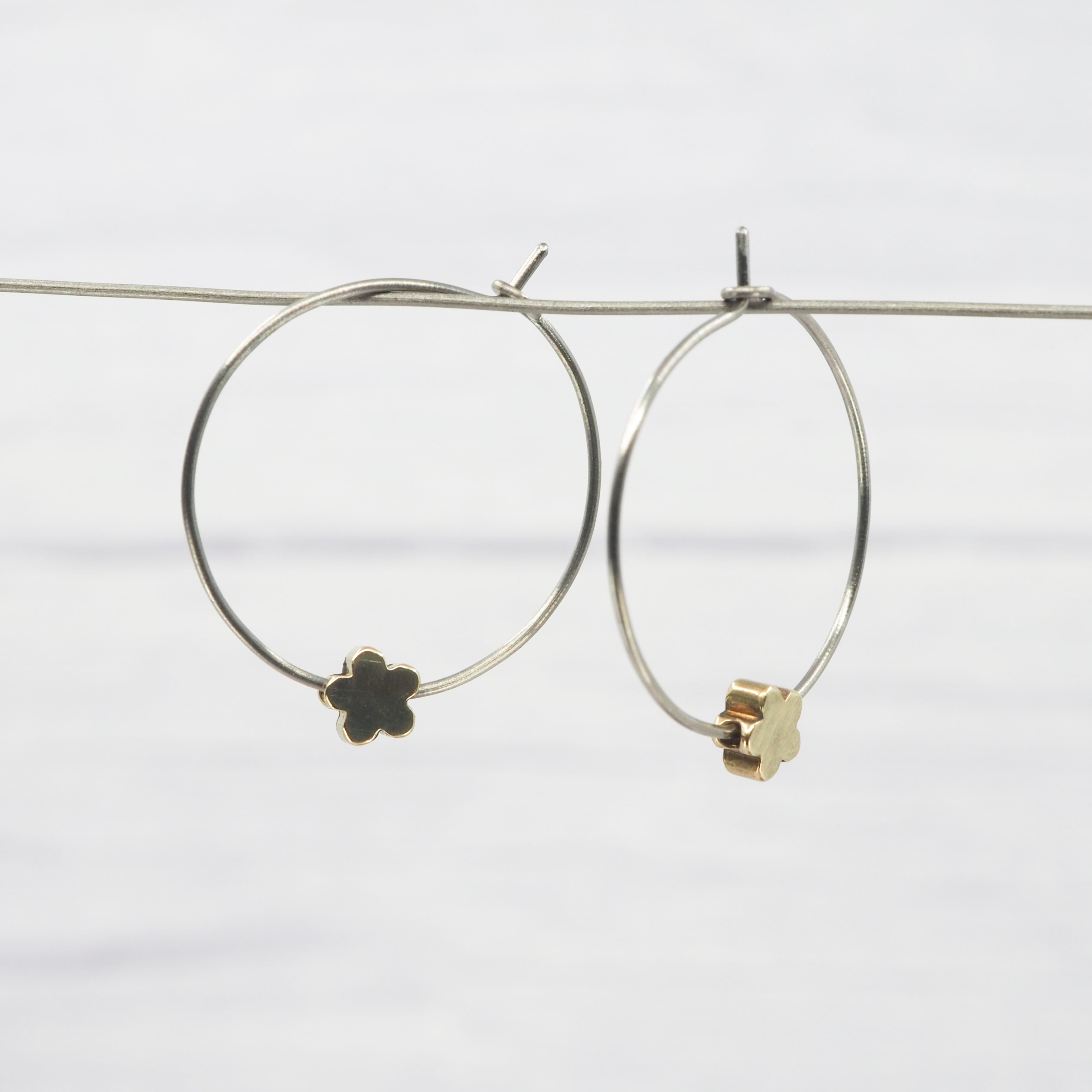 1 inch polished titanium hoops - Brass flower charm