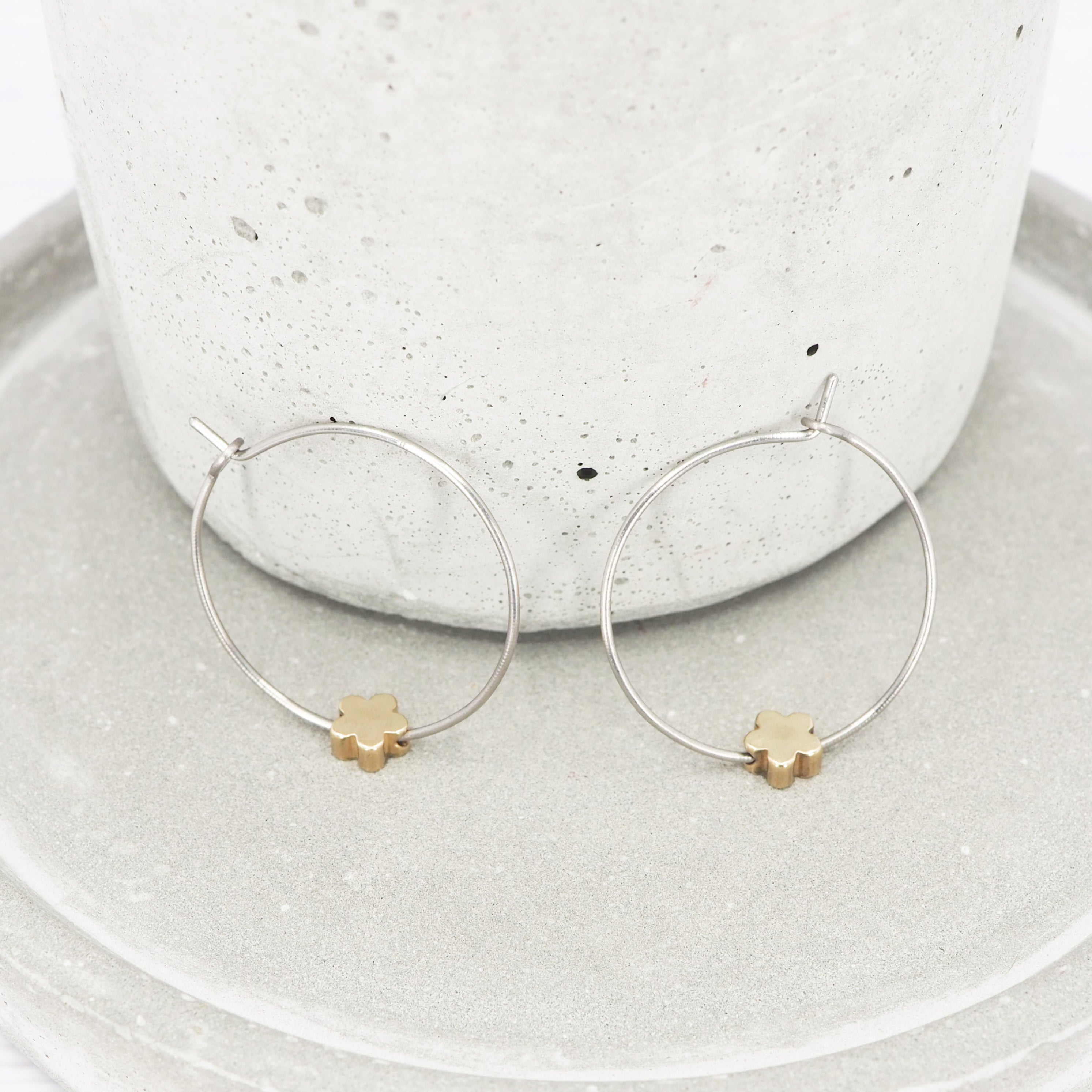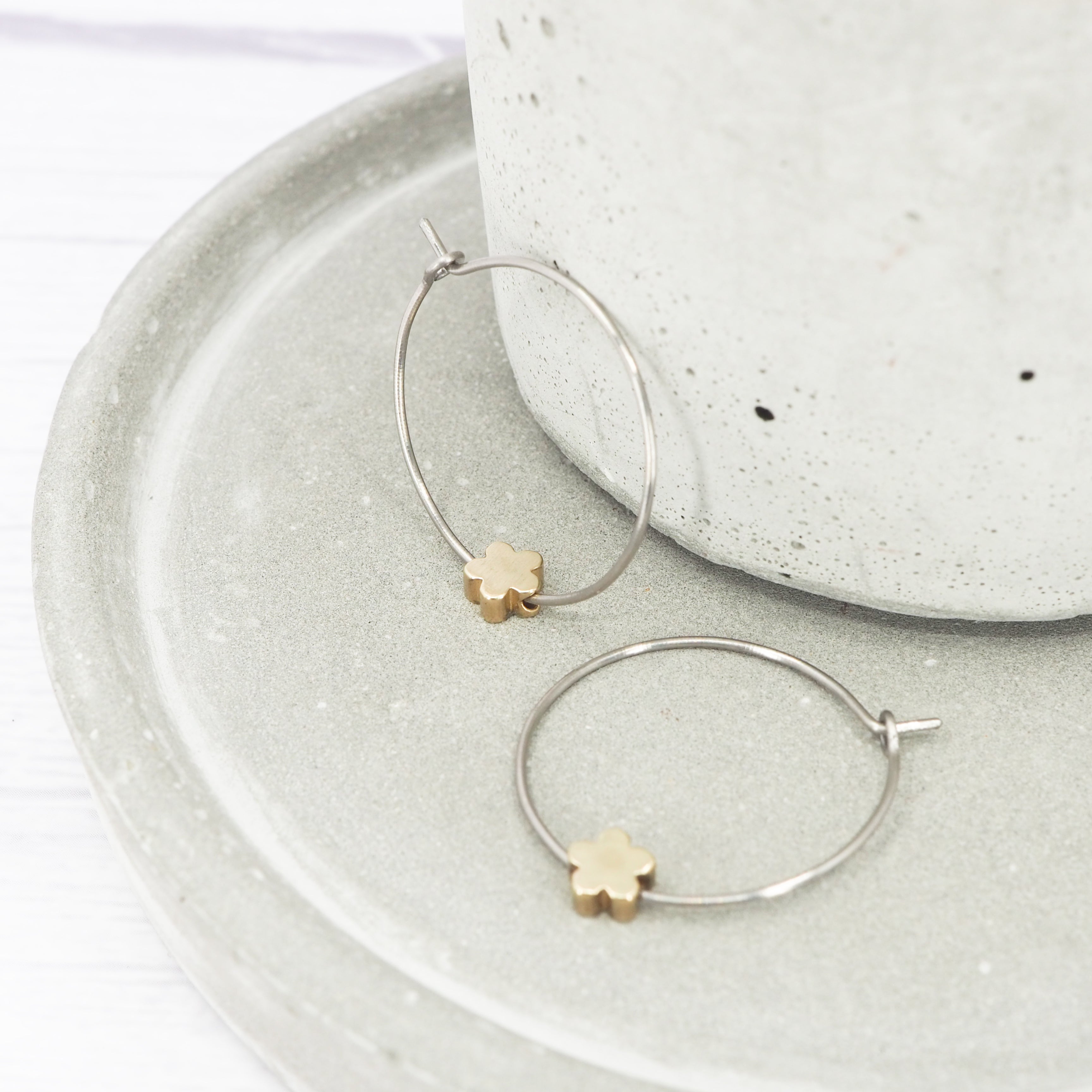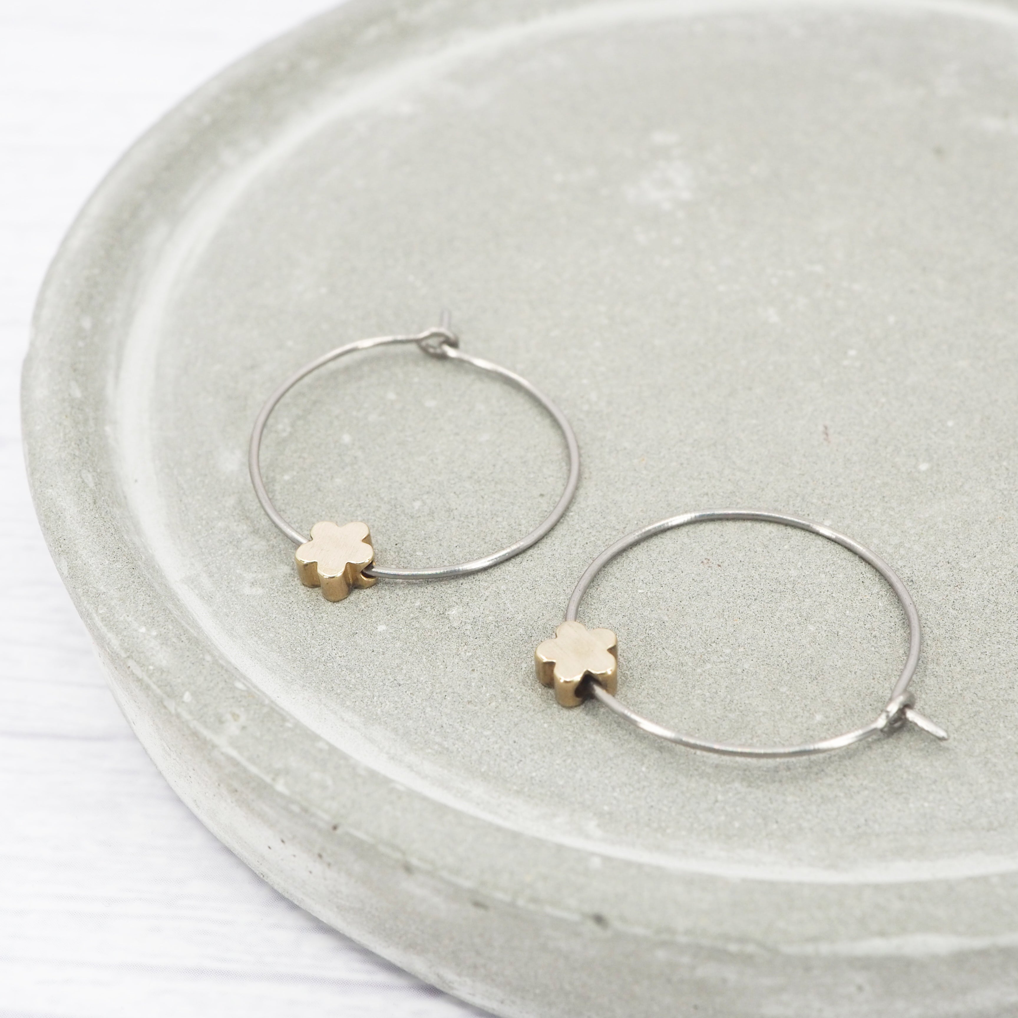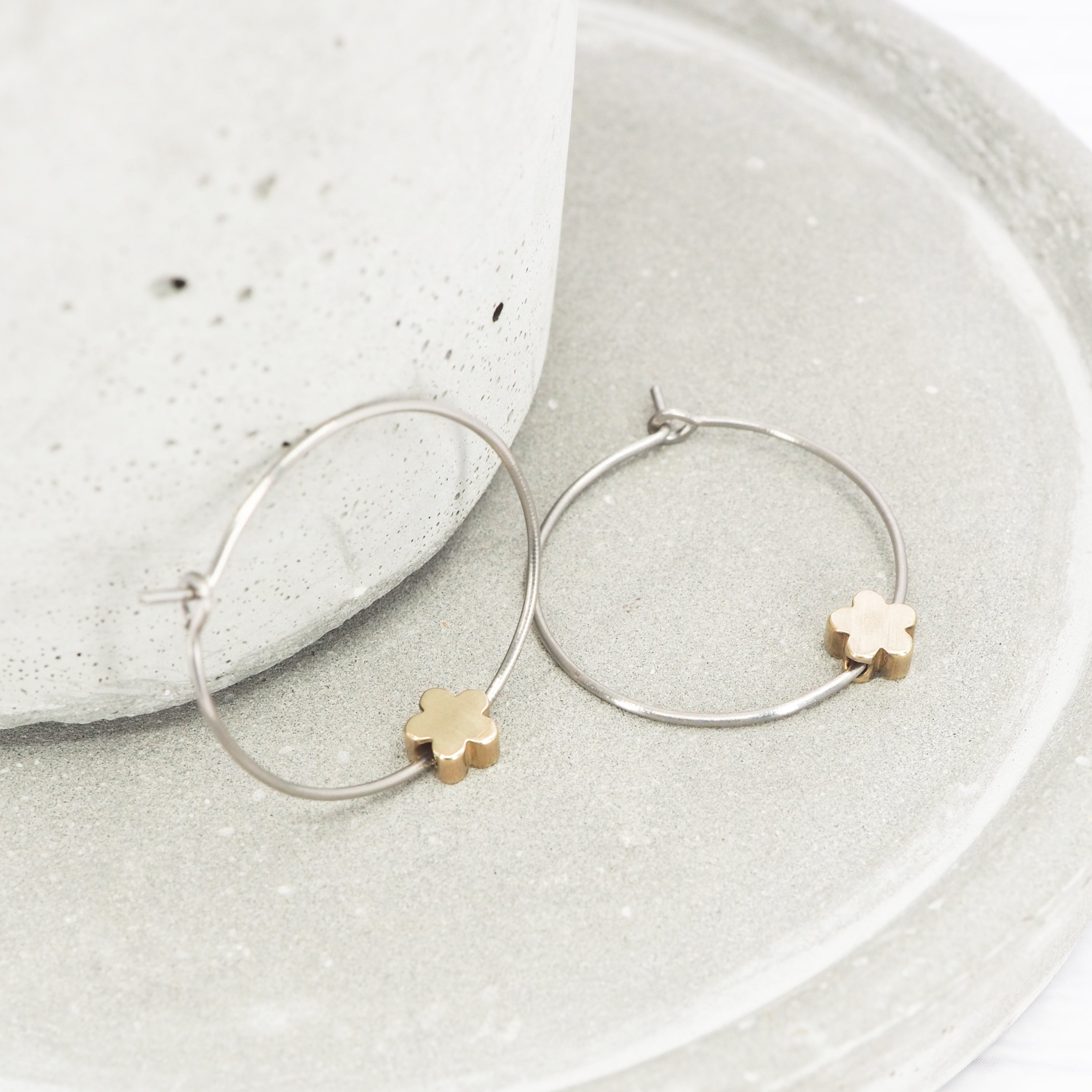1 inch polished titanium hoops - Brass flower charm