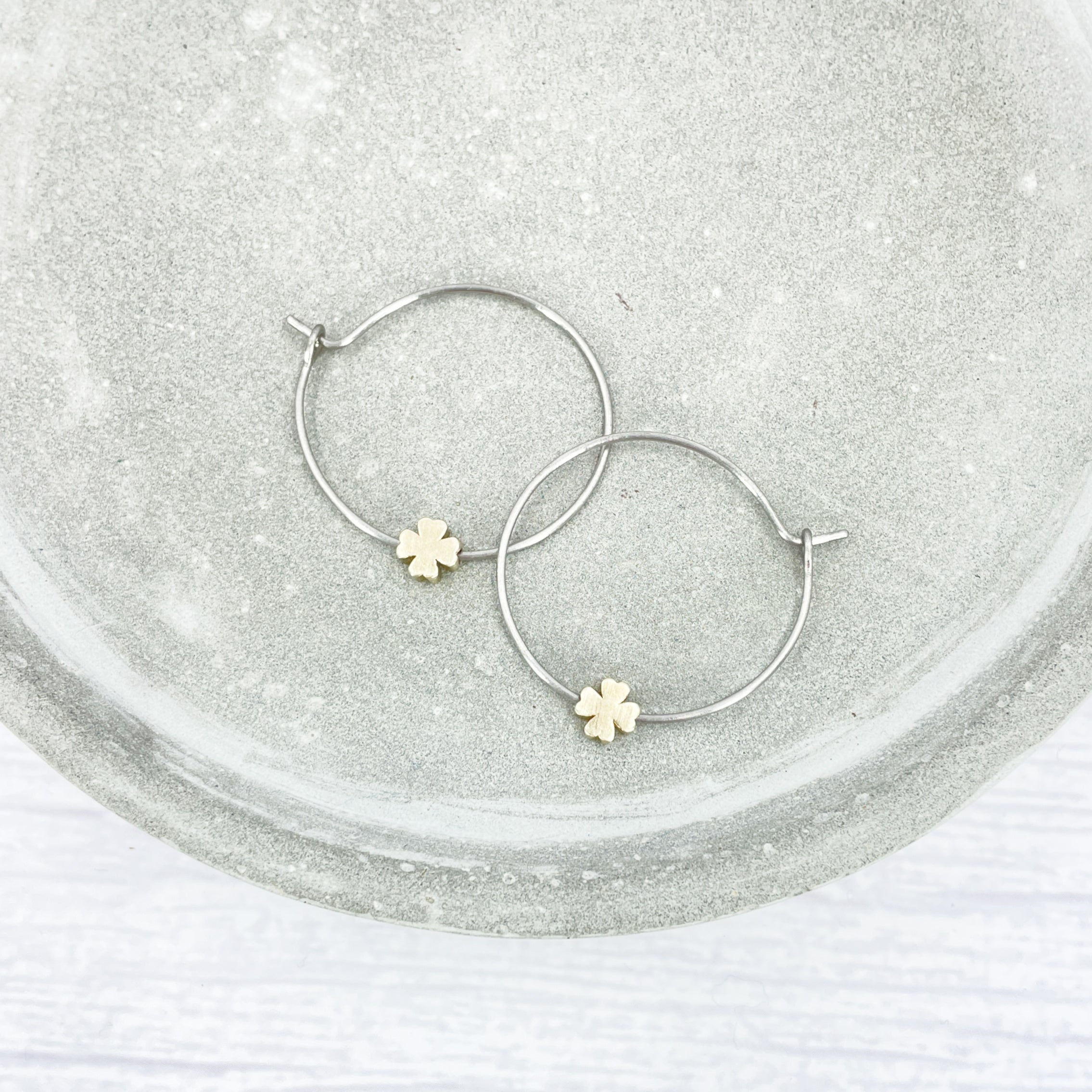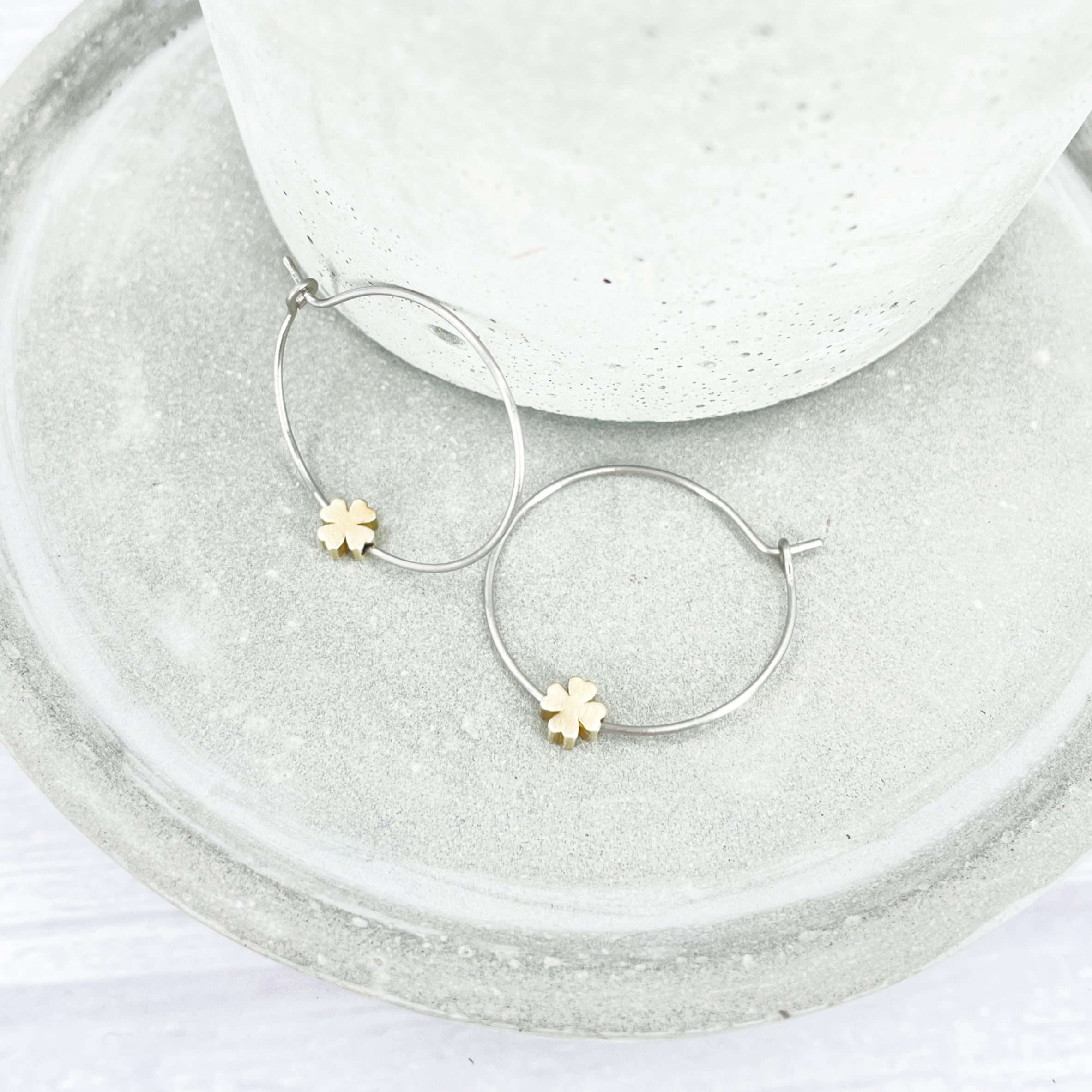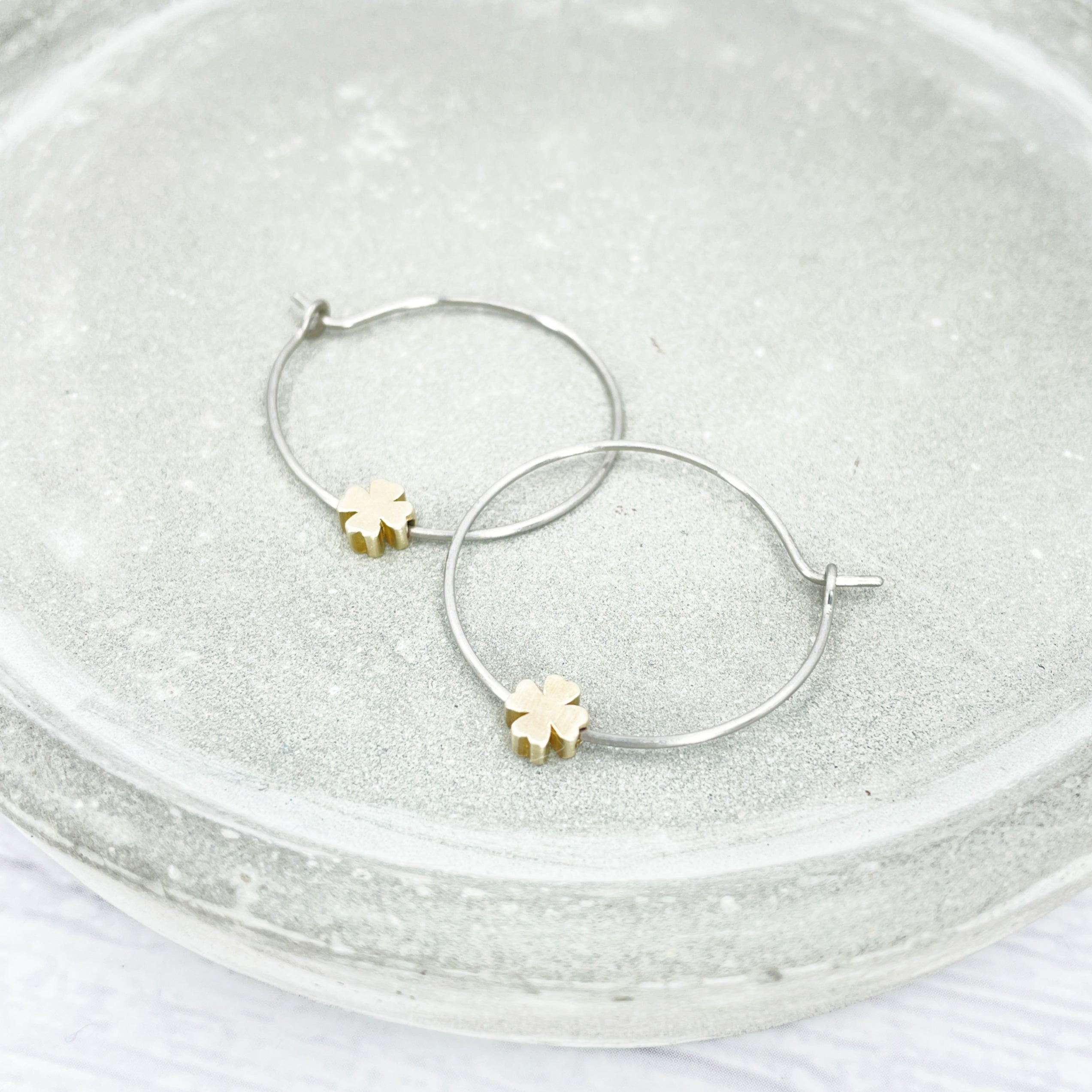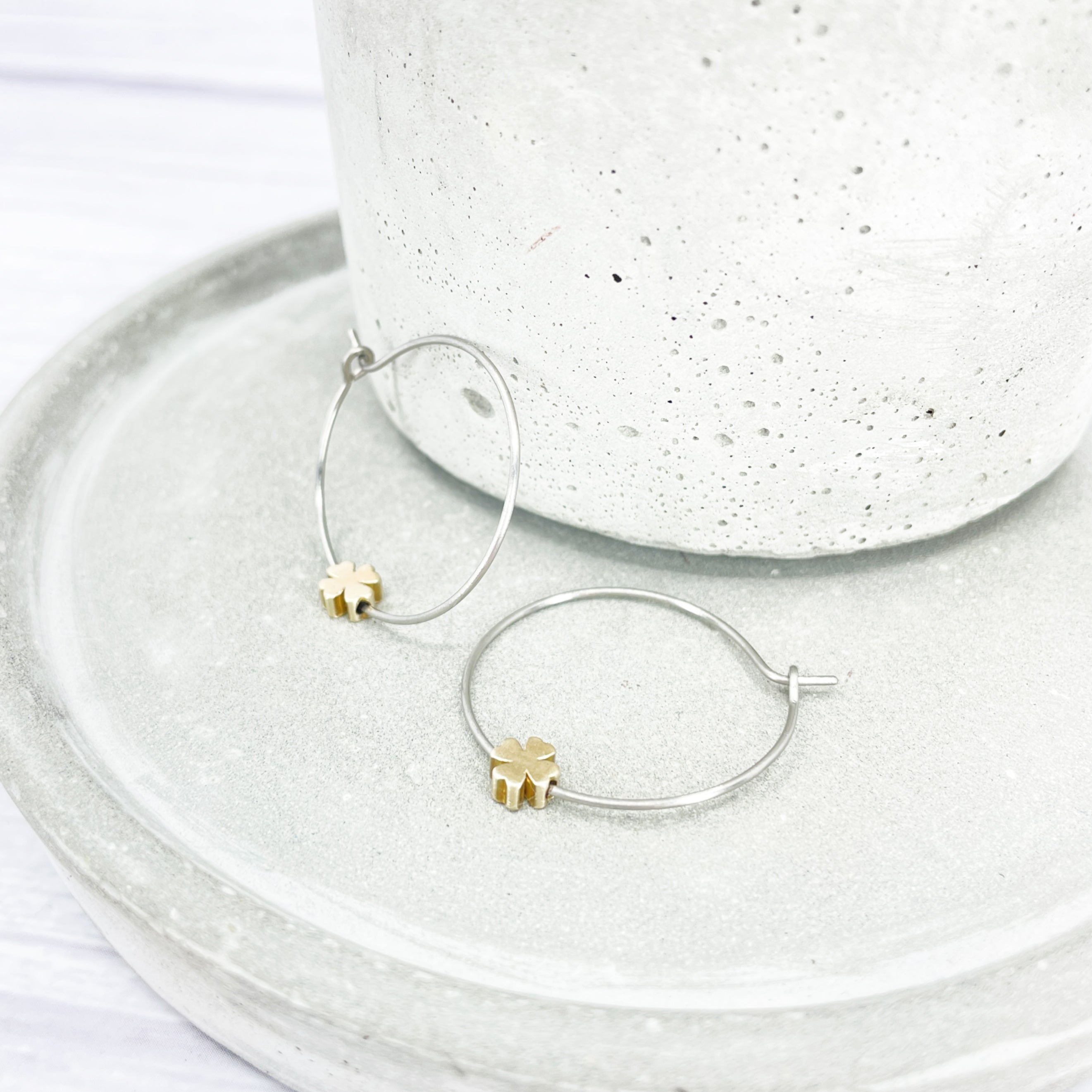 1 inch polished titanium hoops - Brass four leaf clover charm