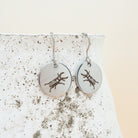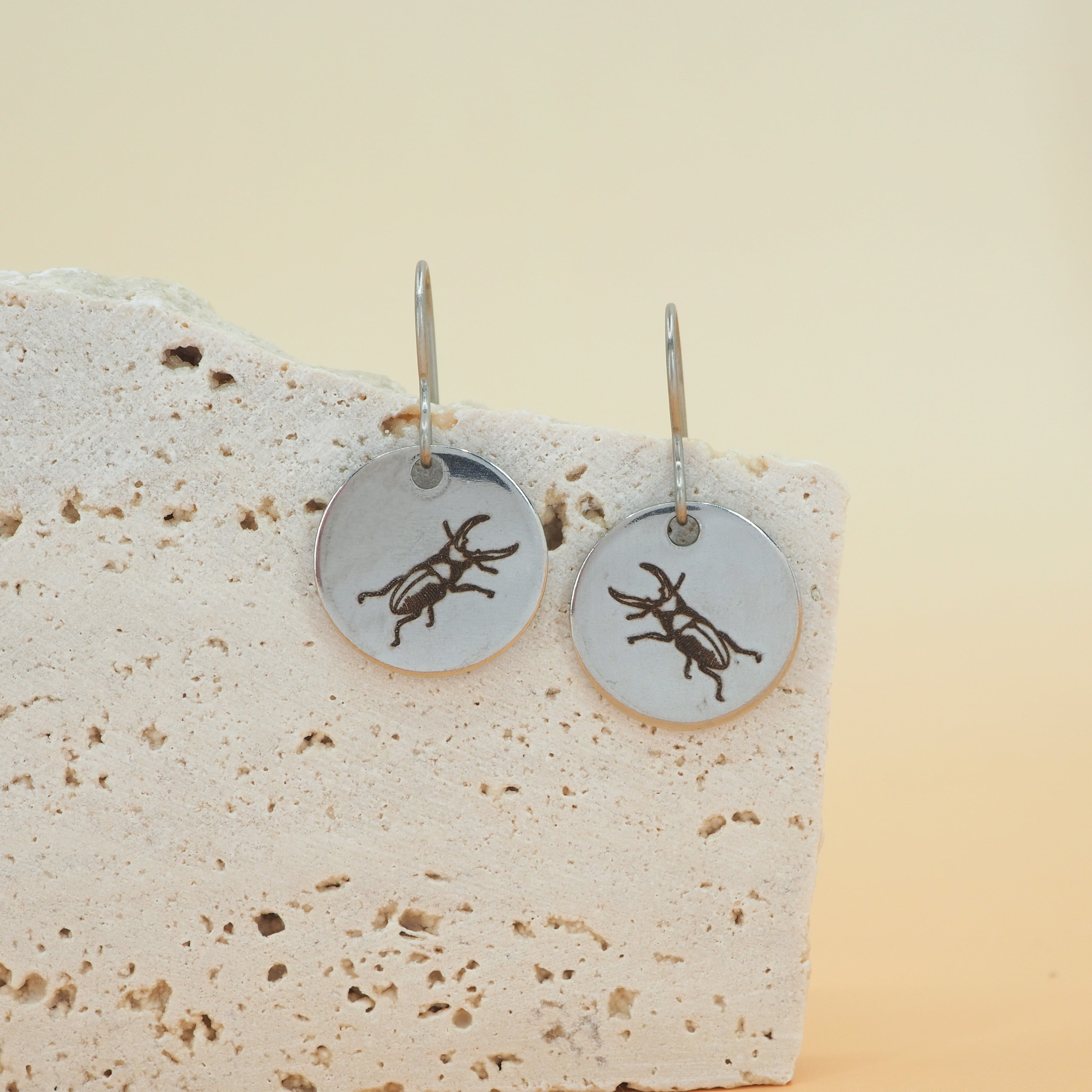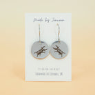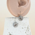 15mm round stainless steel laser etched dangle earrings.