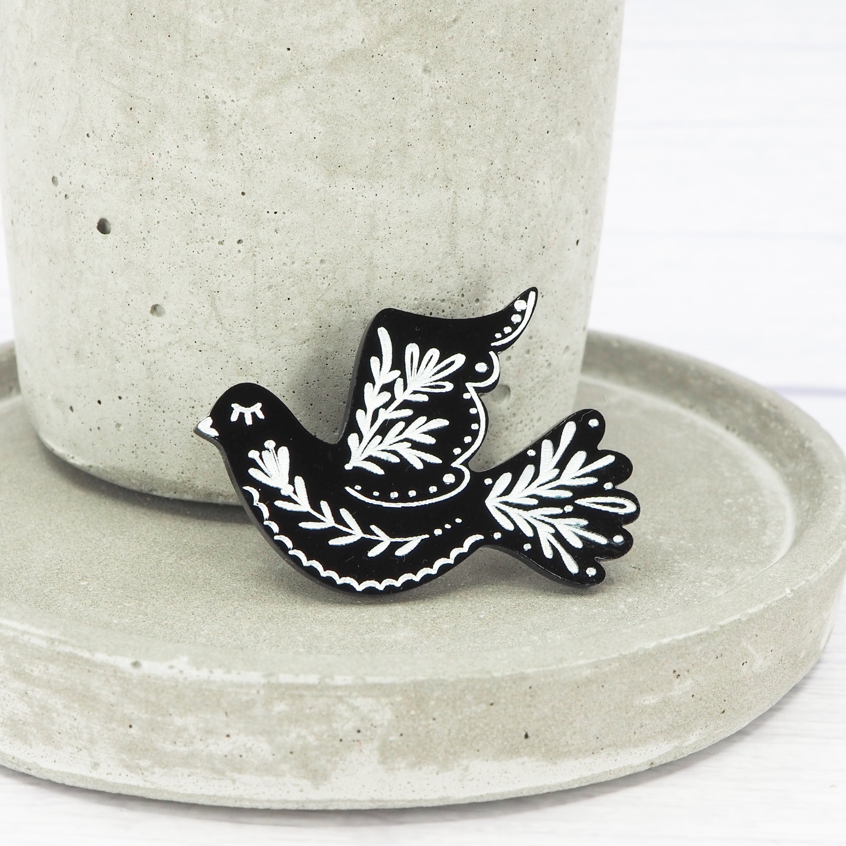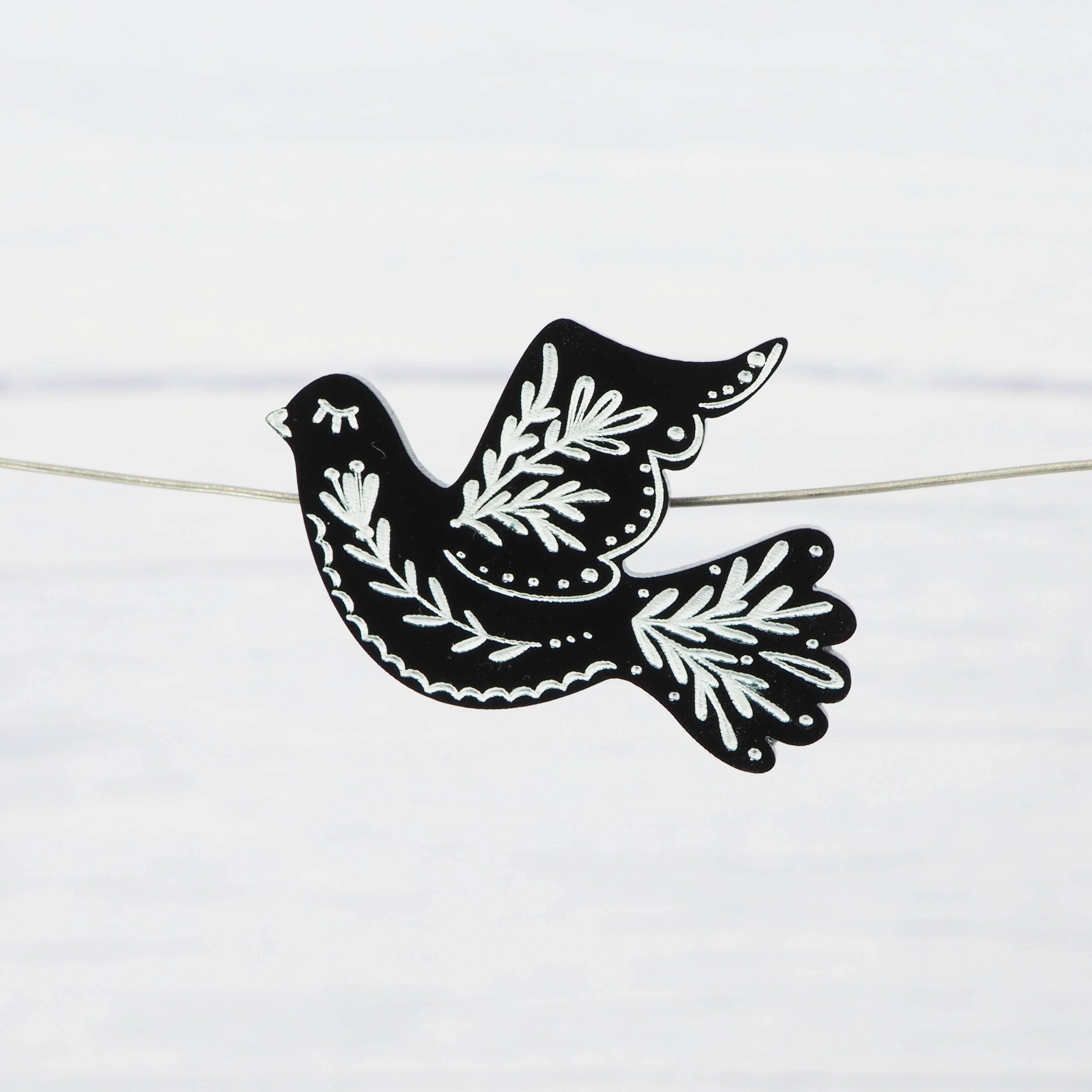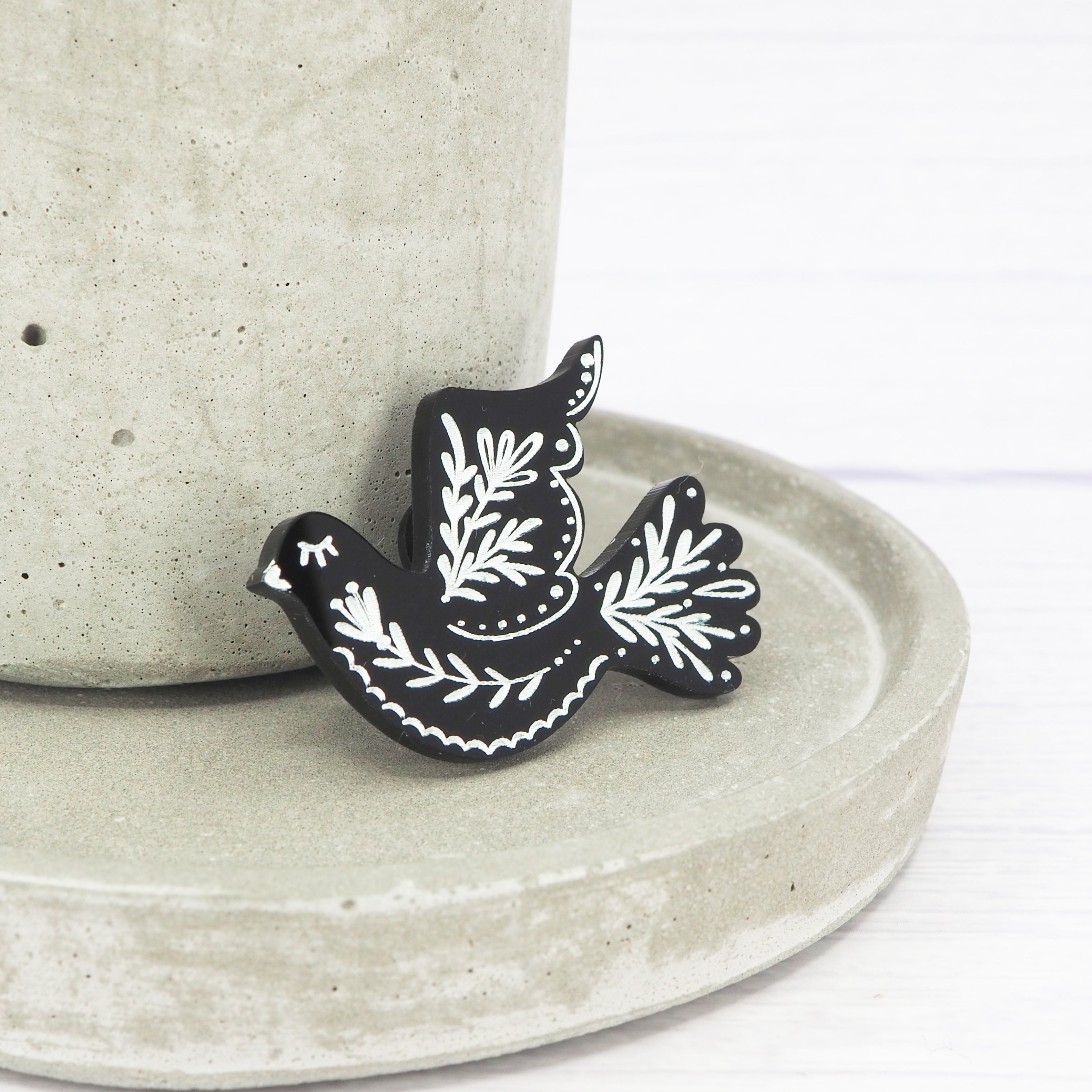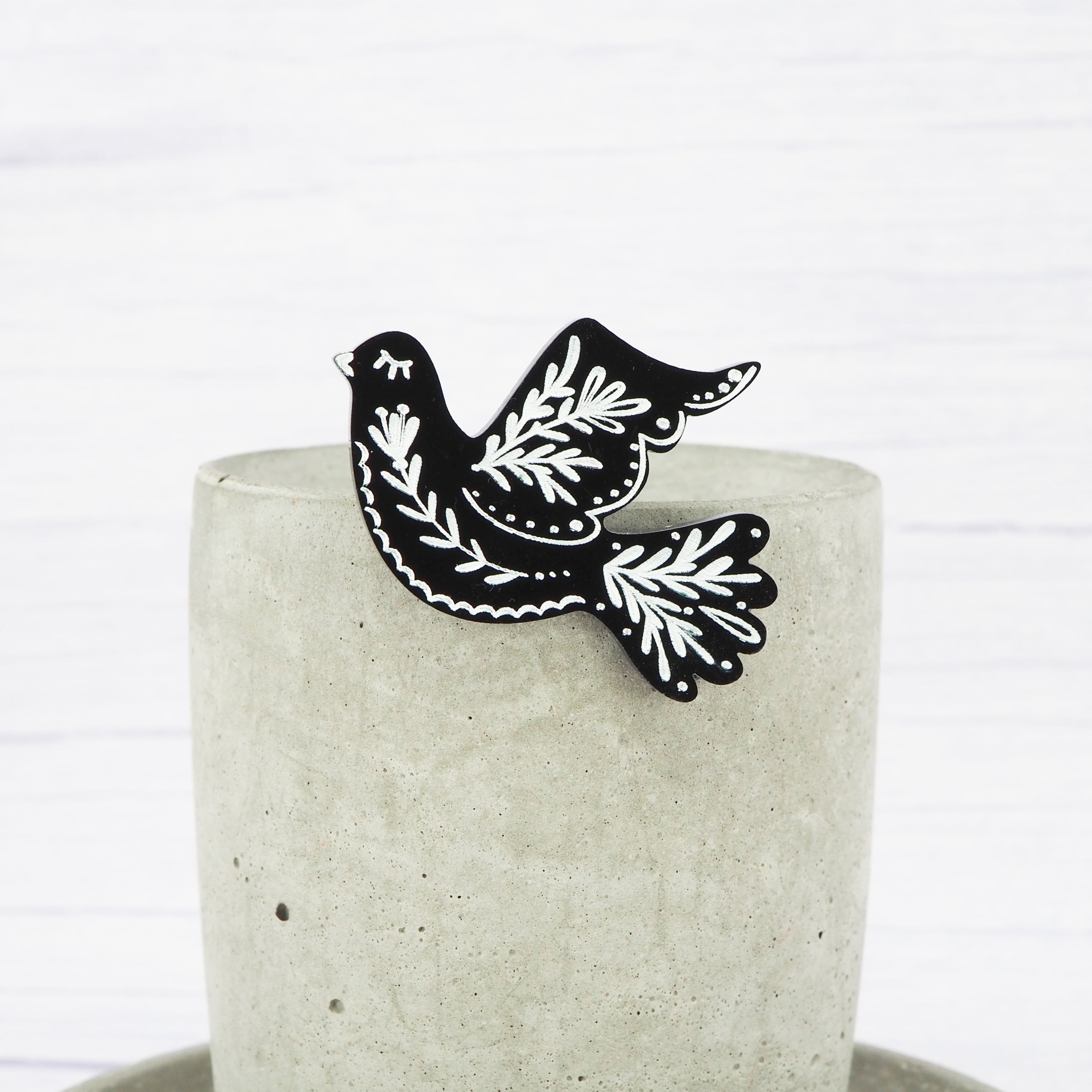Black folk engraved bird brooch.