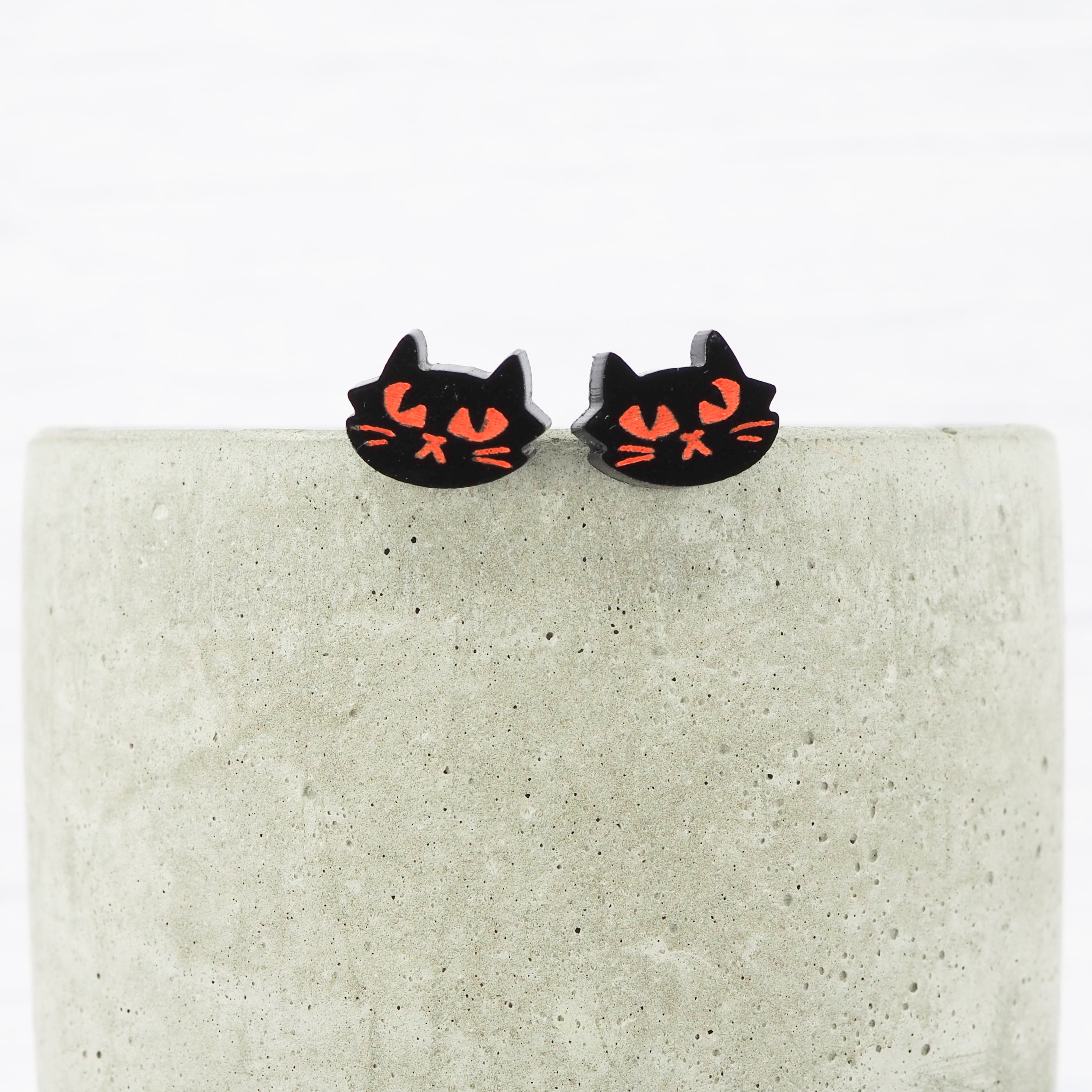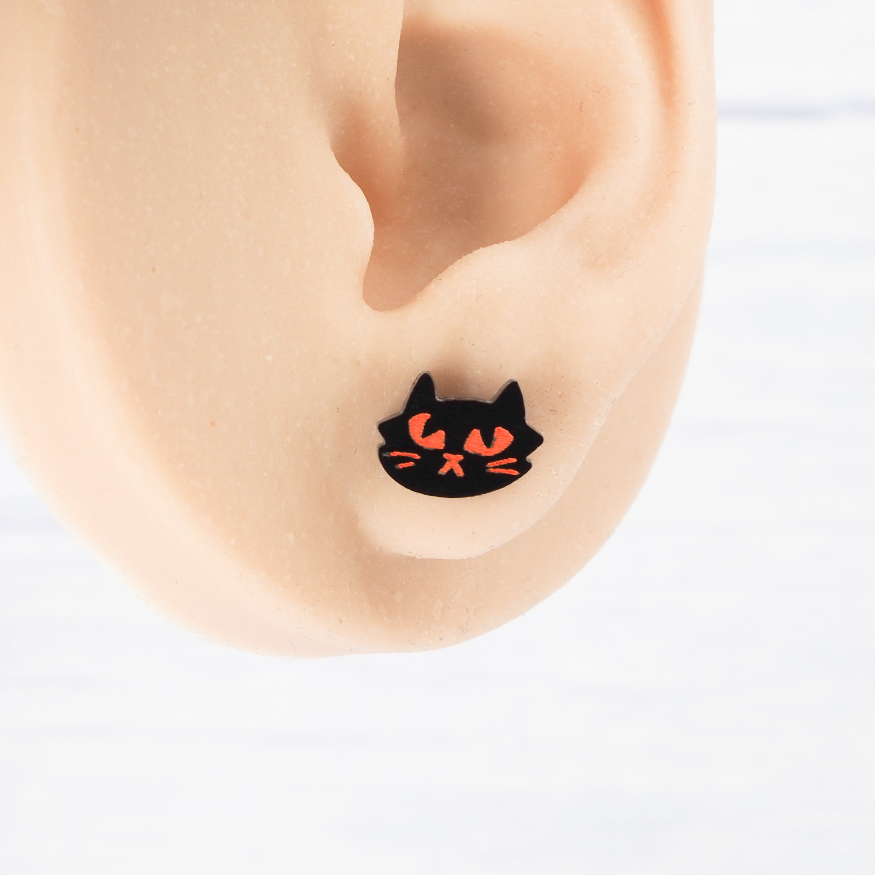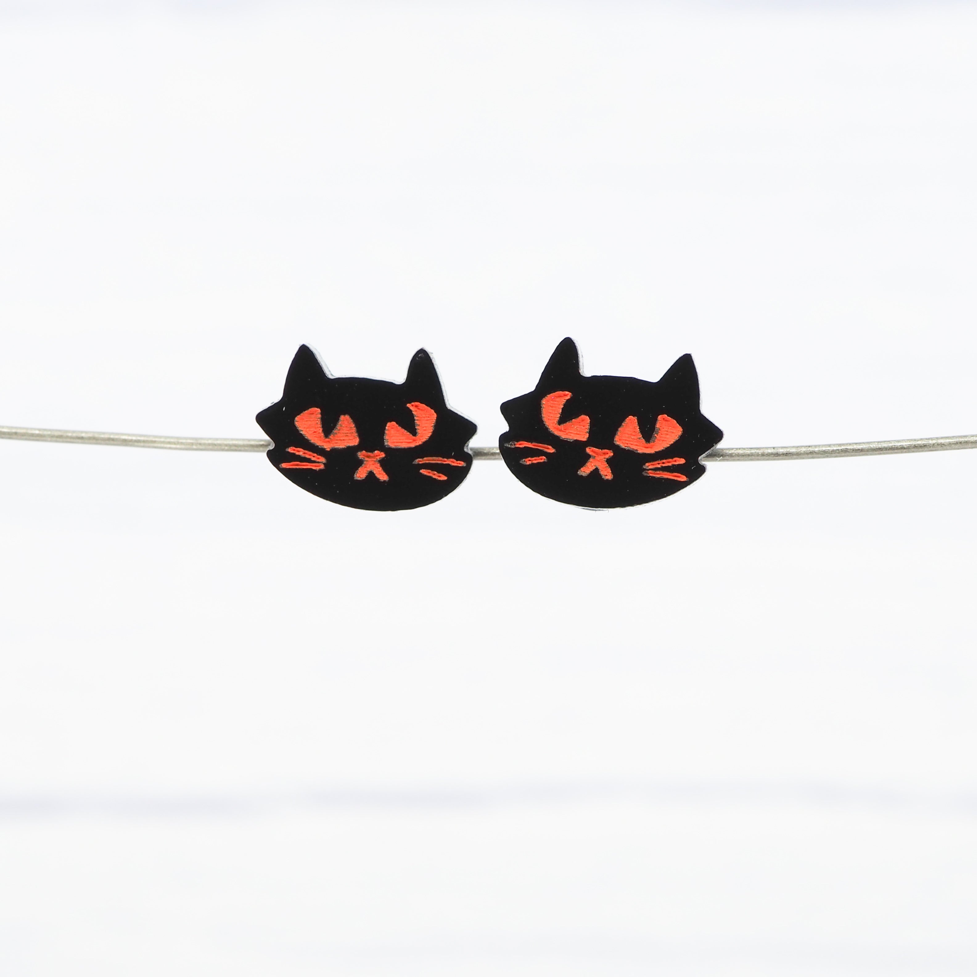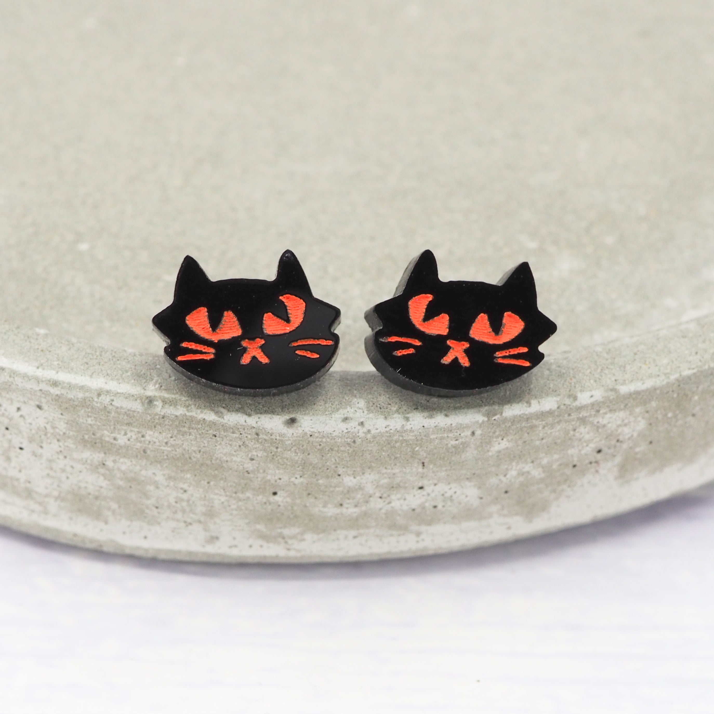 Black acrylic Orange eyed cat studs with 0.7mm ear stems.