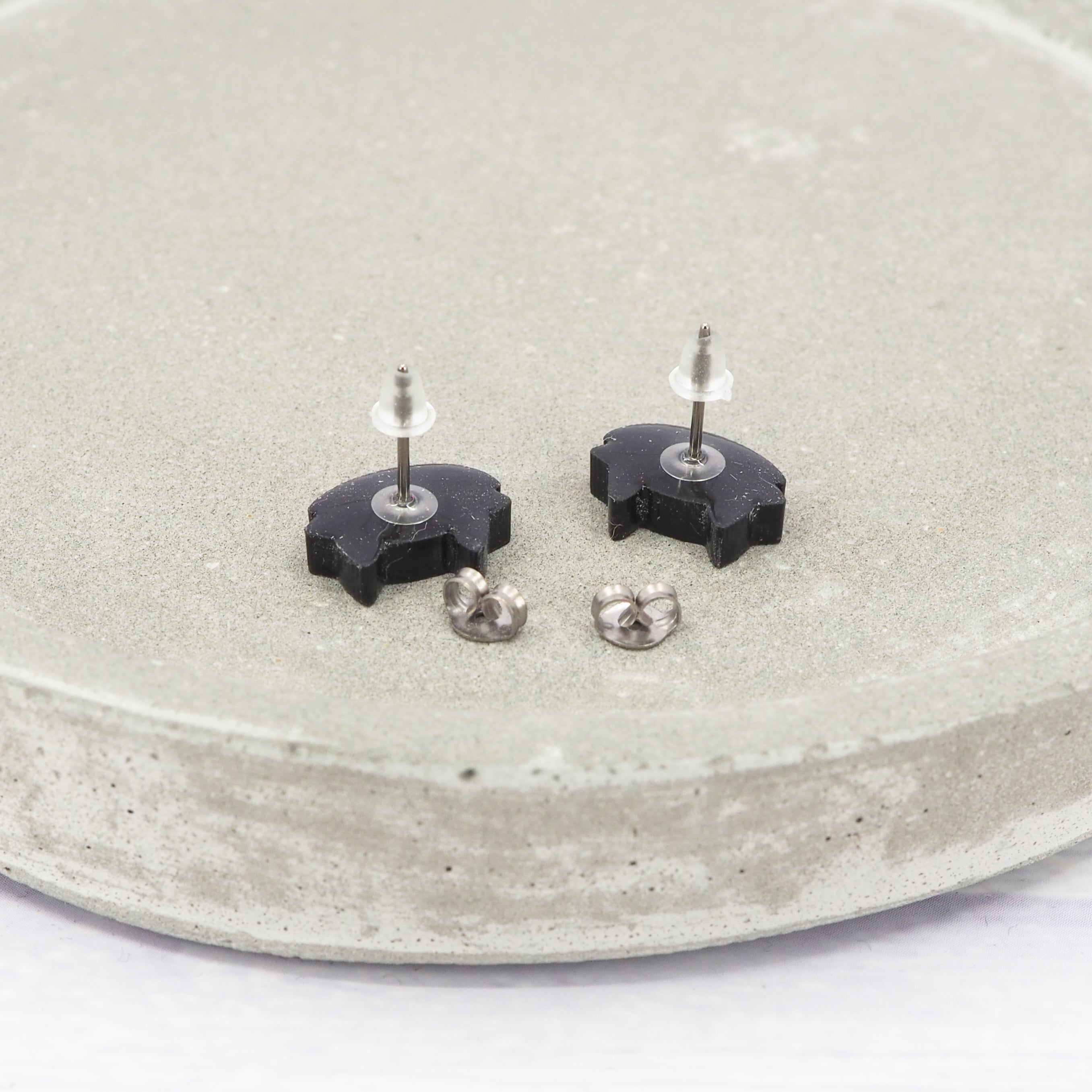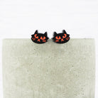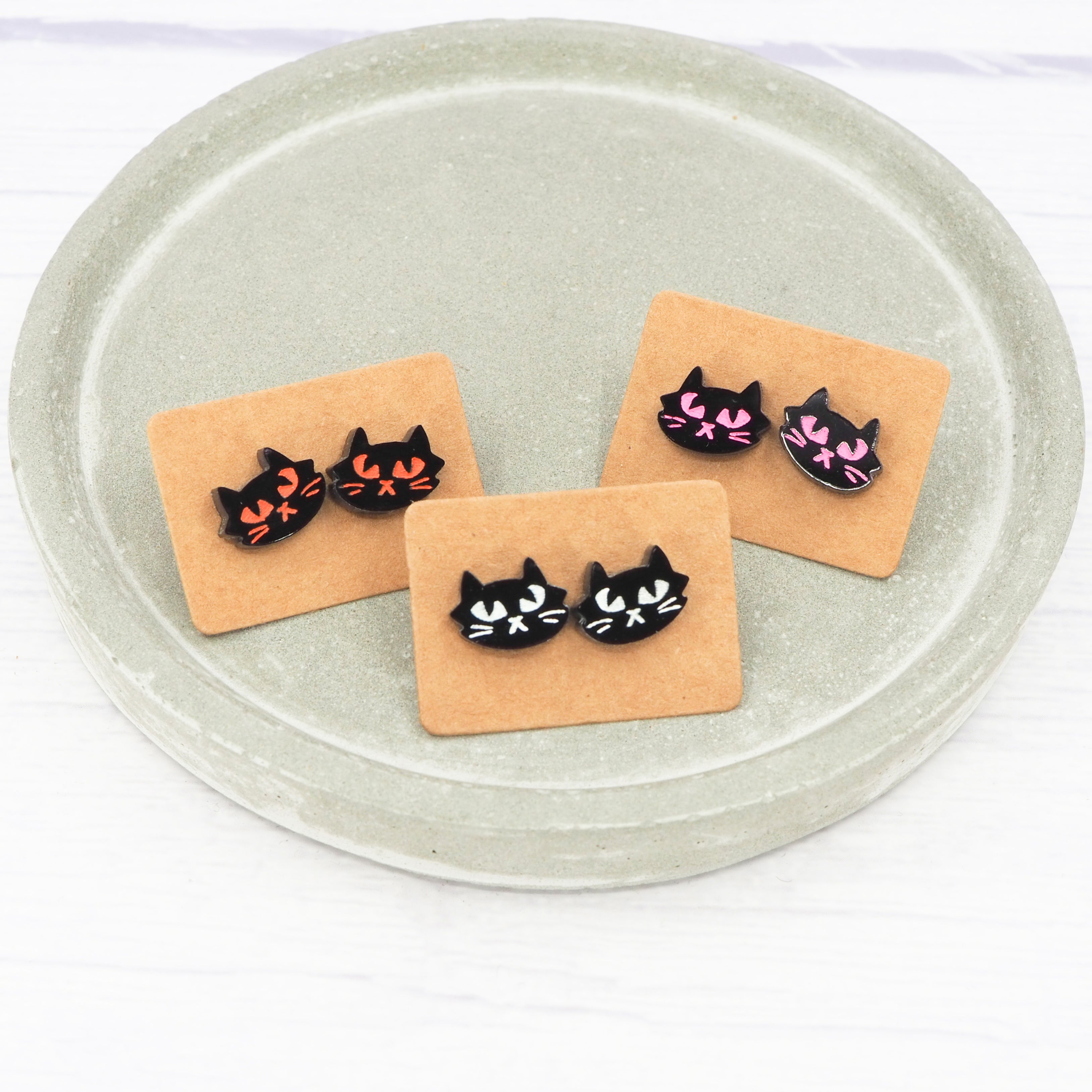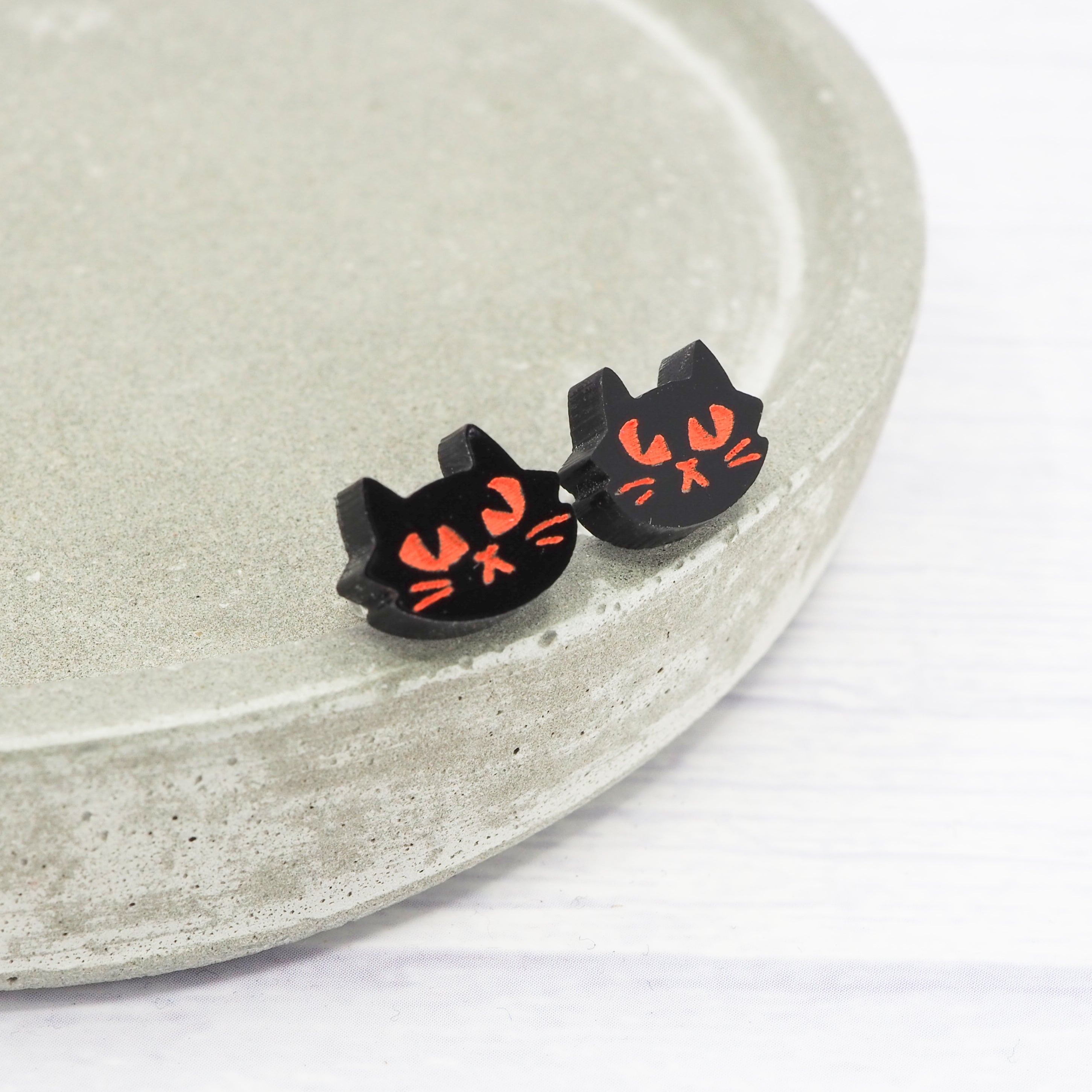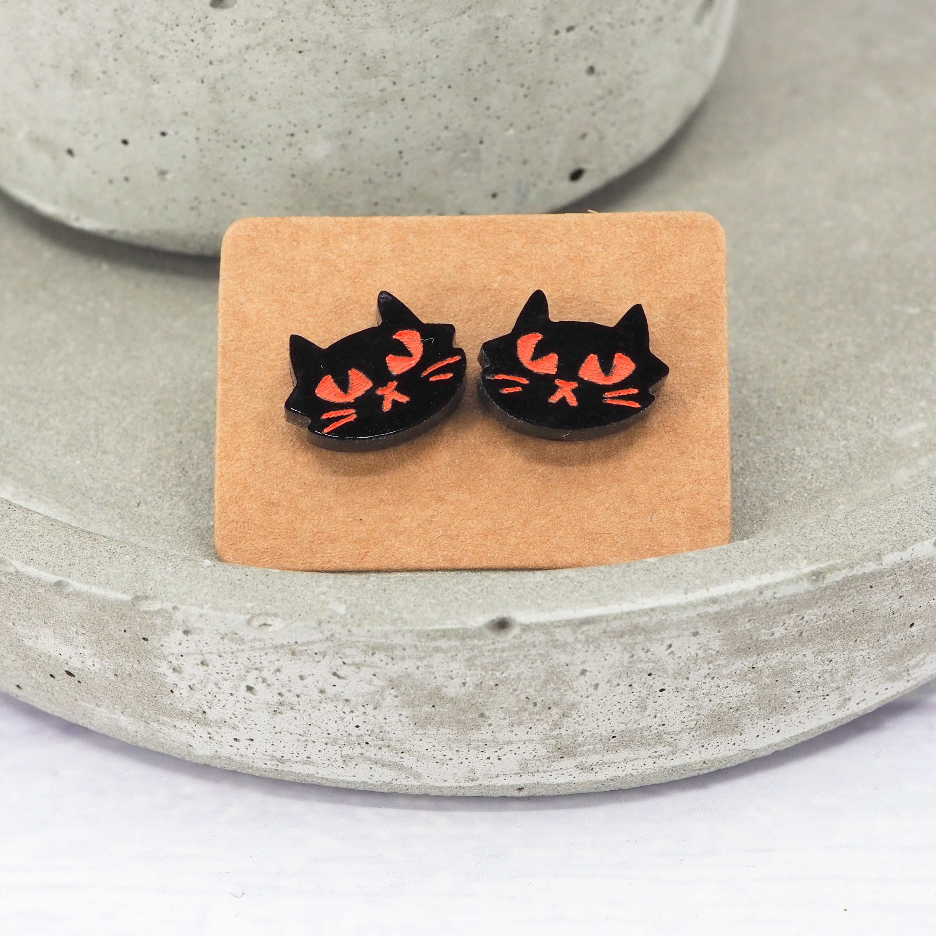 Black acrylic Orange eyed cat studs with 0.7mm ear stems.