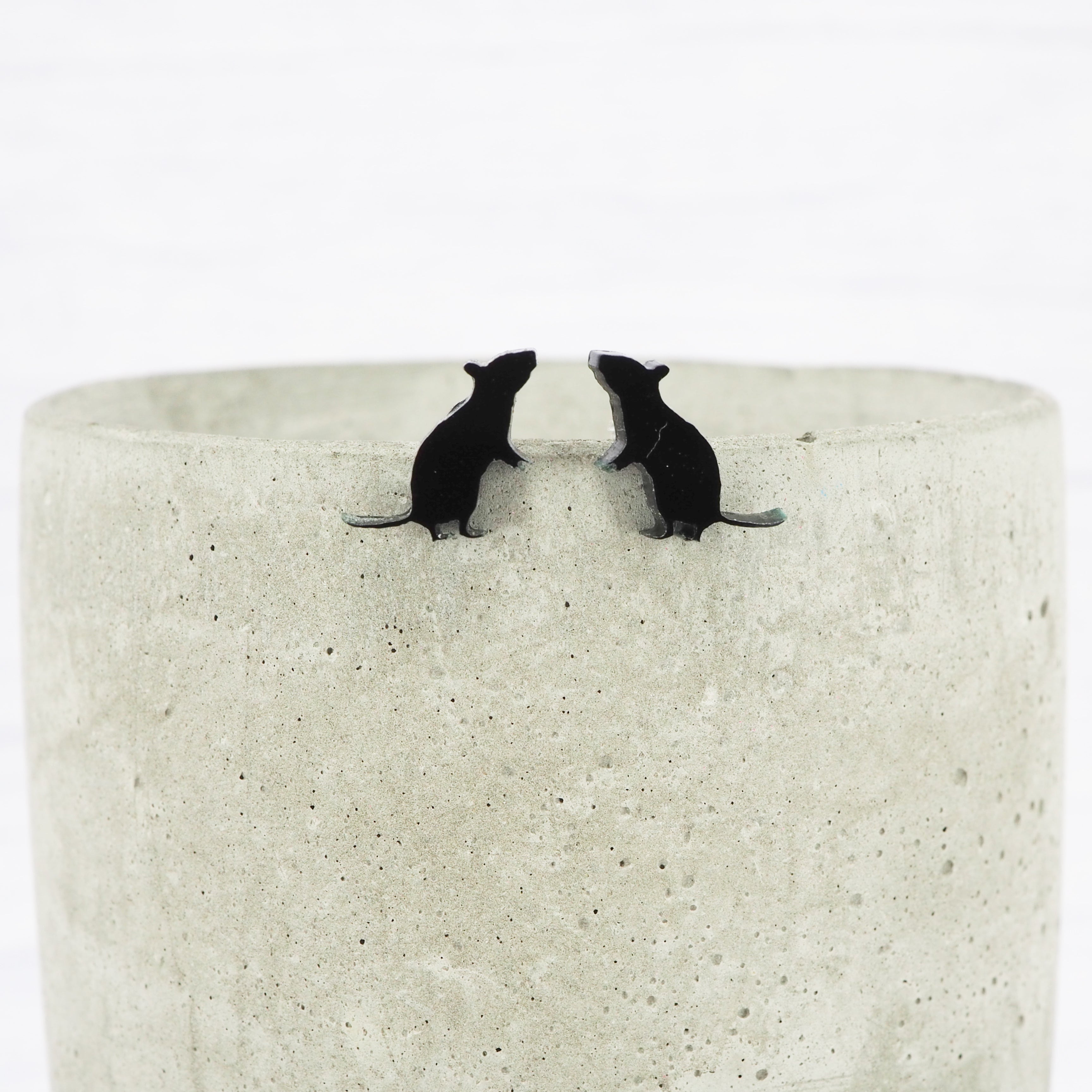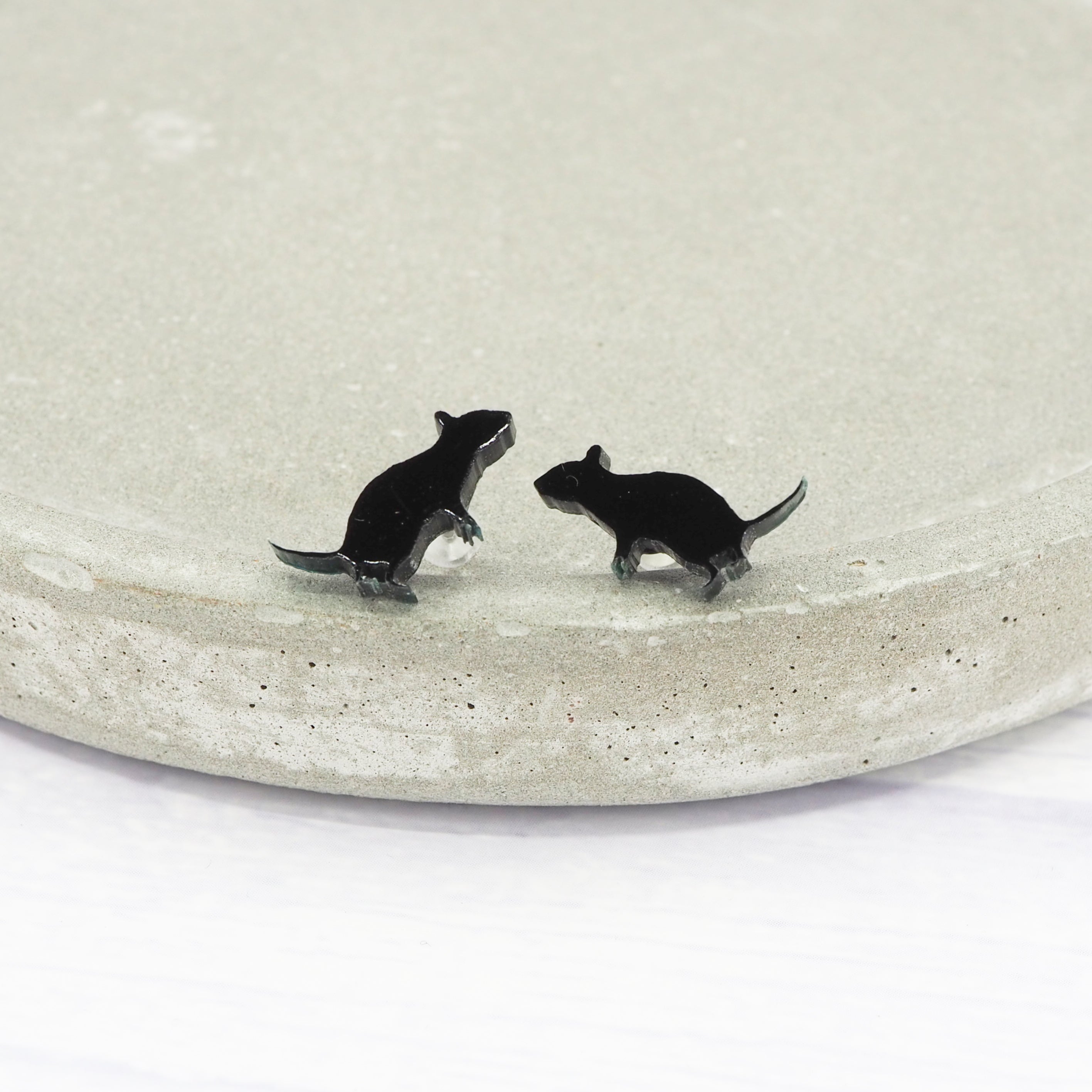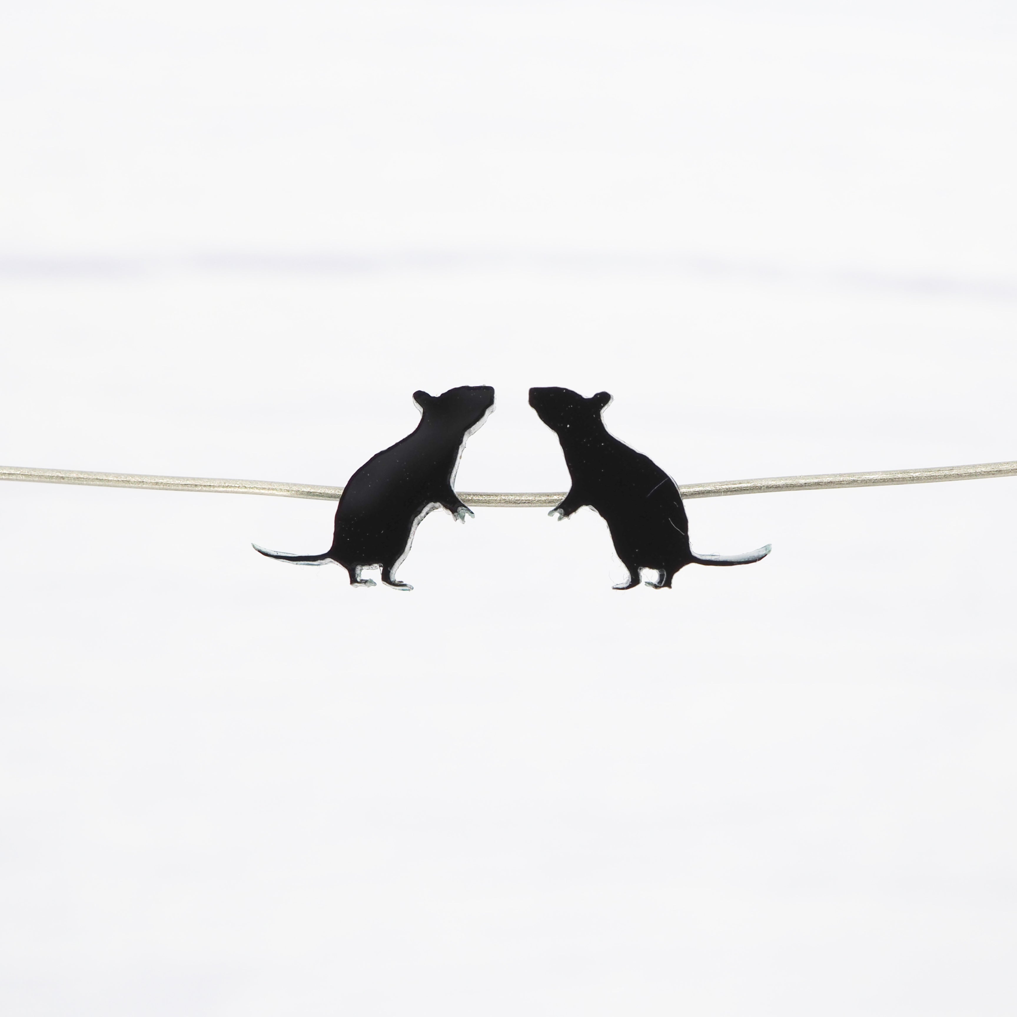Black acrylic rat/mouse studs with 0.7mm ear stems.