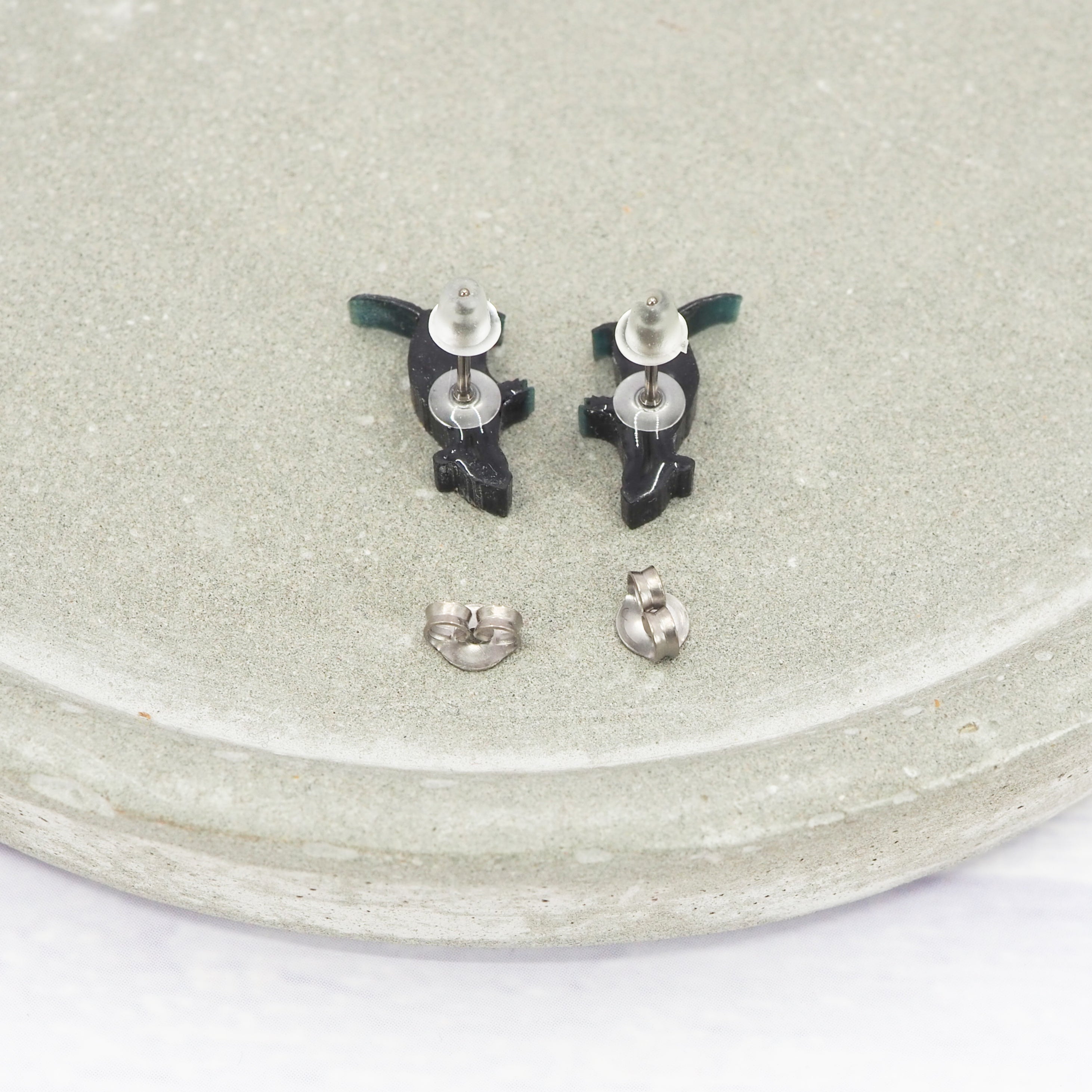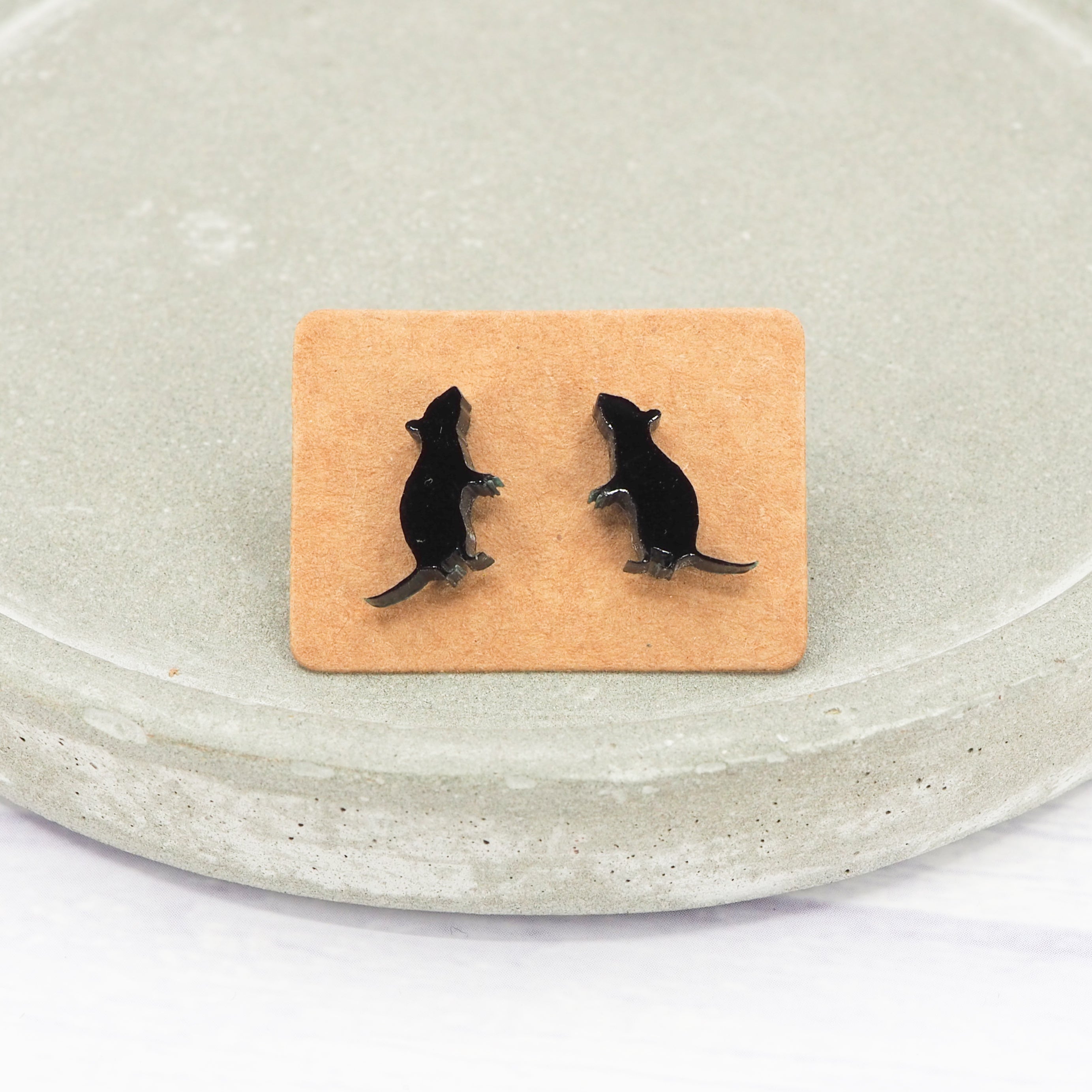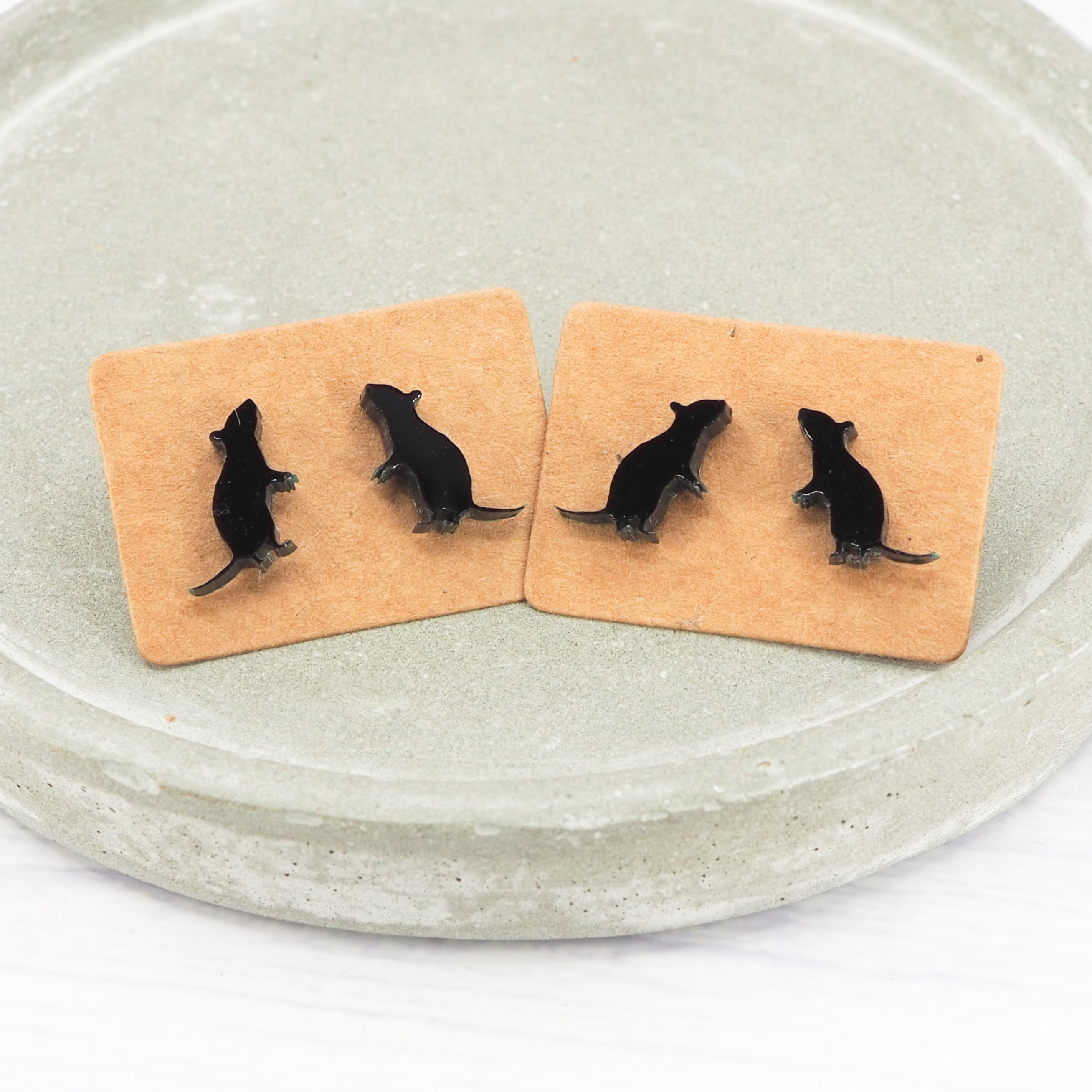 Black acrylic rat/mouse studs with 0.7mm ear stems.