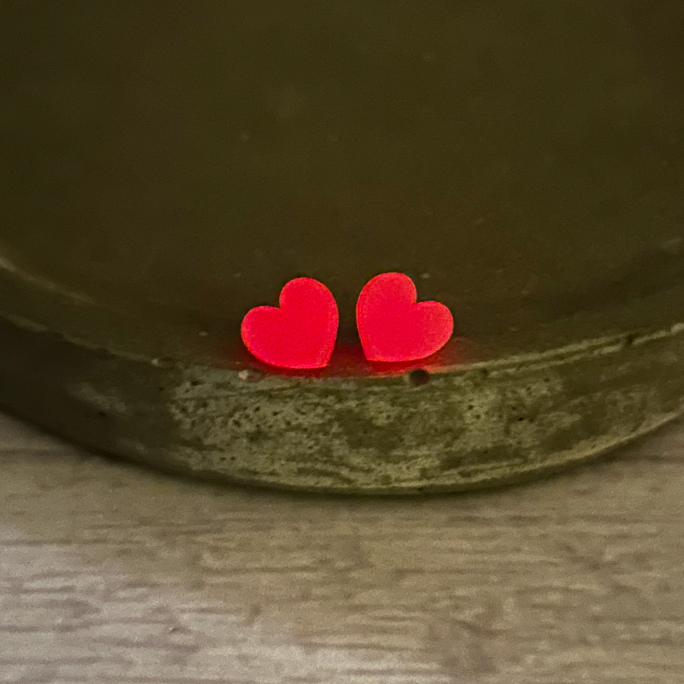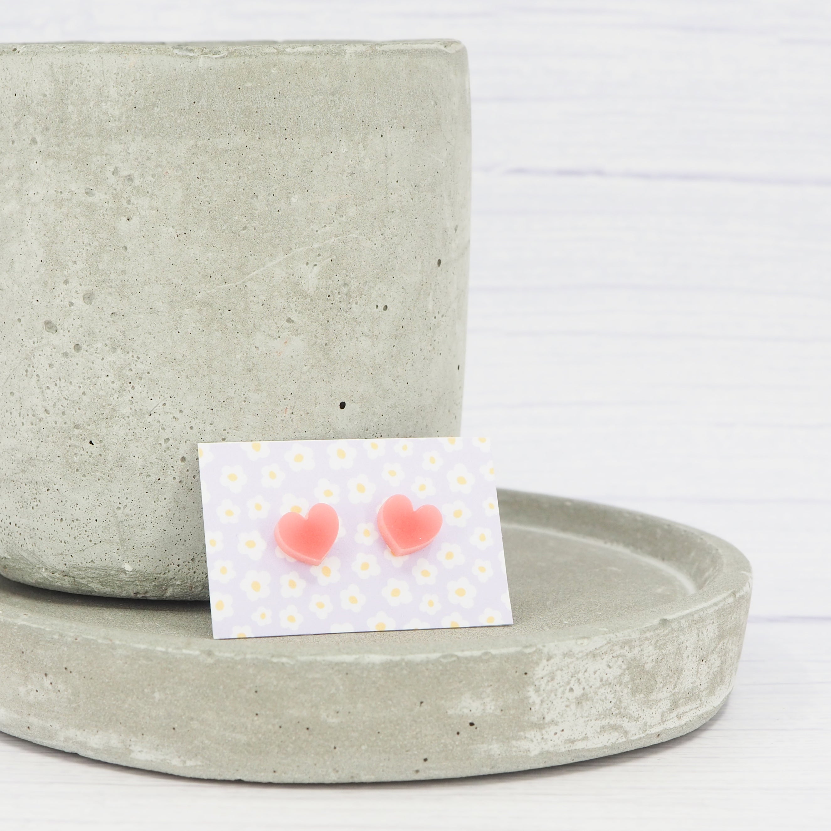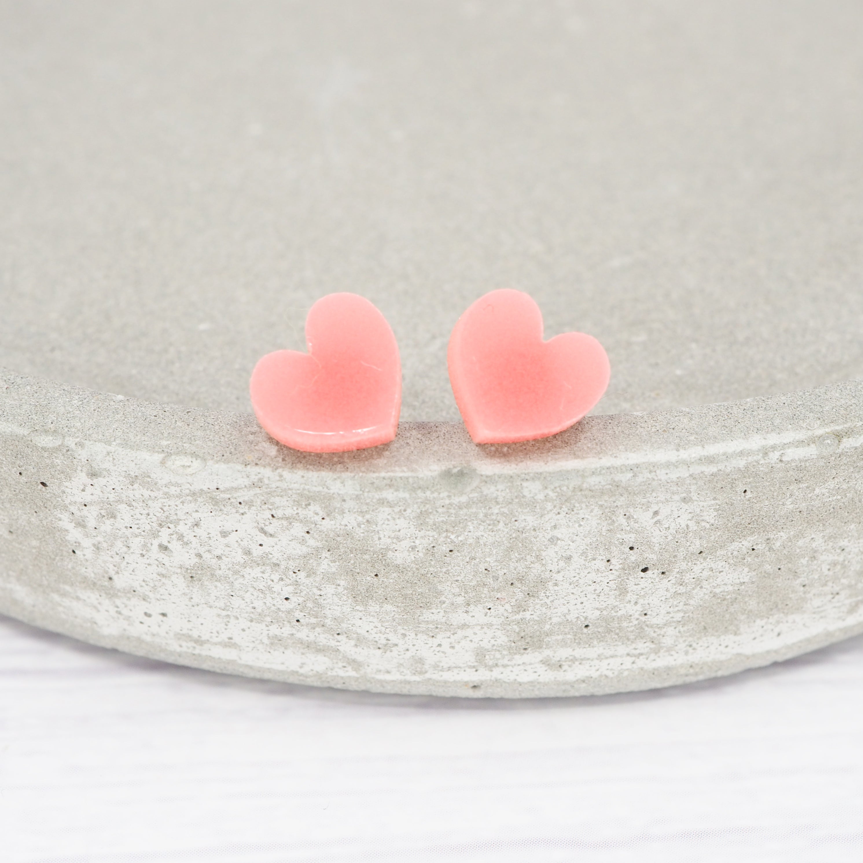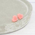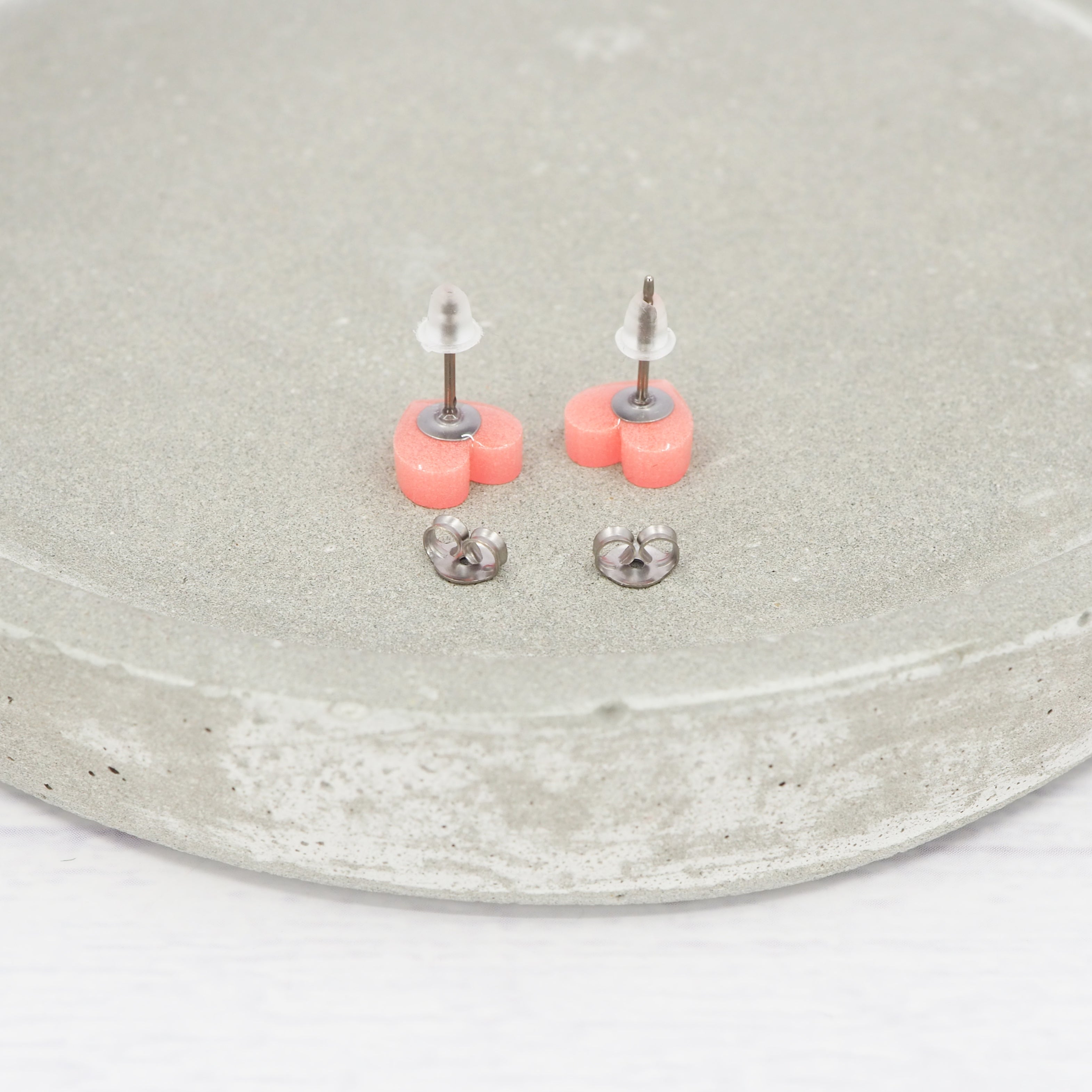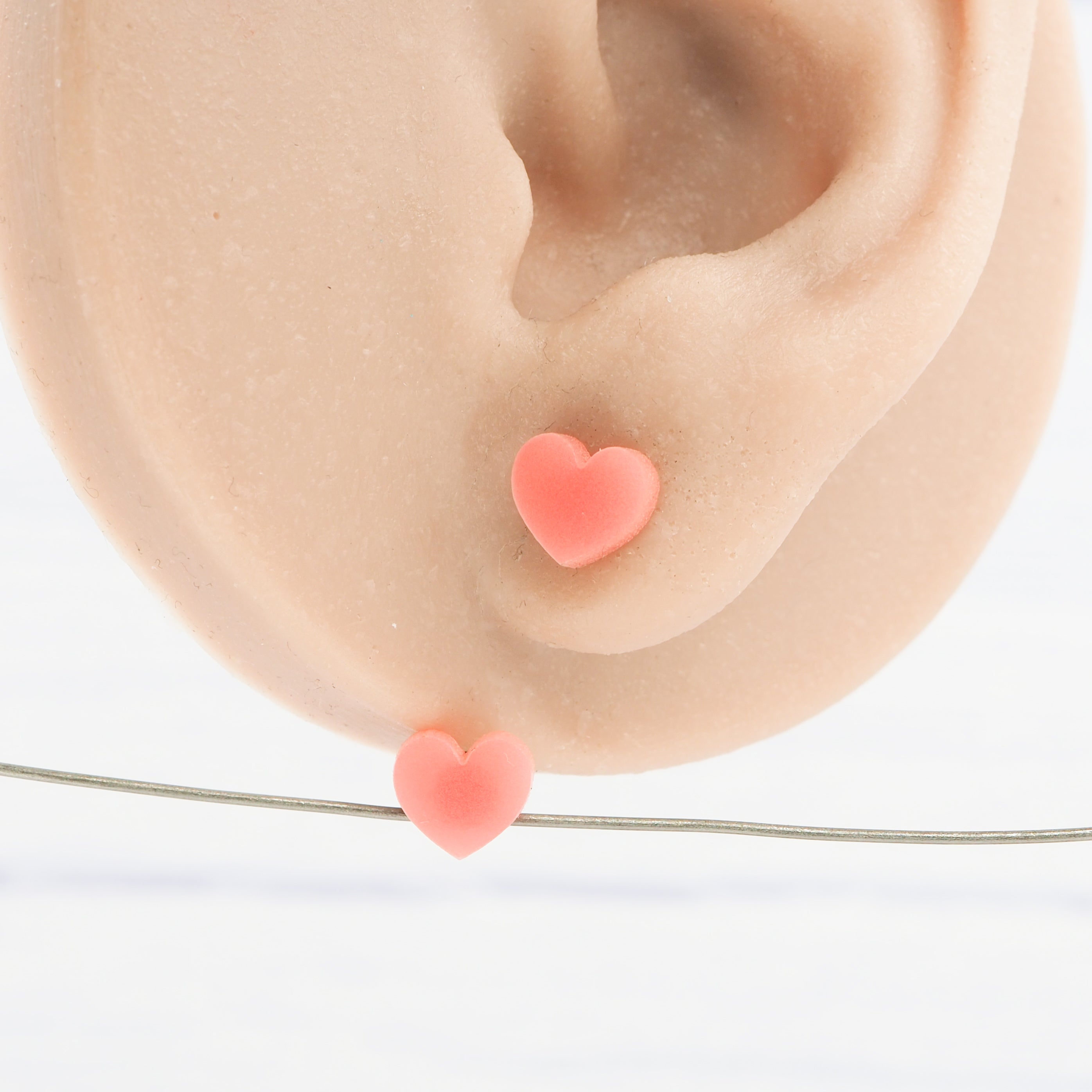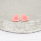 Pink small heart acrylic studs with 0.7mm ear stems.