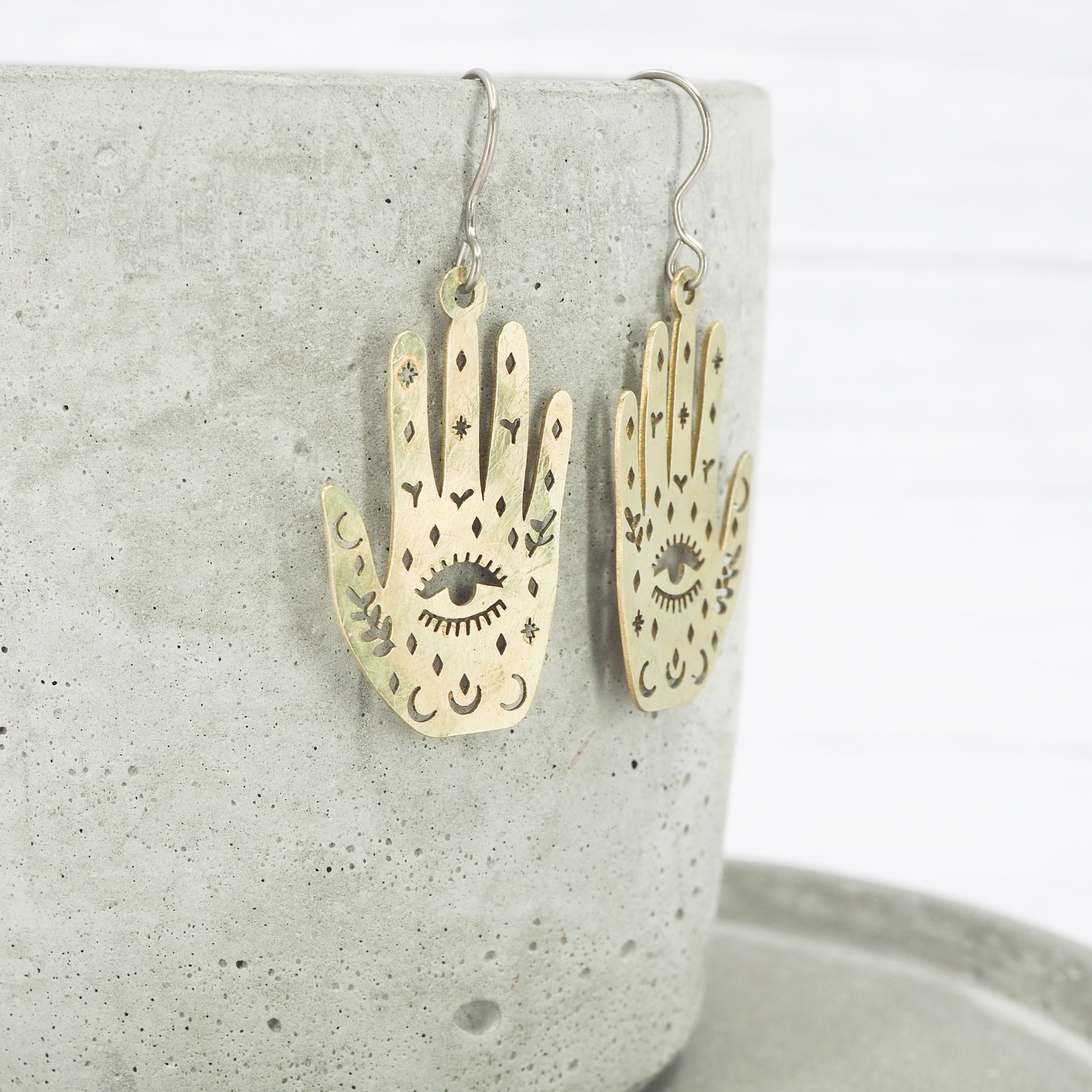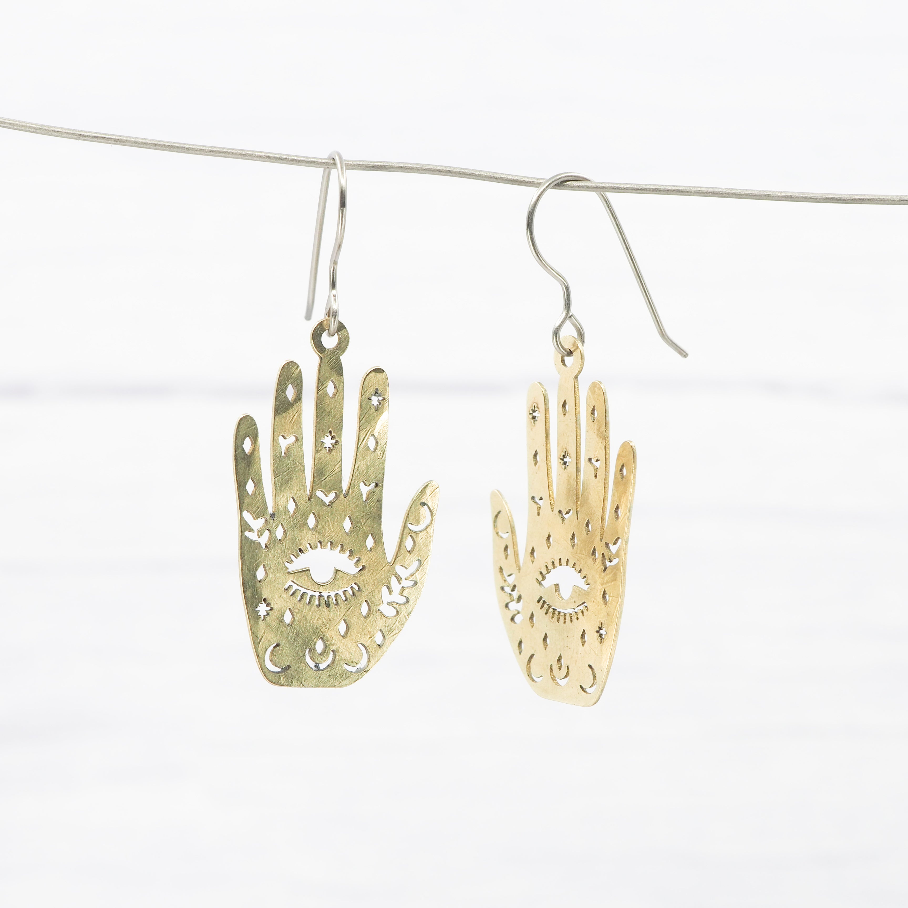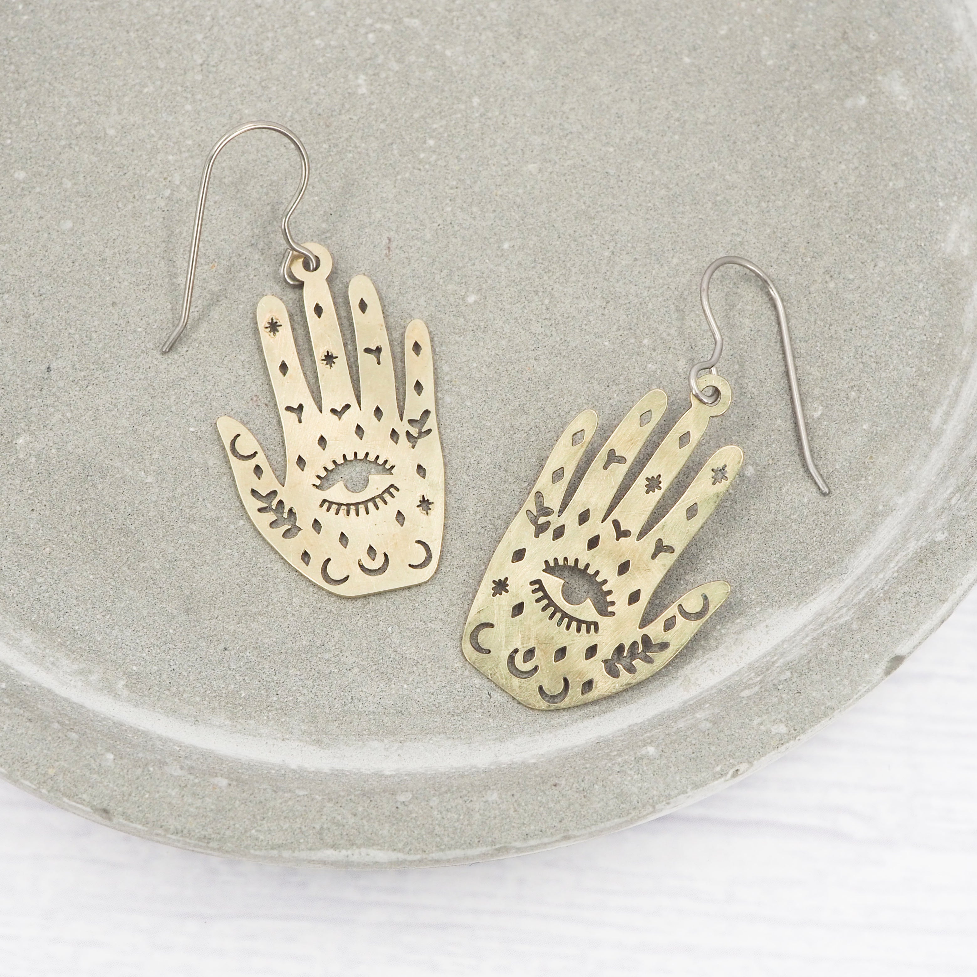 and the earrings have a total drop length of 1.7" (4.3cm) from the top of the ear wire to the bottom of the hands.