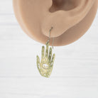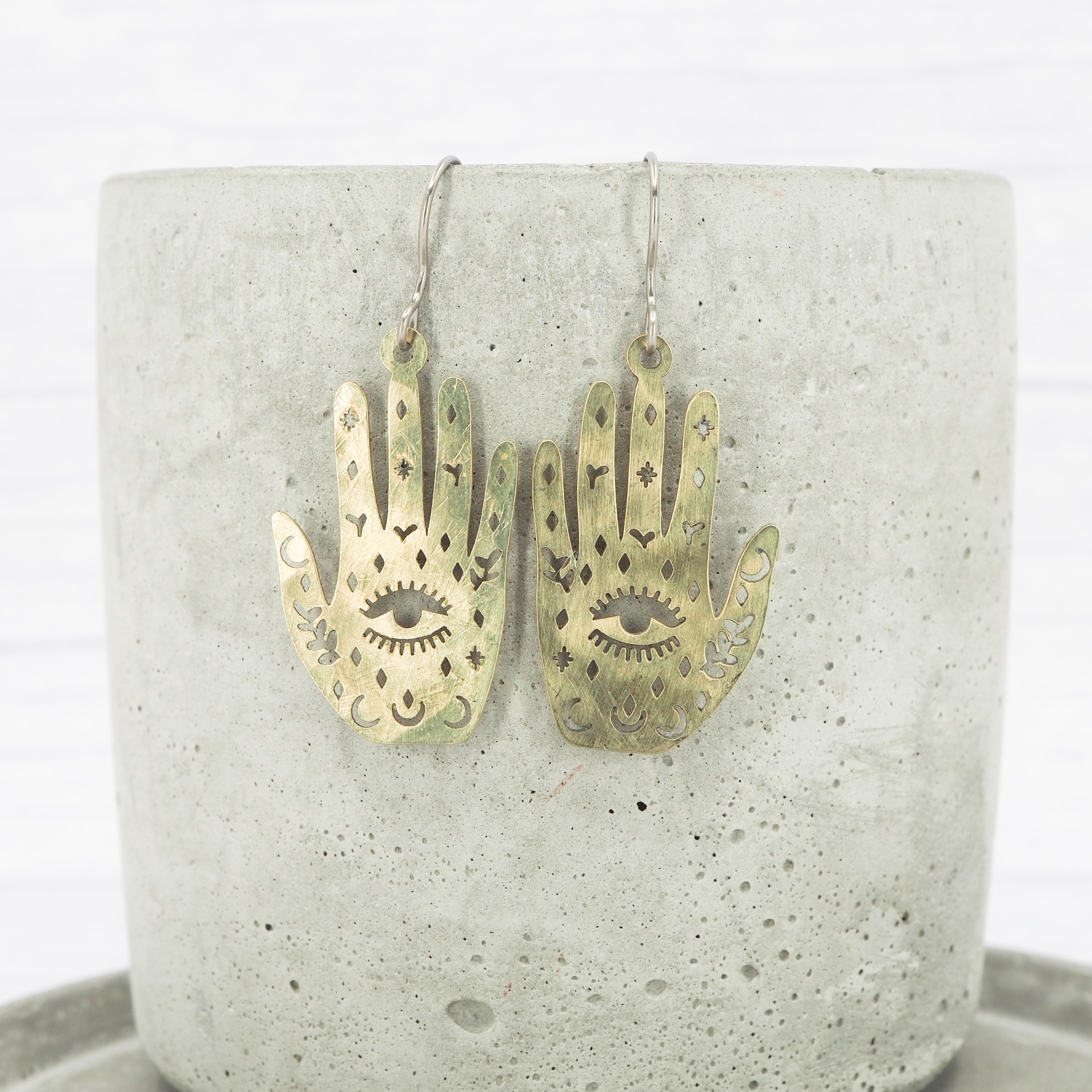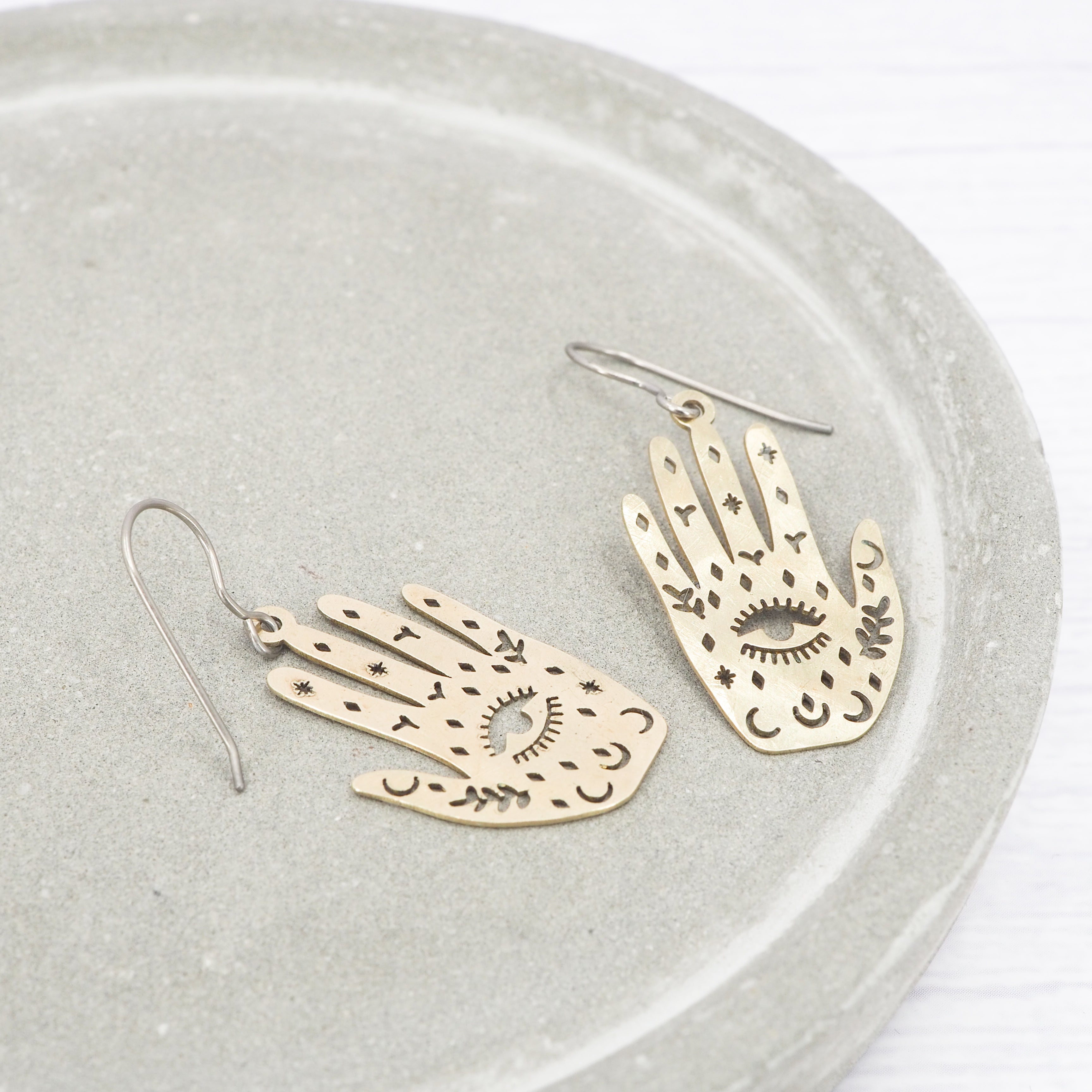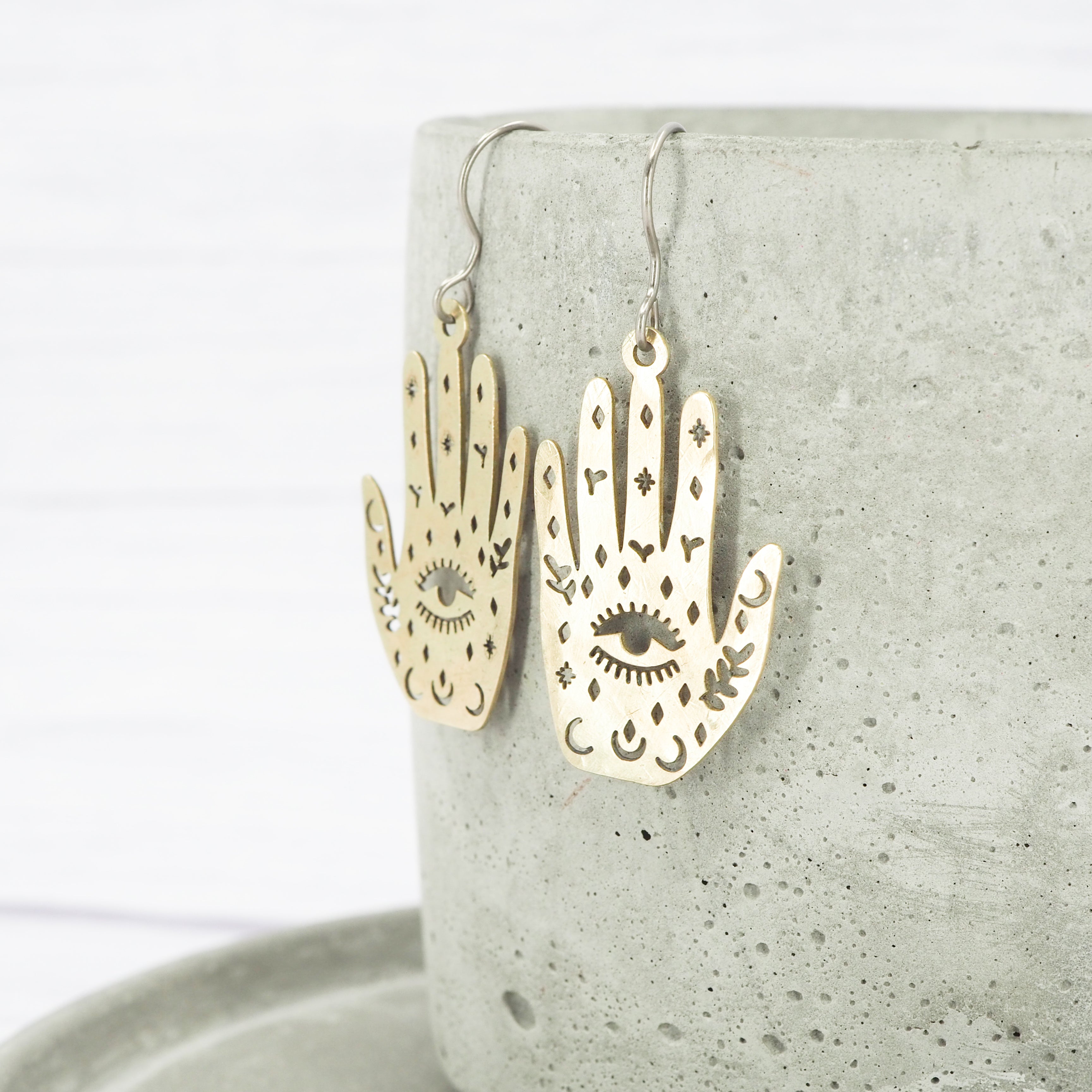 and the earrings have a total drop length of 1.7" (4.3cm) from the top of the ear wire to the bottom of the hands.