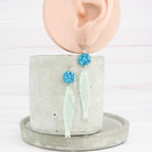 The earrings have a total drop length of 3" (8cm) from the top of the ear wire to the bottom of the tails.