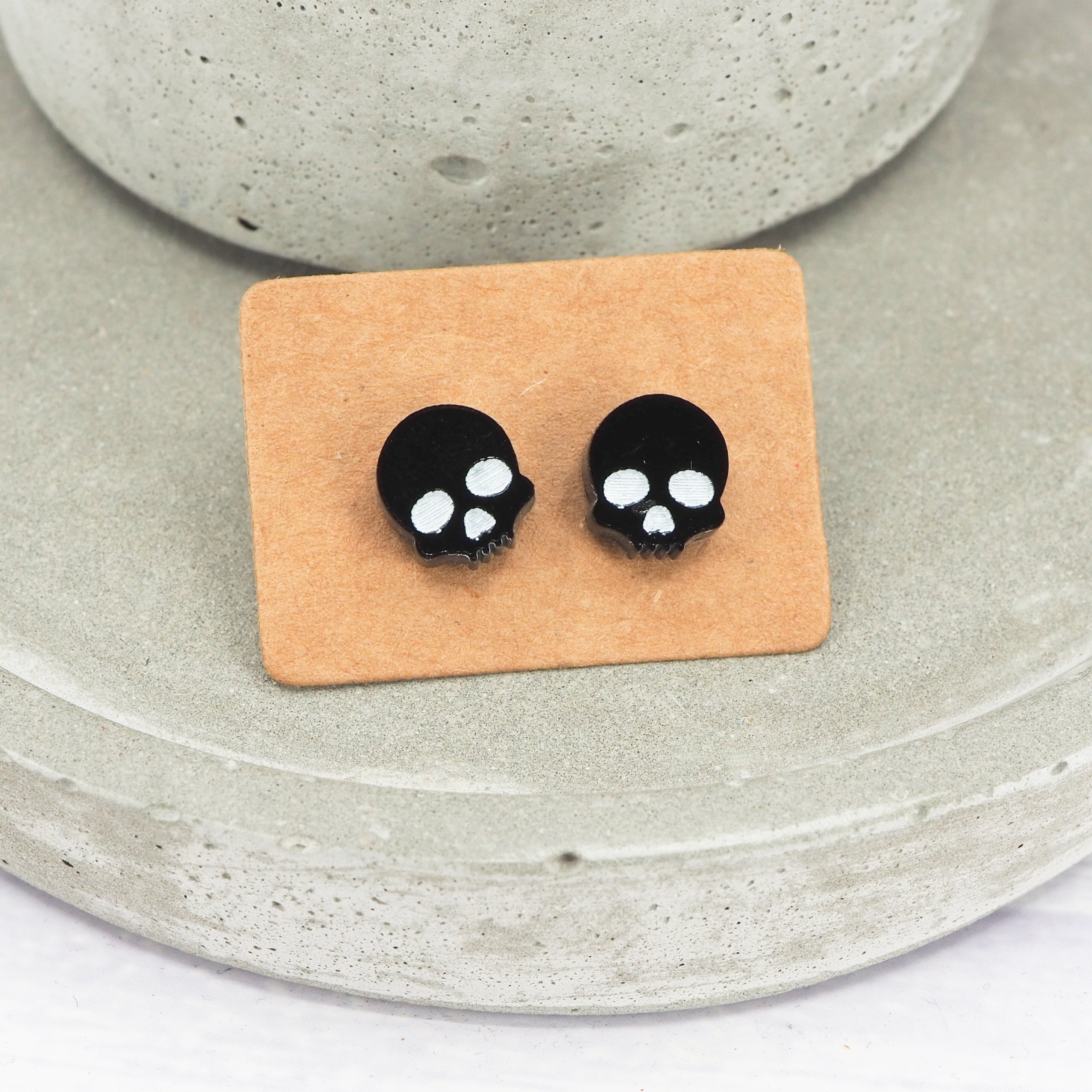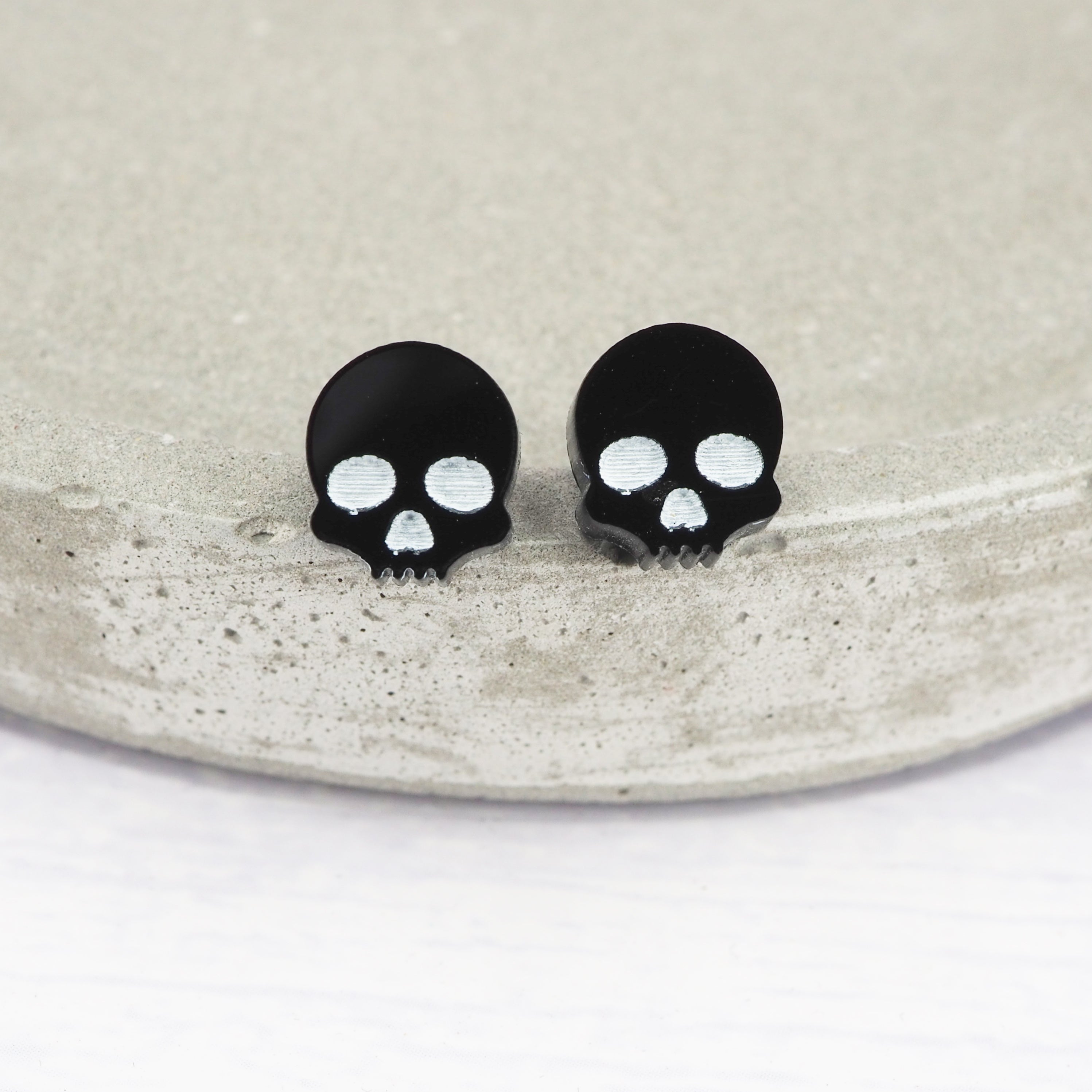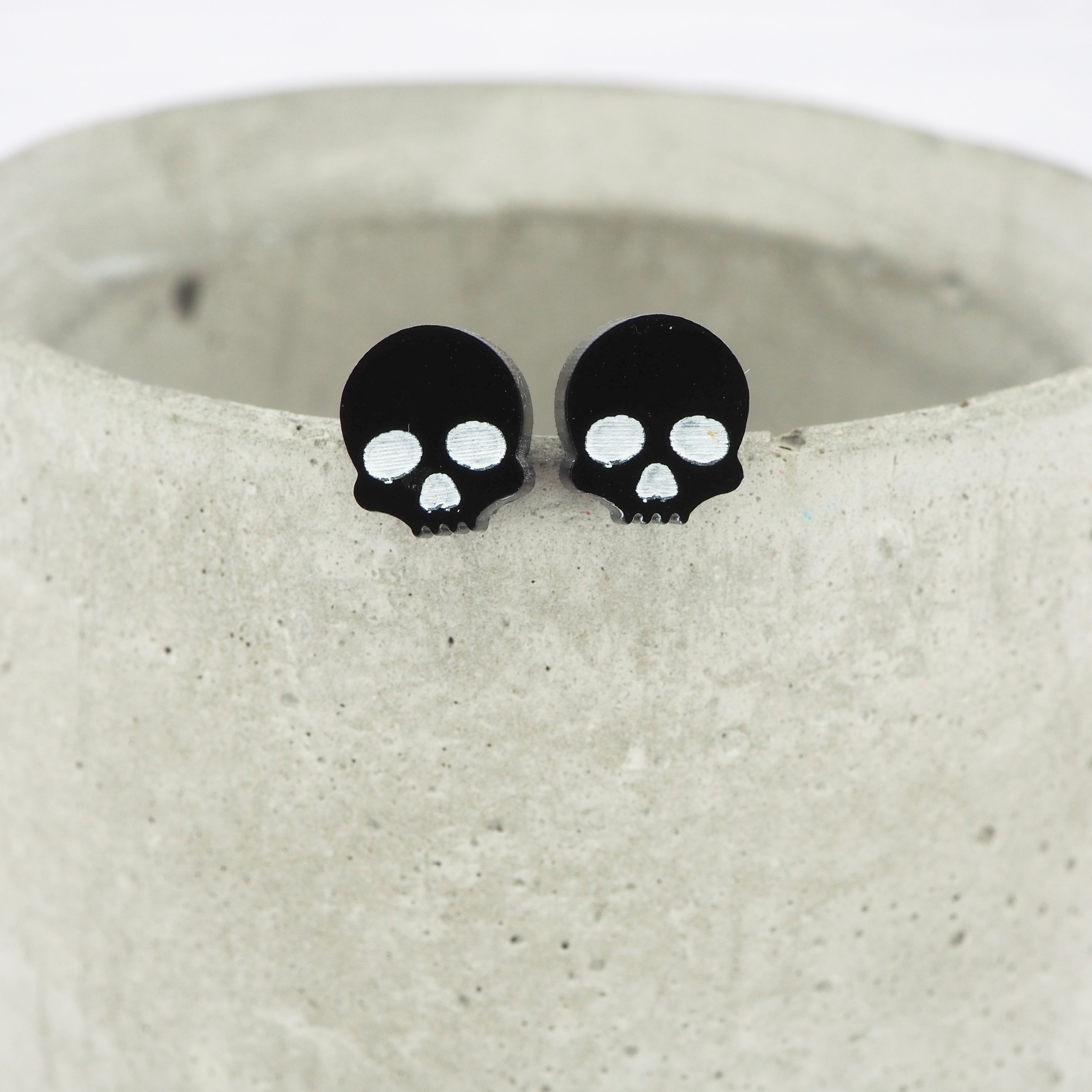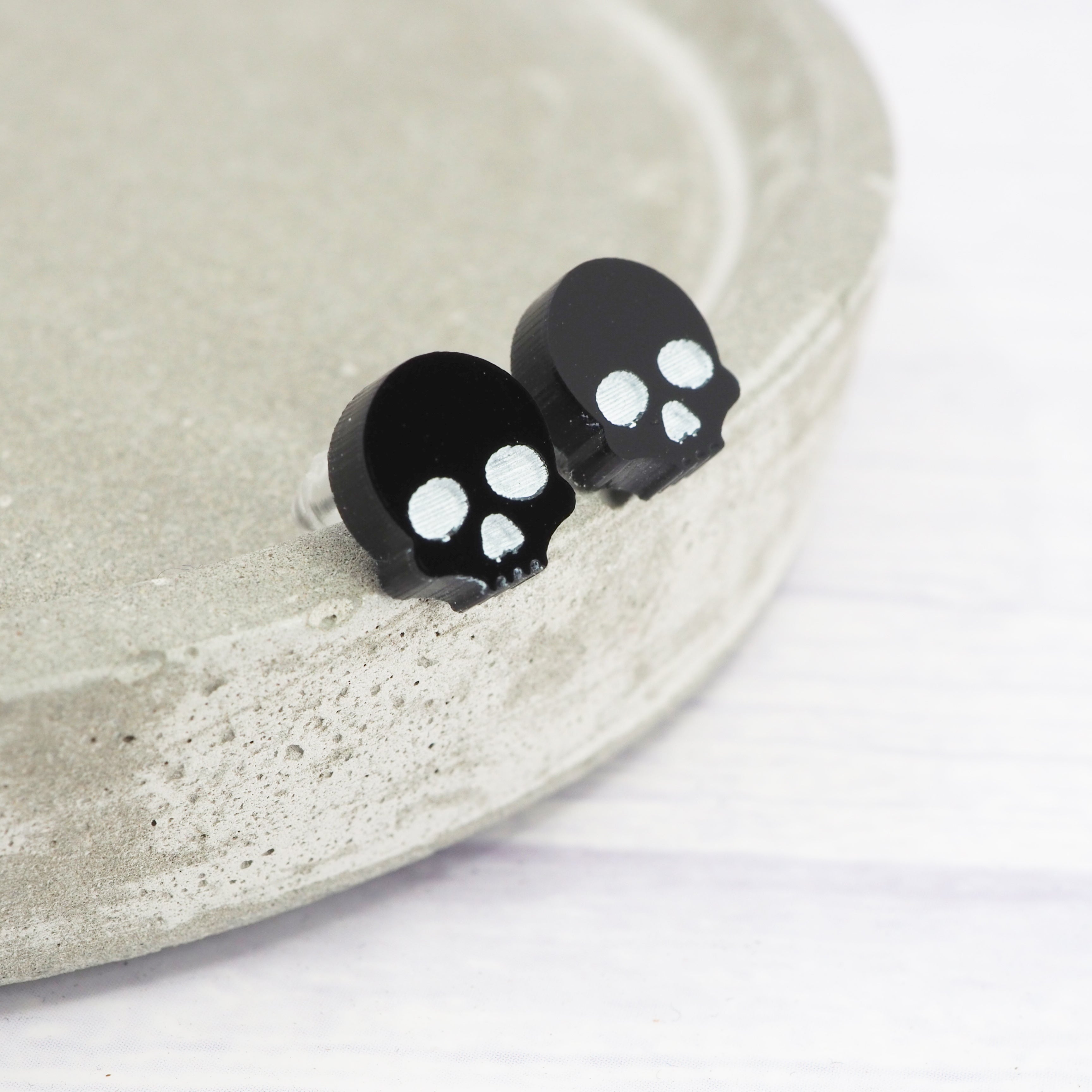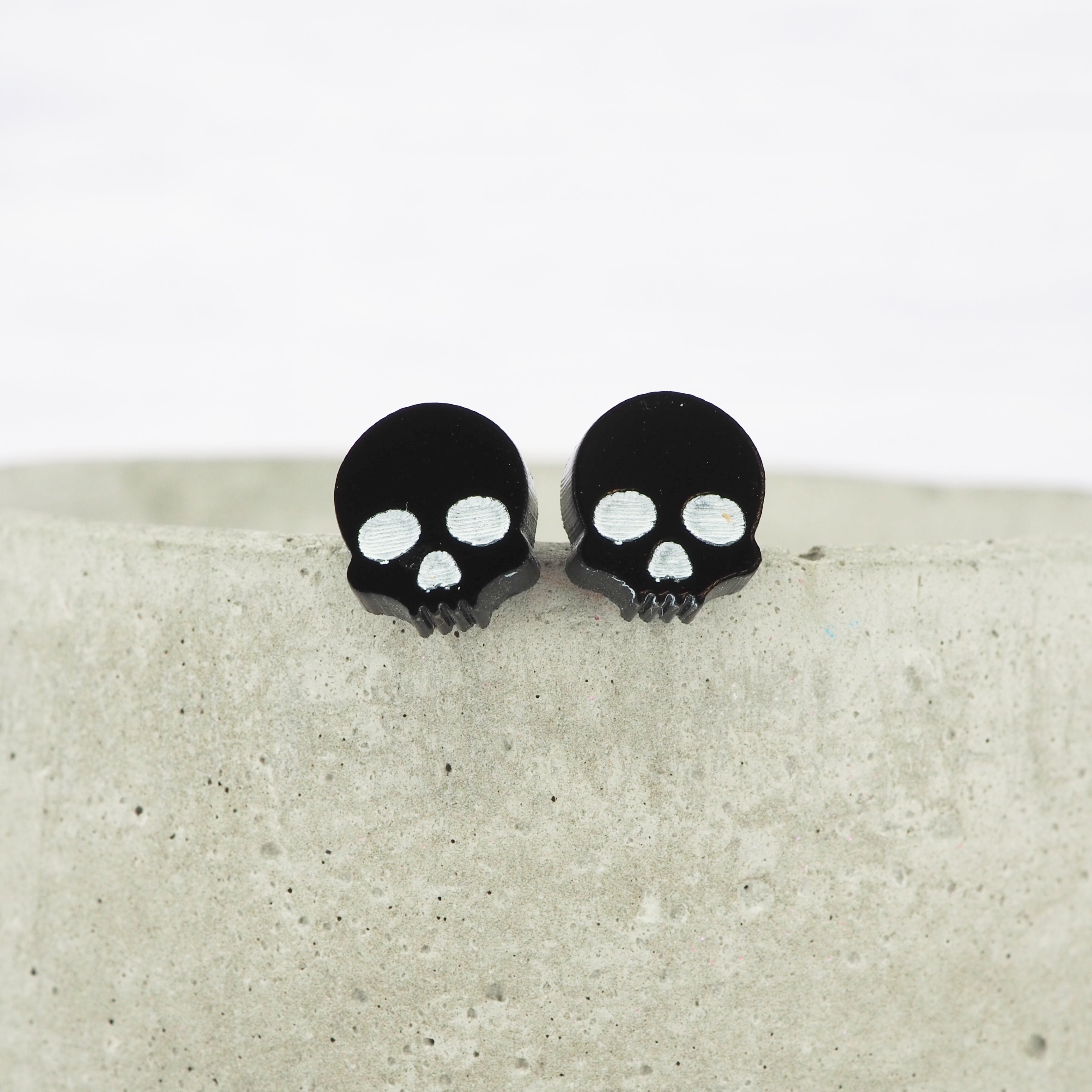 Glossy black small skull acrylic studs