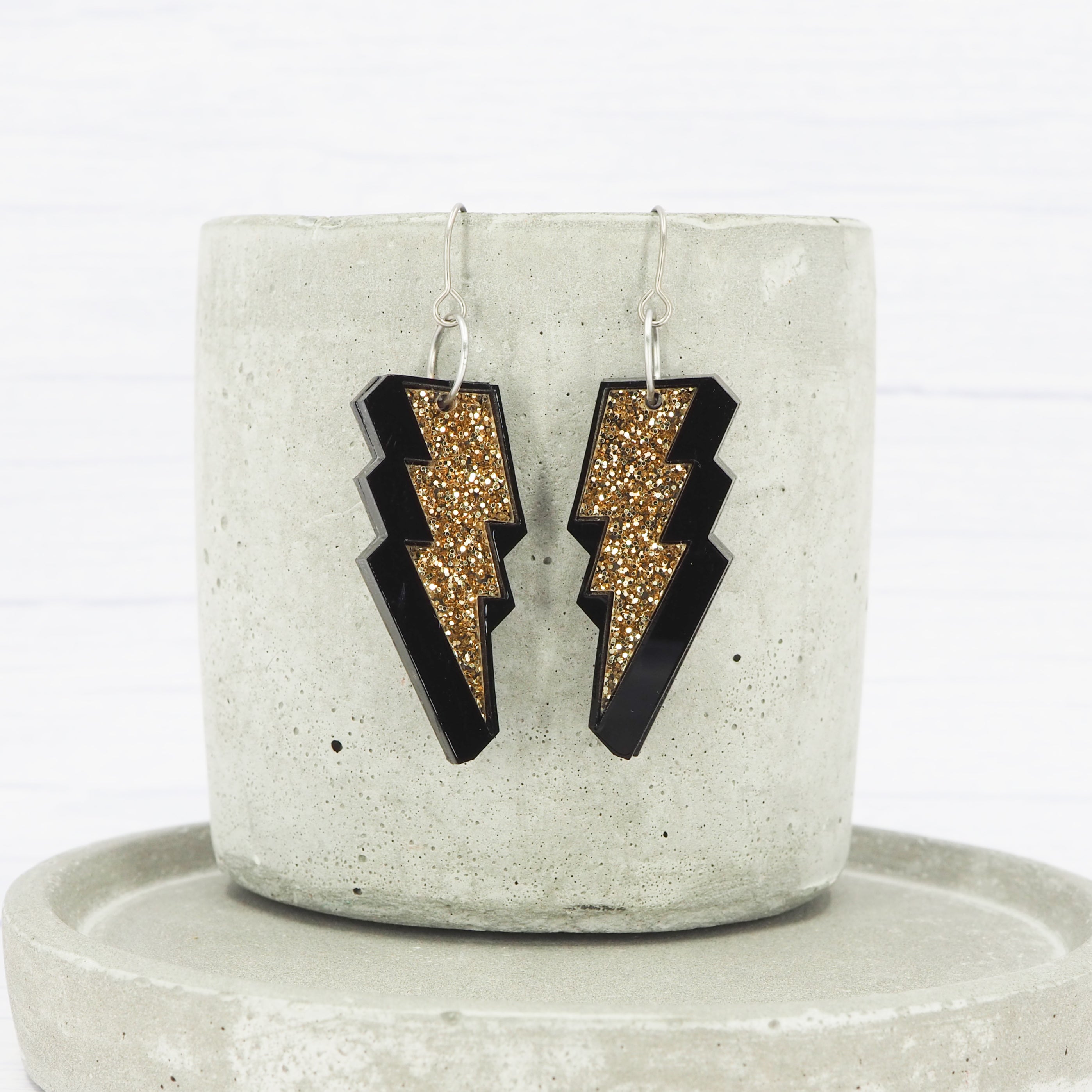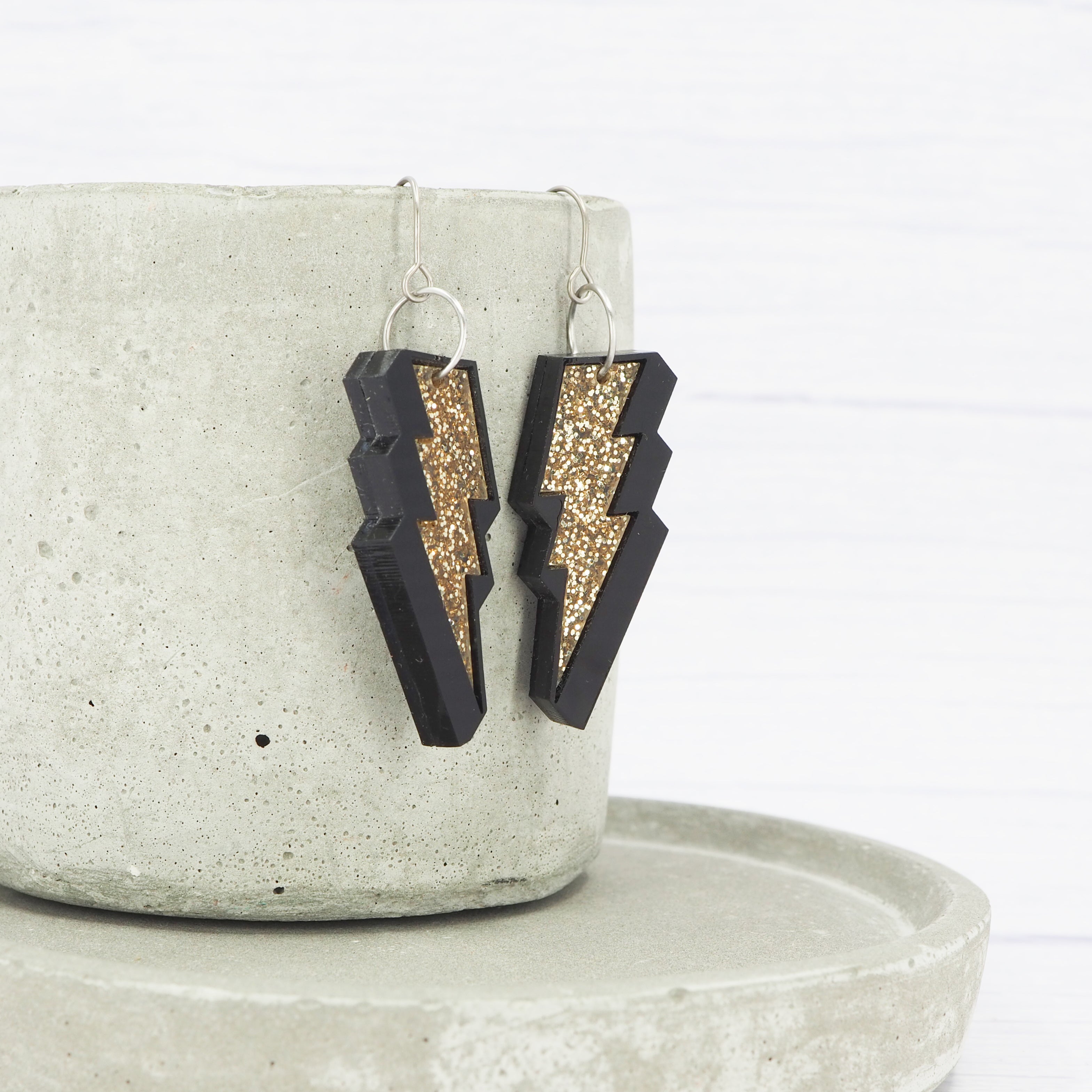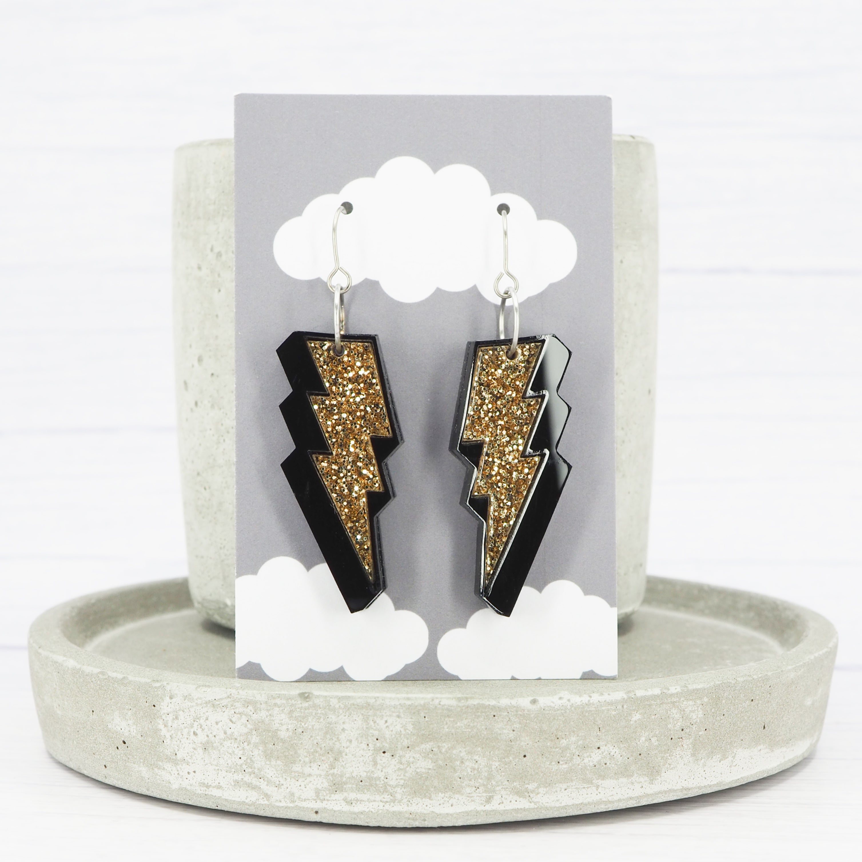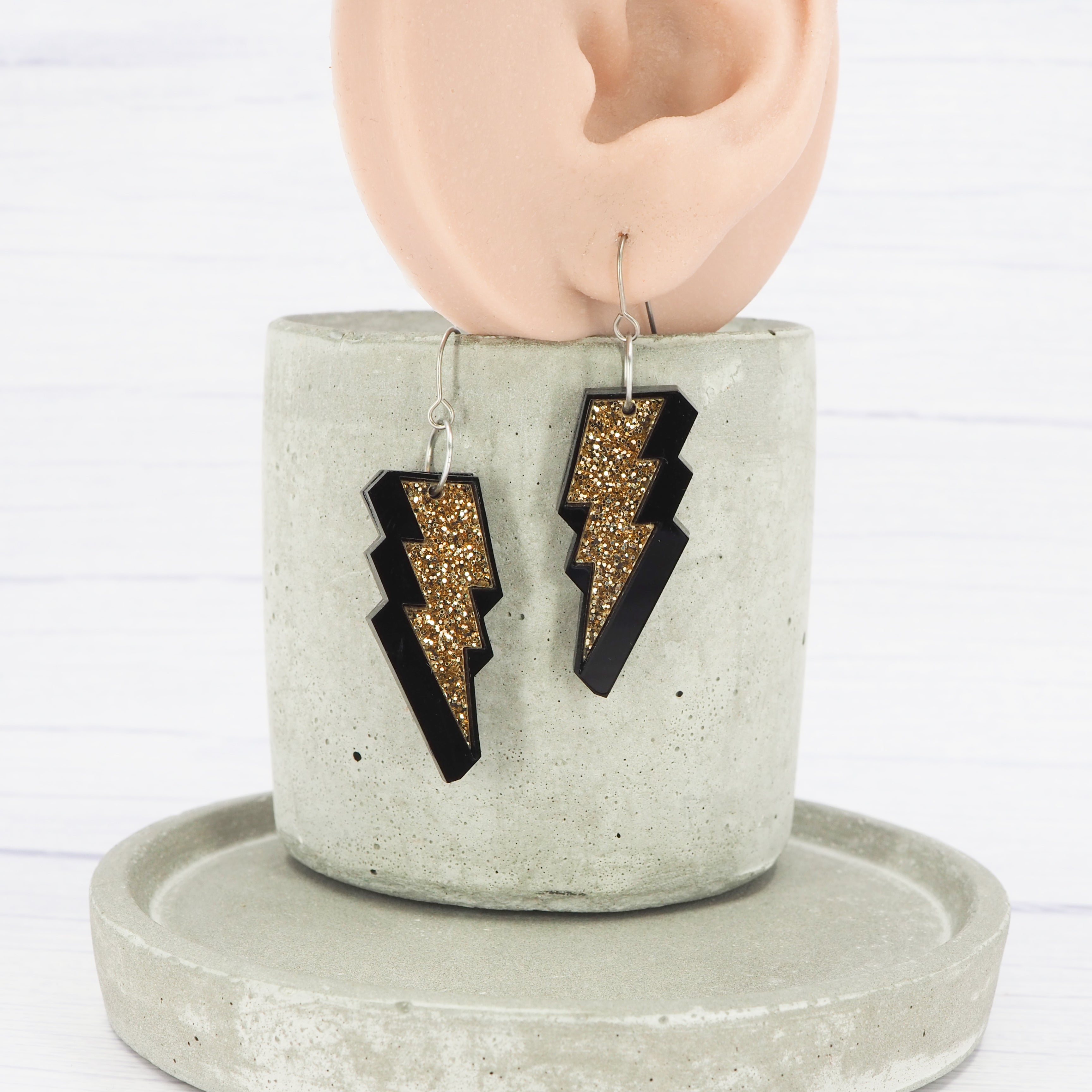 The earrings have a total drop length of 2.3" (6cm) from the top of the ear wire to the bottom of the bolts.