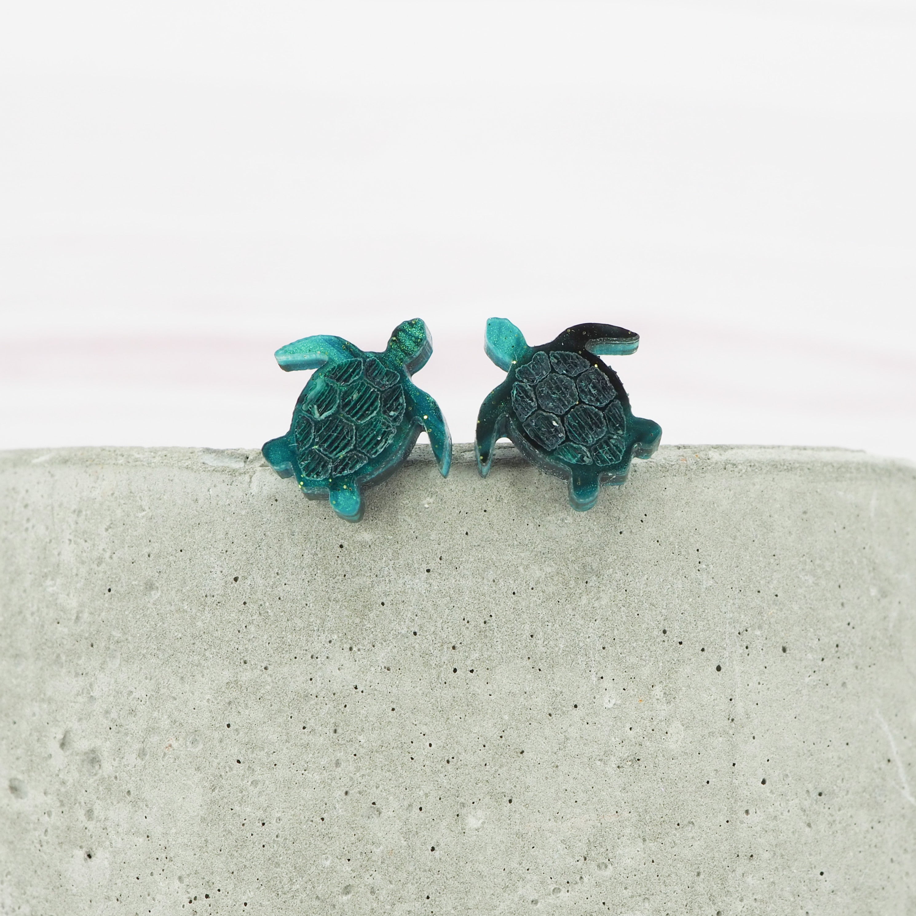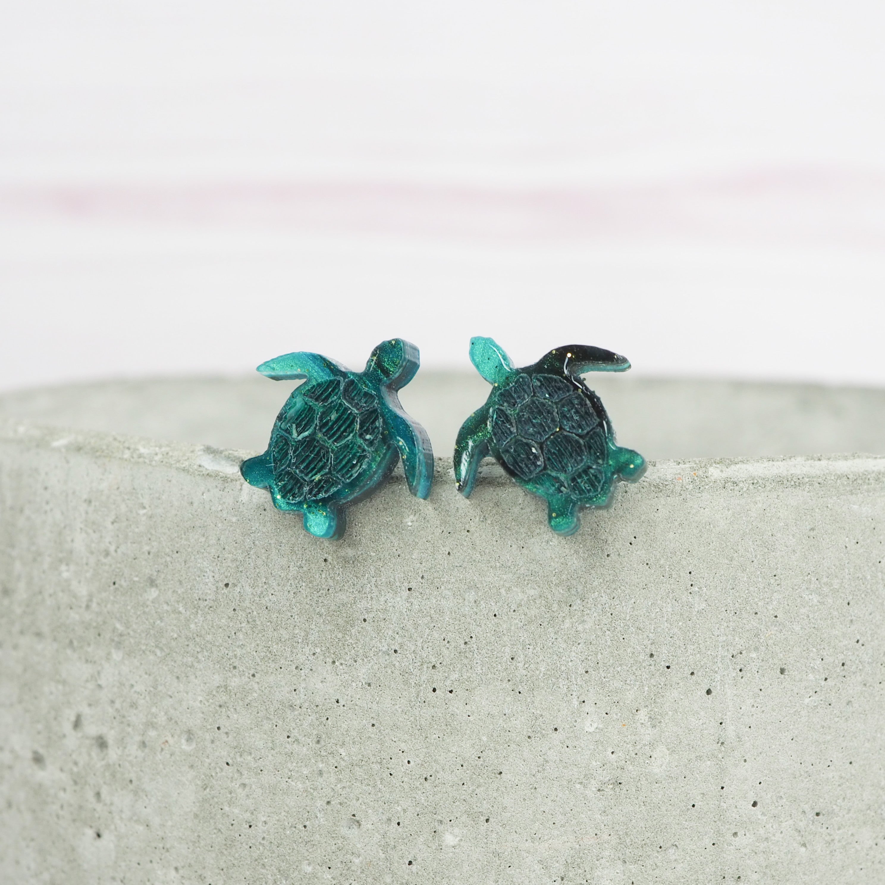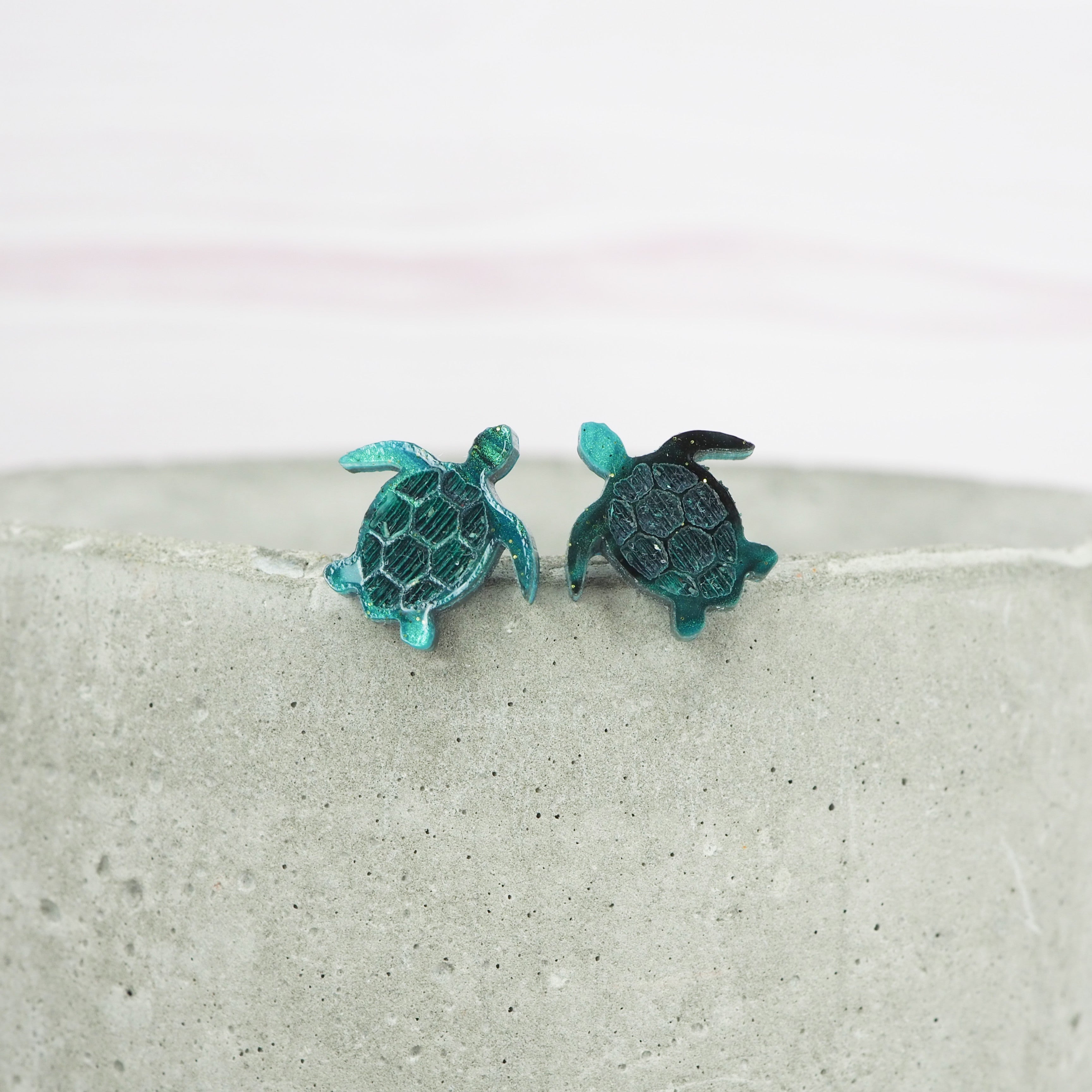 Green galaxy sea turtle acrylic studs with 0.7mm ear stems.