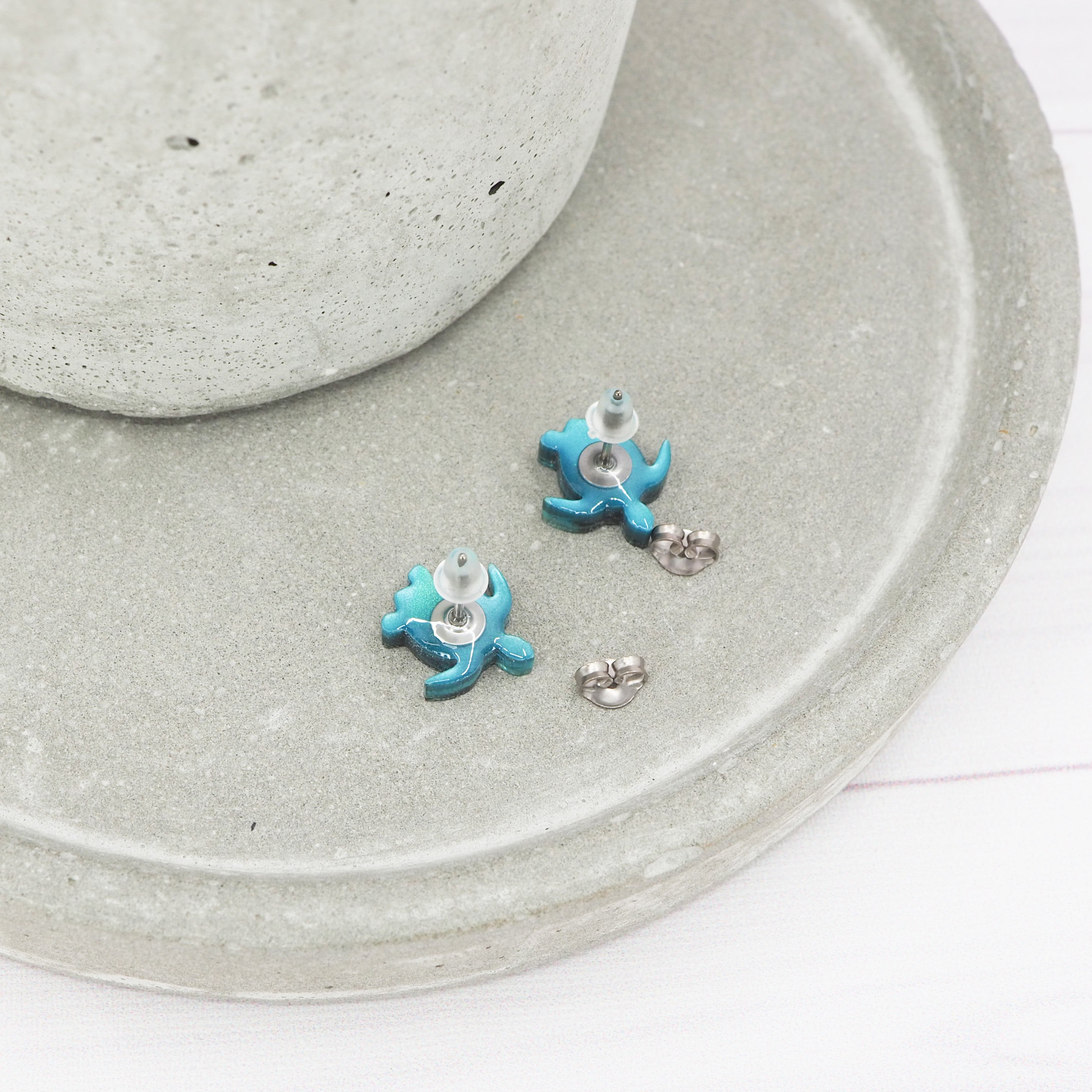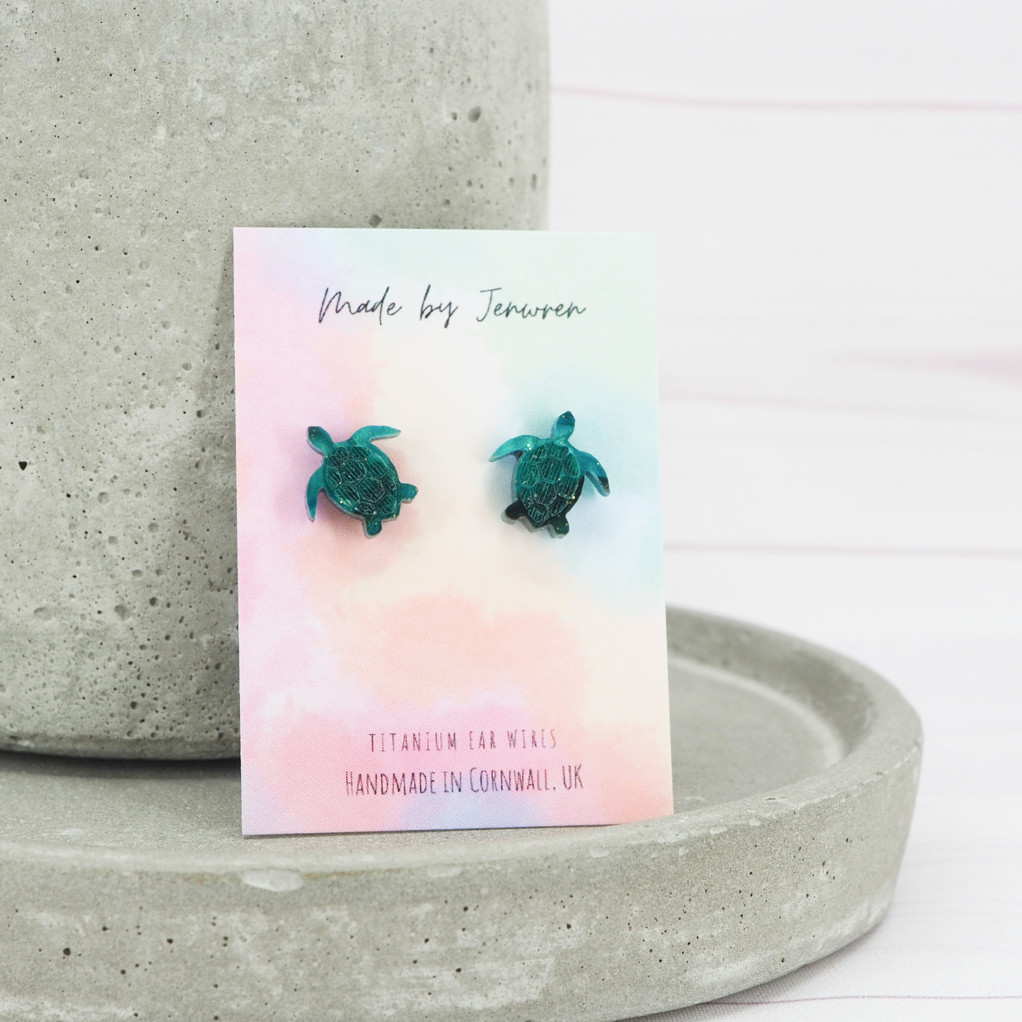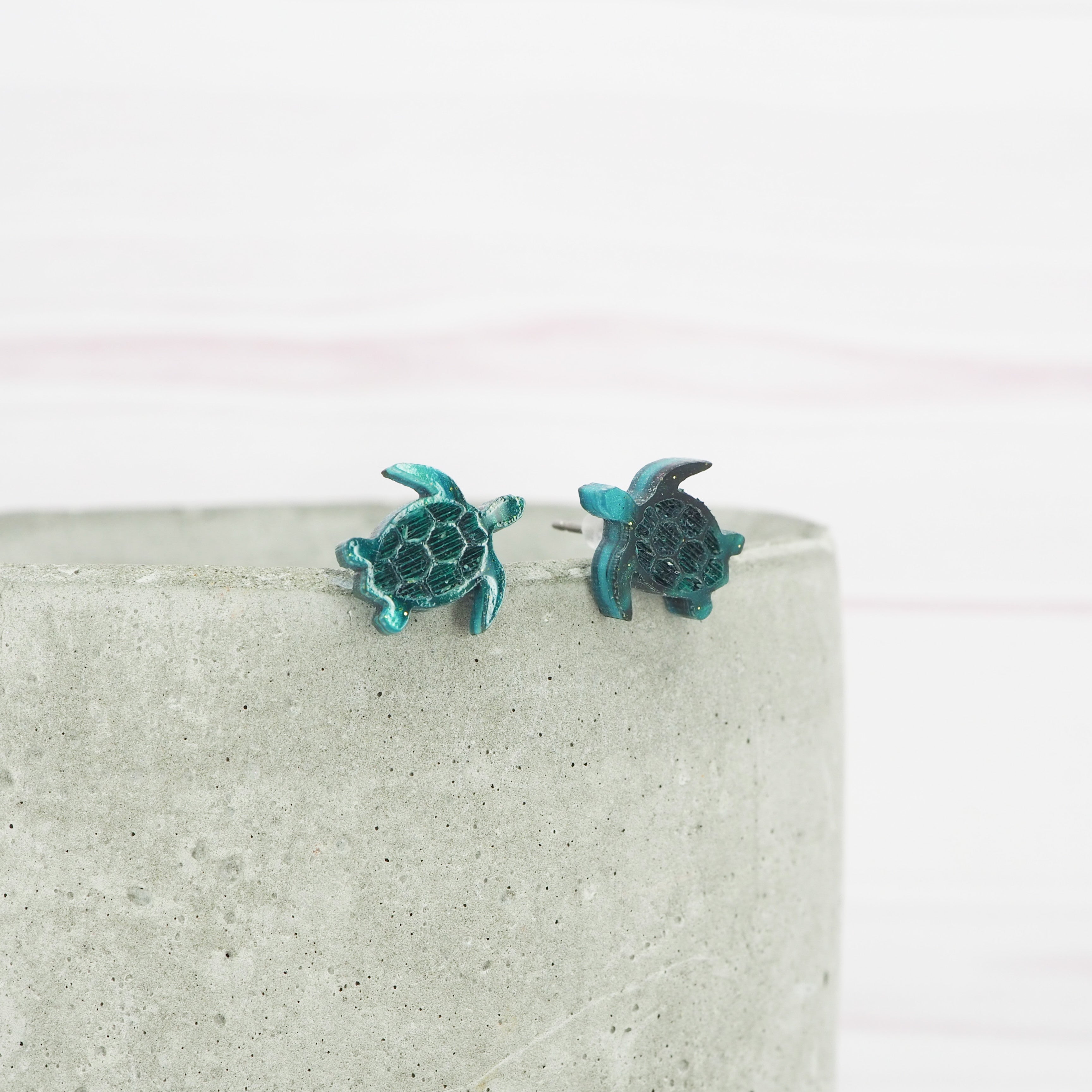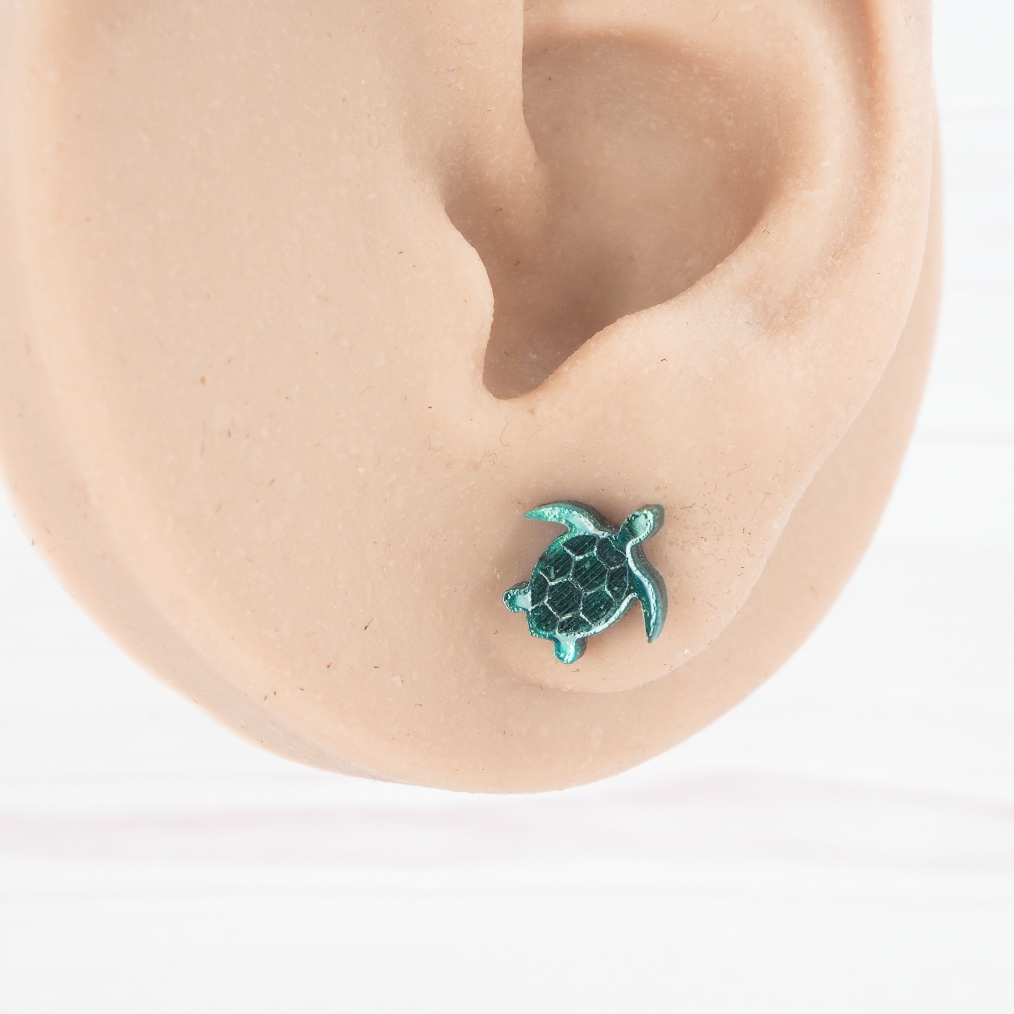 Green galaxy sea turtle acrylic studs with 0.7mm ear stems.
