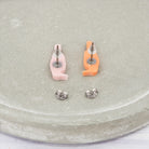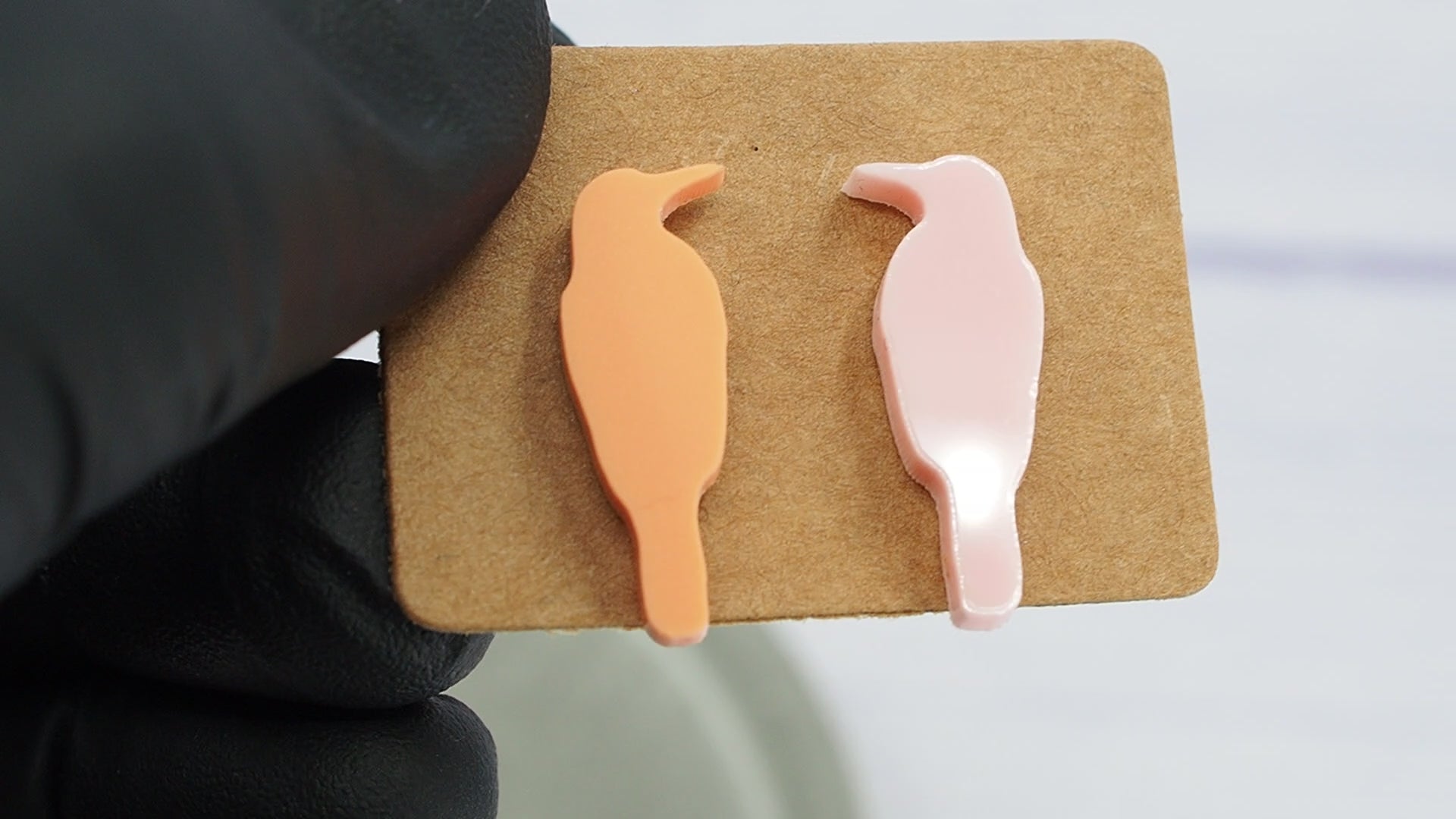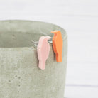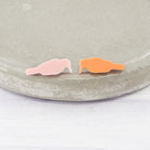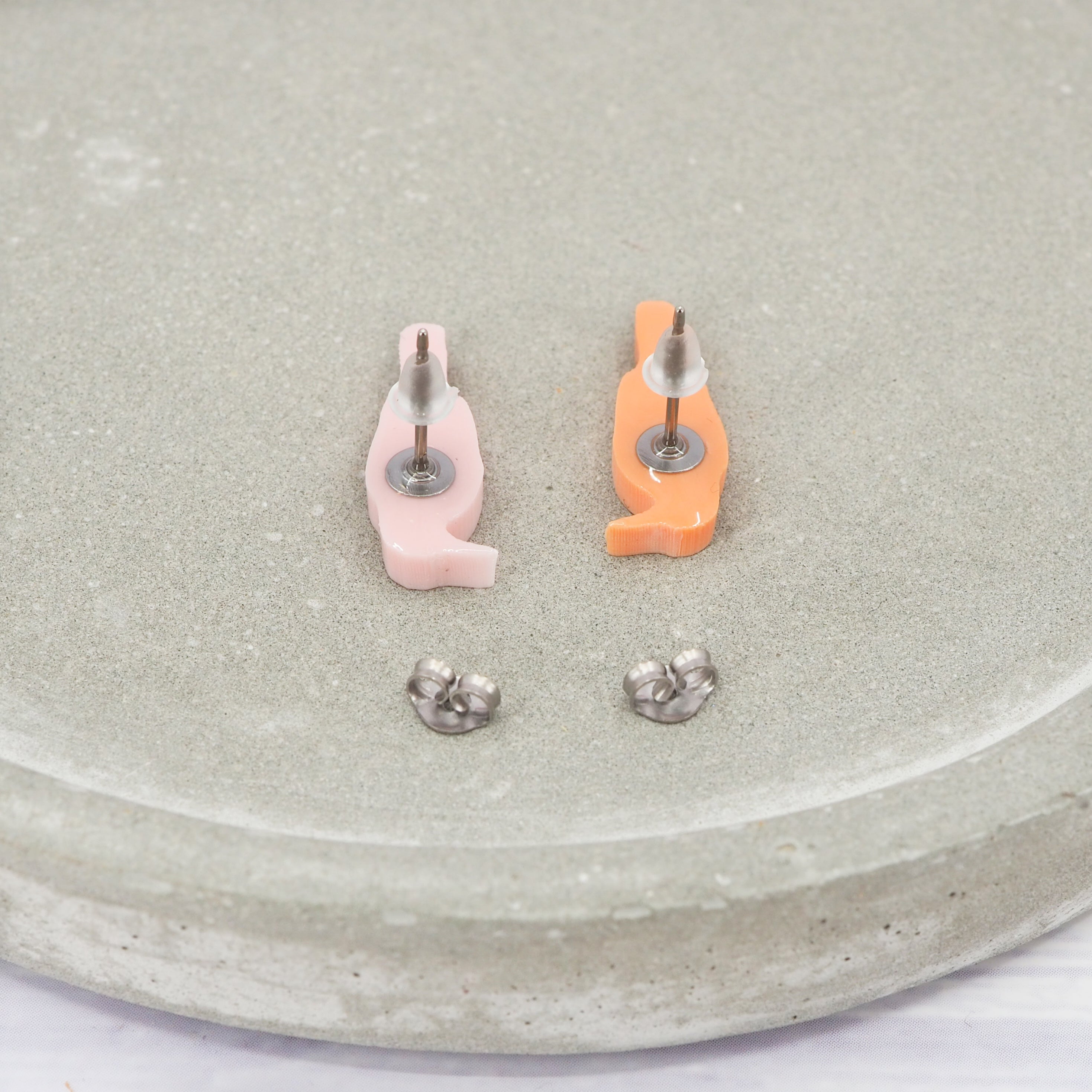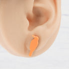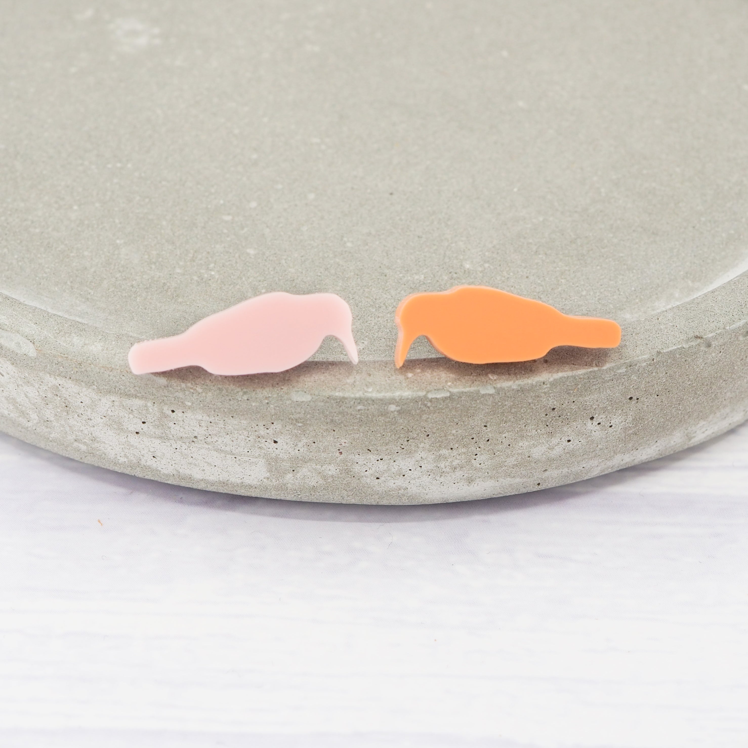 Matte silky orange and glossy pink mismatch birds with 0.7mm grade 1 titanium ear stems.