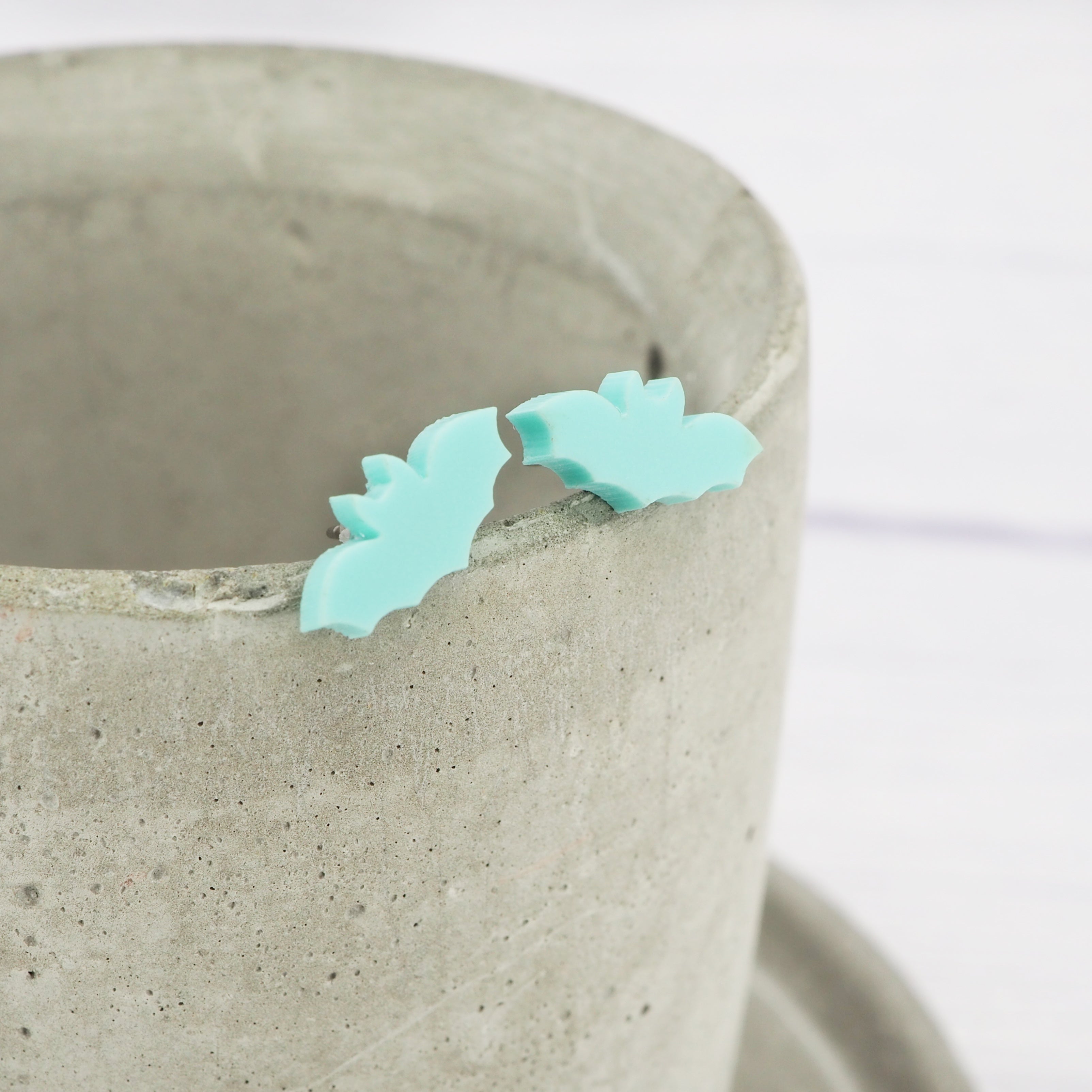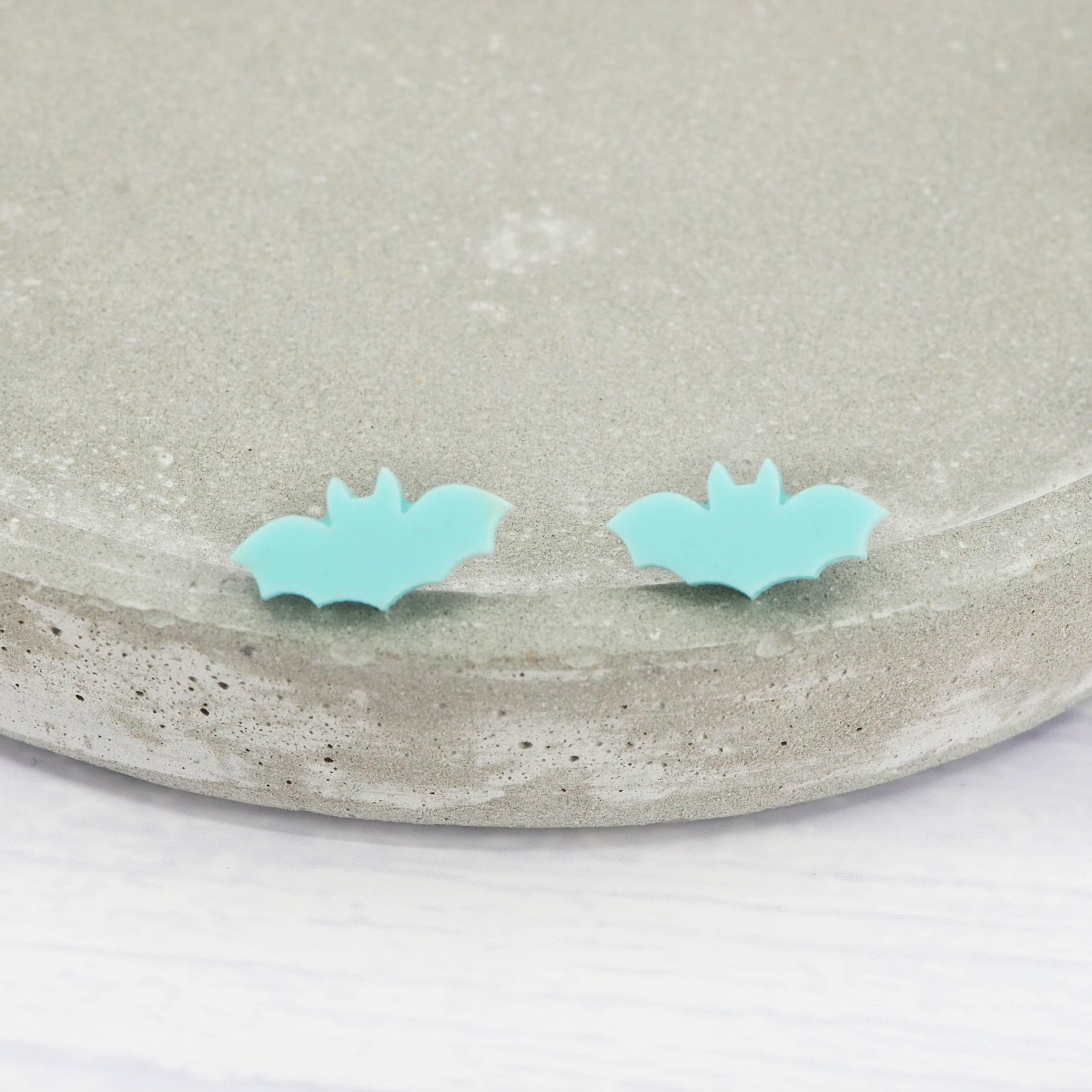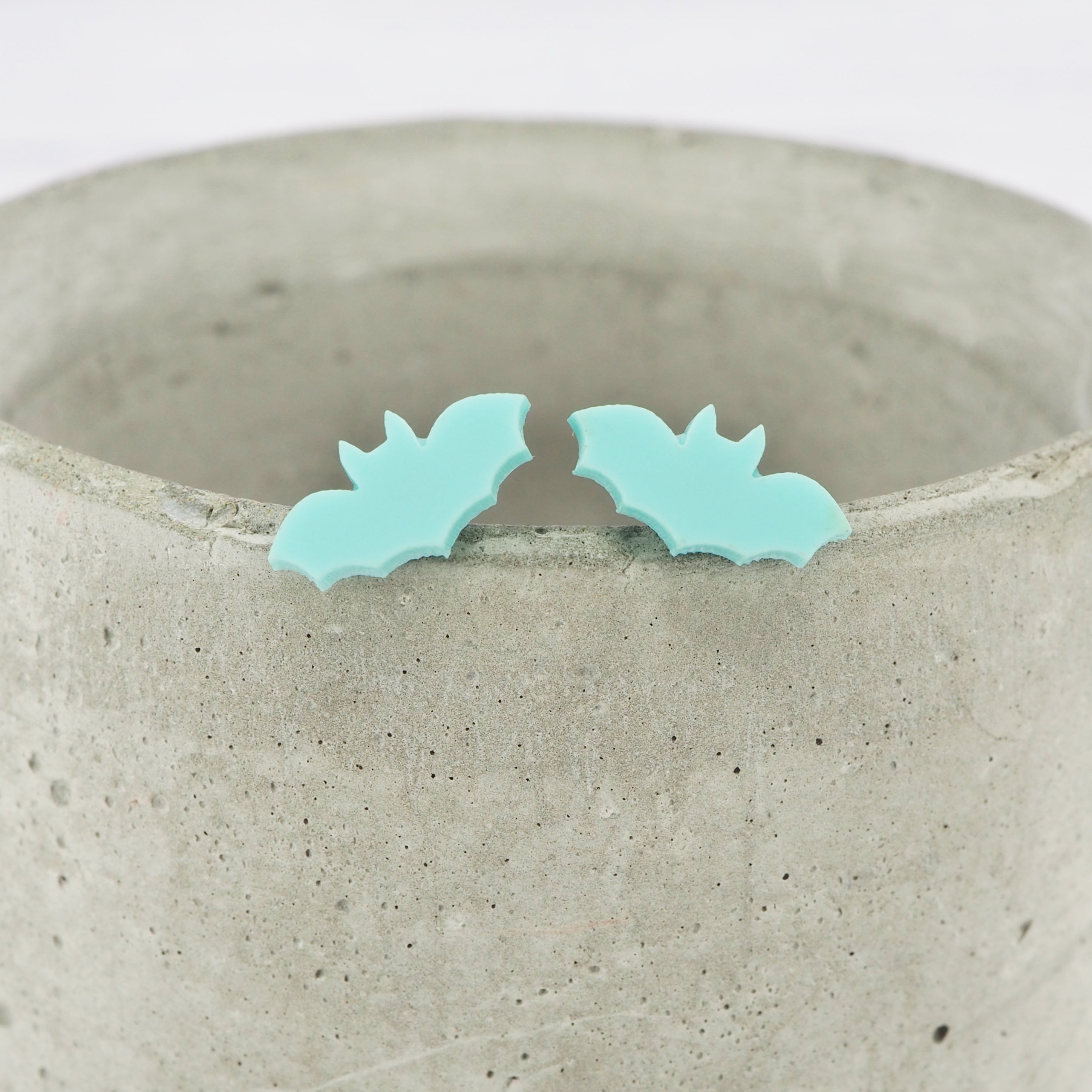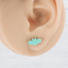 Pastel matte blue bat studs with 0.7mm titanium ear stems.