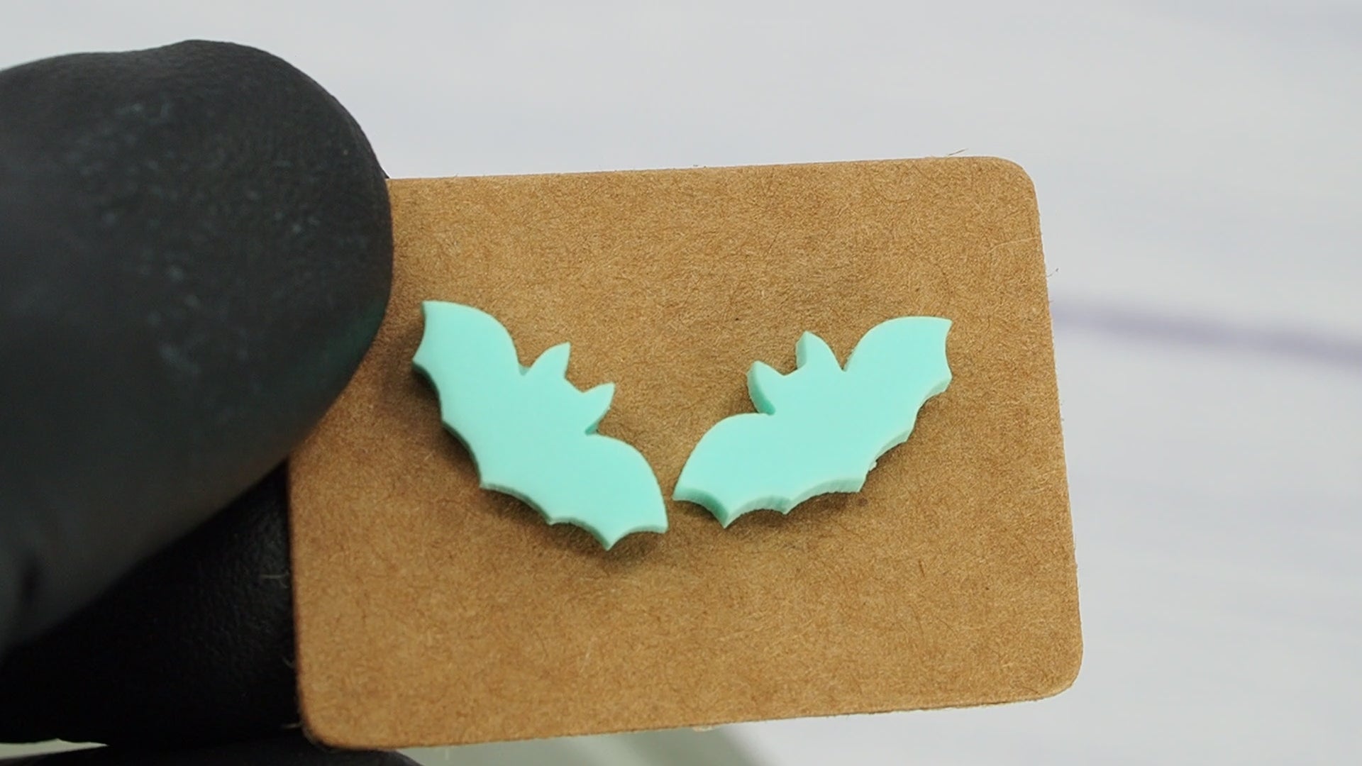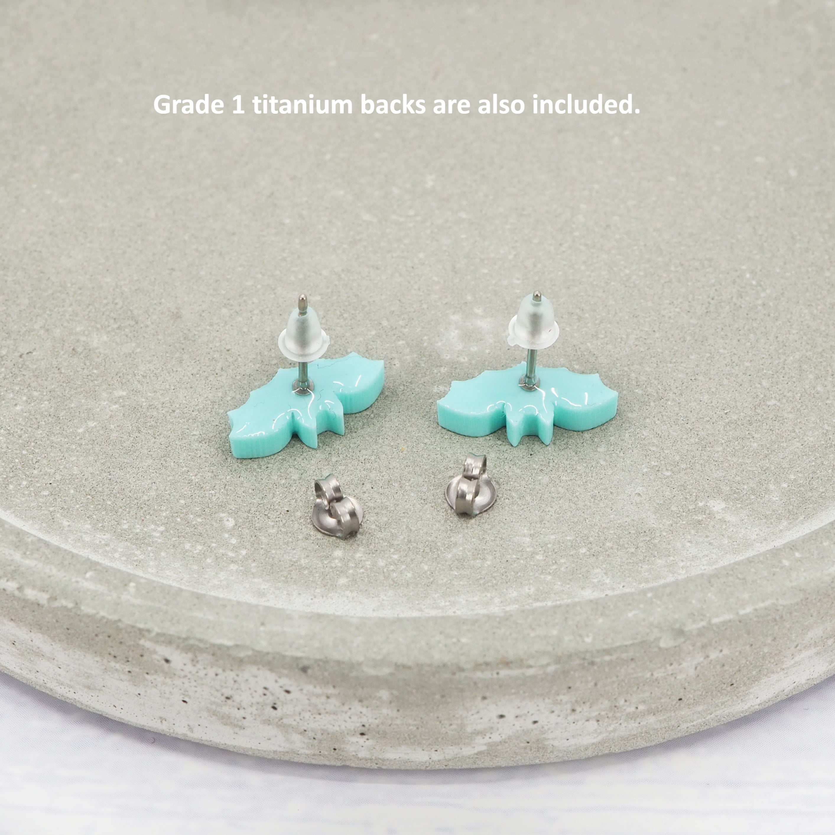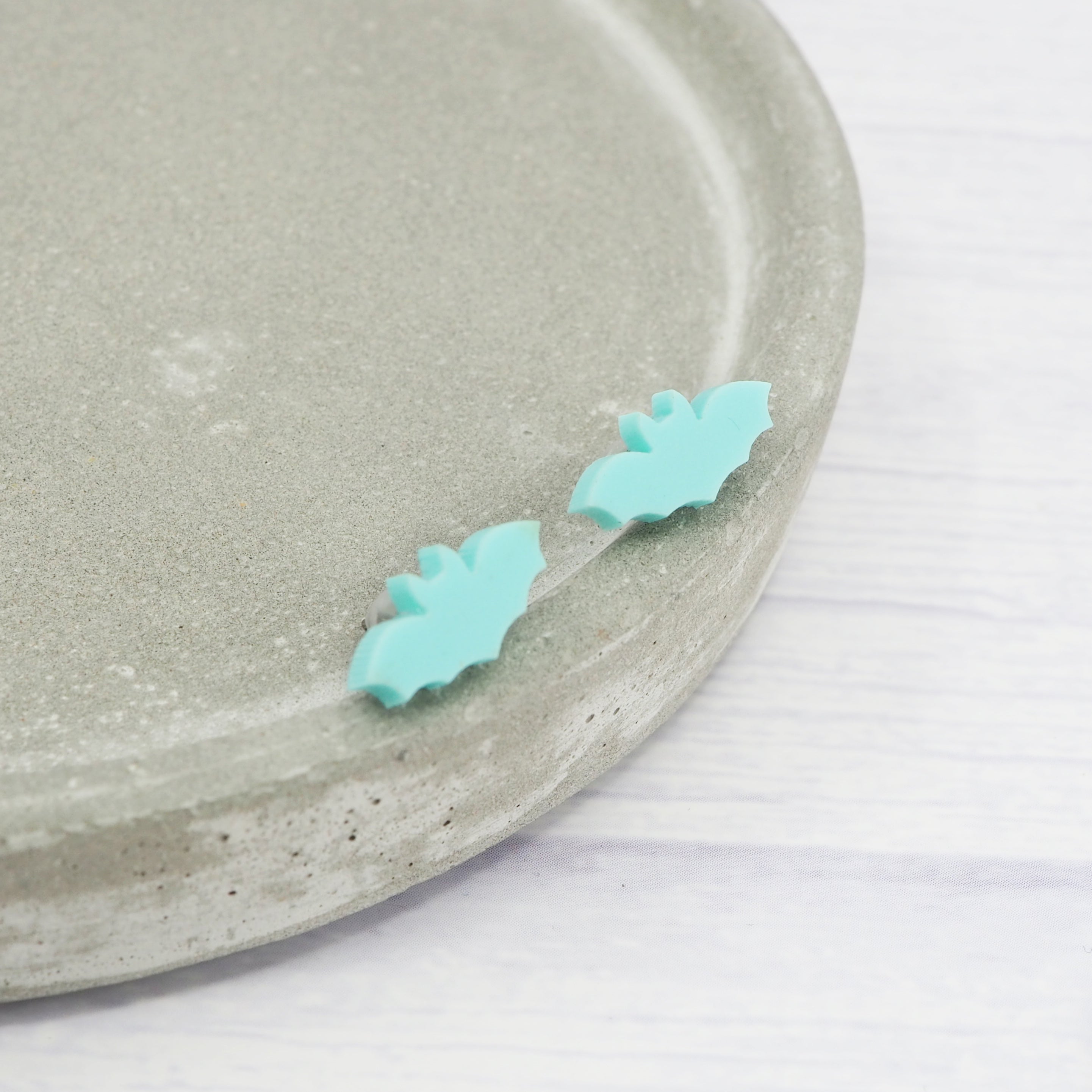 Pastel matte blue bat studs with 0.7mm titanium ear stems.