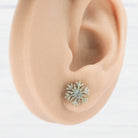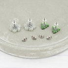 Pearly green Christmas tree and holographic glitter snowflake stud set