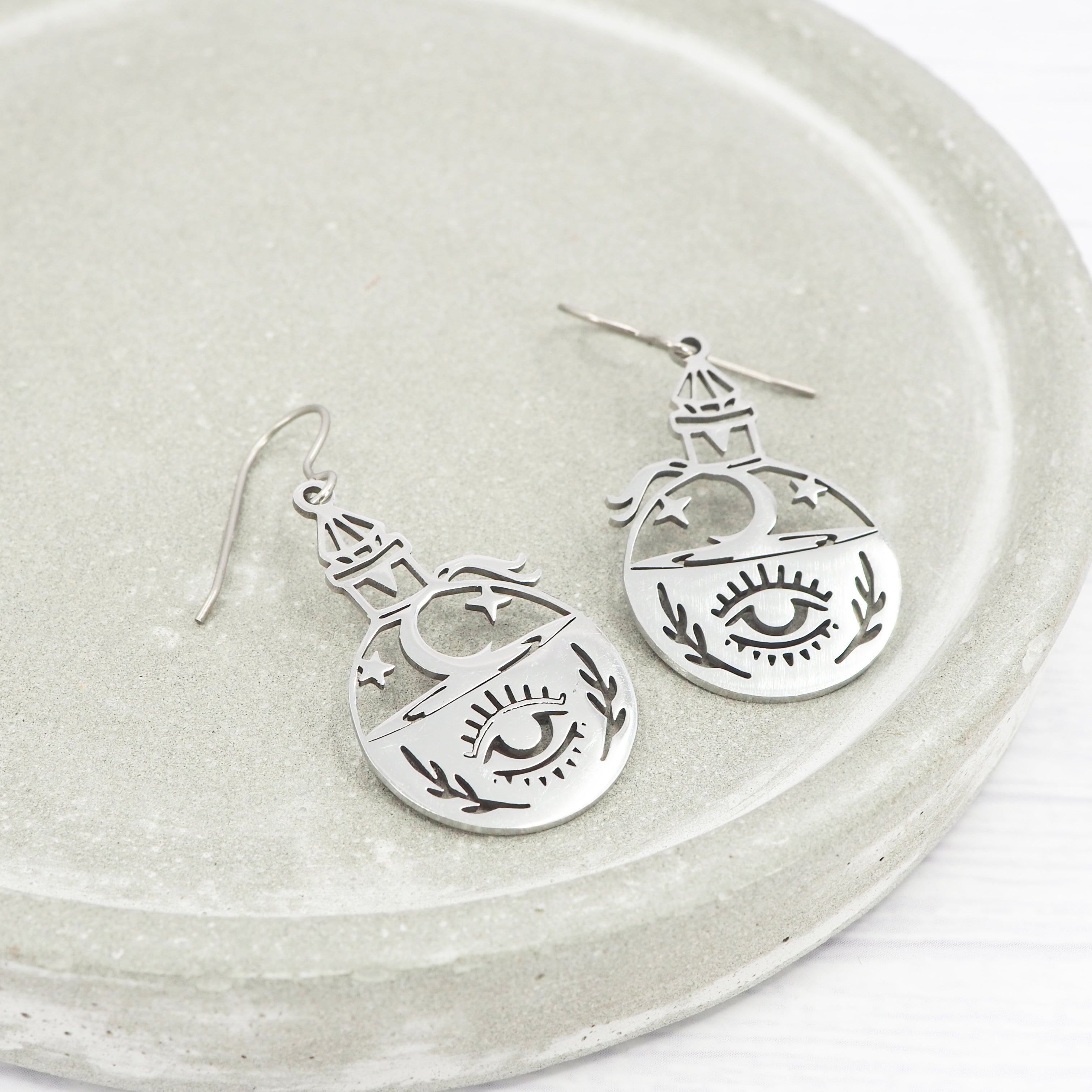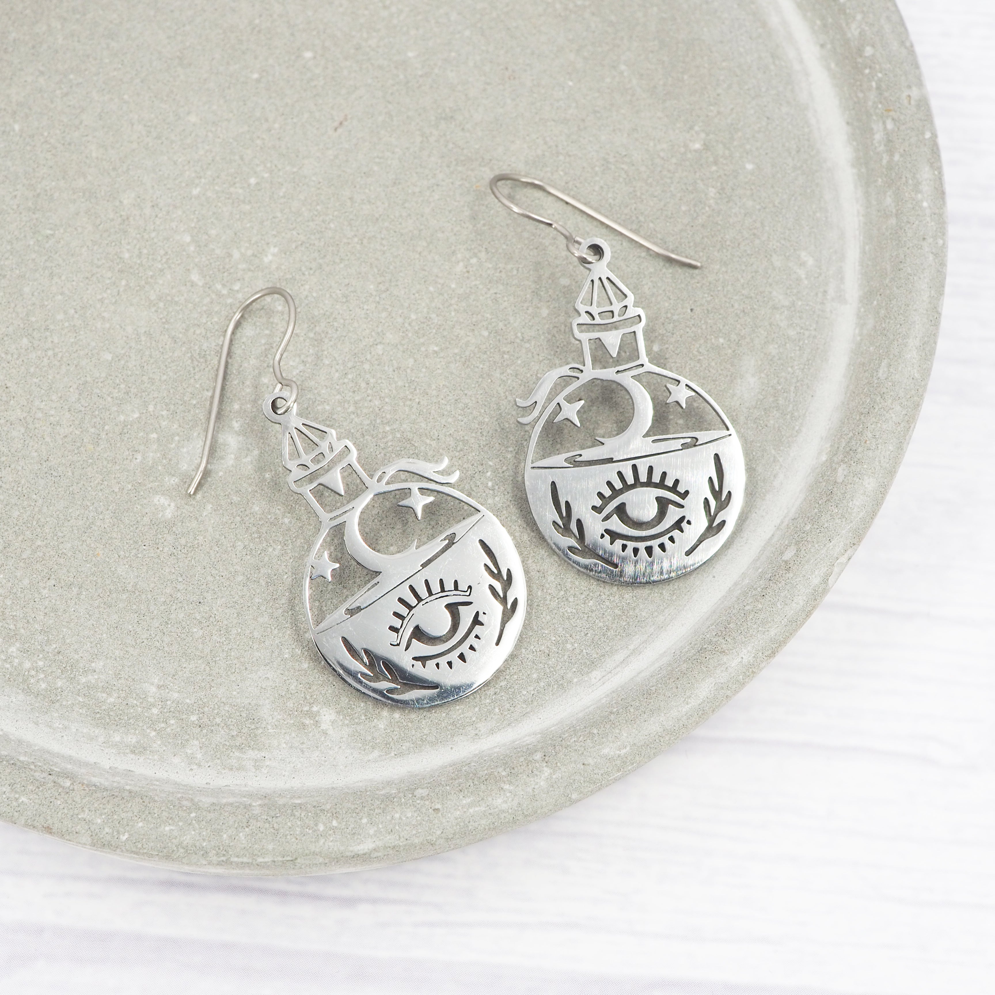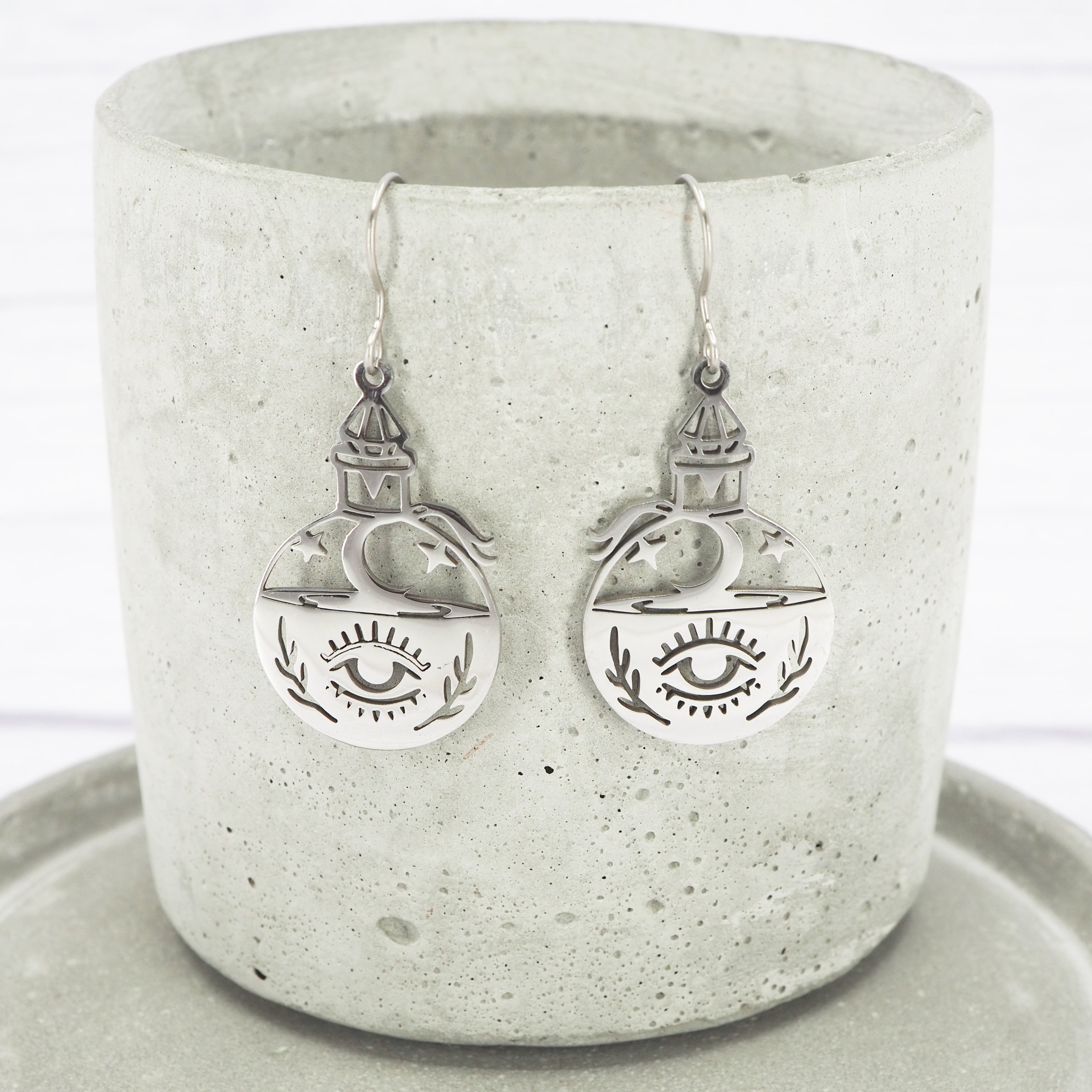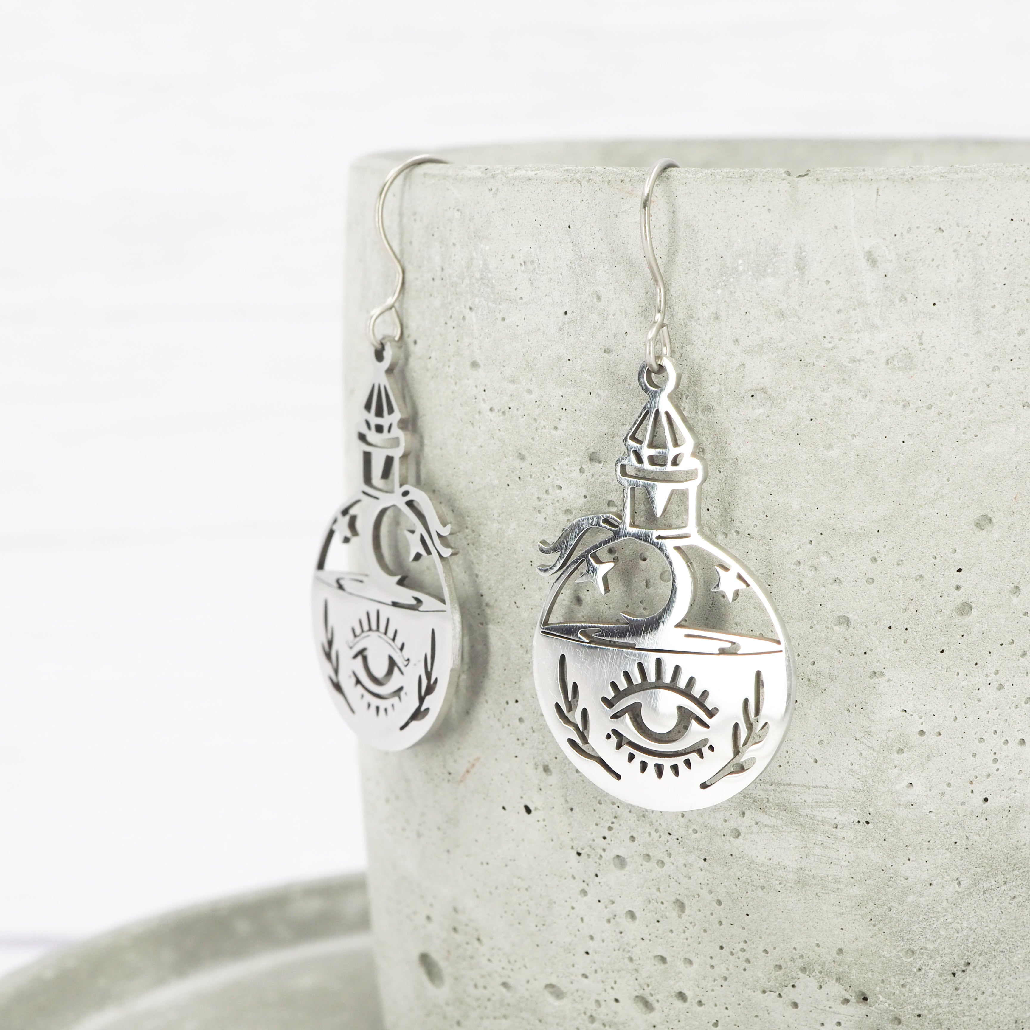 and the earrings have a total drop length of 1.75" (4.4cm) from the top of the ear wire to the bottom of the bottle.