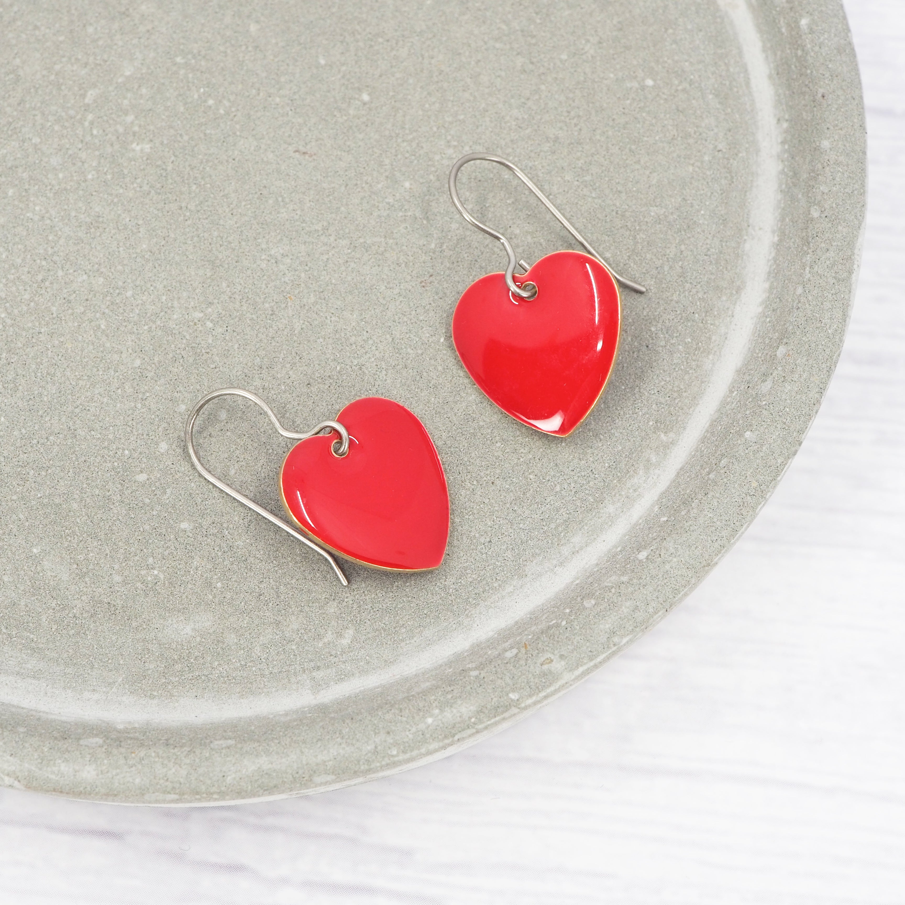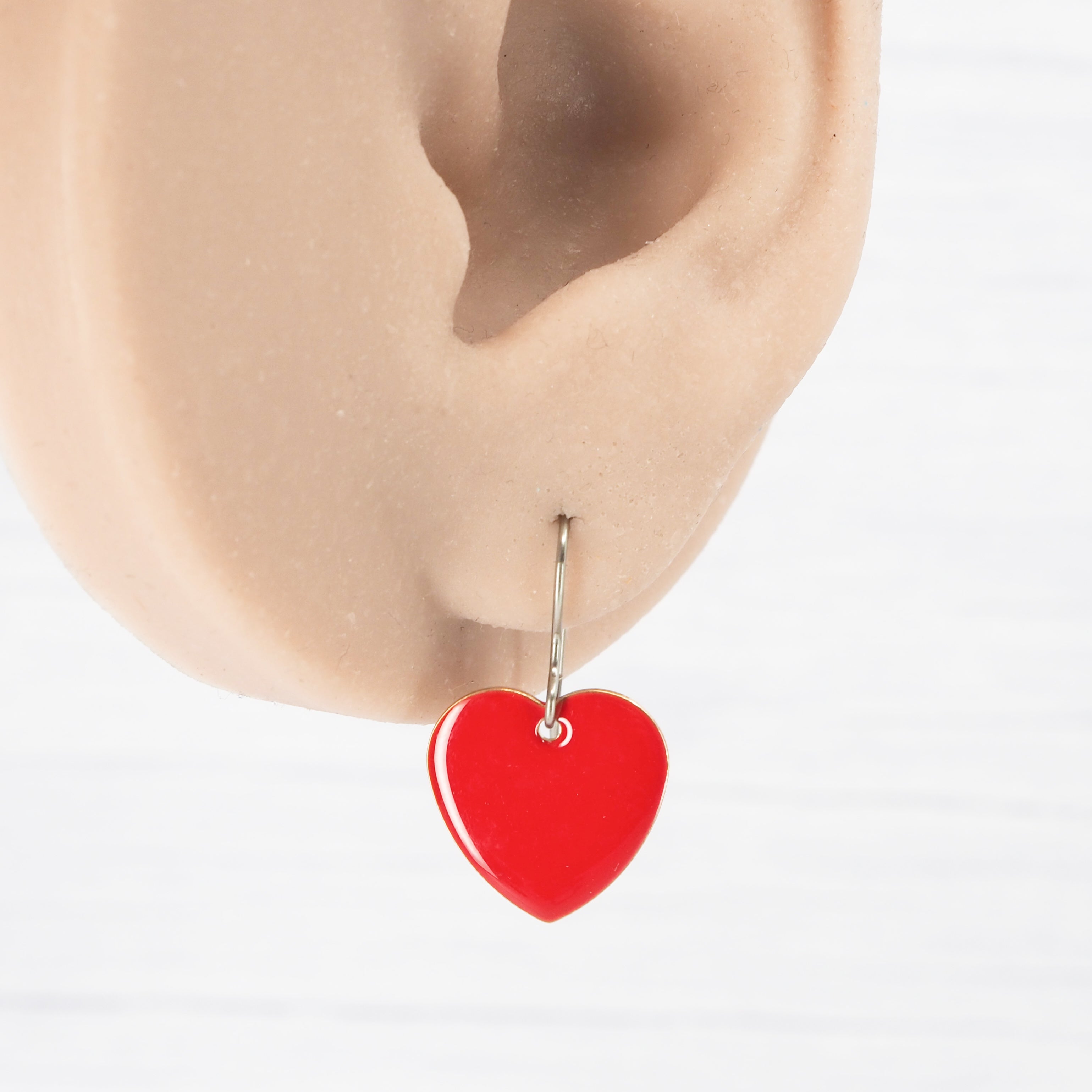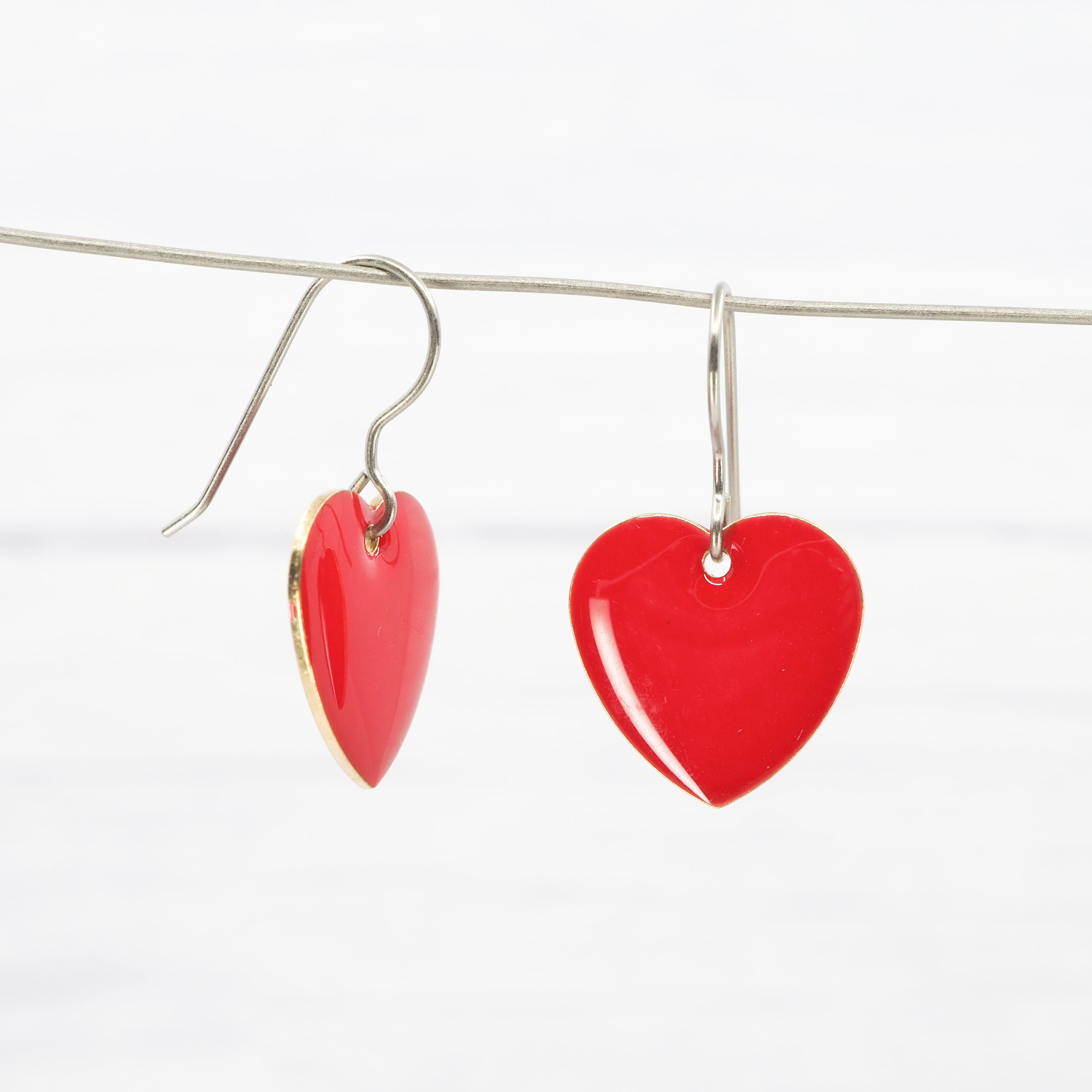 Red enamel heart dangle earrings. Great for all occasions.