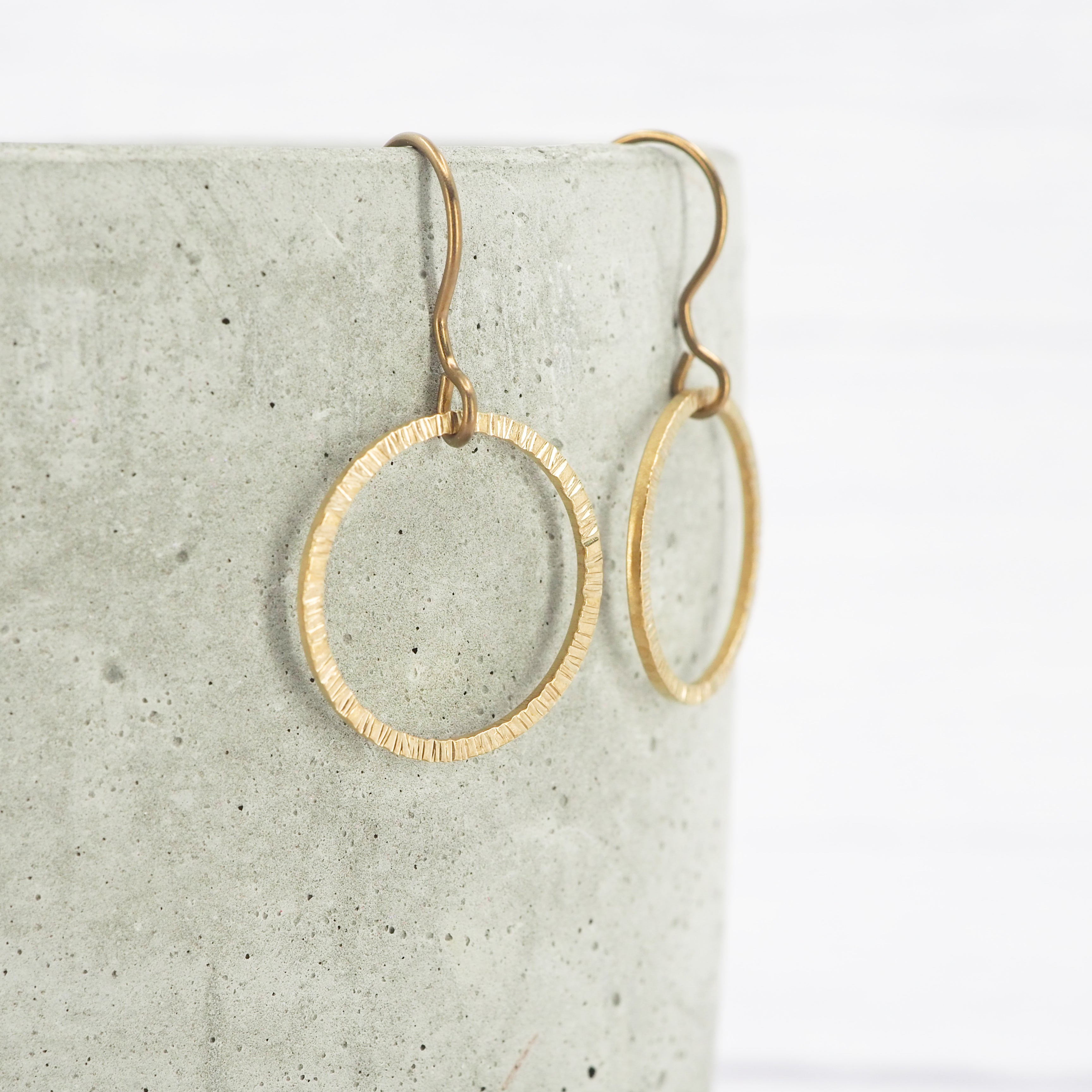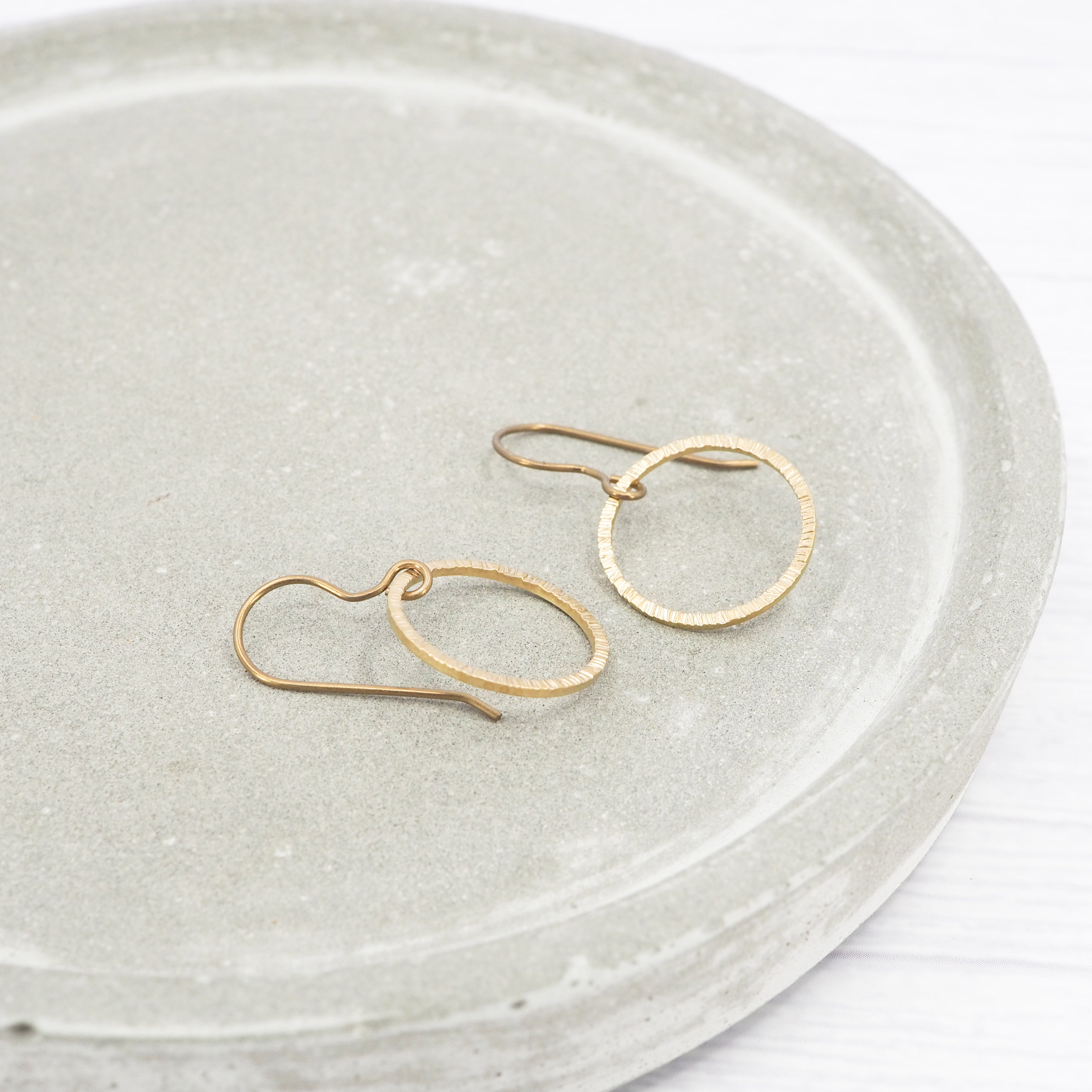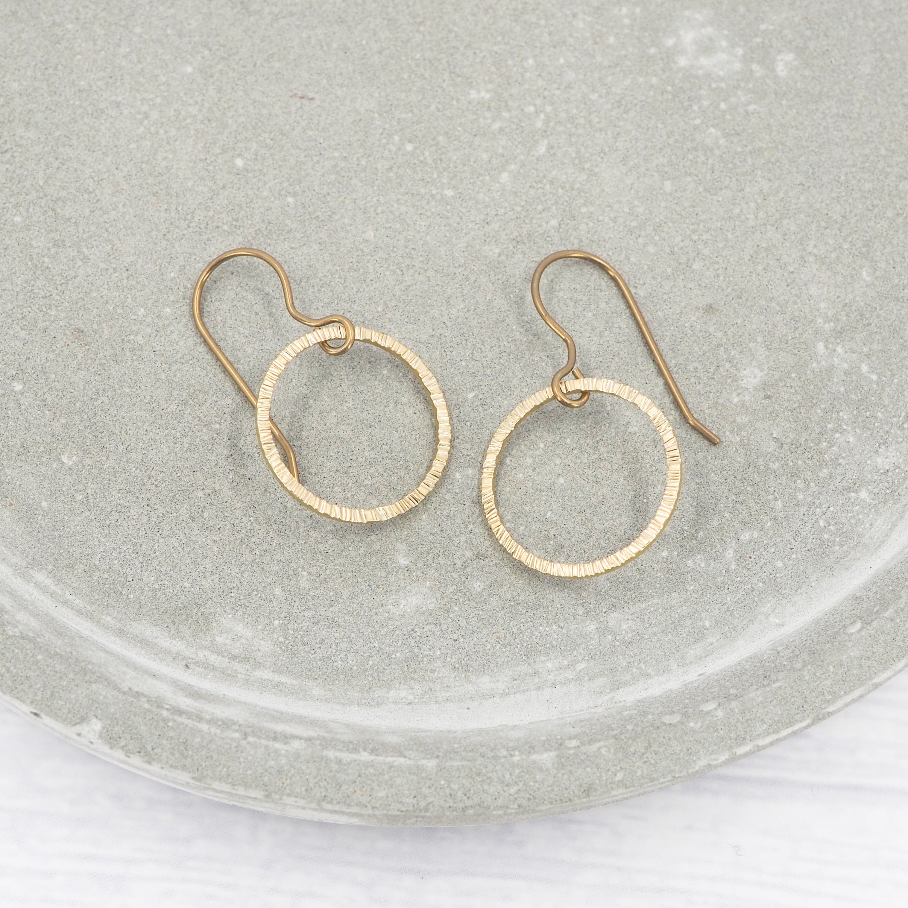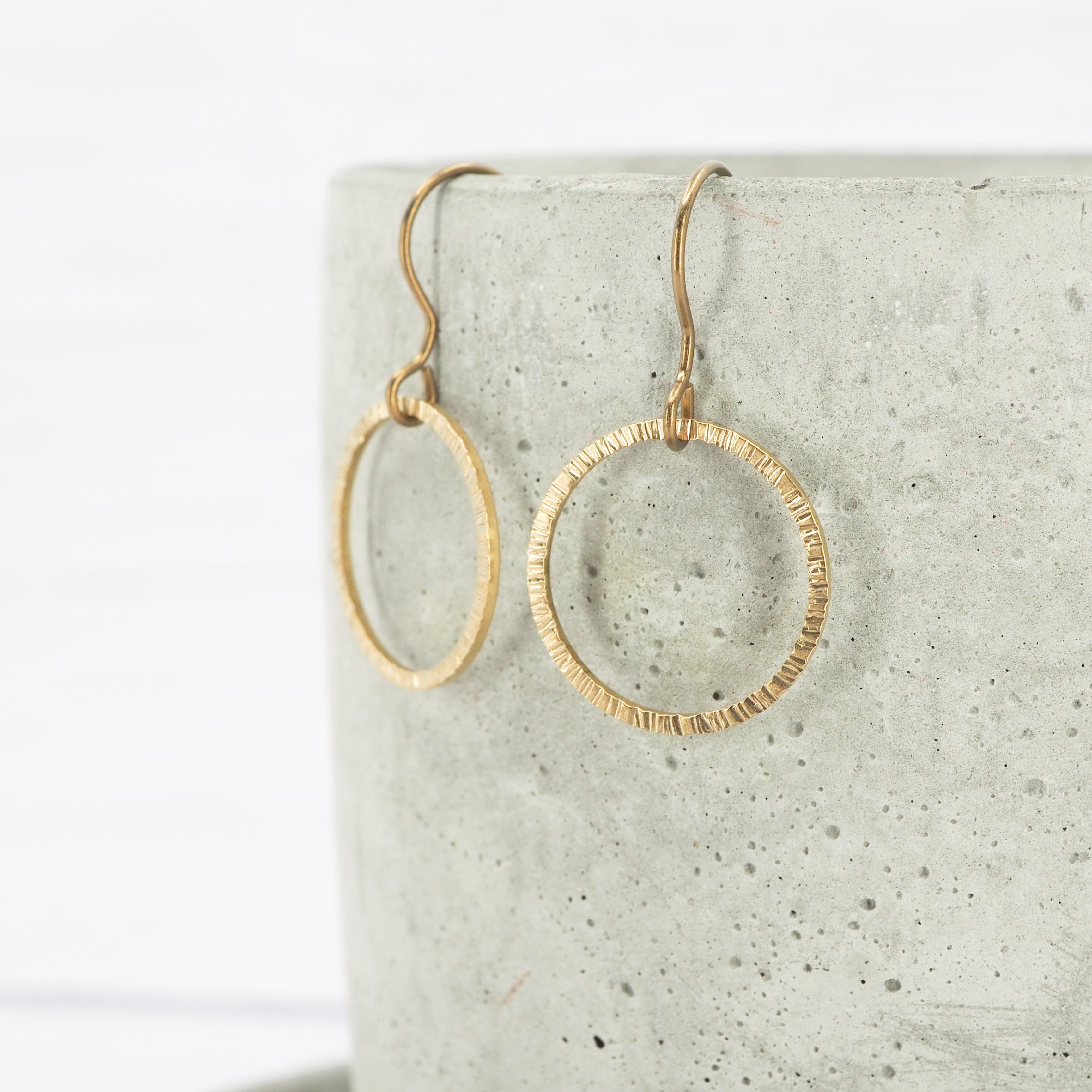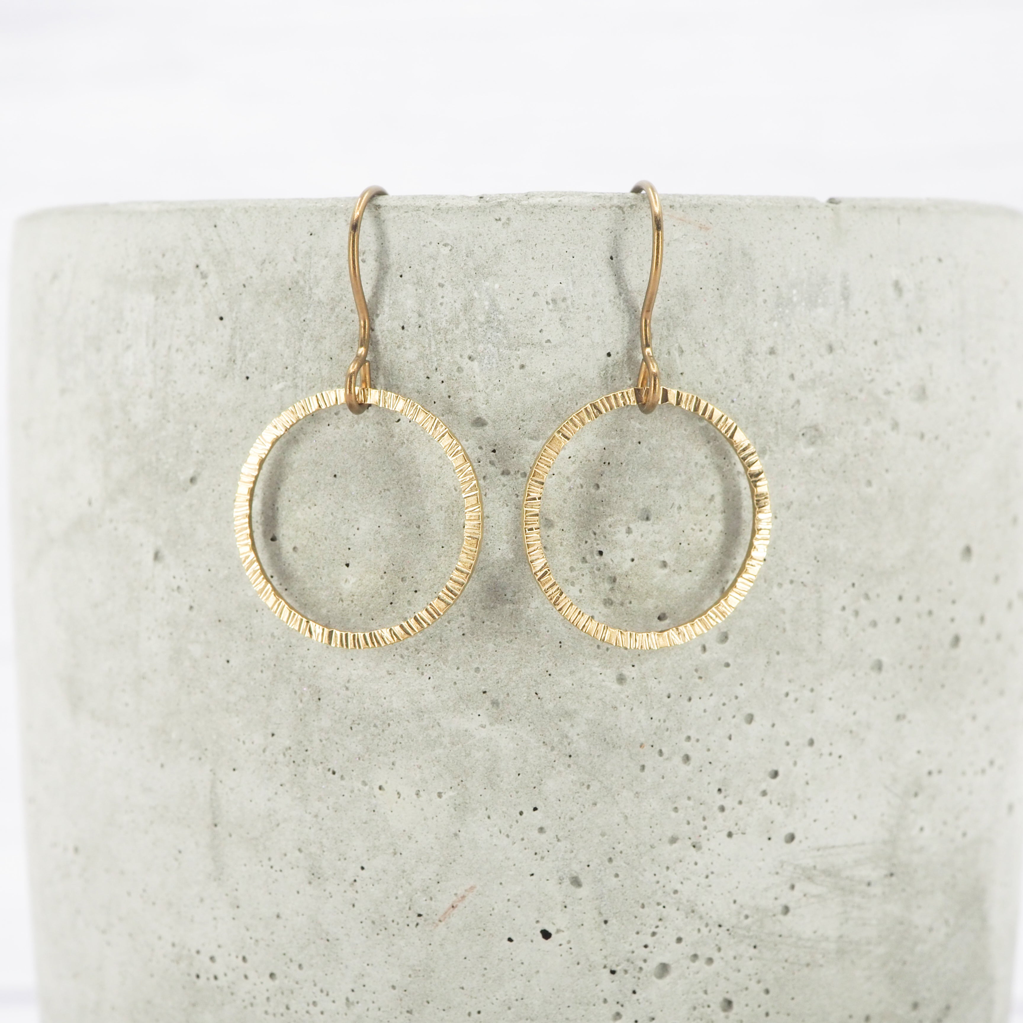 Small bark texture brass ring dangle earrings