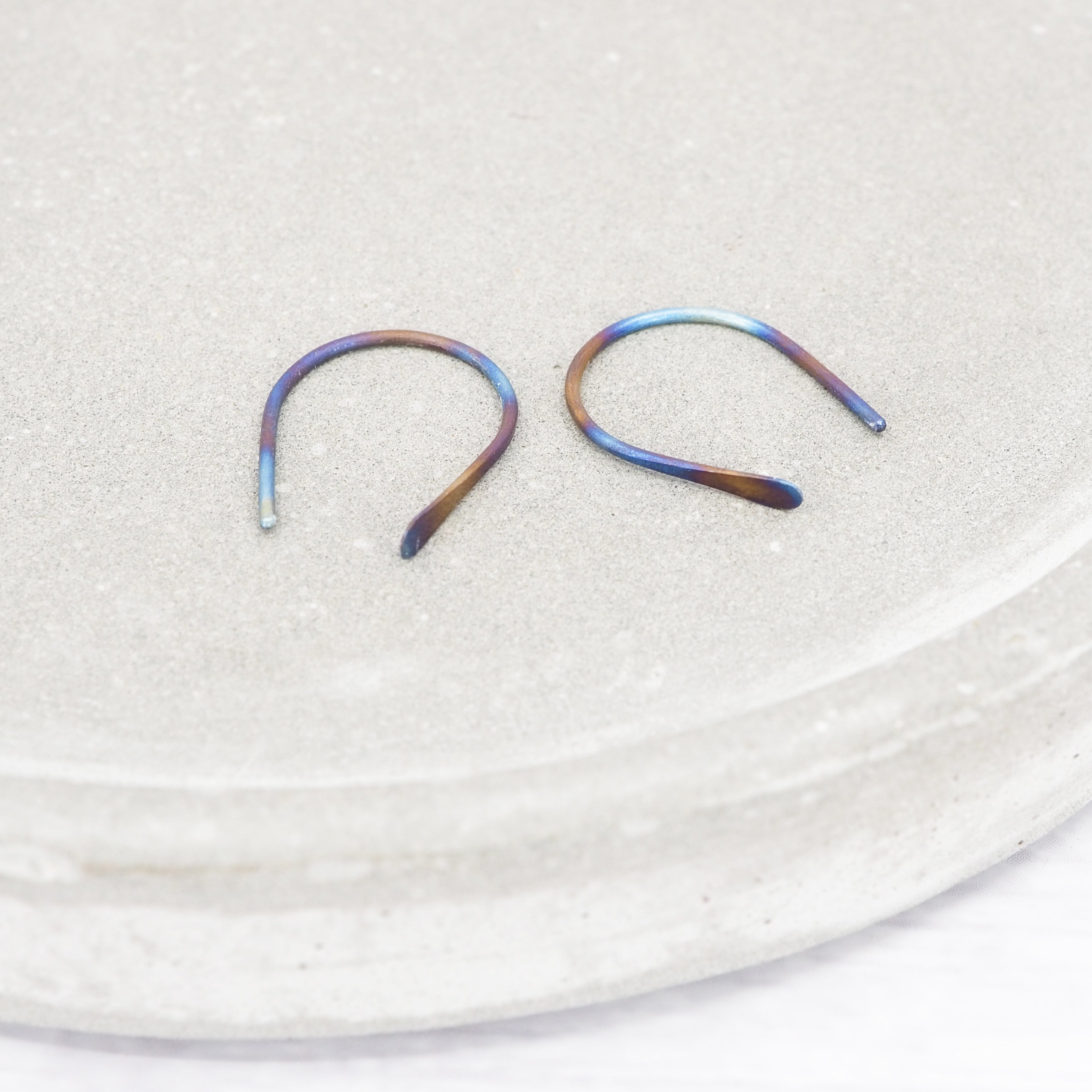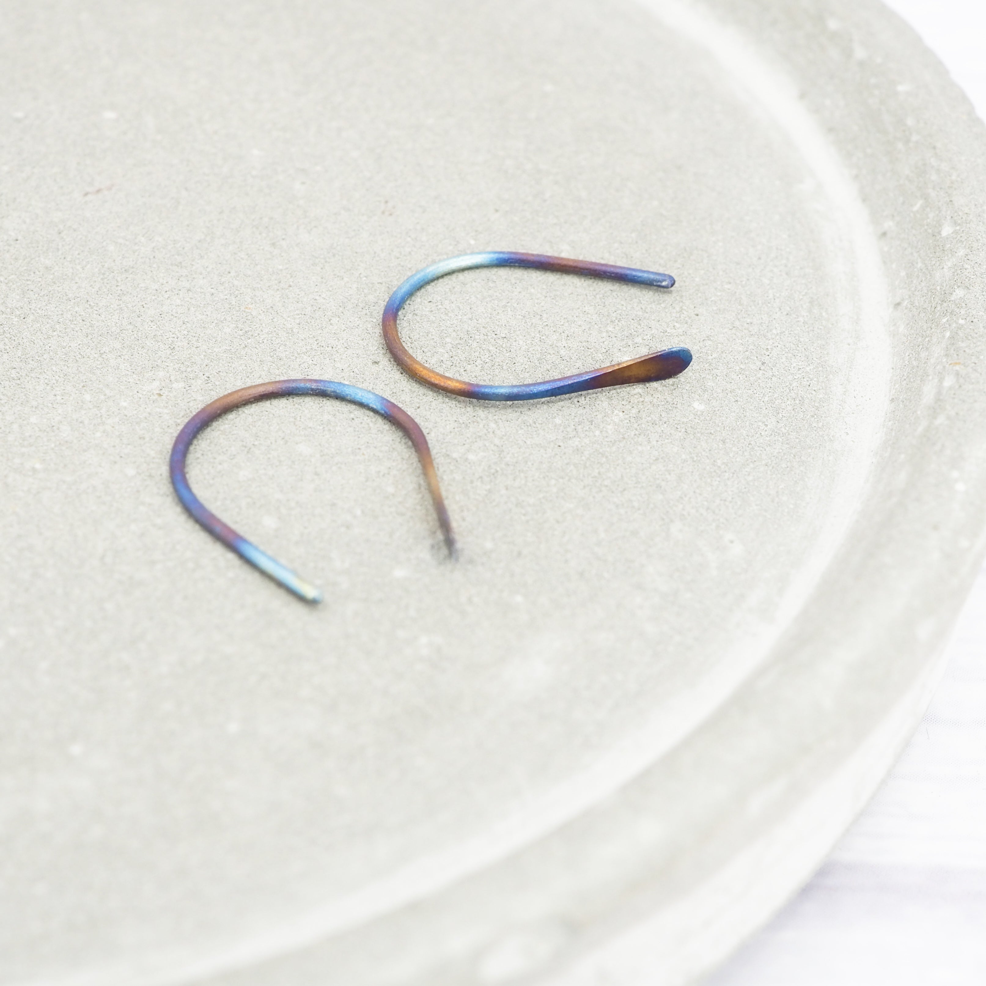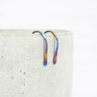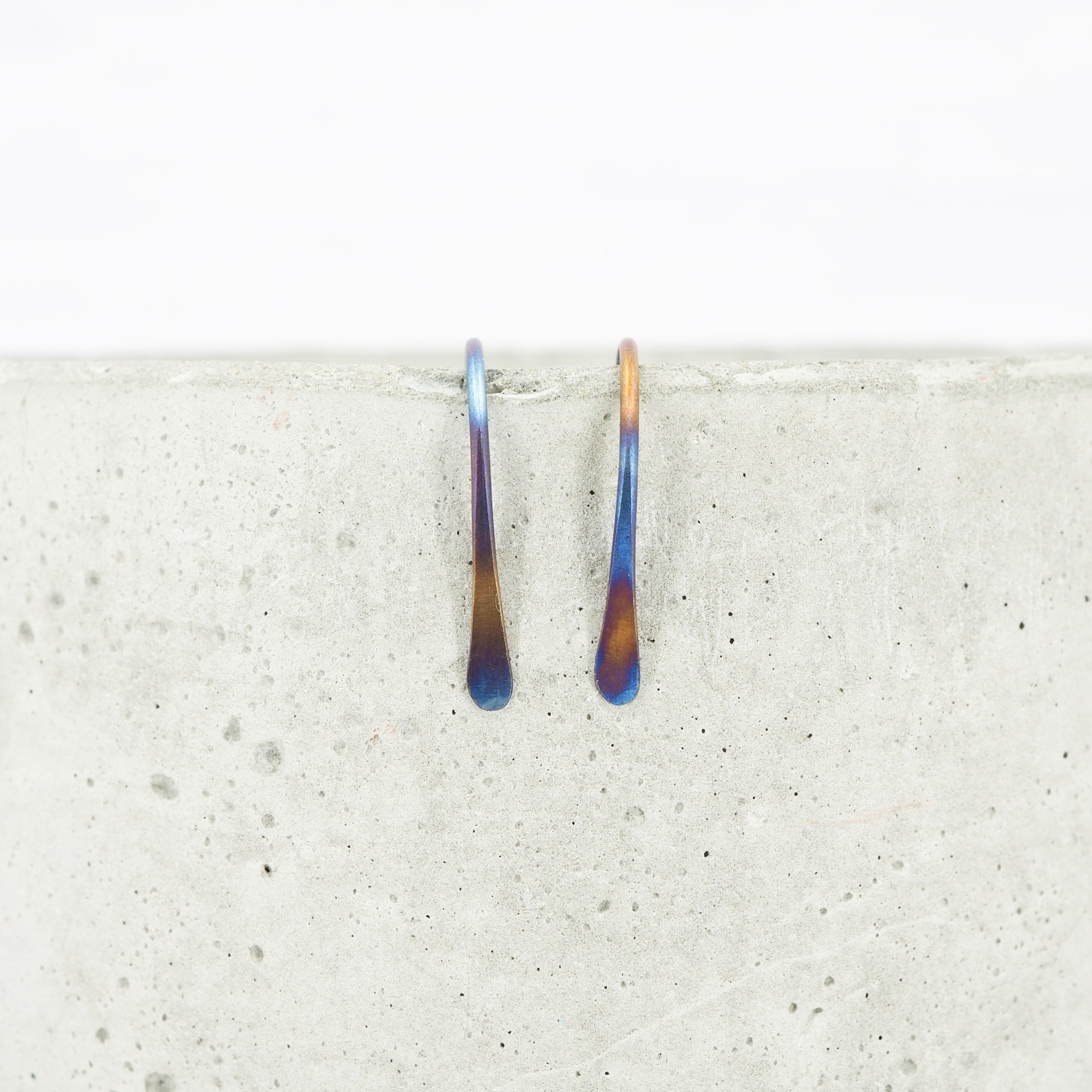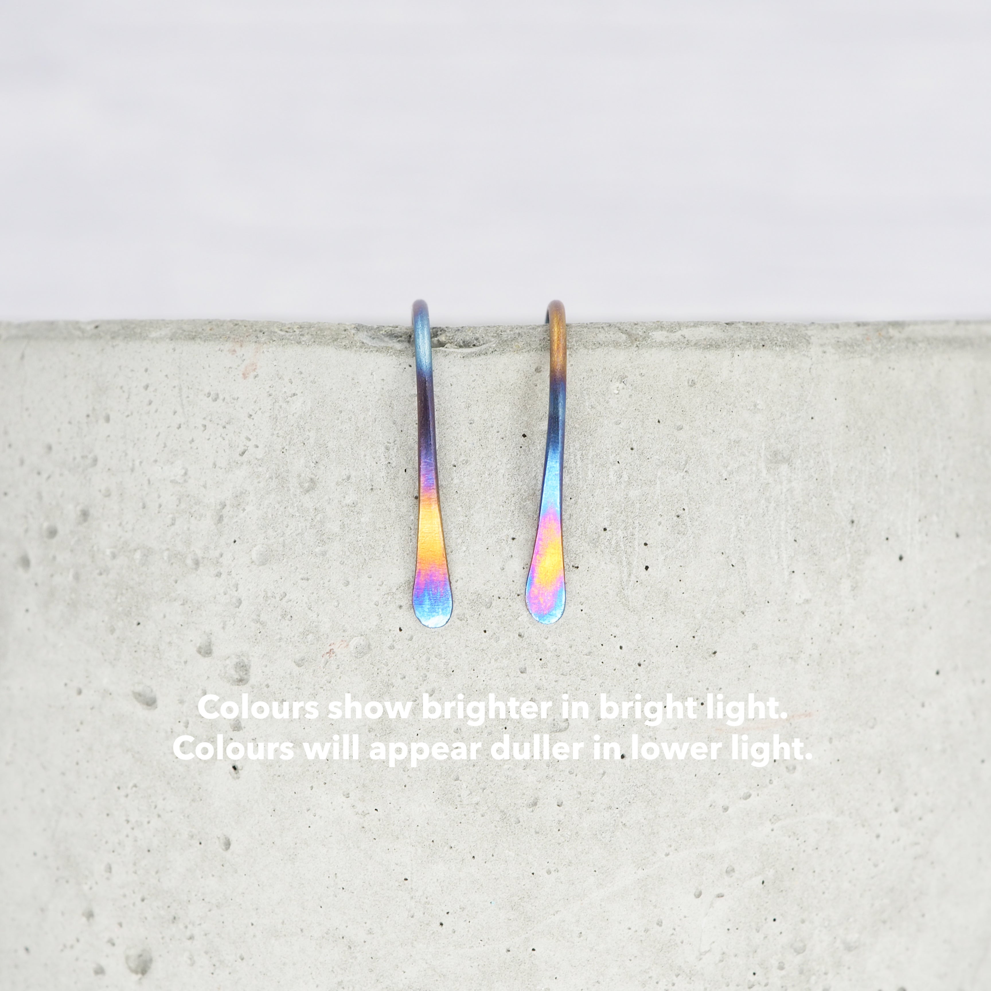 Heat anodised so each earring has unique colouring and will not look exactly the same as the image.