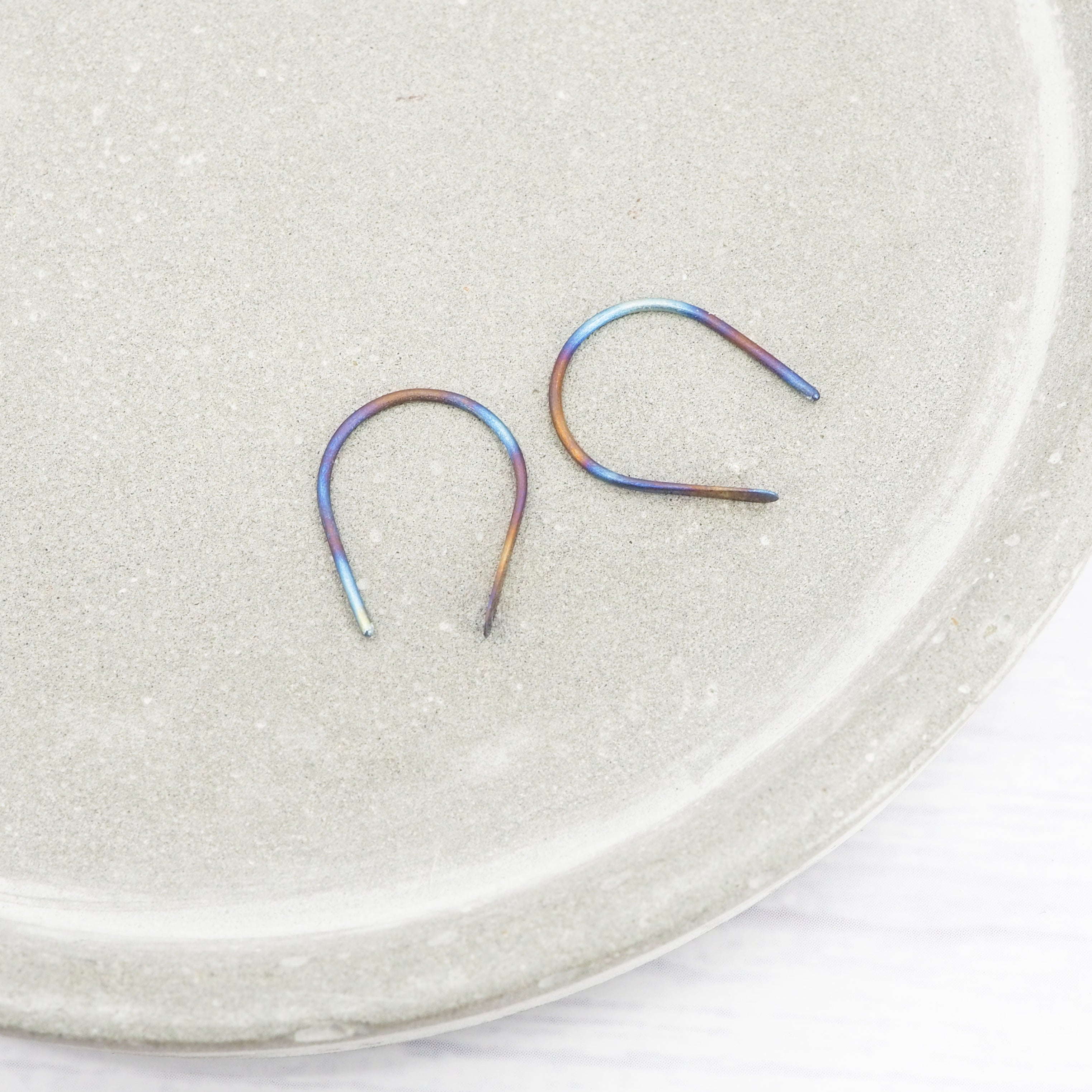 Made from solid matte titanium (0.8mm / 20ga) round wire.