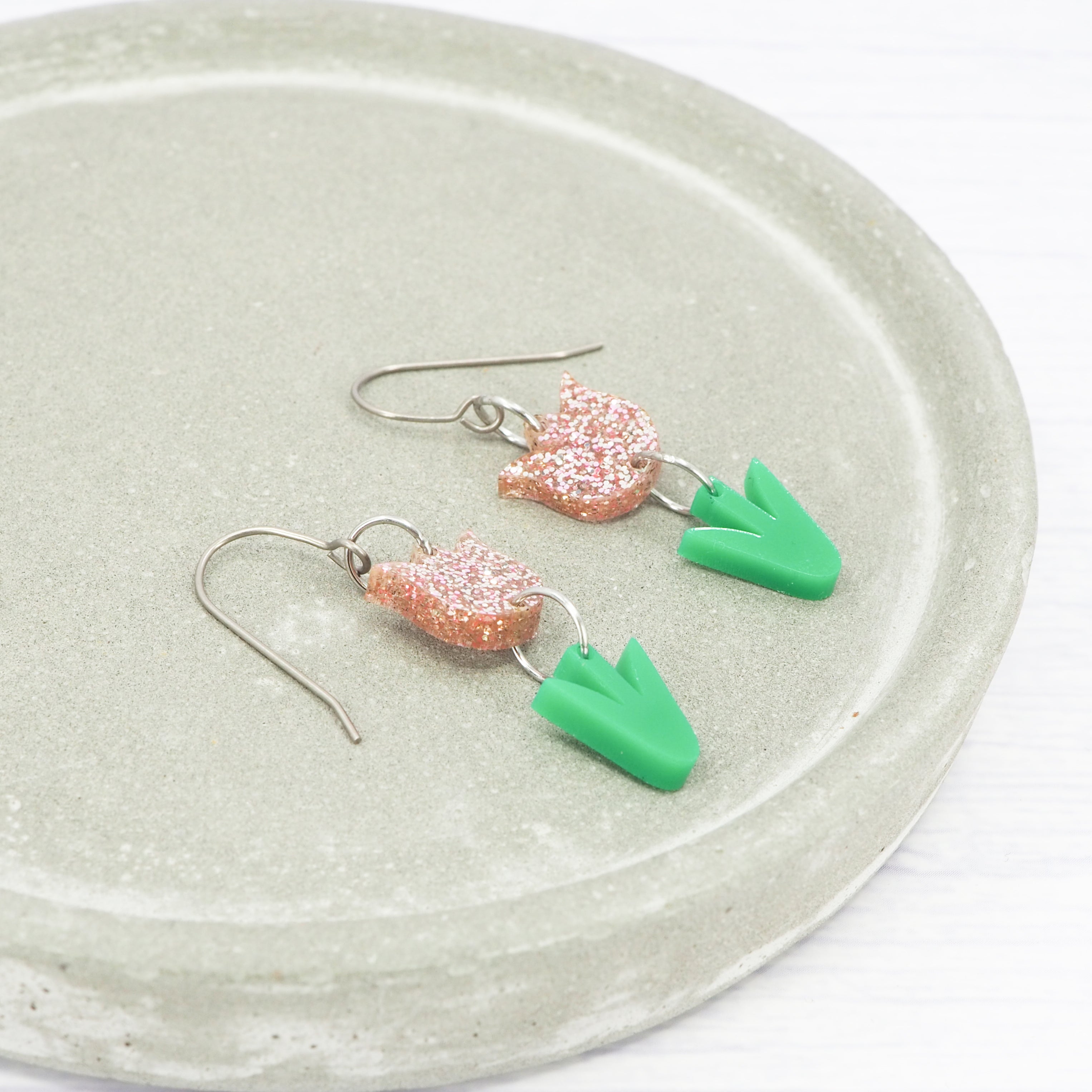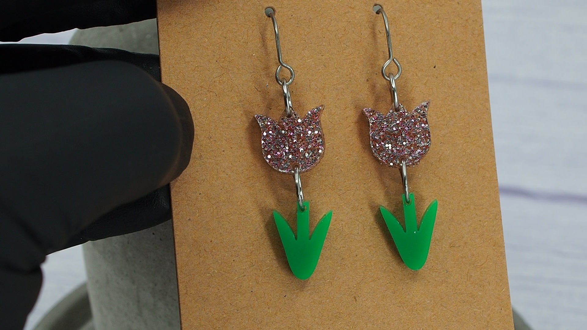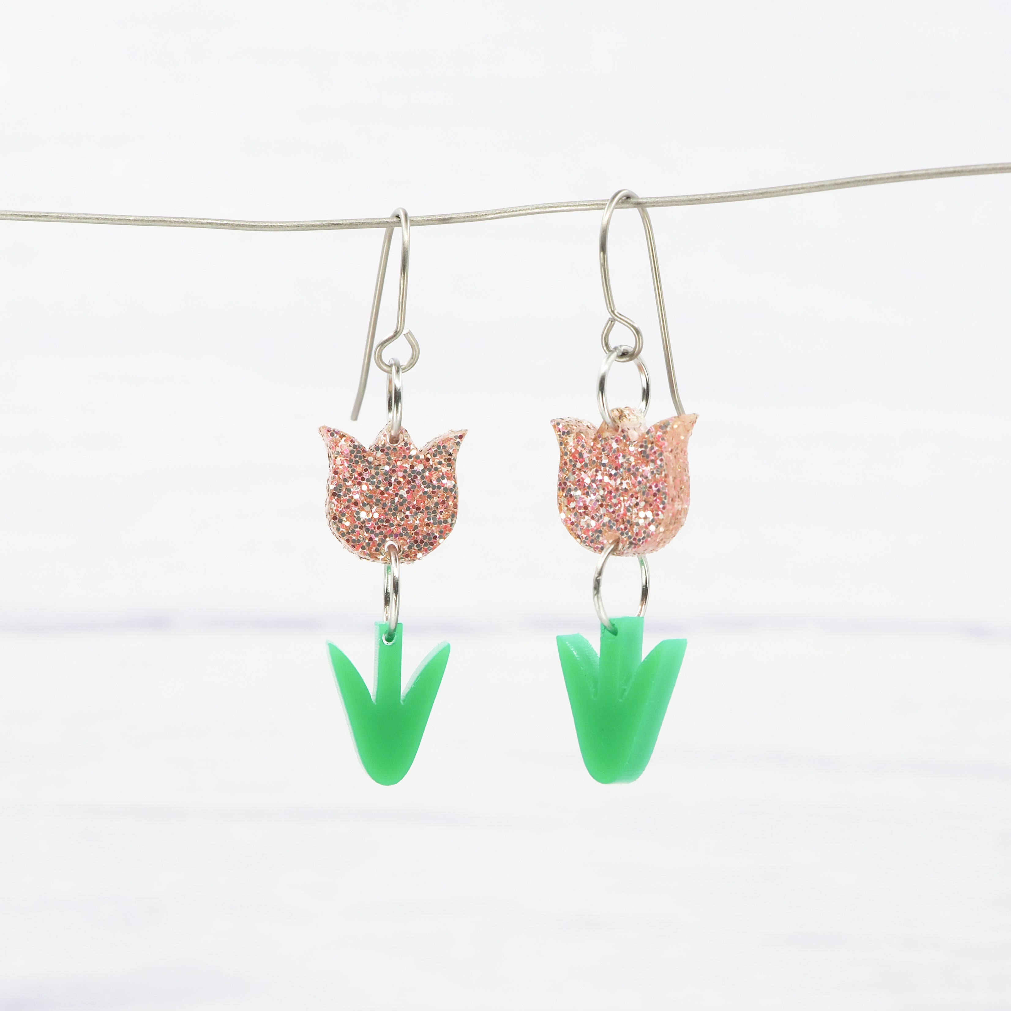 The earrings have a total drop length of 1.8" (4.6cm) from the top of the ear wire to the bottom of the flowers.
